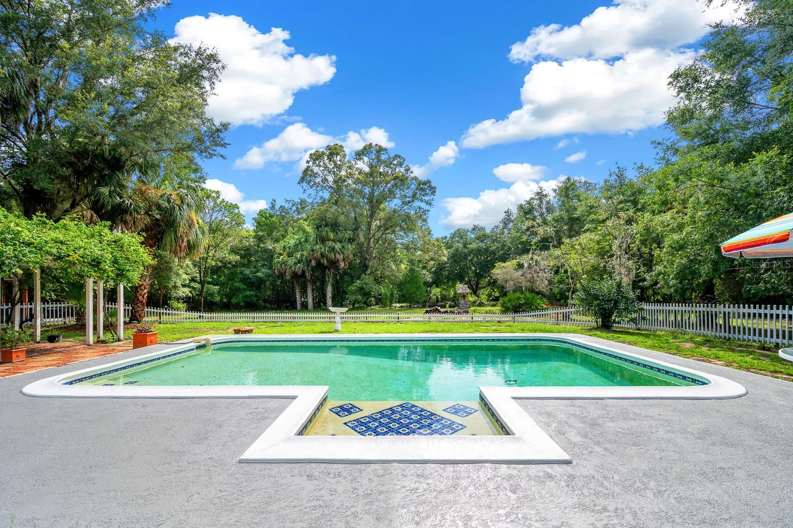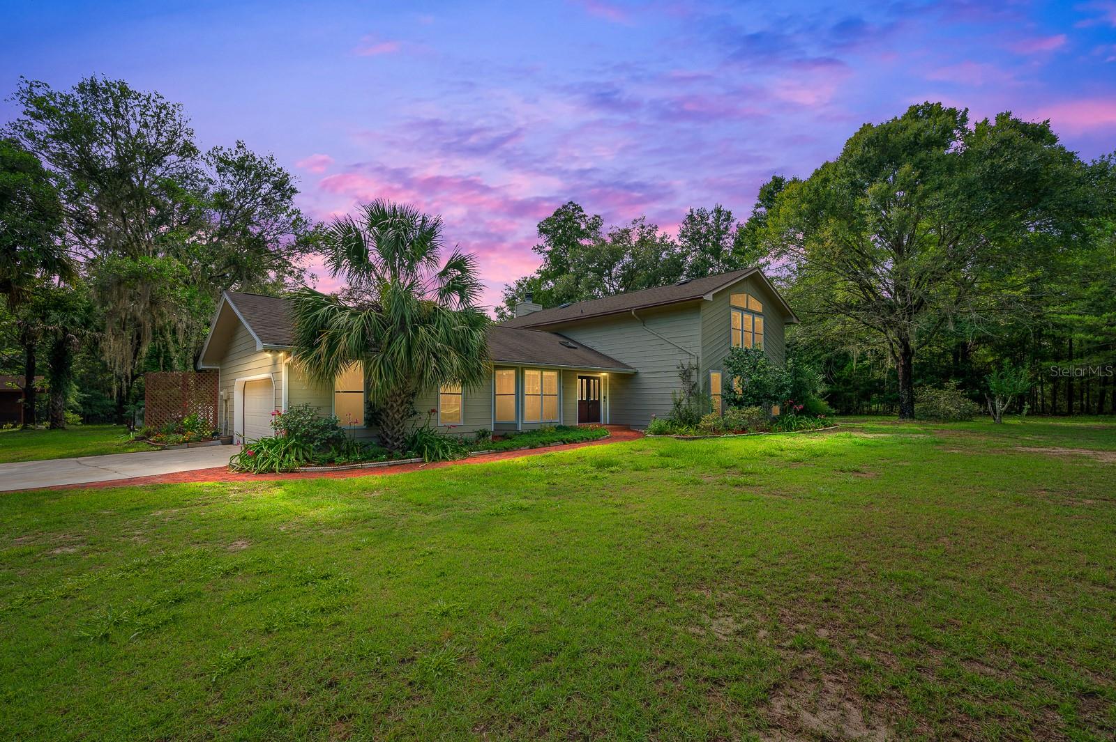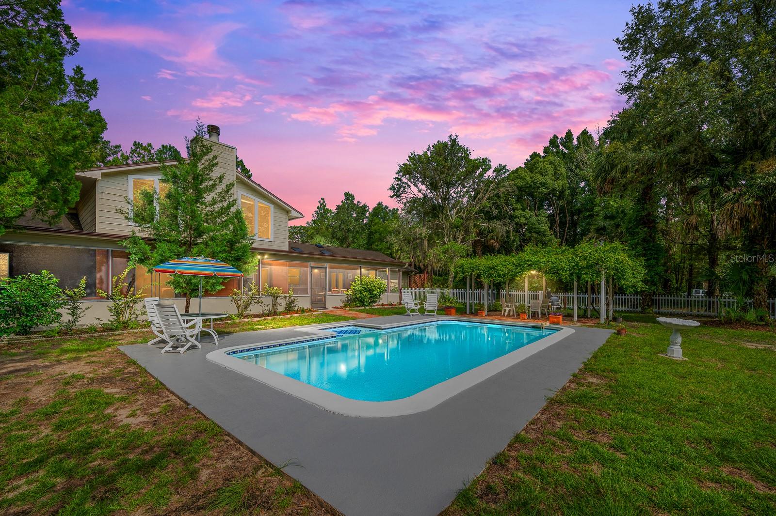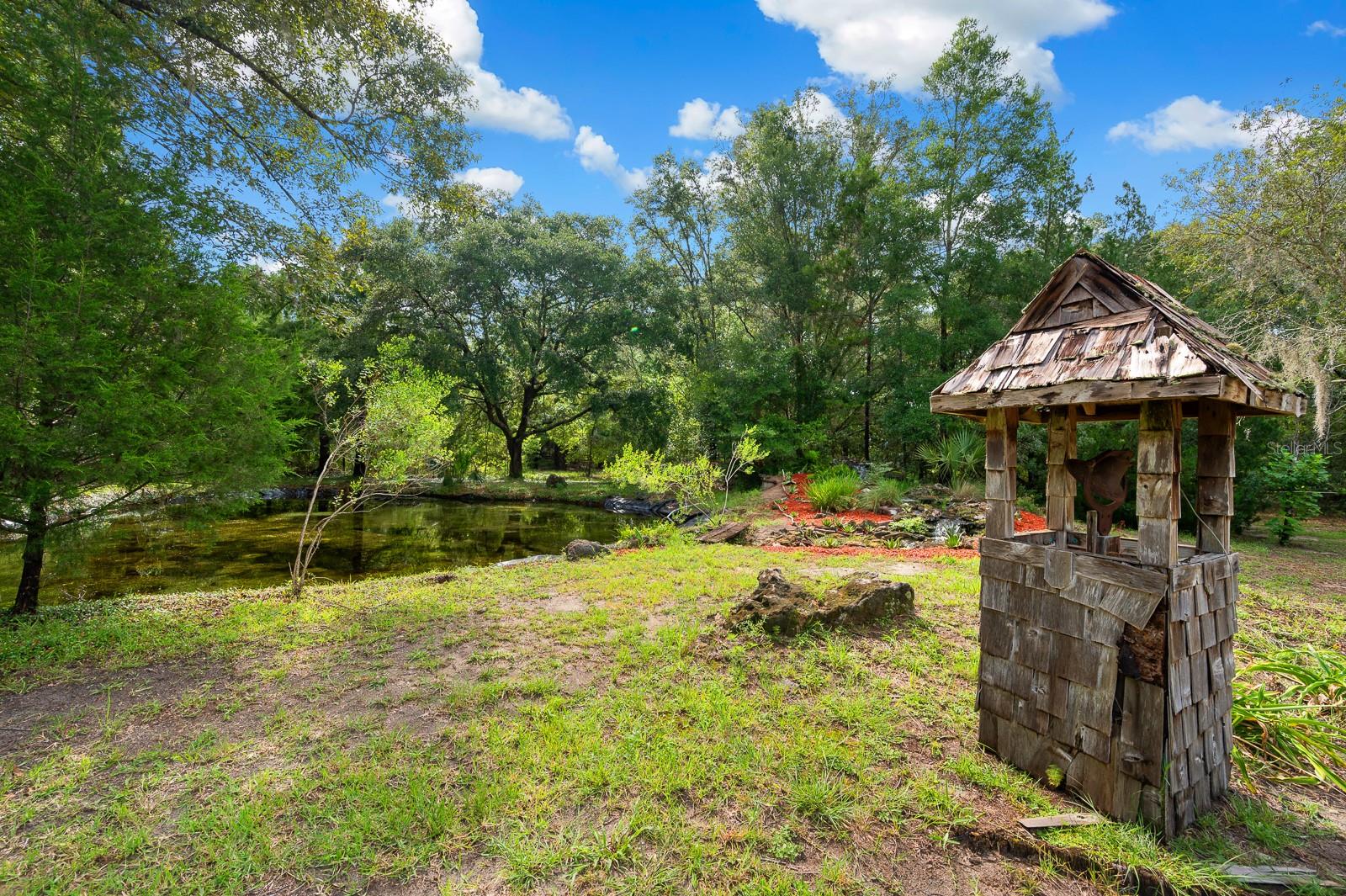 Seller will replace the roof prior to sale! Located just outside the Gainesville city limits, this beautifully crafted solid cedar wood home—built in 1984—offers a rare blend of privacy, natural beauty, and convenience on 4.42 acres in a community of custom-built homes with oversized lots and access to scenic neighborhood trails, perfect for peaceful walks and horseback riding—this community loves horses, so bring them! The home provides 2,840 square feet of living space with 3 bedrooms, 3 full bathrooms (including a Jack-and-Jill), and a spacious upstairs loft with its own bath and walk-in closet. The main living area boasts dramatic vaulted ceilings, while the kitchen and primary bath are equipped with sleek granite countertops. Hardwood floors in the living room and primary bedroom add warmth and charm, and French doors create an inviting entrance into the home. Outdoor living is just as impressive, featuring a large screened-in porch with a hot tub, a private pool surrounded by mature landscaping, and a peaceful artificial pond with a custom rock waterfall that often attracts local deer. A detached shed provides convenient storage, and all of this is just 15 minutes from UF, Shands, the VA, and close to shopping and dining. This well-maintained home offers a rare opportunity to enjoy timeless craftsmanship, open space, and modern comfort, all within easy reach of Gainesville’s amenities.