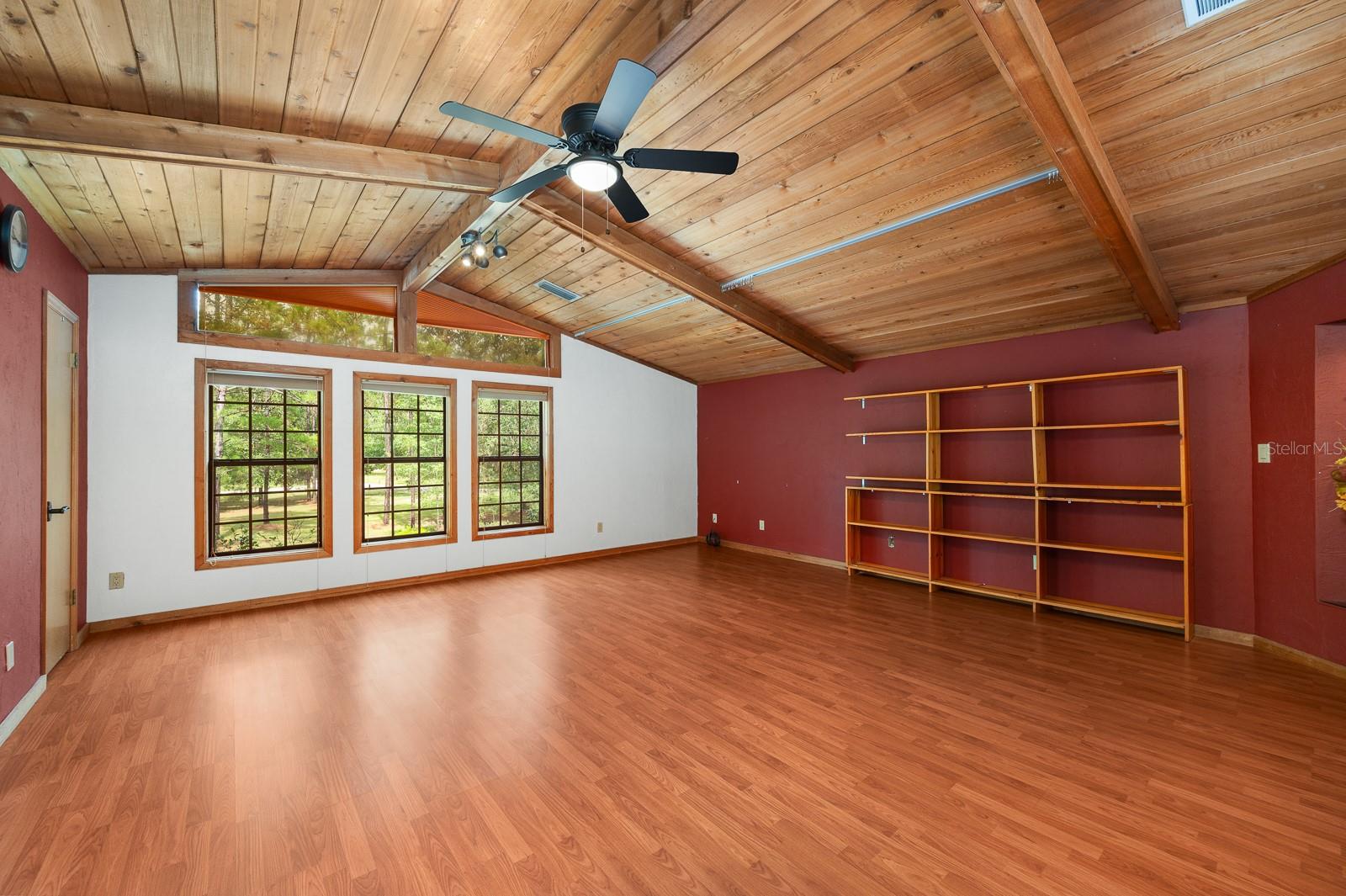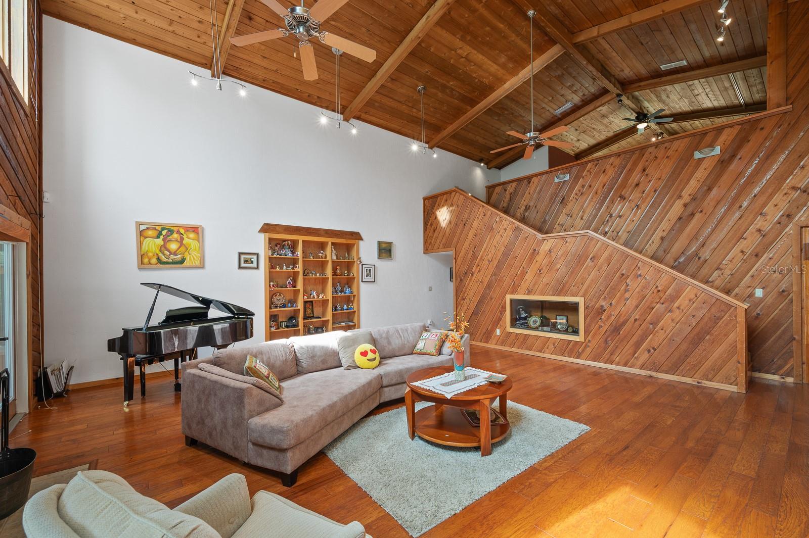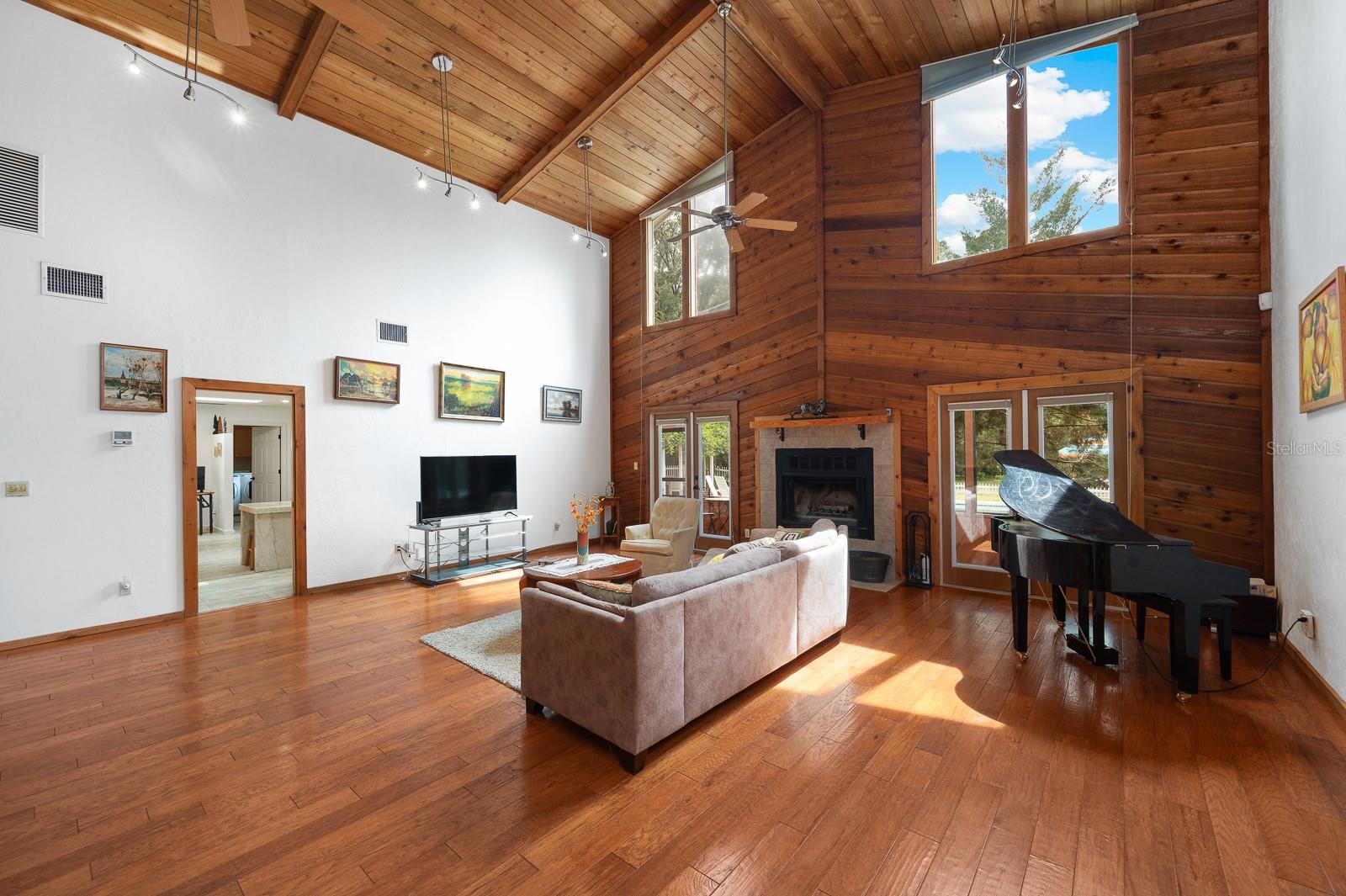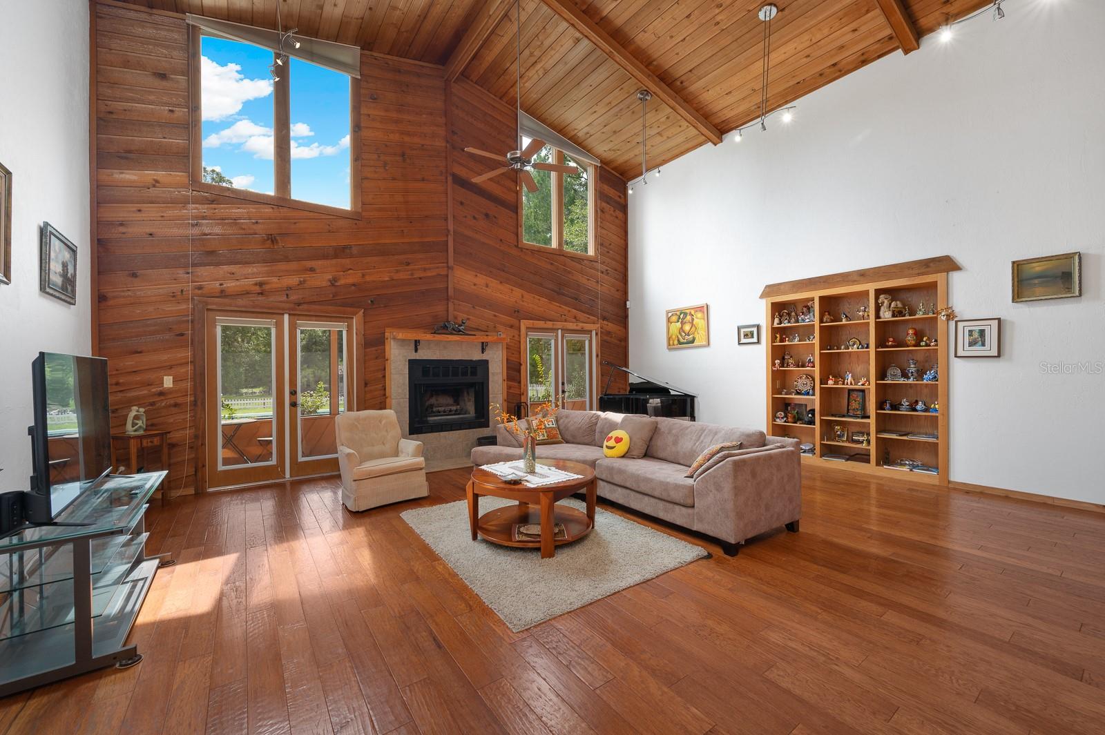 Seller will replace the roof prior to sale! Located just outside the Gainesville city limits, this beautifully crafted solid cedar wood home—built in 1984—offers a rare blend of privacy, natural beauty, and convenience on 4.42 acres in a community of custom-built homes with oversized lots and access to scenic neighborhood trails, perfect for peaceful walks and horseback riding—this community loves horses, so bring them! The home provides 2,840 square feet of living space with 3 bedrooms, 3 full bathrooms (including a Jack-and-Jill), and a spacious upstairs loft with its own bath and walk-in closet. The main living area boasts dramatic vaulted ceilings, while the kitchen and primary bath are equipped with sleek granite countertops. Hardwood floors in the living room and primary bedroom add warmth and charm, and French doors create an inviting entrance into the home. Outdoor living is just as impressive, featuring a large screened-in porch with a hot tub, a private pool surrounded by mature landscaping, and a peaceful artificial pond with a custom rock waterfall that often attracts local deer. A detached shed provides convenient storage, and all of this is just 15 minutes from UF, Shands, the VA, and close to shopping and dining. This well-maintained home offers a rare opportunity to enjoy timeless craftsmanship, open space, and modern comfort, all within easy reach of Gainesville’s amenities.