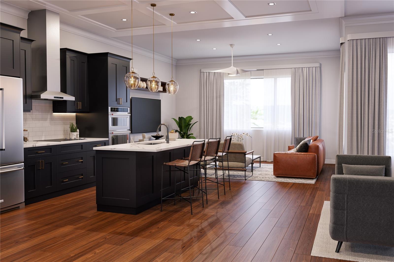 One or more photo(s) has been virtually staged. Under Construction. The Highland. Welcome to Emerson, a luxury residential community with unparalleled location, inspired by a unique blend of European design & a desire to encourage neighborly connection, celebrate healthy activity and provide easy access to nature. Emerson's 66 residences are clustered into 5 micro neighborhoods. The community will feature the Hub that functions as a permanent stage for resident gatherings, the pool, community garden and nature trails that will allow you to immerse yourself in Florida's incredible biodiversity from your doorstep. Emerson's The Highland offers abundant open living space, 3 bedrooms and 3.5 baths, a generous terrace, a 2-car garage! Sprawled on 2270 sq ft of heated and cooled space for comfortable entertaining or relaxing at home with open design filled with natural light through the generous amount of energy-efficient windows that connect your interior living space to Florida's beautiful outdoors! This unit has the "The Naturalist" finish boasting a beautiful kitchen on the second floor with soft-close cabinetry, granite counters, subway tile backsplash, stainless steel Whirlpool appliances that include a side by side refrigerator, range, canopy hood. The third level features a large master bedroom with en suite luxury bath with frameless shower enclosure, porcelain tile, shower niche, dual vanity and large walk-in closet. Secondary bedroom also has an en suite bath. Laundry room is conveniently located on the 3rd level.Off the 2 car-garage is the first floor Imagine room which can be the 3rd suite or den/home office or theater or anything you imagine. Resilient floors in main areas, 9-10' ceilings, large utility room are other features! Photos are of completed Highland and finishes vary. Upgraded design packages are featured in the photos and available in Phase 2, The Brahma, The Hamatreya, The Rhodora. Condo dues cover GRU water, trash, sewer, exterior maintenance, grounds maintenance, building insurance, pest control, amenities. Come experience the life you imagine! Call today for your private viewing and find your center at Emerson!