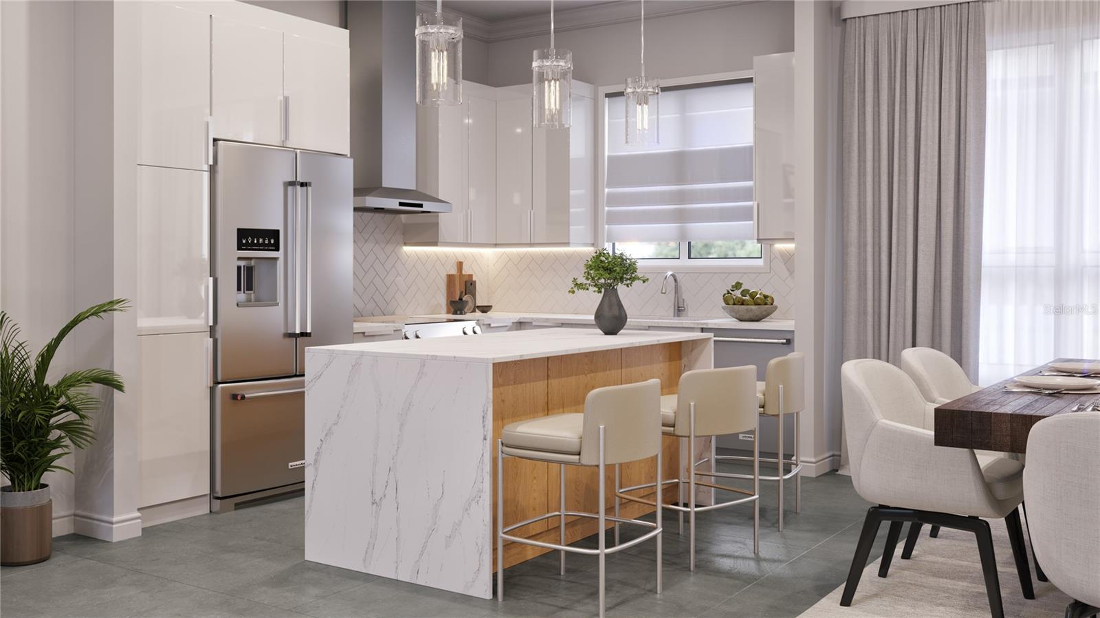 One or more photo(s) has been virtually staged. BLACK FRIDAY DEAL! Under 300K in Emerson! Refrigerator included! Completed & Move-in Ready! The Eros A. Welcome to Emerson, a luxury residential community with unparalleled location, inspired by a unique blend of European design & a desire to encourage neighborly connection, celebrate healthy activity and provide easy access to nature. Emerson's 66 residences are clustered into 5 micro neighborhoods. The community will feature the Hub that functions as a permanent stage for resident gatherings, the pool, community garden and nature trails that will allow you to immerse yourself in Florida's incredible biodiversity from your doorstep. Emerson's The Eros offers abundant open living space, 1 bedroom and 1.5 baths! Sprawled on almost 1000 sq ft of heated and cooled space for comfortable entertaining or relaxing at home with open design filled with natural light through the generous amount of energy-efficient windows that connect your interior living space to Florida's beautiful outdoors! This unit has the "The Naturalist" finish boasting a beautiful kitchen with soft-close cabinetry, granite counters, subway tile backsplash, stainless steel Whirlpool appliances that include a side by side refrigerator, range, canopy hood. Baths feature porcelain tiles, frameless glass shower enclosure and shower niche. Upgraded design packages are featured in the photos and available in next phases, The Brahma, The Hamatreya, The Rhodora. Condo dues cover GRU water, trash, sewer, exterior maintenance, grounds maintenance, building insurance, pest control, amenities. Come experience the life you imagine! Call today for your private viewing and find your center at Emerson!