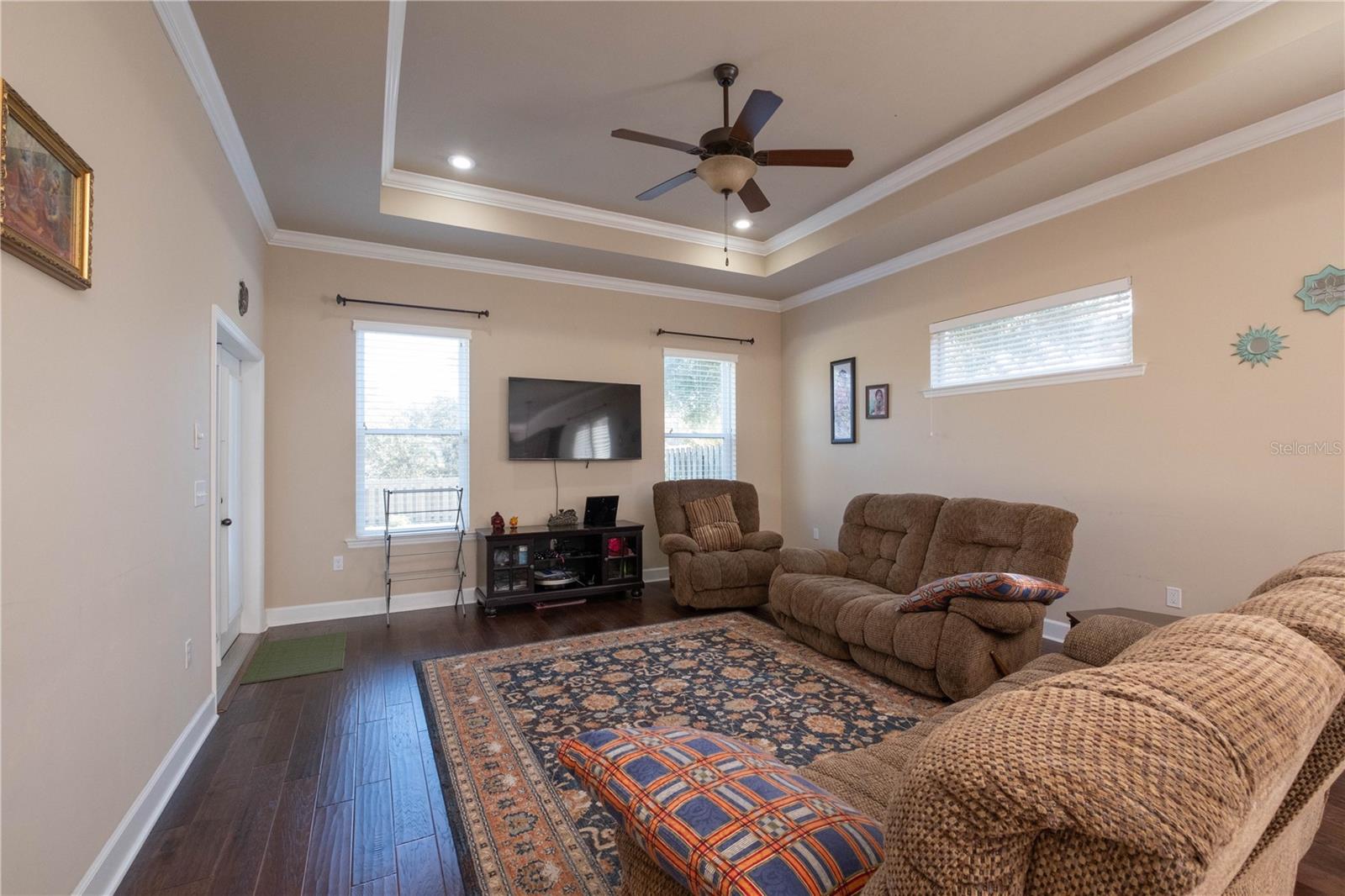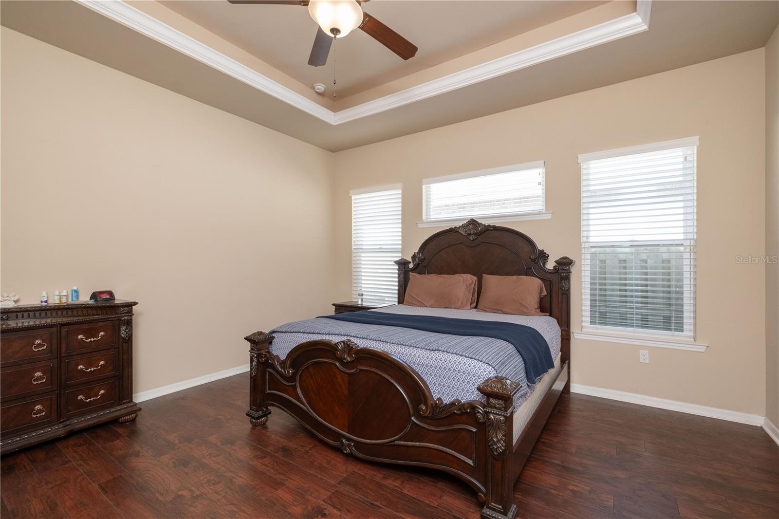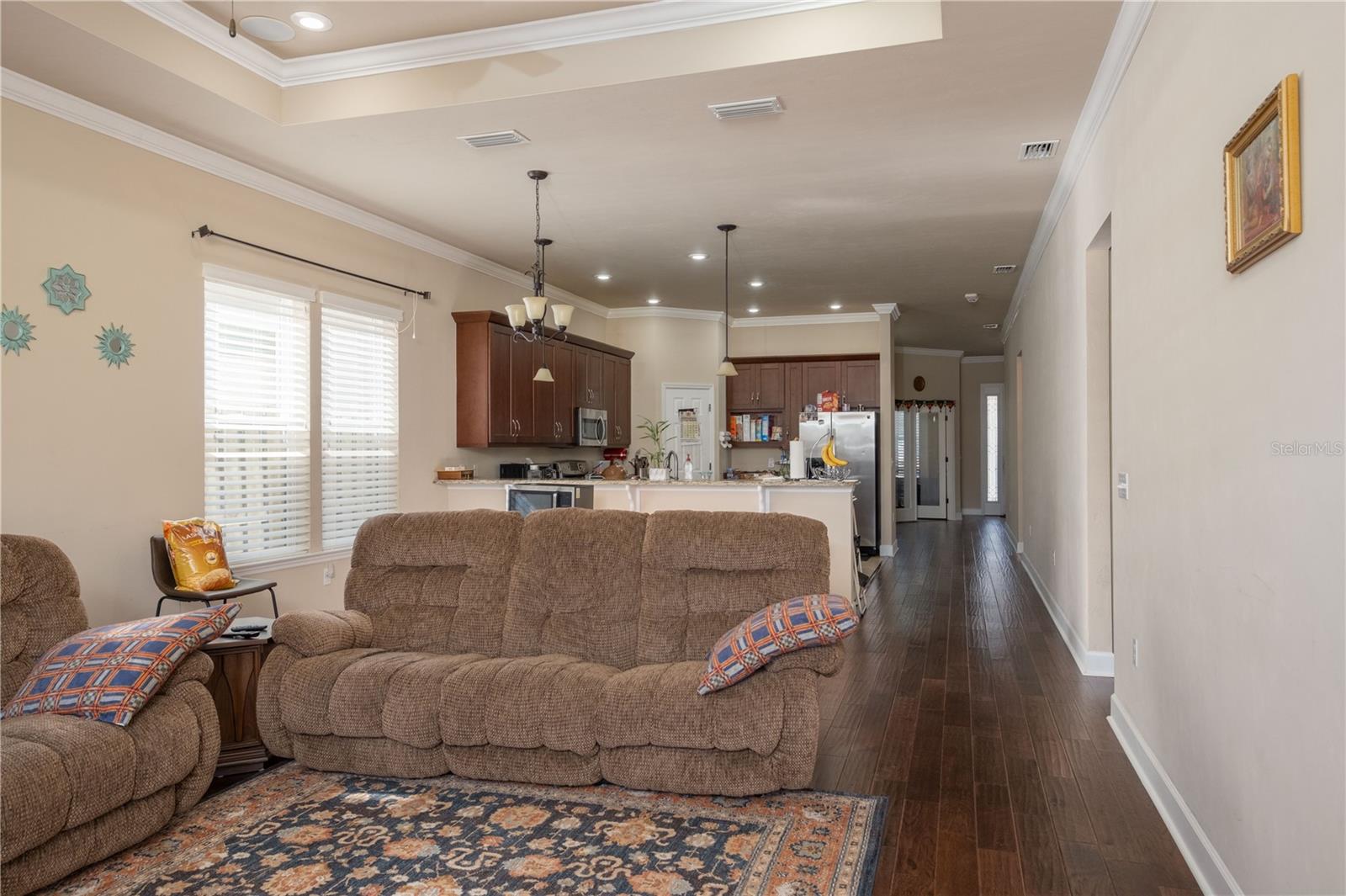 Improved the price on this USDA ELIGIBLE. Gorgeous LIKE NEW home in the popular SW community of Longleaf Village! This spacious 3 BR, 2 BA PLUS Study and Formal Dining room offers large rooms throughout and plenty of space for entertaining. Loaded with upgrades, the home boasts 10 foot ceilings, tray ceilings, CROWN, HAND SCRAPED WOOD FLOORS (NO CARPET IN THE HOUSE) STAINLESS Steel appliances, GRANITE and much more! The Master has a HUGE walk in closet, walk in glass shower and his & hers vanities with granite. The guest rooms were expanded from the original plan and are down a private hallway. A "chef''s kitchen" with granite, large island, long bar top area for seating, walk-in pantry, GAS Range and Stainless Steel Appliances. The screened lanai overlooks a large manicured yard backing common area for privacy. Longleaf''s amenities include beach entry pool, fitness, tennis, b-ball, clubhouse and playground, and all front yard maintenance included!