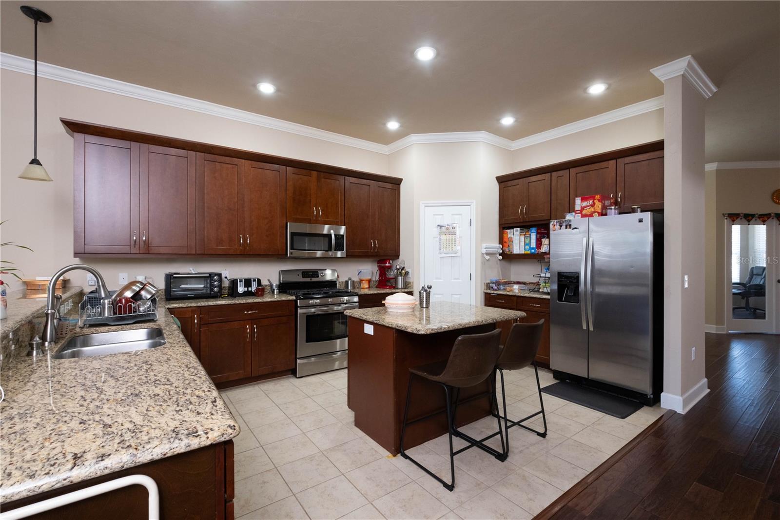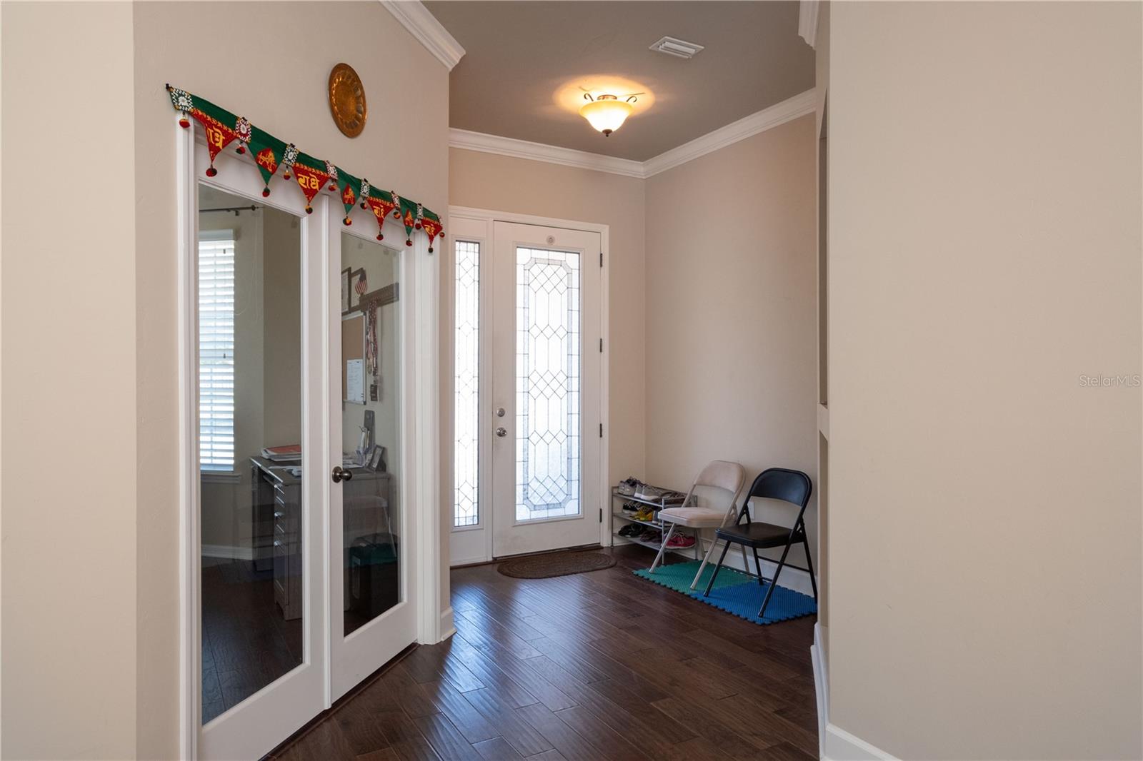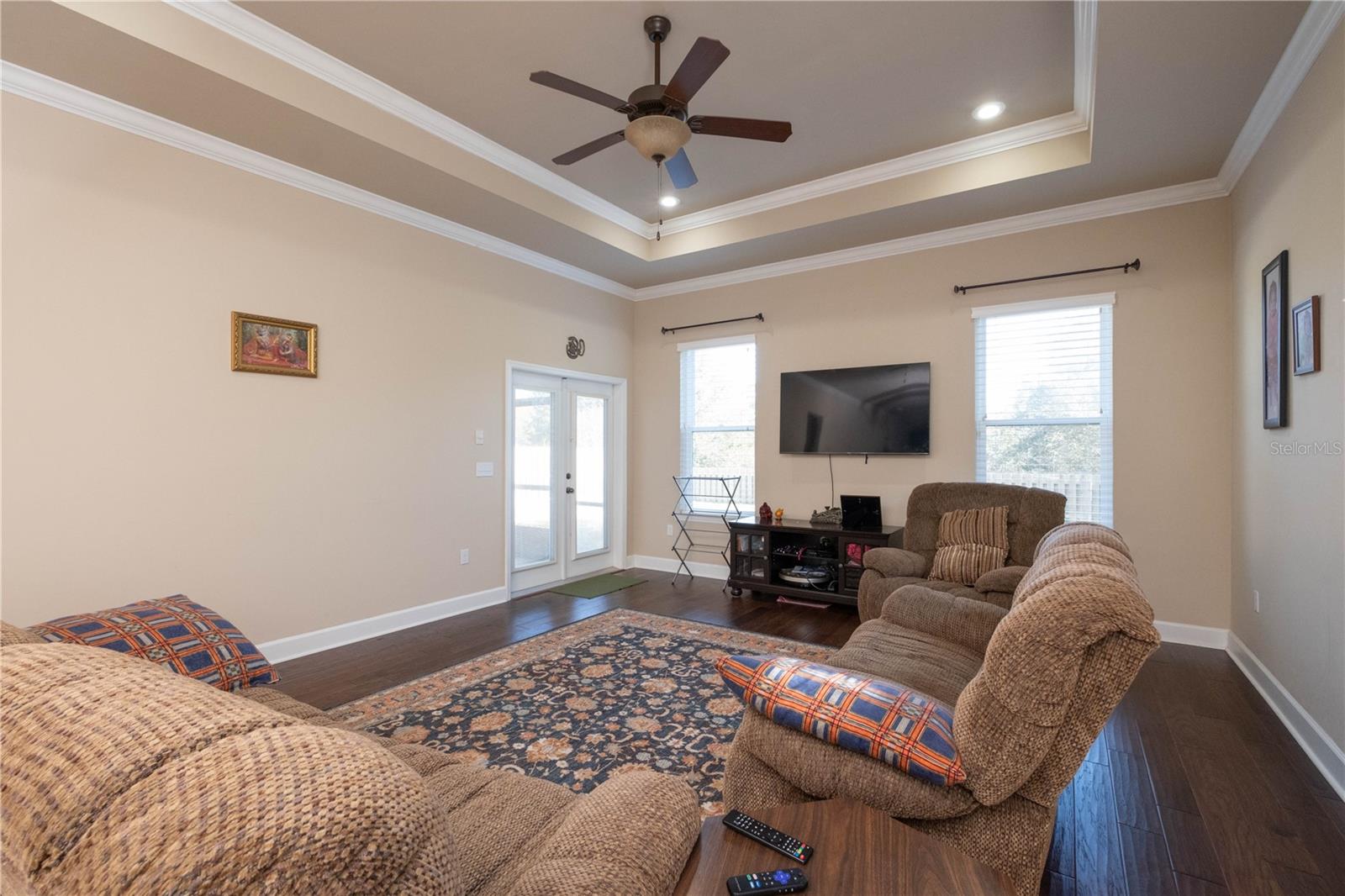 Improved the price on this USDA ELIGIBLE. Gorgeous LIKE NEW home in the popular SW community of Longleaf Village! This spacious 3 BR, 2 BA PLUS Study and Formal Dining room offers large rooms throughout and plenty of space for entertaining. Loaded with upgrades, the home boasts 10 foot ceilings, tray ceilings, CROWN, HAND SCRAPED WOOD FLOORS (NO CARPET IN THE HOUSE) STAINLESS Steel appliances, GRANITE and much more! The Master has a HUGE walk in closet, walk in glass shower and his & hers vanities with granite. The guest rooms were expanded from the original plan and are down a private hallway. A "chef''s kitchen" with granite, large island, long bar top area for seating, walk-in pantry, GAS Range and Stainless Steel Appliances. The screened lanai overlooks a large manicured yard backing common area for privacy. Longleaf''s amenities include beach entry pool, fitness, tennis, b-ball, clubhouse and playground, and all front yard maintenance included!