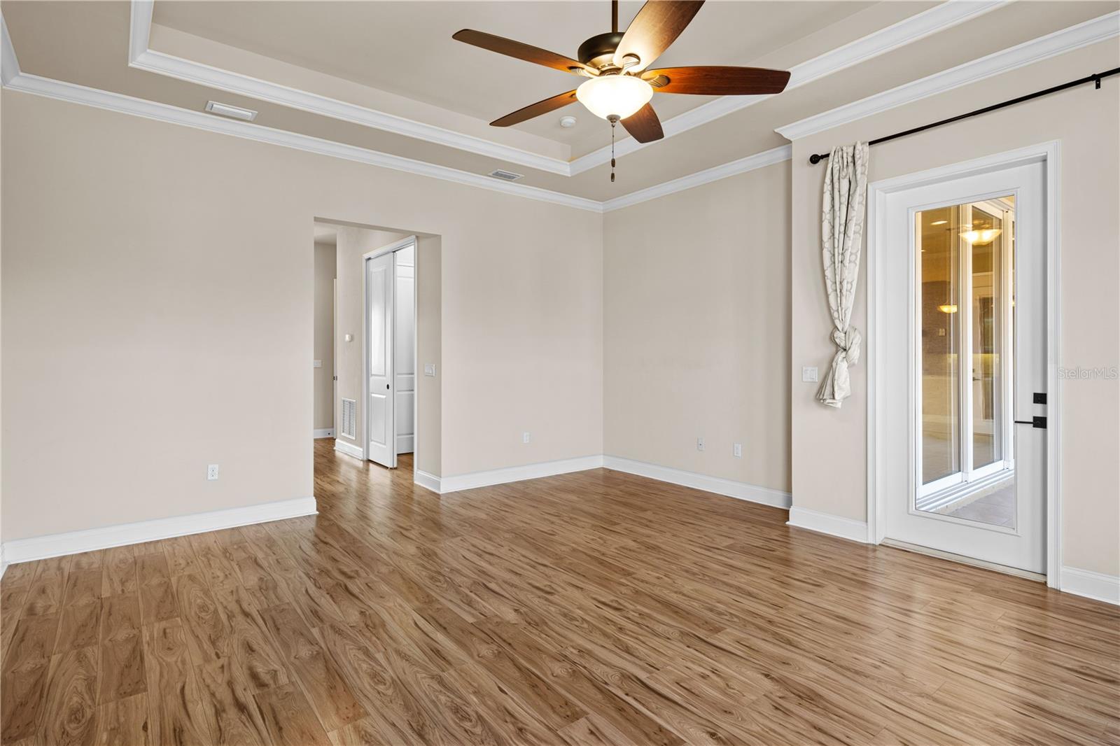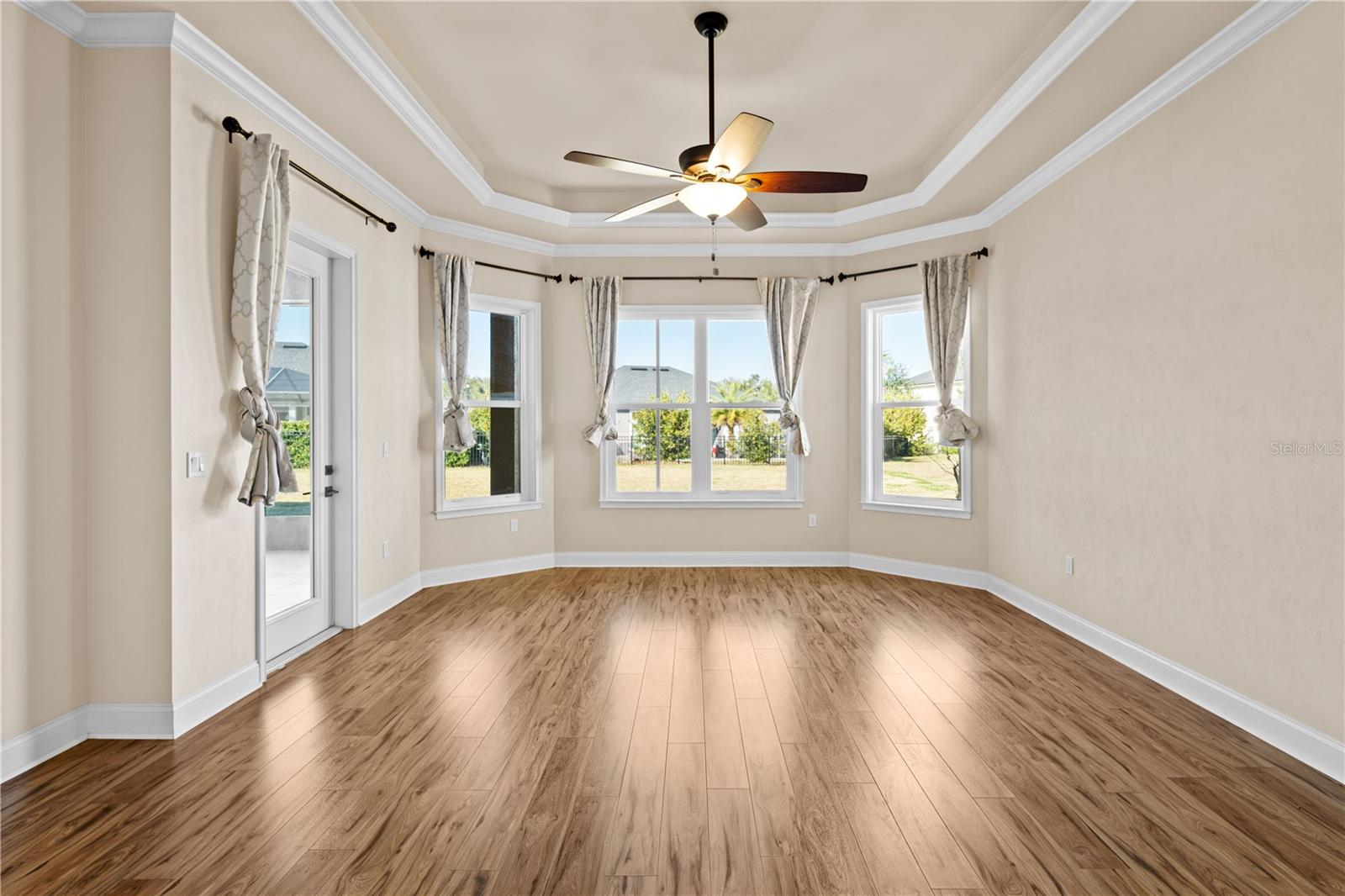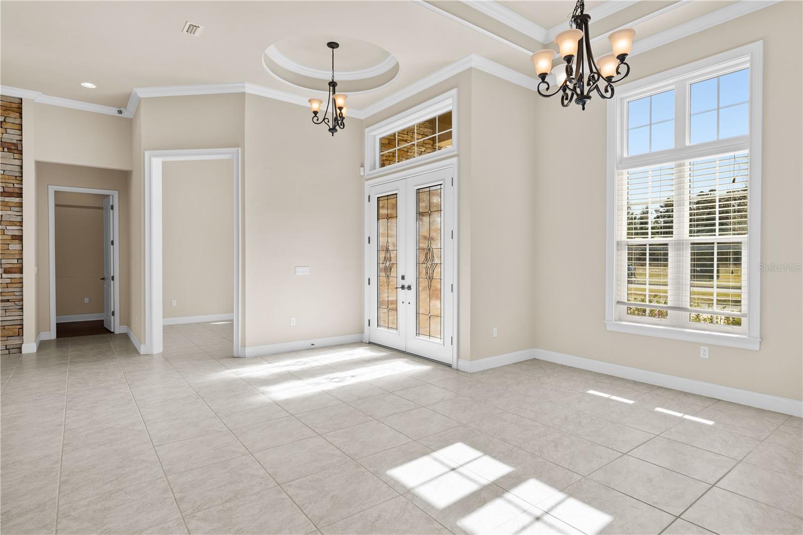 Welcome to the epitome of luxury living crafted by ICI Home, where elegance meets modern sophistication. This stunning 4-bedroom, 3-bathroom plus a big-size office/den residence boasts unparalleled craftsmanship and impeccable design, offering comfort and style. When you step inside, the spacious living area is adorned with high tray ceilings, crown molding, and ample lighting, creating an ambiance of sophistication and warmth, effortlessly transitioning from the elegant formal dining room to the inviting family room for gatherings with family and friends. The gourmet kitchen is equipped with top-of-the-line appliances, custom cabinetry, and granite countertops. A center island provides ample space for meal preparation, while a breakfast nook overlooking the lush backyard offers the perfect spot to enjoy your morning coffee. Retreat to the luxurious master suite, which features a spacious bedroom with a tray ceiling, a spa-like ensuite bathroom complete with dual vanities, a soaking tub, and a walk-in shower. Three additional bedrooms bring comfort and privacy for family members or guests. Luxury wood flooring covers all bedrooms and the living room/ kitchen/wet space/ office are covered by tiles. No Carpet! Outside, the expansive patio is an entertainer's paradise, with plenty of space for dining, lounging, and enjoying the Florida sunshine. The premium lot with room for a pool (already wired). With luxurious amenities, unparalleled craftsmanship, and a prime location in a community, this home offers the ultimate in upscale living. Experience the height of luxury and make this exquisite residence your own. The view out to the large covered lanai brings in plenty of green space in the backyard. A functional utility/laundry room is located near the garage for all your storage needs with a sink. Oakmont brings stylish, resort-style living to Gainesville balanced with nature throughout 550 acres, playground areas, walking paths, turtle reservation, and live oak trees throughout the landscape, Oakmont offers residents a sense of unspoiled natural beauty. For those who treasure green space and cherish an active lifestyle and the great outdoors, Oakmont offers residents a perfect combination of amenities. Easy access to the UF campus, AV and I-75, Haile Plantation, farmer market, and lots of shopping centers.