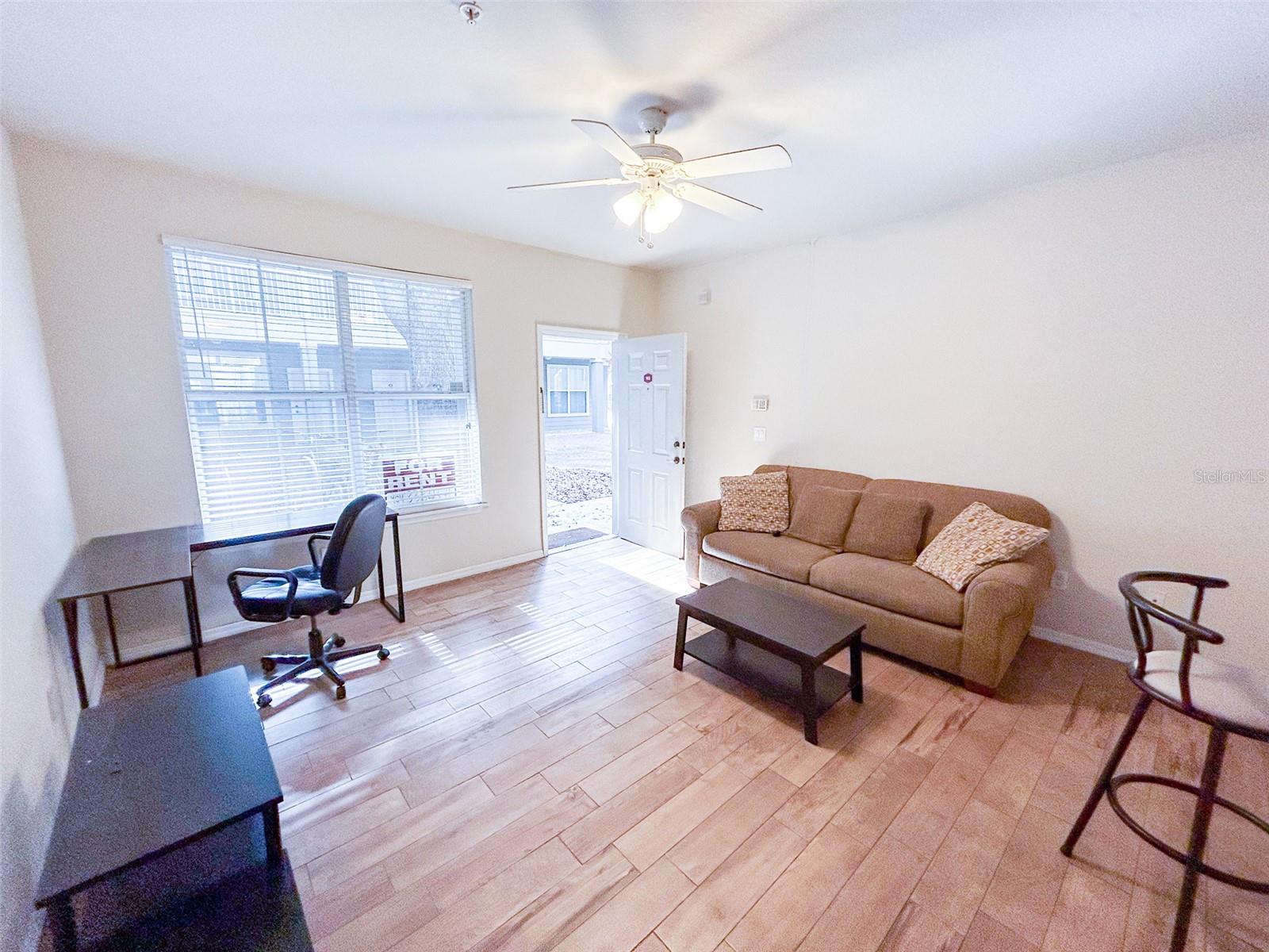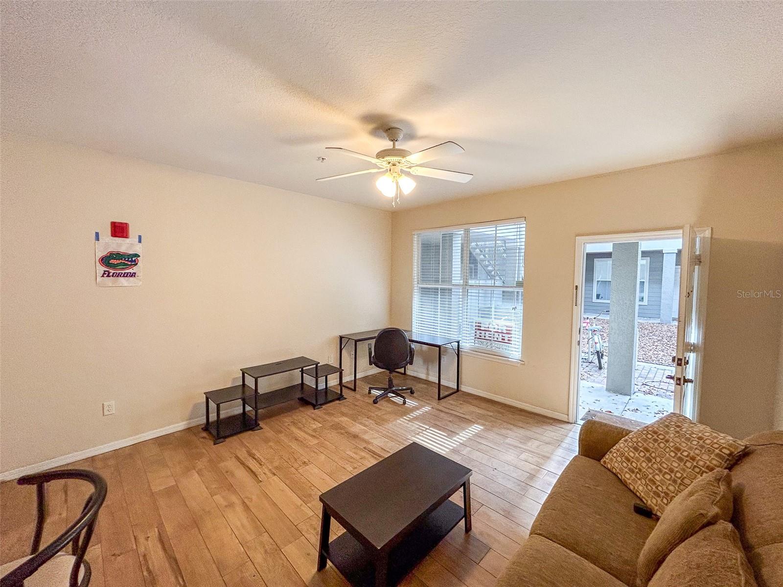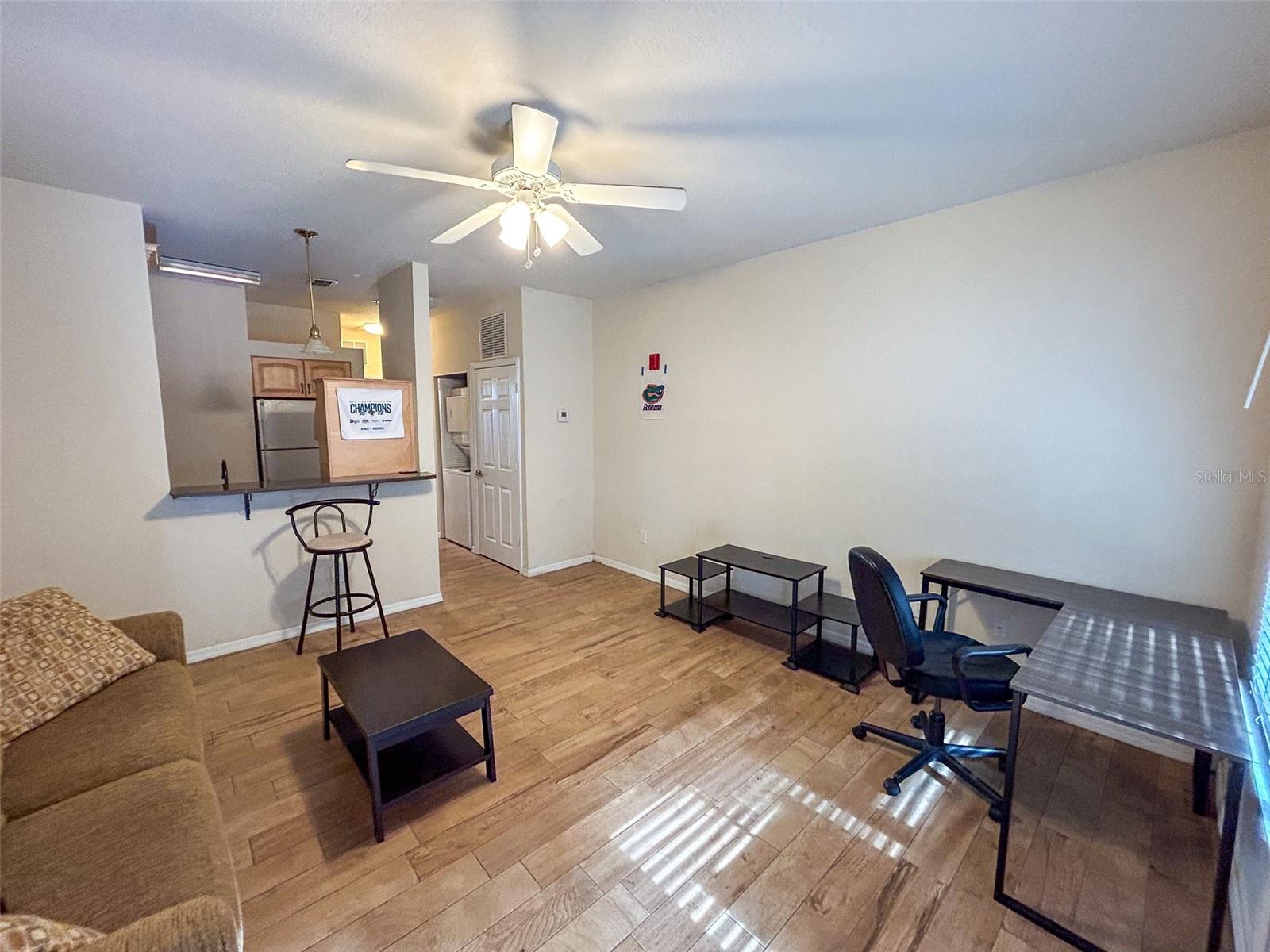 INVESTOR ALERT! Leased through July 2025 for $1300/month. This fully furnished 1-bedroom condo, conveniently situated on the ground floor, offers an exceptional living experience just steps away from UF classes, Sorority Row, and Shands Hospital in the serene Taylor Square community. Step inside to discover a thoughtfully designed floor plan boasting a spacious combined living room and dining area, complemented by upgraded wood-look tile flooring throughout (no carpet!), and high ceilings. The U-shaped kitchen with elevated breakfast bar is a highlight, featuring wood cabinetry and granite countertops for a touch of elegance. Recent upgrades include a brand-new Trane AC unit installed in 2022, ensuring optimal comfort year-round and a walk-in closet with a modern closet system. The condo building's roofs have been replaced, adding an extra layer of security to your investment. For added convenience, the unit comes with a parking decal for the on-site parking lot. Leased through July 2025 for $1300/month.