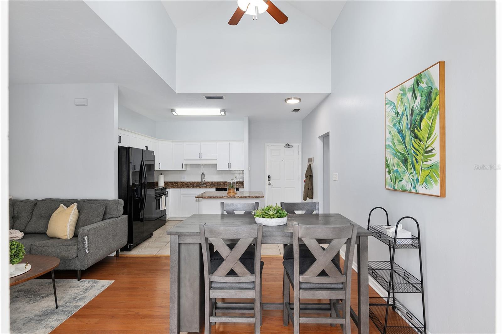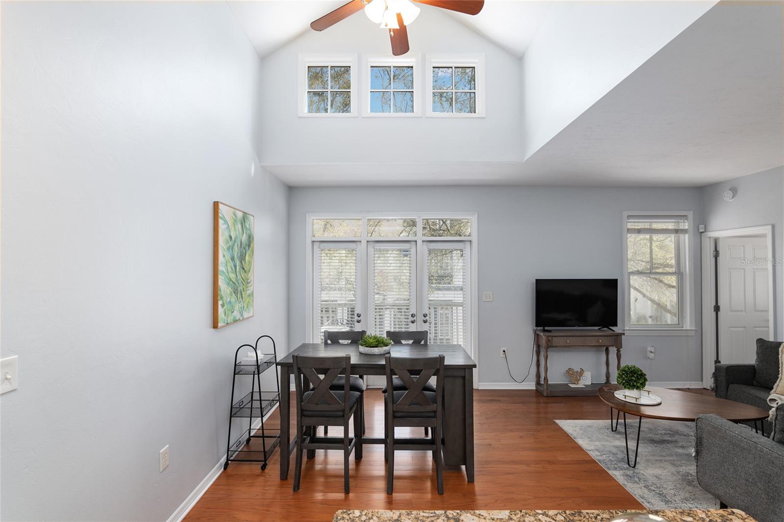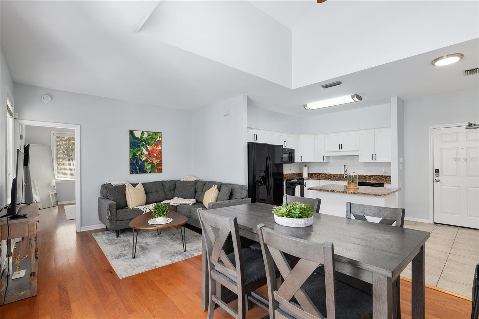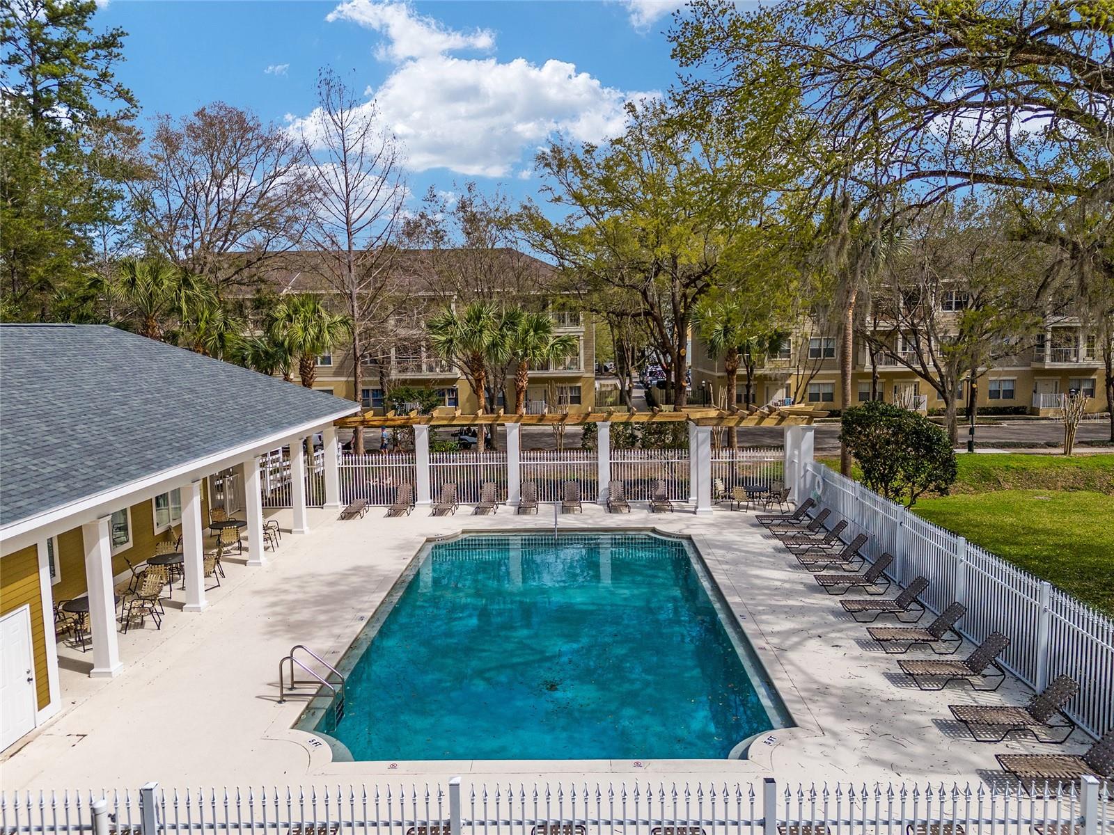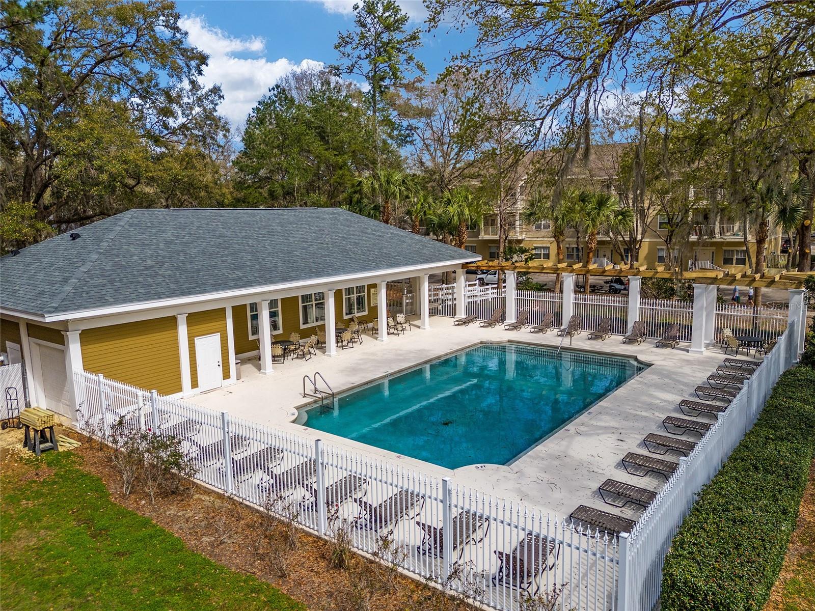 Welcome to this bright and airy condo in the sought-after Haile Village community. 3 Bedroom 2 Bathroom with 1,269 SFT on the second floor. Vaulted ceilings and an abundance of windows flood the open floor plan with natural light, creating a warm and inviting atmosphere. The updated kitchen features modern appliances and ample counter space, perfect for preparing meals and entertaining guests. Large bedrooms offer plenty of space for relaxation, while the oversized walk-in closets and separate laundry room, with washer and dryer provide ample storage options. CONDO OMES FULLY FURNISHED! Step outside to the balcony and enjoy your morning coffee or unwind in the evenings with peaceful views. Residents of this community have access to a sparkling pool and a well-equipped fitness center, and ample parking in back parking lot and streets adding to the appeal of this fantastic property. Don't miss out on the opportunity to make this stunning condo your new home!