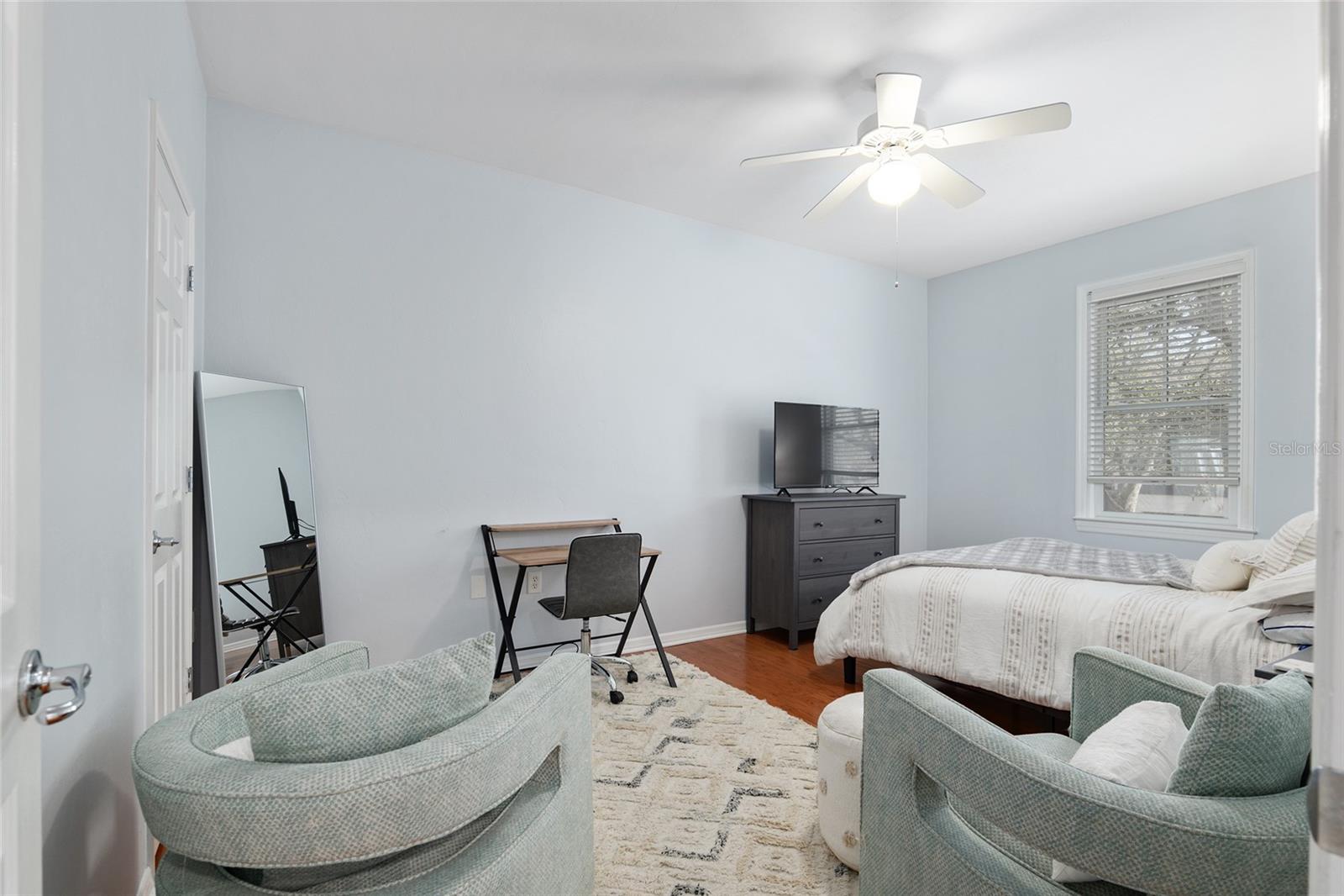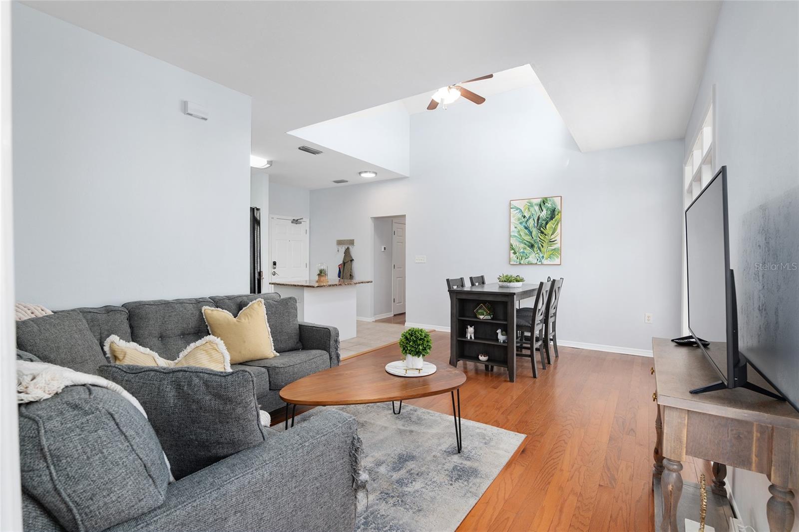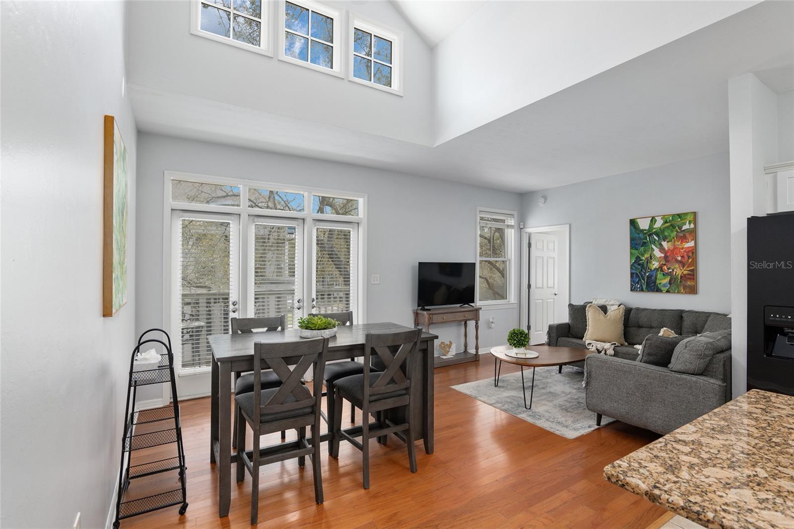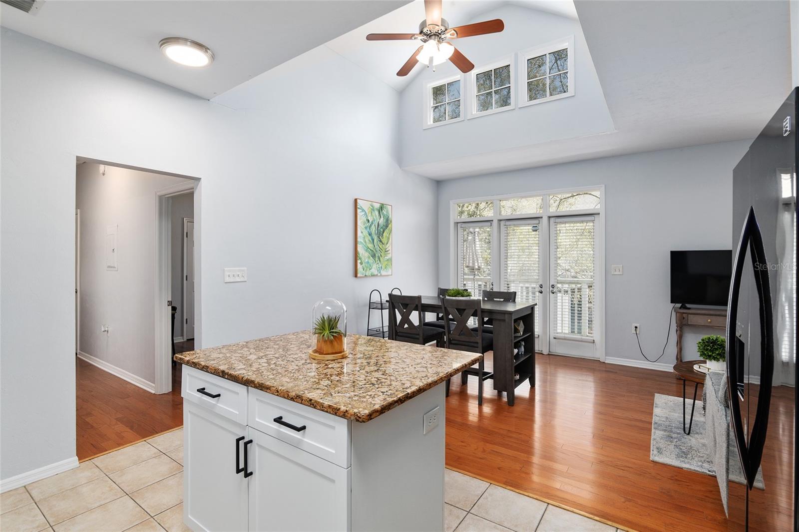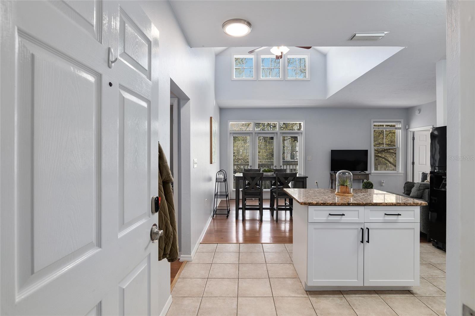 Welcome to this bright and airy condo in the sought-after Haile Village community. 3 Bedroom 2 Bathroom with 1,269 SFT on the second floor. Vaulted ceilings and an abundance of windows flood the open floor plan with natural light, creating a warm and inviting atmosphere. The updated kitchen features modern appliances and ample counter space, perfect for preparing meals and entertaining guests. Large bedrooms offer plenty of space for relaxation, while the oversized walk-in closets and separate laundry room, with washer and dryer provide ample storage options. CONDO OMES FULLY FURNISHED! Step outside to the balcony and enjoy your morning coffee or unwind in the evenings with peaceful views. Residents of this community have access to a sparkling pool and a well-equipped fitness center, and ample parking in back parking lot and streets adding to the appeal of this fantastic property. Don't miss out on the opportunity to make this stunning condo your new home!
