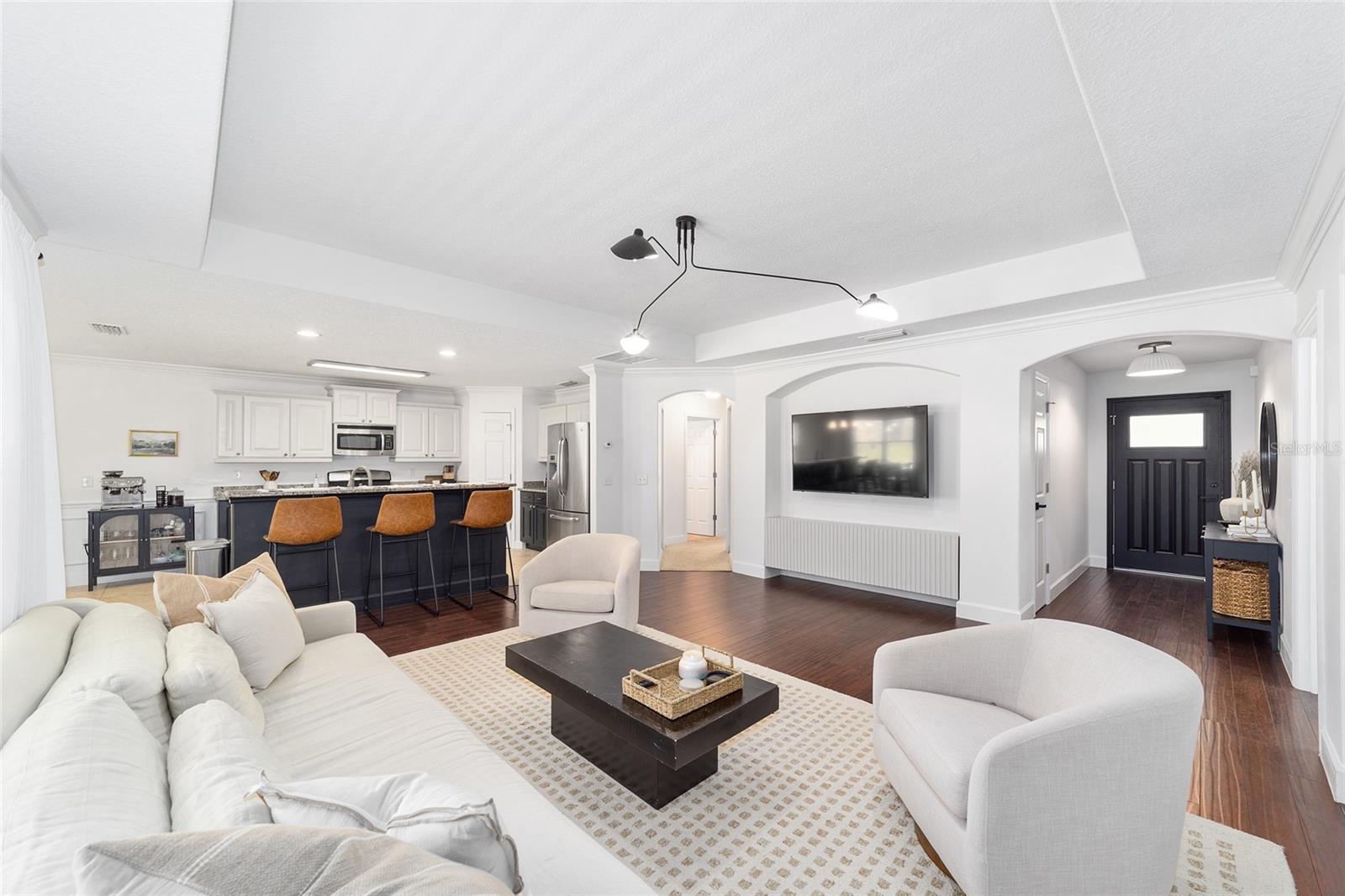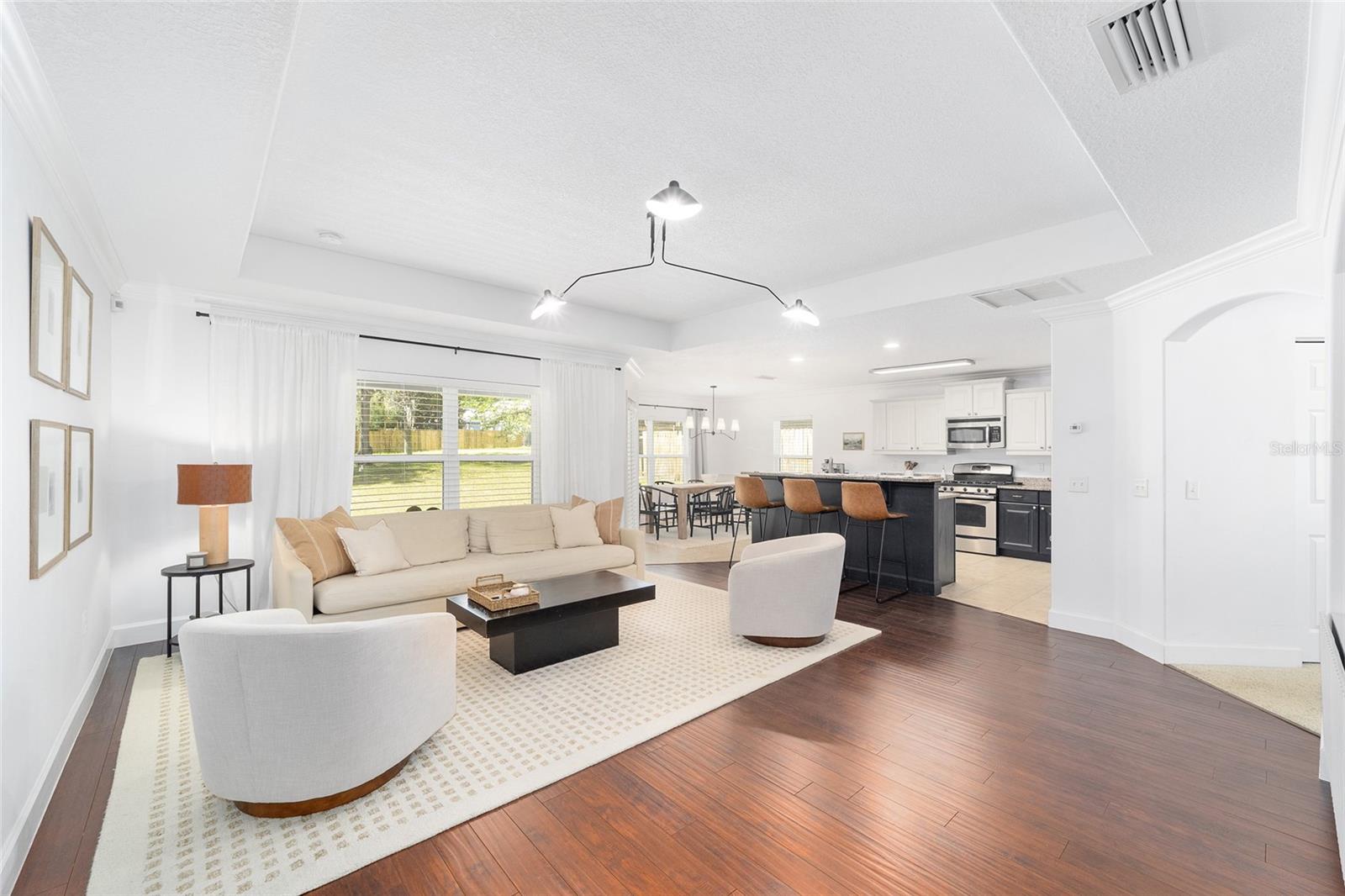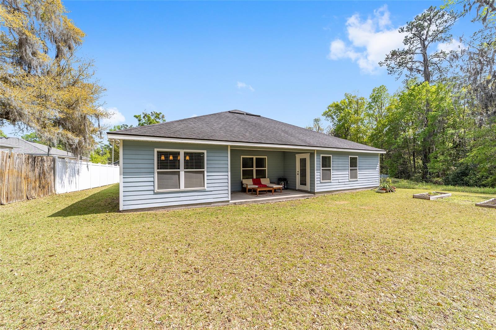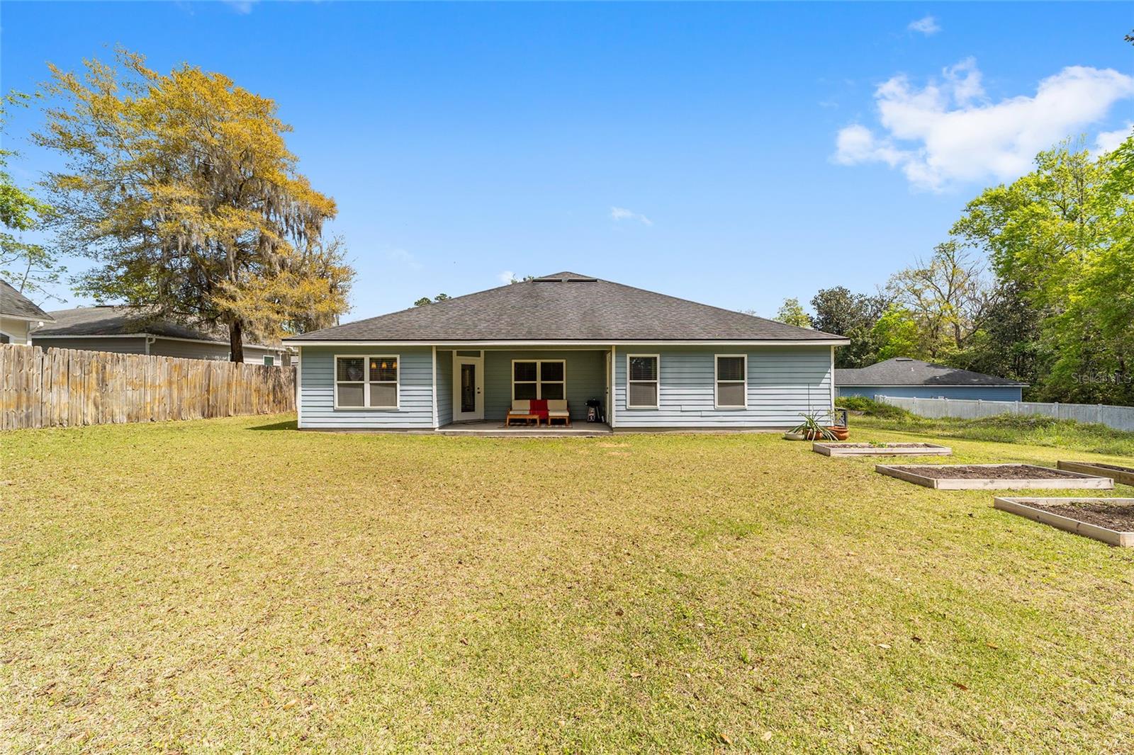 This home , built in 2012, has been so well cared for it gives the feeling it was just built. As you enter you are aware of the many special touches the owners have enhanced this home with.- luxury crown molding, granite countertops in the kitchen and bathrooms, beautiful cabinetry, wainscoting in the dining area, tray ceilings in the living room and owner’s suite, contemporary light fixtures, and door handles. This home is filled with an abundance of natural light through thoughtfully placed windows. An open floor plan lends itself to a perfect space for entertaining. The master bath pampers you with a walk-in-shower and deep soak tub with jets and double vanities. You will most certainly enjoy the oversized walk in closet. A quick step outside the door exiting to the back porch from the master bedroom opens to an amazing back yard large enough for any of your dreams including installing a pool. In this huge back yard are above ground gardening spaces just waiting for your favorite vegetables or herbs. Probably one of the best features of this home is it location, nestled within the central part of Gainesville. The home situated at the end of the culdesac offers peaceful privacy. Enjoy the convenience of close shopping and being just minutes to UF and fine dining. We welcome you to come experience this truly remarkable home.