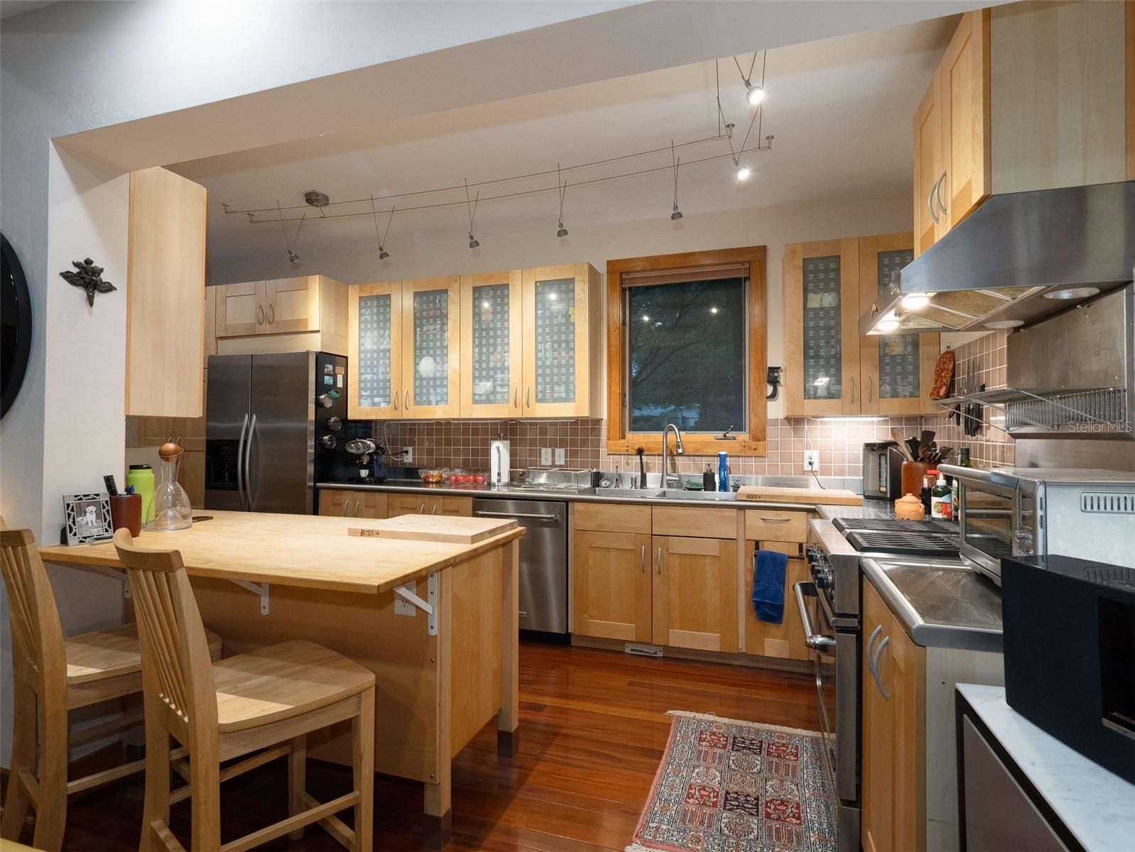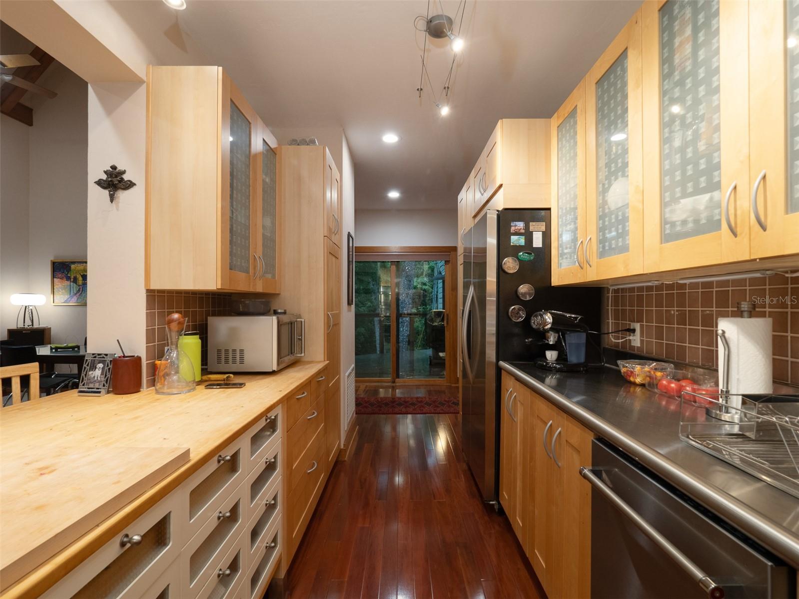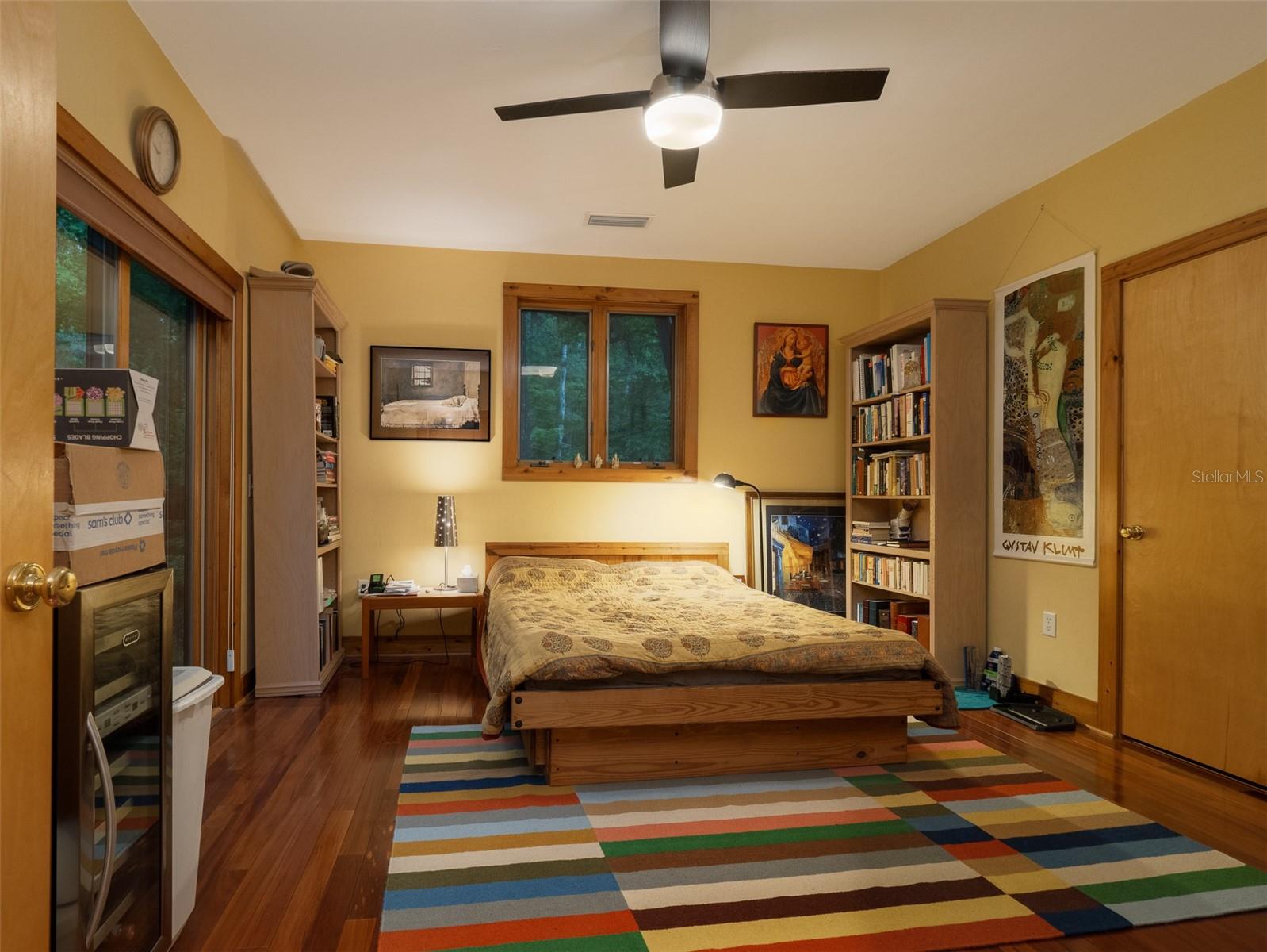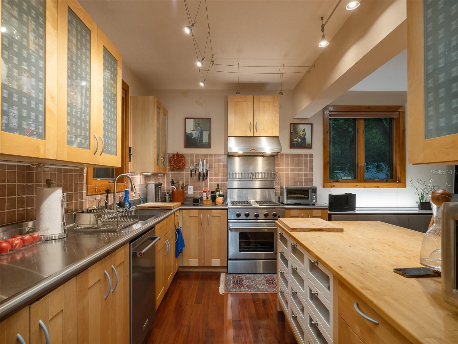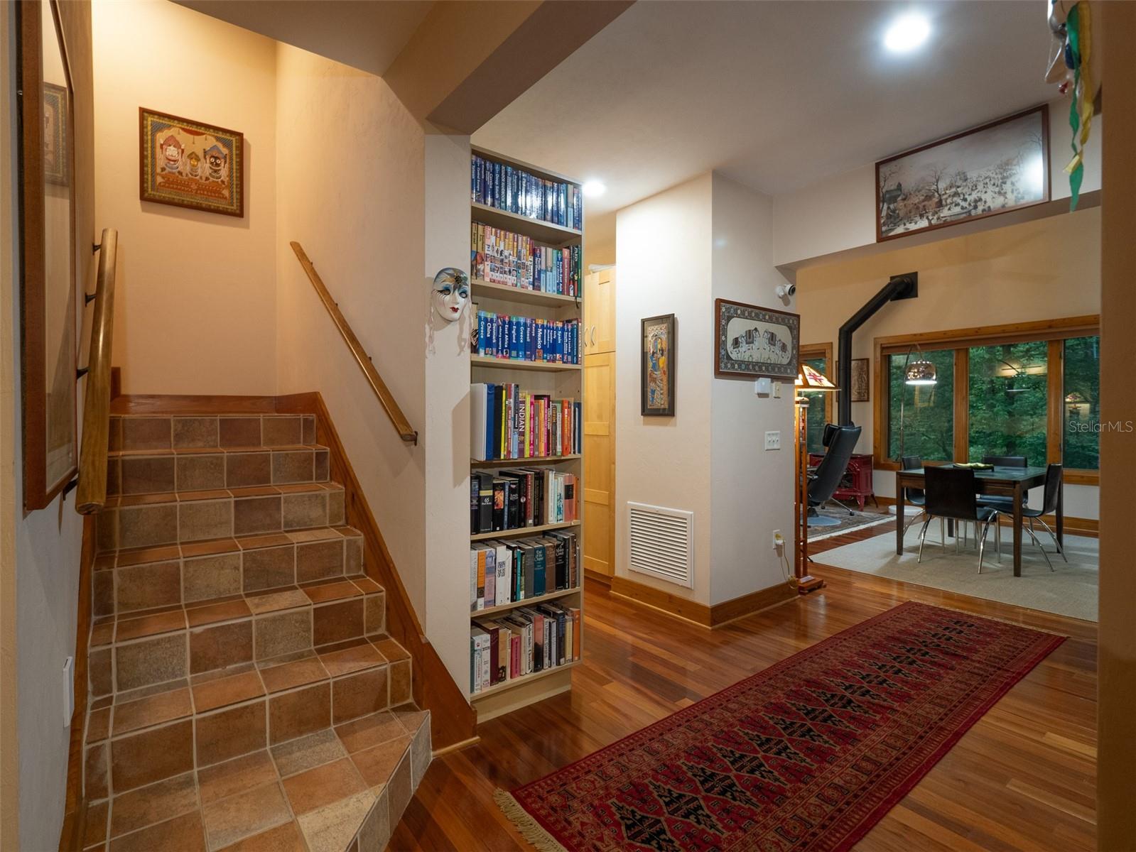 Back on the market with a reduced price. This stunning, architect-designed, custom-built, tri-level home sits on a hill with beautiful views of the woods and the creek that runs through the popular neighborhood of Brywood. The ground floor houses a two-car garage and loads of storage, with a space perfect for a wine vault! The second floor has a bedroom and bathroom off the entrance hall and then you enter the centerpiece of the home, the open Living Room and Dining room with a Vermont Castings wood-burning stove. You will be awed by the cathedral ceilings and walls of glass that shower the interior of this room with light. A gourmet Galley Kitchen opens to the Living Room with its custom-designed, stainless-steel countertops, sleek cabinets and two large sinks. The Gas Range with a vented hood makes it a joy to prepare wonderful meals that can be eaten on the multiple decks and balconies on those lovely Florida evenings. Gorgeous Brazilian hardwood floors are throughout this very special home. No carpet! The third floor has the Primary Bedroom and Bathroom and a 3rd loft bedroom located off a high balcony overlooking the living space below. This area also has room for an office. Both bedrooms have private balconies. The inside laundry is also on the top floor. This home was built for efficiency and longevity. The upper part of the home was built with 8-inch-thick walls for rigidity and insulation. Double-paned casement windows and 4-foot overhangs around the house help with energy efficiency, and a 40-year metal roof, whole house vacuum and a 4-year-old 22KW Generator offer worry free living. Close to UF and downtown, come see this exceptional home today!