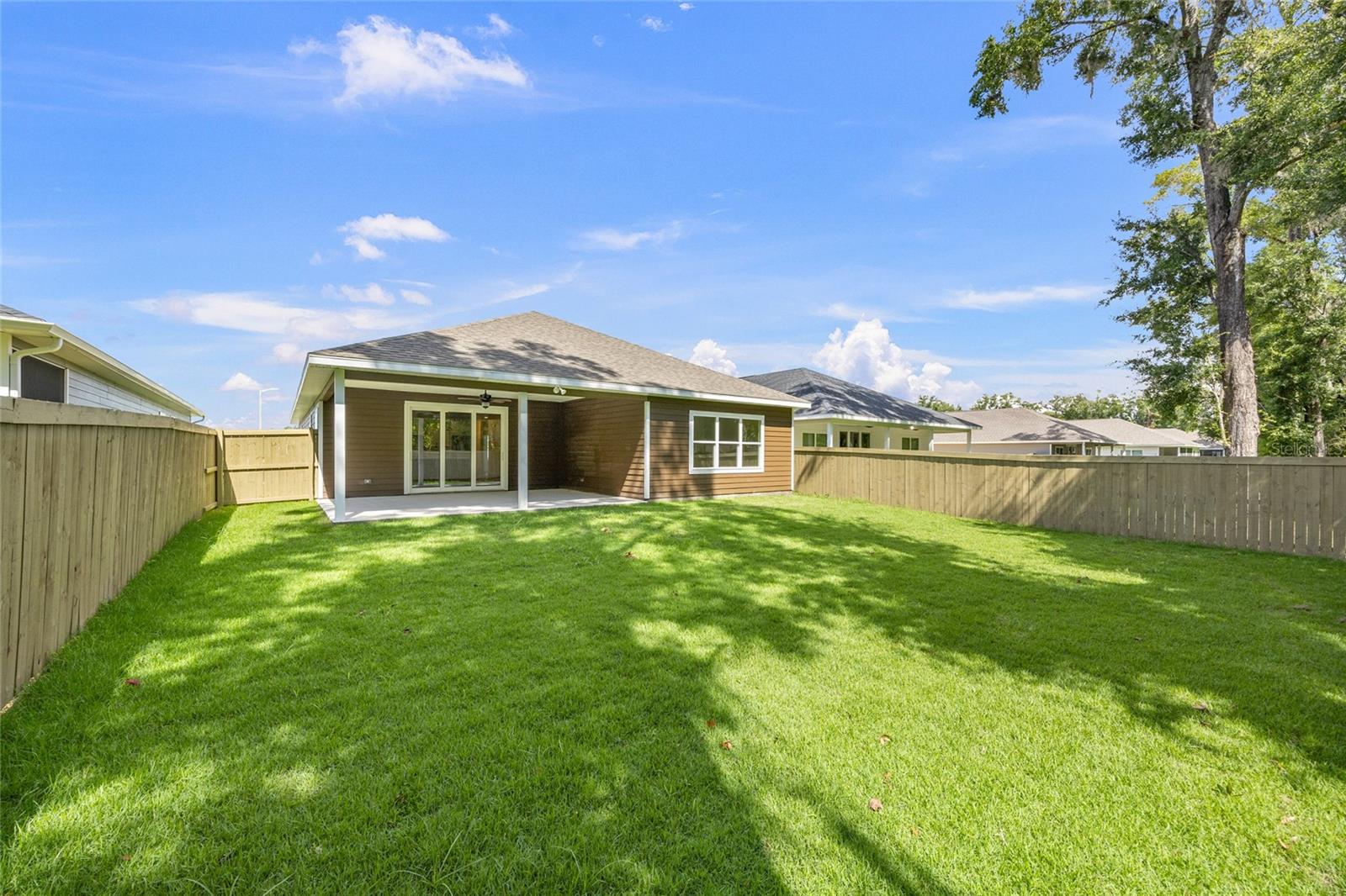 New construction. Fully fenced, extended backyard, Lot 258 in Grand Oaks, Gainesville, Florida by local builder William Weseman. The "Andrew" floor plan, with 3 bedrooms, plus an additional office/flex room, and 2 bathrooms. Community pool, pavilion and playground. 2.4 miles to HCA North Florida Hospital, 3.2 miles to UF and UF Shands Hospital. Zoned for Chiles Elementary, Ft. Clark Middle, and Buchholz High Schools. Design selections completed. Stainless steel appliance package includes FRIDGE, slide-in electric range, microwave, and dishwasher. Wood-look LVP and ceramic tile flooring - no carpet. Local builder care and warranty, William Weseman Construction provides 1 full year of warranty coverage on systems, workmanship and materials. All eligible manufacturers, equipment and appliance warranties also transfer to the homeowner. Photos are of the actual completed home.