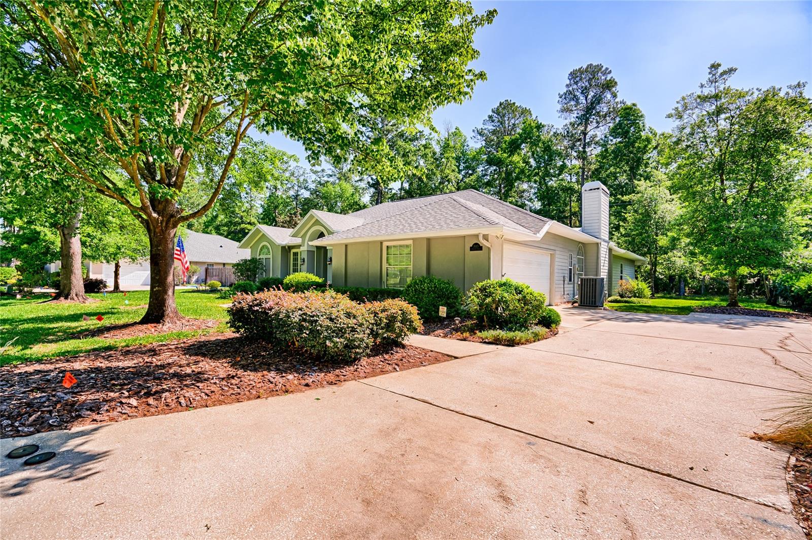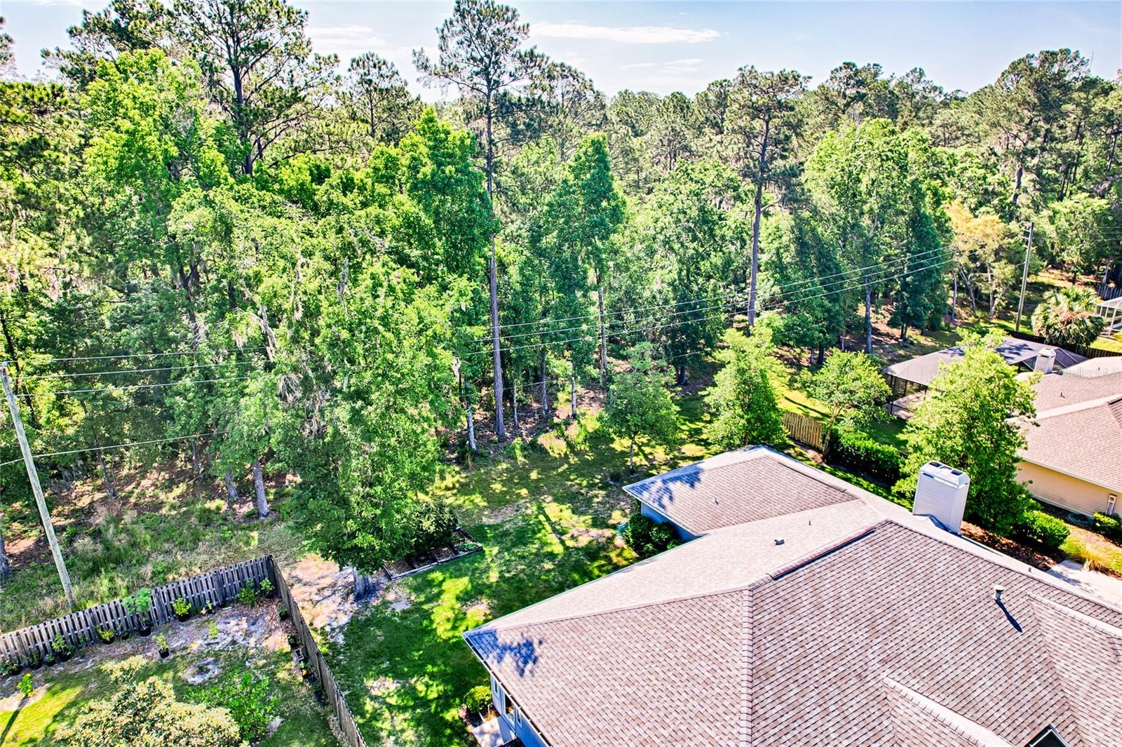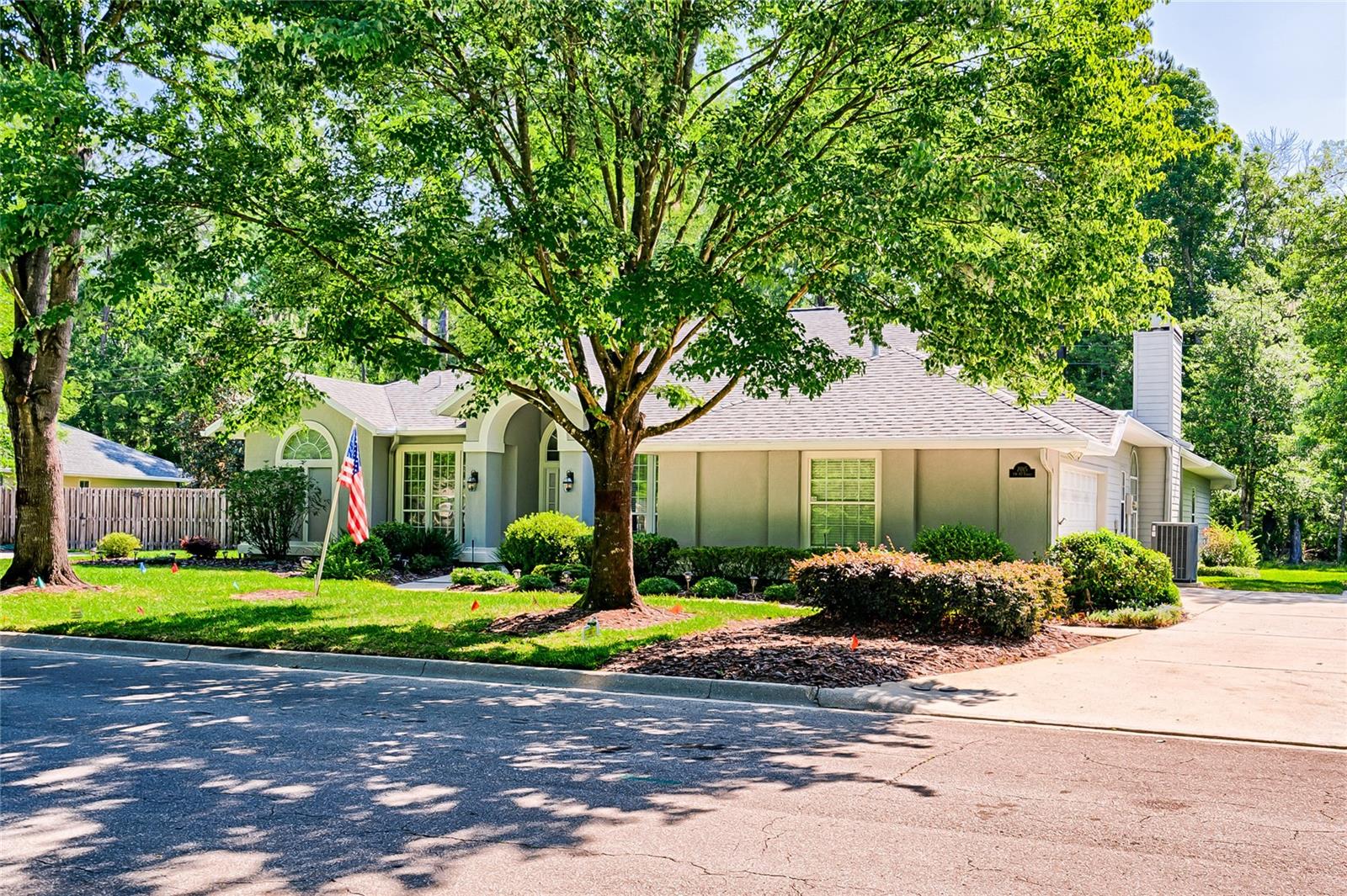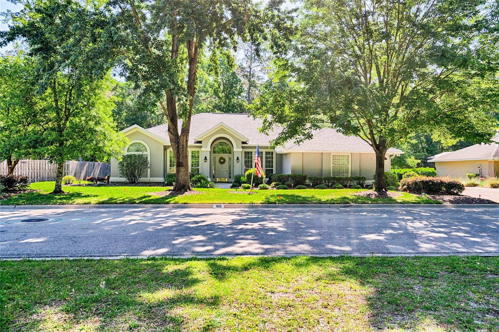 Discover the tranquility of Sterling Place in this 2,960 sq ft spacious 4-bedroom, 2.5-bath home with an office, on a peaceful cul-de-sac. As you enter, the tiled foyer welcomes you into a formal living room with hardwood floors and French doors that open to an inviting enclosed porch. To the right, the dining room with crown molding and hardwood floors, while the office to the left features built-in shelves and a pocket door leading to the primary bedroom. The primary suite has hardwood floors, French doors to the back porch, two closets (including a walk-in), and an en-suite bathroom with dual sinks, a jetted tub, and a walk-in shower. On the opposite side of the home, the well-appointed kitchen features quartz countertops, stainless steel appliances, and a double sink. The adjacent eat-in area has French doors opening to the back porch for easy indoor-outdoor living. The family room has a wood-burning fireplace, perfect for gatherings. Three additional bedrooms share a full bathroom, offering space and privacy for family or guests. The utility room, located off the garage hallway, comes complete with washer/dryer hookups, storage, a utility sink, and an extra toilet for added convenience. Outside, the fully enclosed back porch provides a peaceful spot to enjoy views of the San Felasco Preserve. Additional features include two water meters (house and irrigation), a security system, and zoning for top-rated schools—Talbot Elementary, Ft. Clarke Middle, and Gainesville High. Ideally situated near UF, Shands, NFRMC, Progress Park, San Felasco State Park, and Hunter’s Crossing shopping and dining.