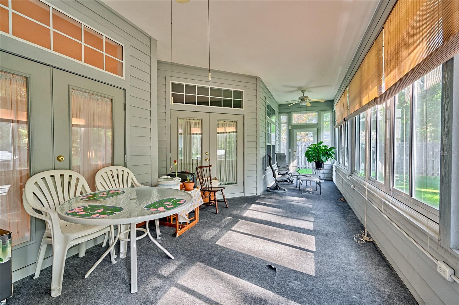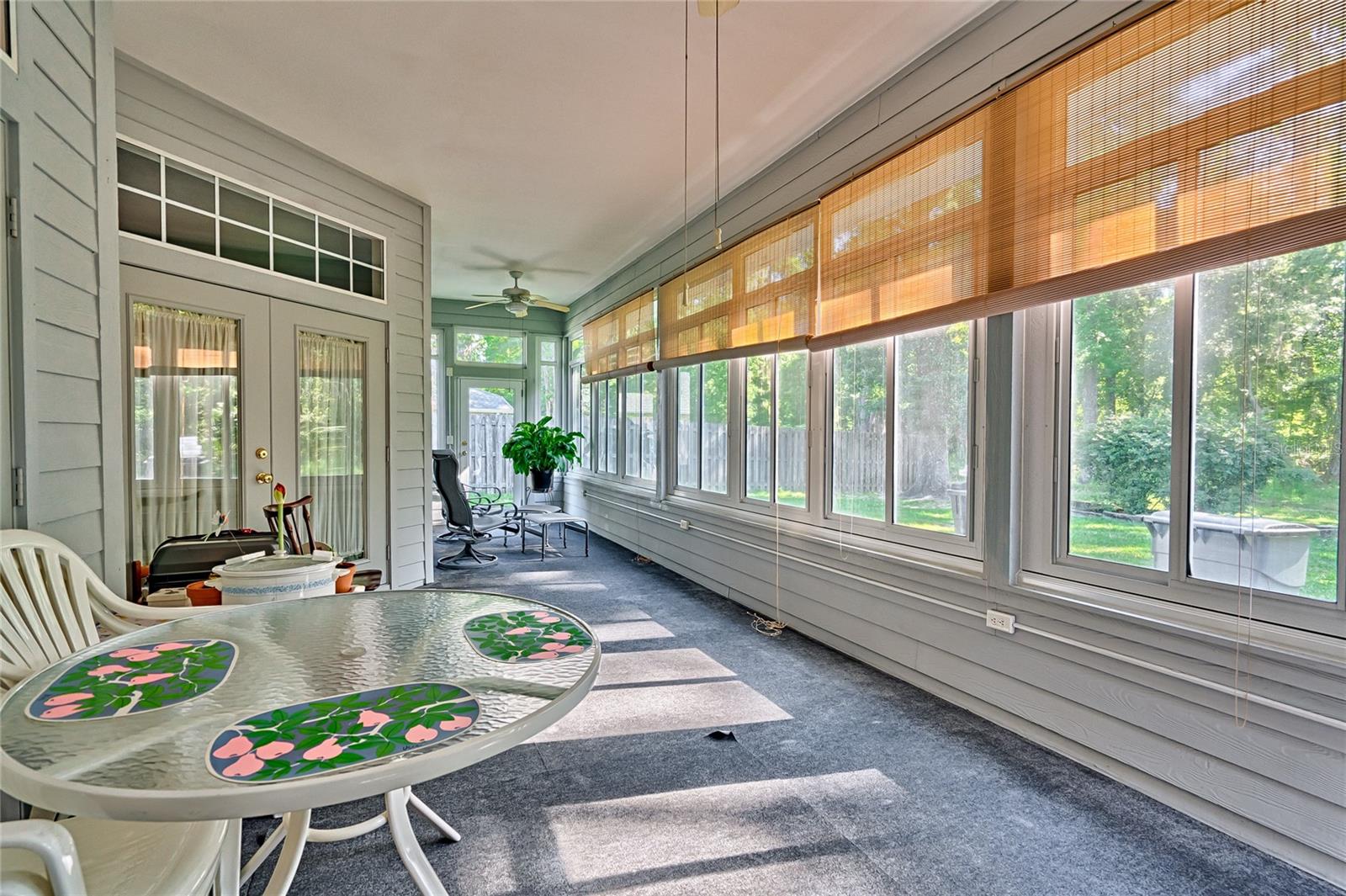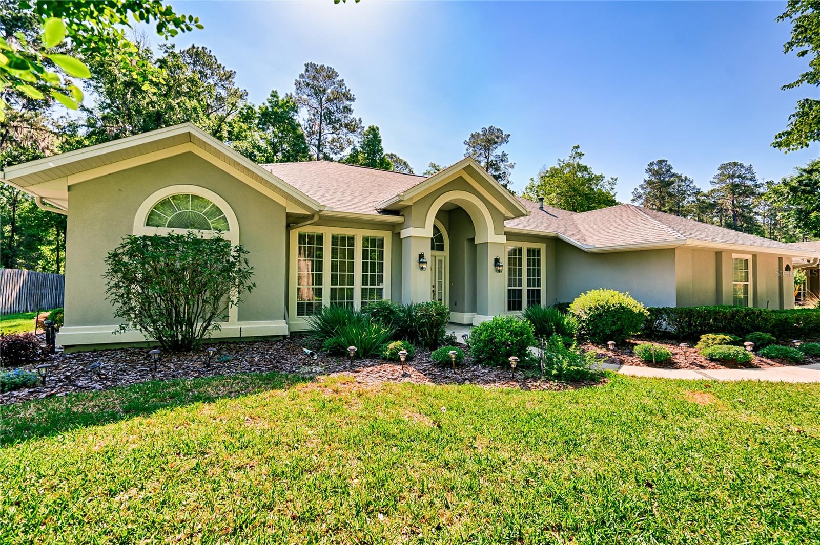 Discover the tranquility of Sterling Place in this 2,960 sq ft spacious 4-bedroom, 2.5-bath home with an office, on a peaceful cul-de-sac. As you enter, the tiled foyer welcomes you into a formal living room with hardwood floors and French doors that open to an inviting enclosed porch. To the right, the dining room with crown molding and hardwood floors, while the office to the left features built-in shelves and a pocket door leading to the primary bedroom. The primary suite has hardwood floors, French doors to the back porch, two closets (including a walk-in), and an en-suite bathroom with dual sinks, a jetted tub, and a walk-in shower. On the opposite side of the home, the well-appointed kitchen features quartz countertops, stainless steel appliances, and a double sink. The adjacent eat-in area has French doors opening to the back porch for easy indoor-outdoor living. The family room has a wood-burning fireplace, perfect for gatherings. Three additional bedrooms share a full bathroom, offering space and privacy for family or guests. The utility room, located off the garage hallway, comes complete with washer/dryer hookups, storage, a utility sink, and an extra toilet for added convenience. Outside, the fully enclosed back porch provides a peaceful spot to enjoy views of the San Felasco Preserve. Additional features include two water meters (house and irrigation), a security system, and zoning for top-rated schools—Talbot Elementary, Ft. Clarke Middle, and Gainesville High. Ideally situated near UF, Shands, NFRMC, Progress Park, San Felasco State Park, and Hunter’s Crossing shopping and dining.