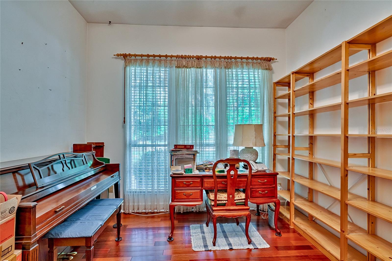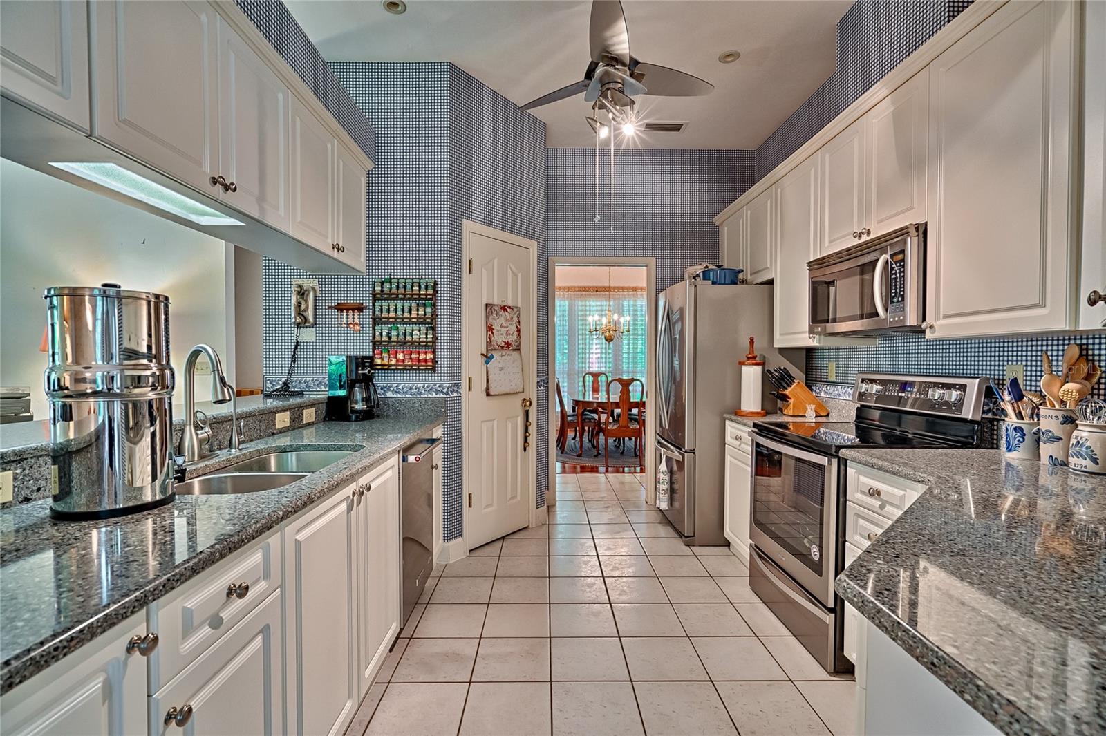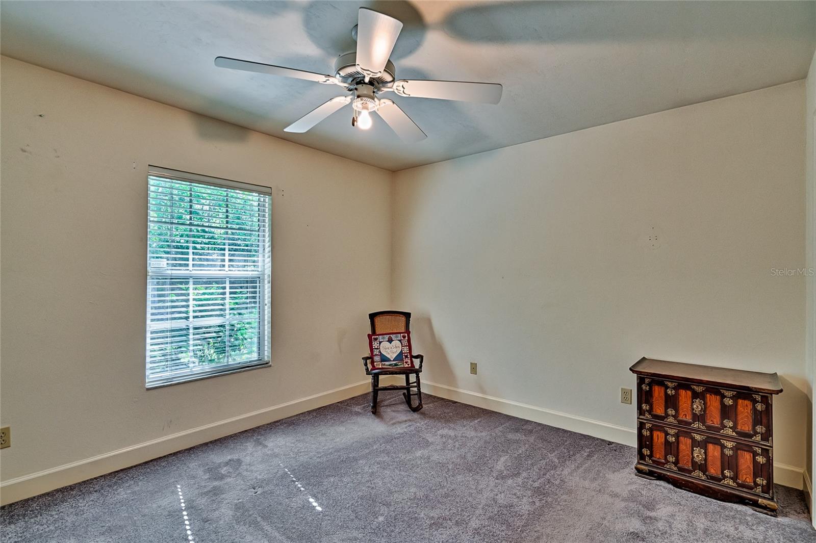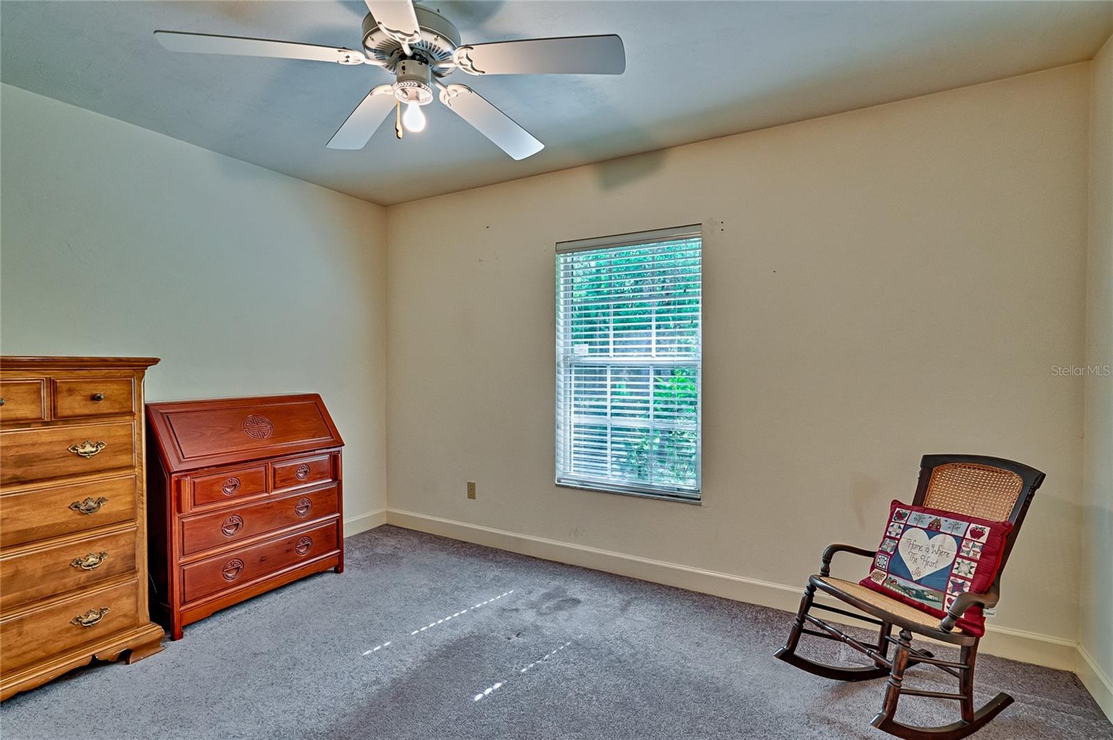 Discover the tranquility of Sterling Place in this 2,960 sq ft spacious 4-bedroom, 2.5-bath home with an office, on a peaceful cul-de-sac. As you enter, the tiled foyer welcomes you into a formal living room with hardwood floors and French doors that open to an inviting enclosed porch. To the right, the dining room with crown molding and hardwood floors, while the office to the left features built-in shelves and a pocket door leading to the primary bedroom. The primary suite has hardwood floors, French doors to the back porch, two closets (including a walk-in), and an en-suite bathroom with dual sinks, a jetted tub, and a walk-in shower. On the opposite side of the home, the well-appointed kitchen features quartz countertops, stainless steel appliances, and a double sink. The adjacent eat-in area has French doors opening to the back porch for easy indoor-outdoor living. The family room has a wood-burning fireplace, perfect for gatherings. Three additional bedrooms share a full bathroom, offering space and privacy for family or guests. The utility room, located off the garage hallway, comes complete with washer/dryer hookups, storage, a utility sink, and an extra toilet for added convenience. Outside, the fully enclosed back porch provides a peaceful spot to enjoy views of the San Felasco Preserve. Additional features include two water meters (house and irrigation), a security system, and zoning for top-rated schools—Talbot Elementary, Ft. Clarke Middle, and Gainesville High. Ideally situated near UF, Shands, NFRMC, Progress Park, San Felasco State Park, and Hunter’s Crossing shopping and dining.