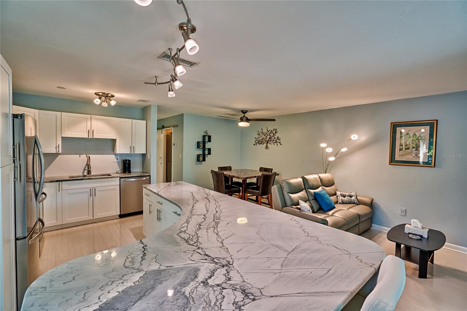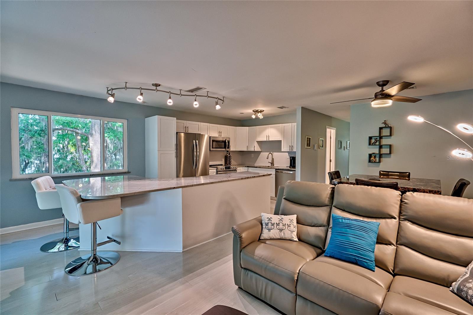 Welcome to Bivens Lake Estate South, where luxury meets tranquility! This beautifully renovated one-bedroom, one-bathroom condo with additional sunroom offers a breathtaking view of Bivens Arm Lake, making it a haven for those seeking both comfort and natural beauty. Ideal location just minutes from UF, Shands, the VA, and more! Step into a move-in-ready sanctuary of about 1,000 sq. ft. boasting a plethora of upgrades. From the moment you enter, you'll be greeted by new windows that flood the space with natural light, accentuating the sleek new flooring throughout. The heart of the home is the stunning chef's kitchen, complete with stainless steel appliances, dazzling granite countertops, an inviting eat-in area, and ample storage space for all your culinary essentials. The open kitchen-living floorplan seamlessly transitions to large windows that frame the picturesque views of Bivens Arm Lake, creating an ambiance of serenity and relaxation. An additional feature is the remote-control operated, color changing LED lights in the kitchen and living room area to create the perfect mood! Whether you're enjoying a quiet evening in or entertaining guests, the scenery will always steal the show. Retreat to the generously sized primary bedroom featuring a large walk-in closet, blackout shades that could offer complete darkness, and a spa-like ensuite bathroom. Adorned with granite counters and a beautifully renovated shower, this oasis provides the perfect escape after a long day. Convenience is key with a washer and dryer included, making laundry a breeze. Take in the captivating views year-round from the enclosed porch, where you can unwind and soak in the beauty of nature at any time. With every detail thoughtfully designed and meticulously executed, this condo offers a lifestyle of unparalleled luxury and comfort. Don't miss your chance to make this stunning lakefront retreat your new home. Bivens Arm Lake is a unique and beautiful environment, which supports a wide diversity of plant and animal life. It's a great backdrop to enjoy a nice kayak ride or take in a lovely sunset! Schedule a showing today and experience the epitome of lakeside living at Bivens Lake Estate South!