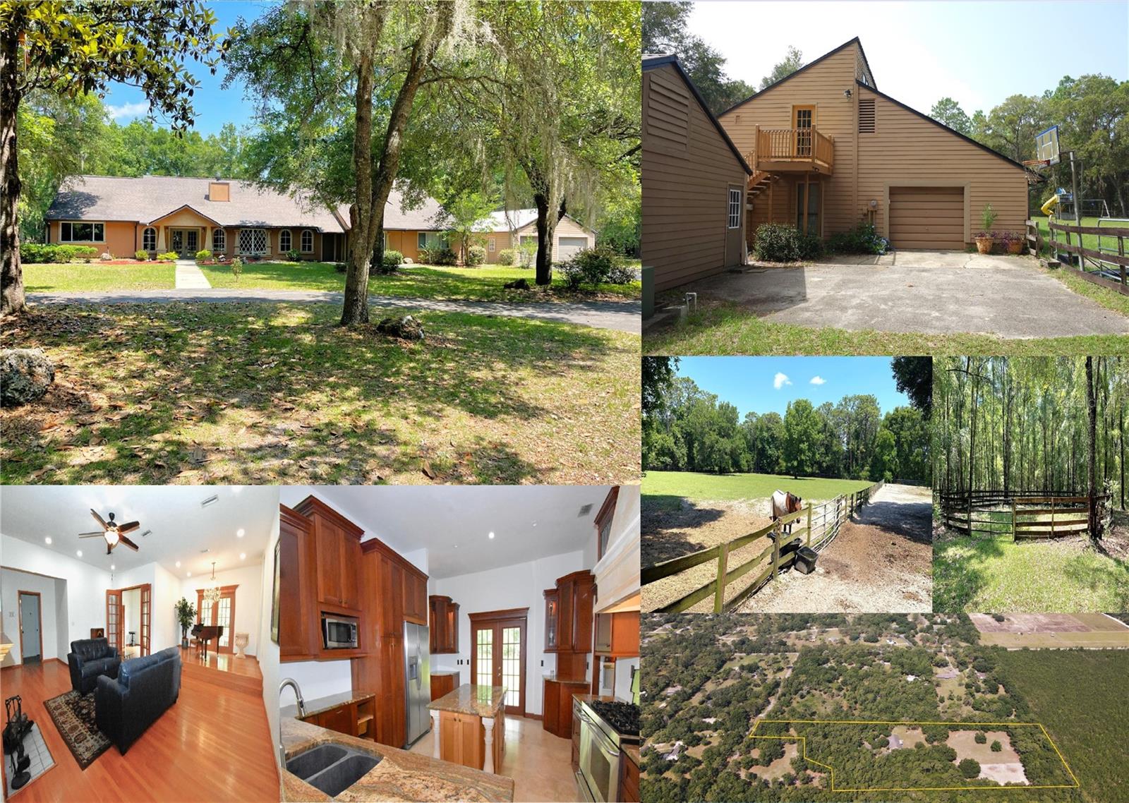 Custom Home in the "Farms of Kanapaha" with Newly Remodeled Master Suite! Owner Financing Available at 5.99 % New paint throughout the home! This exclusive horse neighborhood offers 5 miles of trails. Located on the edge of Gainesville close to everything. The property has multiple paddocks, paved circle drive, main house, 3-stall barn with tack & feed room, wash rack, utility storage, round pen, detached garage, & 2 carports. Tastefully, mixed in among privately wooded acreage with a balance of woods, pasture, & landscaped yard. You can't see your neighbors, it's your own secluded hideaway! Home is custom built with entrance way foyer, large open family & living room that flows to eat in kitchen area with a breakfast bar. Remodeled custom kitchen with high quality wood cabinets, granite countertops, stainless steel appliances, commercial grade gas stove, 2 dishwashers, & custom kitchen island. Breakfast bar separates cabinets from eat in kitchen area large enough for breakfast table. Home has a separate private family (TV) room, work out room, utility room, & large upstairs game room above the garage with separate outside entrance. The 4th bedroom has its own bathroom & can be used as an in-law suite/and/or office. The remodeled master suite is quite large and occupies the entire west side of the house. The other bedrooms are on the east side of the home. The 2nd bedroom has a loft with a secret doorway to the 2nd story game room. Location provides "country living at its best", yet you are just minutes from University of Florida, Santa Fe College, Shands Hospital, North Florida Hospital, downtown Gainesville, I-75, the Airport, & shopping. Truly a must see!
