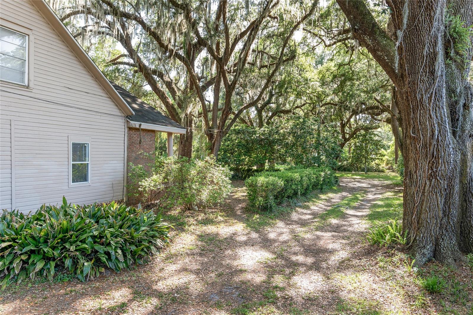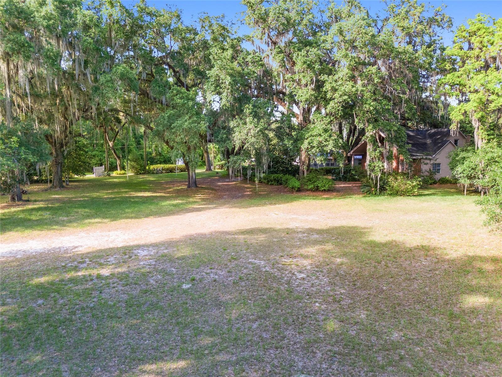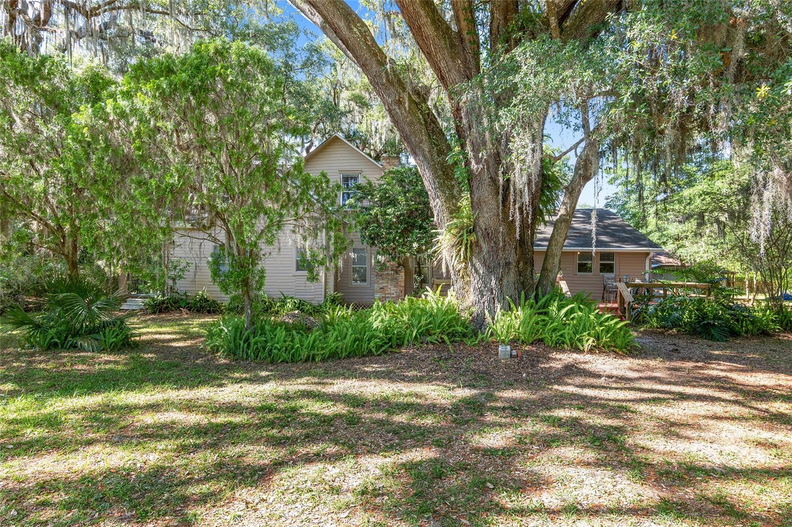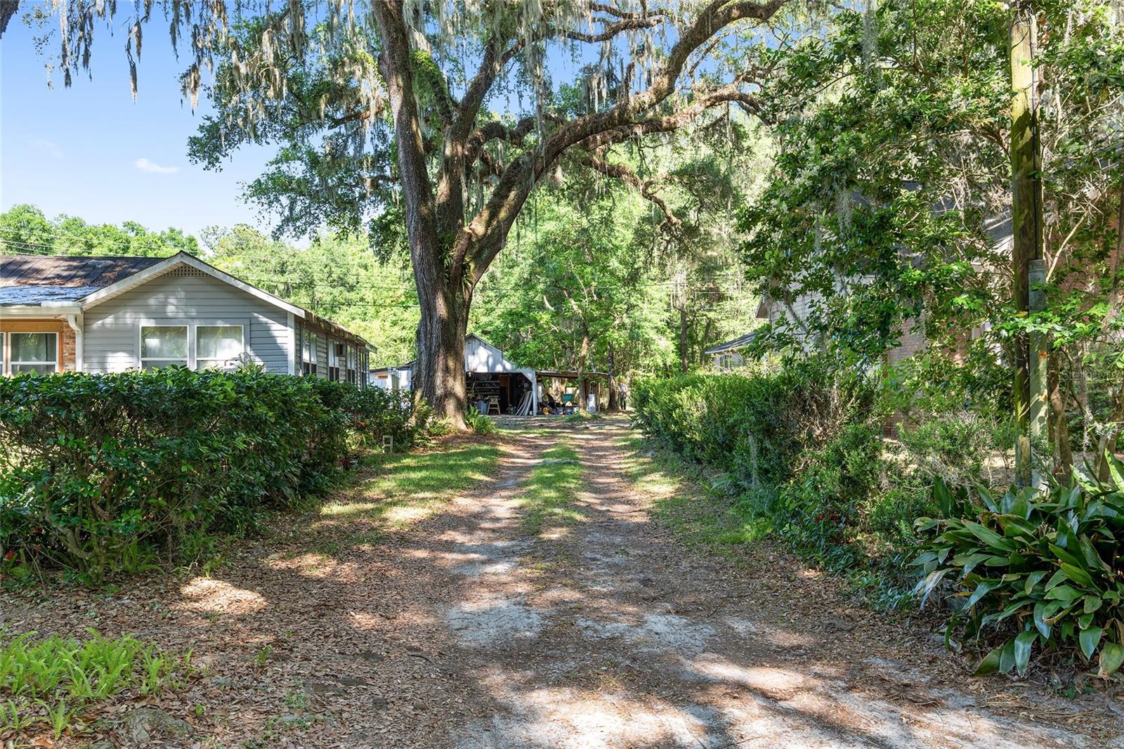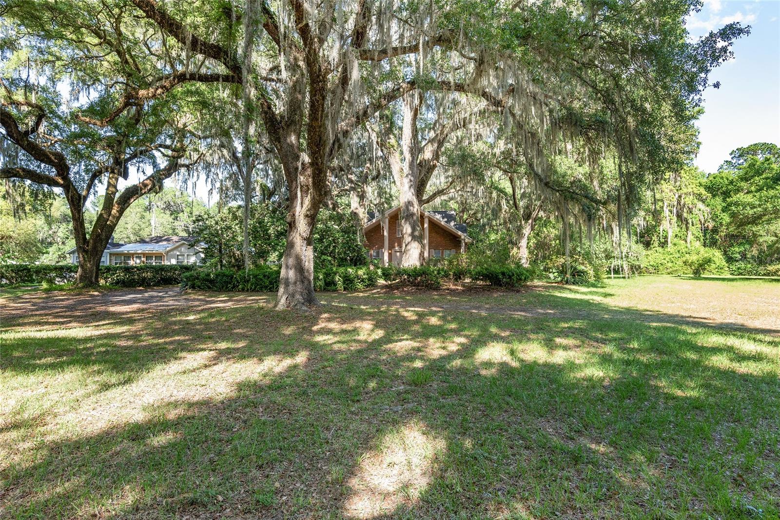 Nestled amid majestic oaks on a generous 2.75 acre parcel of land in Gainesville, this Florida home welcomes you to unwind and savor moments of reflection. Nature enthusiasts will delight in the property's proximity to the Hawthorne Alachua trail and nature parks. Offering accessible opportunities for outdoor recreation, wildlife observation and leisurely strolls. Two-story columns on the front porch evoke a sense of grandeur, complemented by a brick façade and the warmth of wood siding. Stepping through the threshold you are greeted by a spiral staircase that ascends to a second-story loft, creating an enchanting focal point that invites exploration and leading to a versatile space ideal for relaxation or creative endeavors. On each side of the loft is attic storage. Five bedrooms and two bathrooms on the first floor, ample space for comfortable living. The roof and plumbing of the home were updated in 2015. Property has a working well with water softener, filtration system, and UV light purification. Includes refrigerator, range, dishwasher, and washer/dryer. French doors from the dinning room open to a side deck for morning coffee, alfresco dining or gatherings under the stars. There is a spacious shed, ideal for housing outdoor equipment, building materials or pursuing hobbies. Situated just 9 miles from the vibrant heart of downtown Gainesville and a mere 8 miles from the town of Micanopy, this residence offers a perfect blend of tranquility, accessibility, and vintage charm.