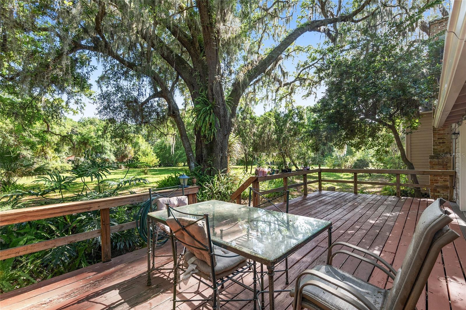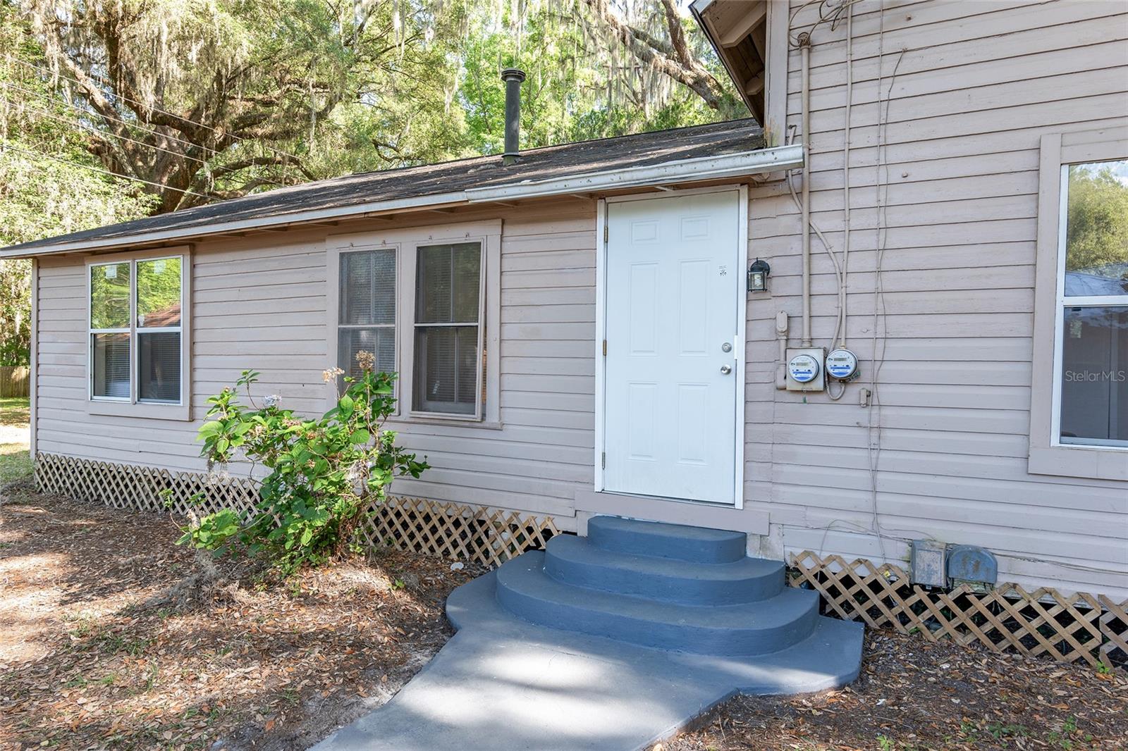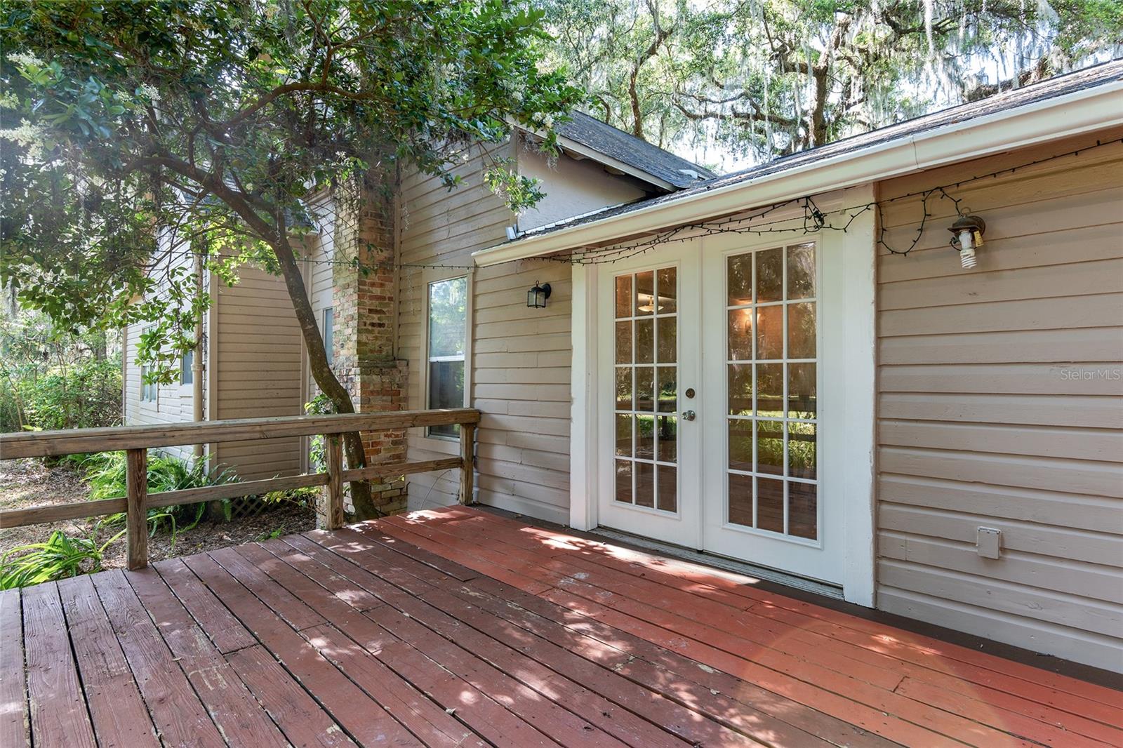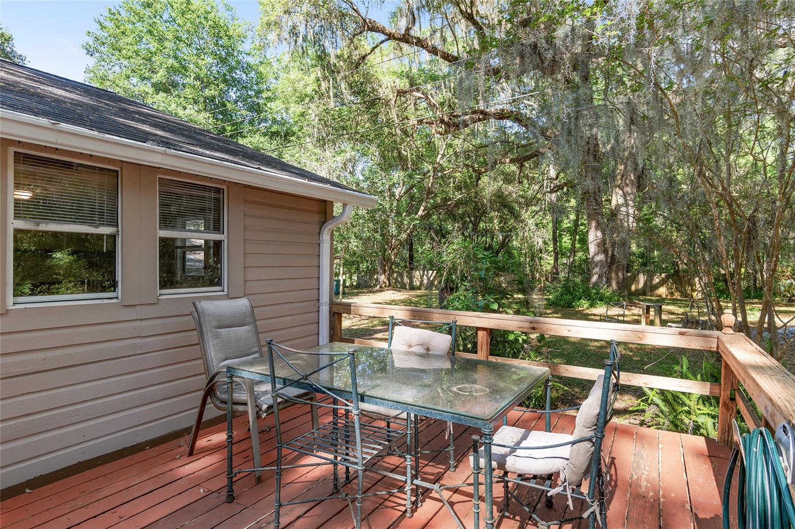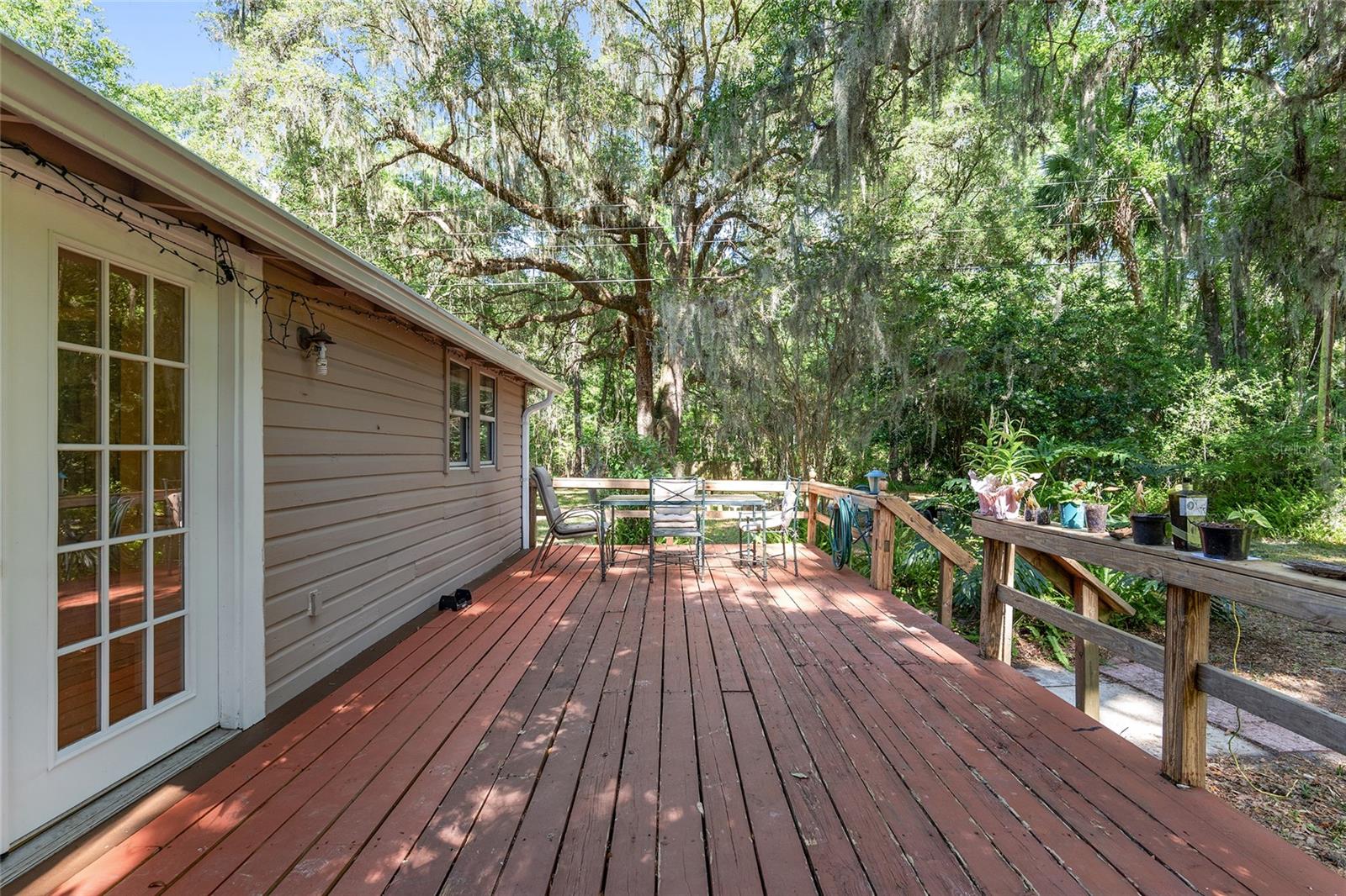 Nestled amid majestic oaks on a generous 2.75 acre parcel of land in Gainesville, this Florida home welcomes you to unwind and savor moments of reflection. Nature enthusiasts will delight in the property's proximity to the Hawthorne Alachua trail and nature parks. Offering accessible opportunities for outdoor recreation, wildlife observation and leisurely strolls. Two-story columns on the front porch evoke a sense of grandeur, complemented by a brick façade and the warmth of wood siding. Stepping through the threshold you are greeted by a spiral staircase that ascends to a second-story loft, creating an enchanting focal point that invites exploration and leading to a versatile space ideal for relaxation or creative endeavors. On each side of the loft is attic storage. Five bedrooms and two bathrooms on the first floor, ample space for comfortable living. The roof and plumbing of the home were updated in 2015. Property has a working well with water softener, filtration system, and UV light purification. Includes refrigerator, range, dishwasher, and washer/dryer. French doors from the dinning room open to a side deck for morning coffee, alfresco dining or gatherings under the stars. There is a spacious shed, ideal for housing outdoor equipment, building materials or pursuing hobbies. Situated just 9 miles from the vibrant heart of downtown Gainesville and a mere 8 miles from the town of Micanopy, this residence offers a perfect blend of tranquility, accessibility, and vintage charm.