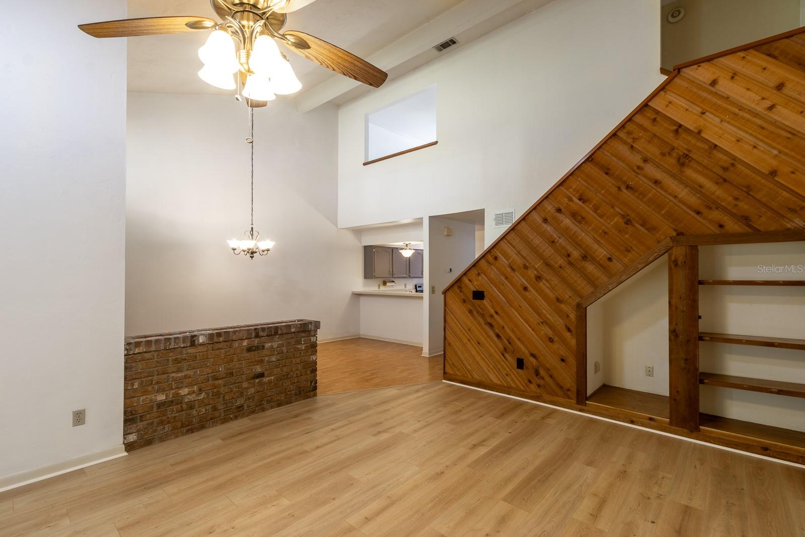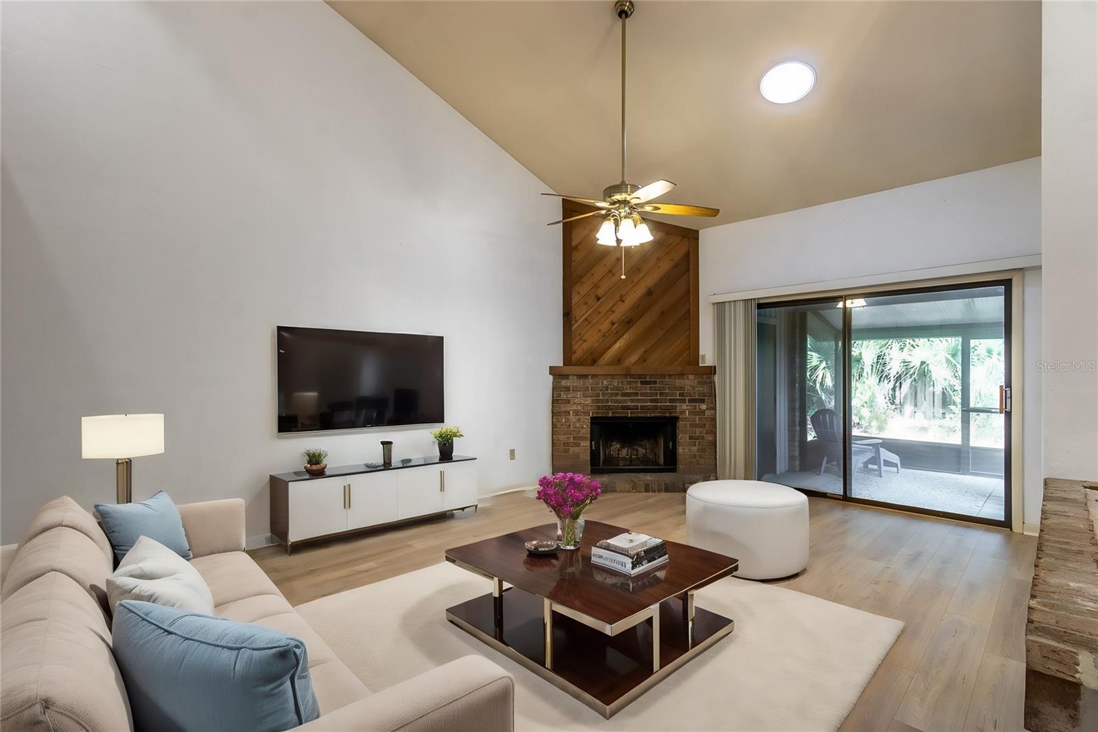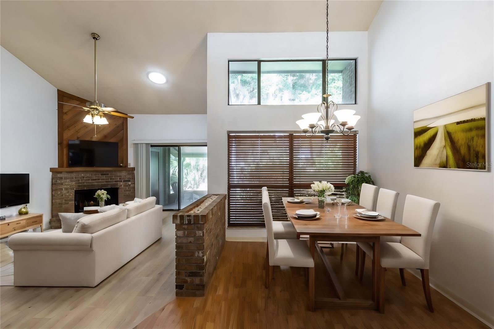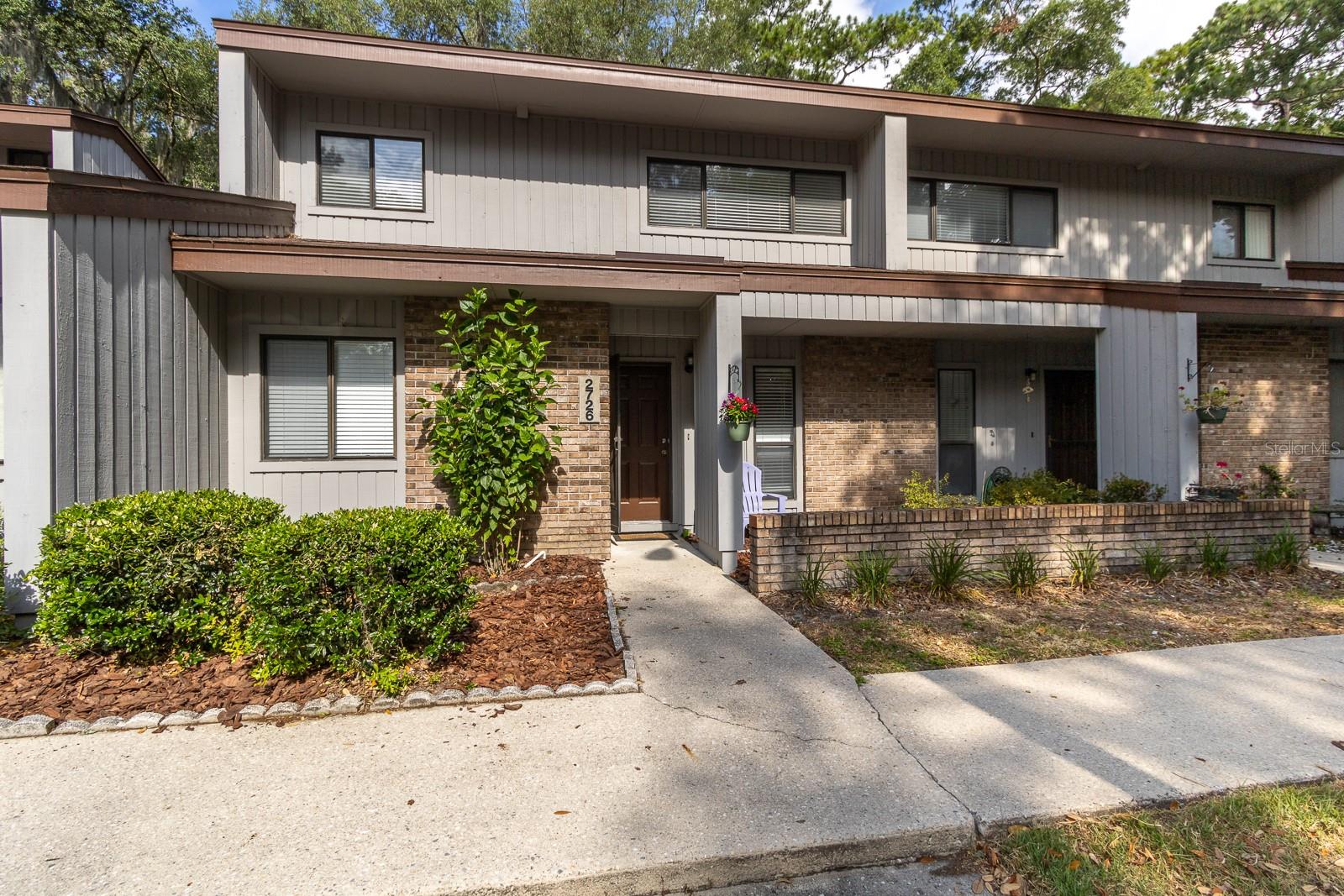 One or more photo(s) has been virtually staged. A fantastic sense of space and openness is the first thing you experience when entering this 2 story condo. A vaulted ceiling reaches up to the primary bedroom area and the high windows in the back of the adjacent and open dining room offer a great deal of light and connection to the backyard. An enclosed porch and storage area add space for an inside/outside experience beyond the main great room. New carpet has been installed in bedrooms and on stairs. Well maintained and move in ready, this Pebble Creek Villa unit is extremely well located near the very popular Millhopper Shopping Center. Enjoy total exterior maintenance and insurance from your HOA as you soak in the community pool and quickly walk, bike, or drive to the heart of Gainesville.