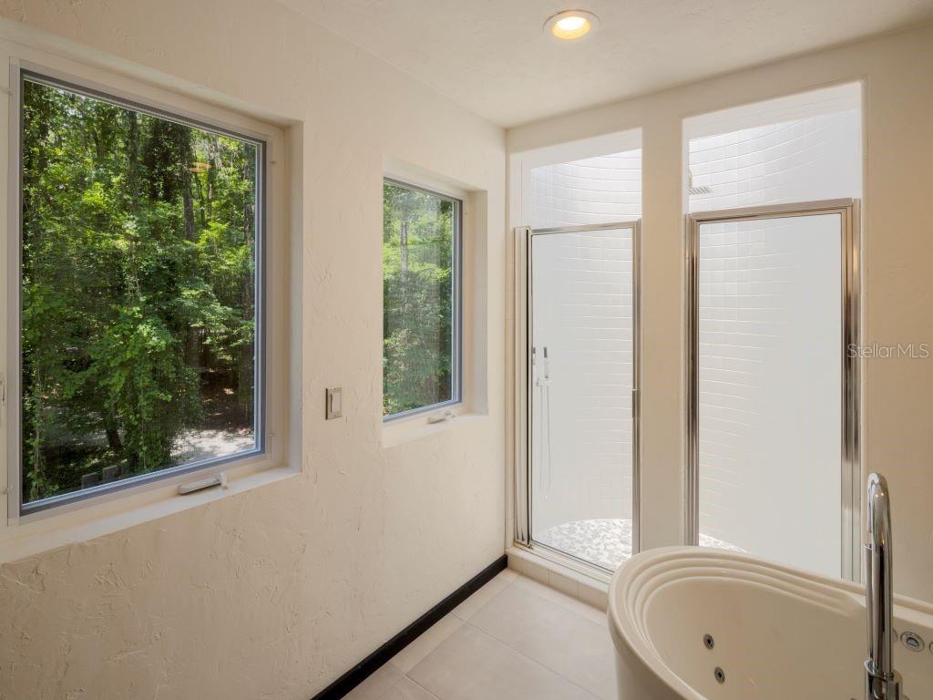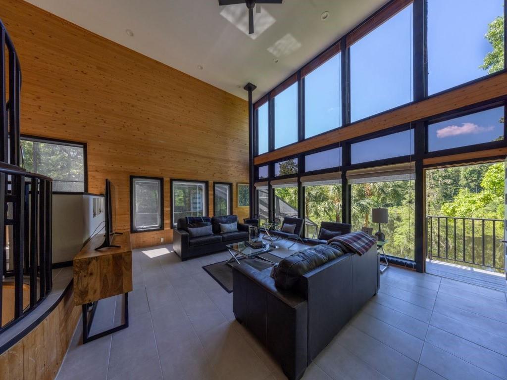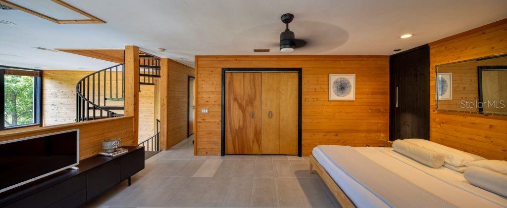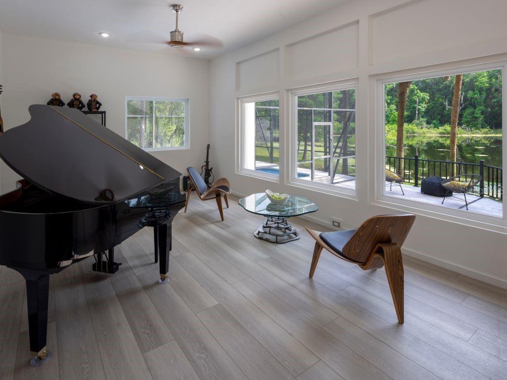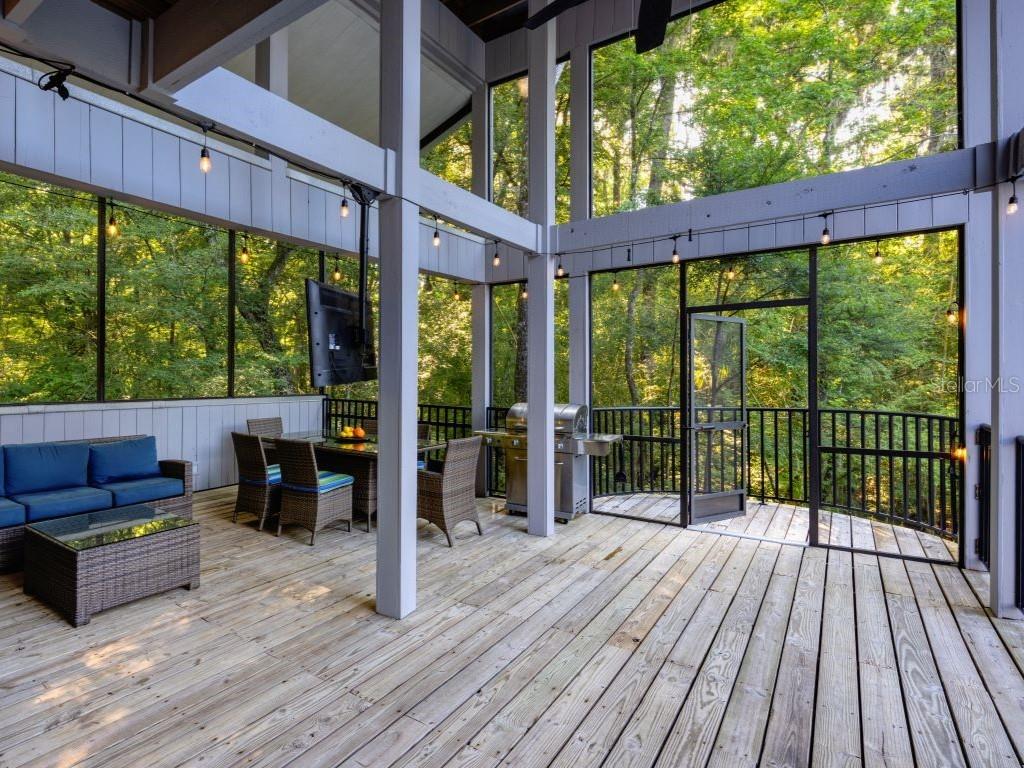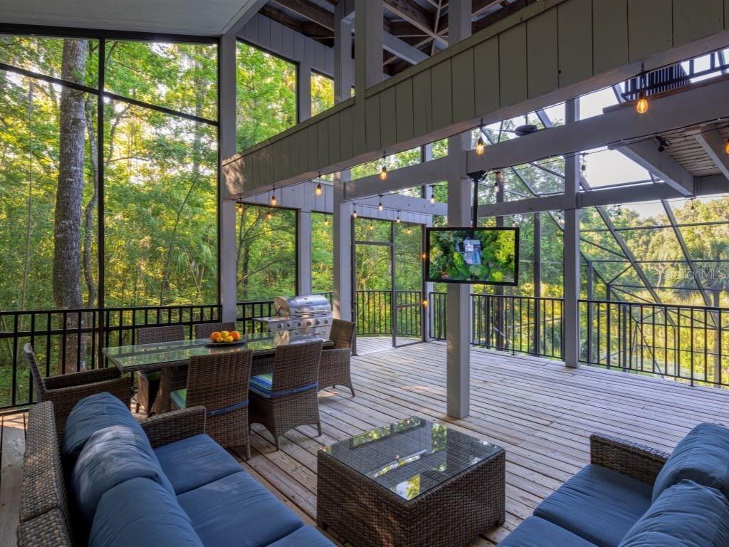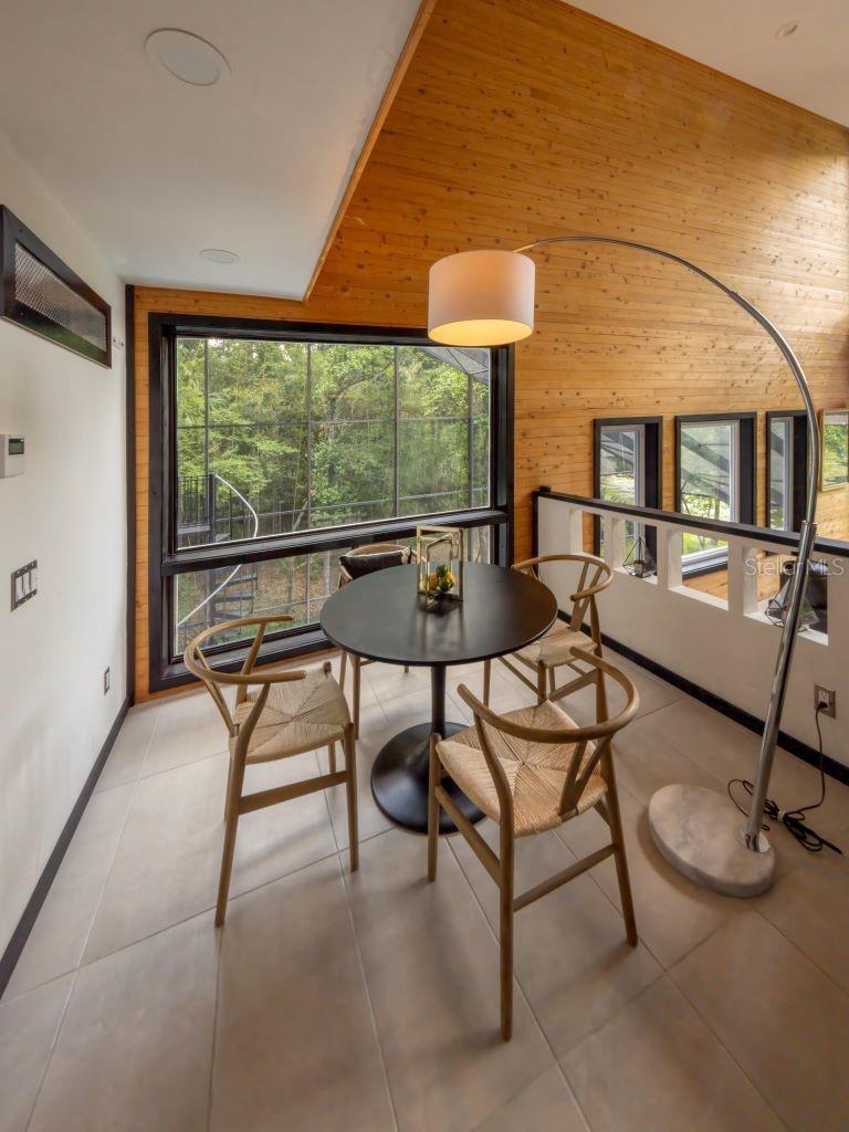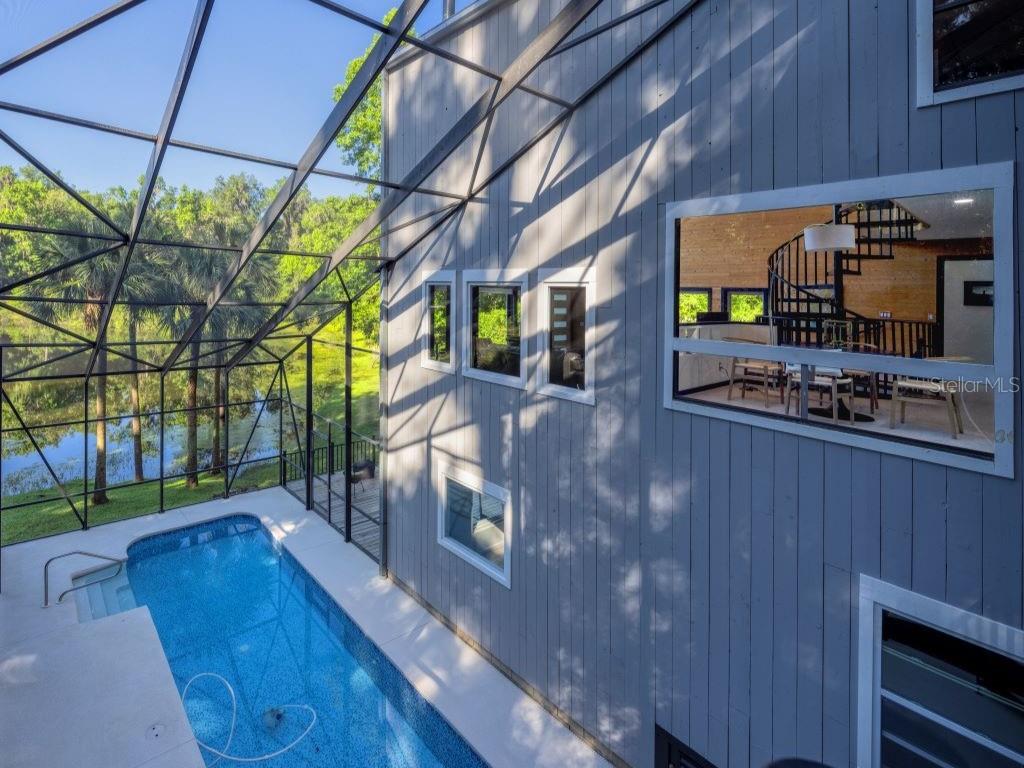 A once in a lifetime opportunity to acquire a captivating, private waterfront 4-story post-modern tree-house that sets this property apart as a truly unique gem. Designed by local architect Tom Tonnelier in 1991, emphasis was placed on maximizing the surrounding natural beauty with decks and balconies, large picture windows from every level, a lap pool housed in a multi-story screened-in area. Wake up daily to the immersive experience with the woodland setting and waterfront views on this 1.93 acre retreat. Attention to detail is evident throughout, remodeled in 2022/2023 with fully upgraded features and modern comforts integrated seamlessly into the design. This outstanding property presents a unique opportunity to live the lifestyle of luxury, privacy, and natural beauty in a meticulously designed and upgraded architectural 4 bedroom, 2.5 bathroom home. The first floor features a stunning flexible living area, currently utilized as a music room. The picture windows offer a seamless connection to the outdoors, allowing natural light to flood the room. A large adjacent deck provides access to the lake and the in-ground 40 foot lap pool. Two guest bedrooms, a double sink vanity bathroom with walk-in shower, a kitchenette/bar area with mini fridge, and a laundry closet complete this floor. The showcase spiral stairway, running the full height of the residence, provides access to all living areas via a custom built curved barn-door. From the exterior, a new elevator leads from the front deck to the main living deck. On the second floor, a spectacular, light-filled, open-concept layout joins the sunken great room, dining area, custom-built kitchen and guest bathroom. The southwest facing 20-foot wall showcases two-story floor to ceiling windows which bring the abundance of nature at this lakeside retreat into the indoors. The home was strategically positioned on the lot to accept the warmth of the sun in winter and avoid the direct heat of the sun in summer. French doors lead to the screened multi-story outdoor living and dining areas with staircase access to the pool. The owners’ suite encompasses the entirety of third floor. Enjoy the luxurious ensuite, complete with freestanding spa bath, double sink vanity, linen closet and a two-story, glass-ceiling, rain shower! The suite contains separate closets and French doors leading to a balcony overlooking the outdoor living/dining room and the pool. Finally, the fourth floor observatory affords 360-degree area viewing and a covered balcony nestled amongst 100 foot high magnolia trees and creeping jasmine. This amazing property is located in the serene and sought-after Hammock neighborhood, a short drive to the Hunters Crossing Publix Shopping Center, ensuring easy access to shopping, dining, and entertainment options. Zoned for Talbot Elementary, Fort Clark Middle and Gainesville High Schools. Close to San Felasco Hammock State Park, Devil's Millhopper Geological State Park, countless springs, UF Health/Shands, HCA North Florida Hospital, and more!
