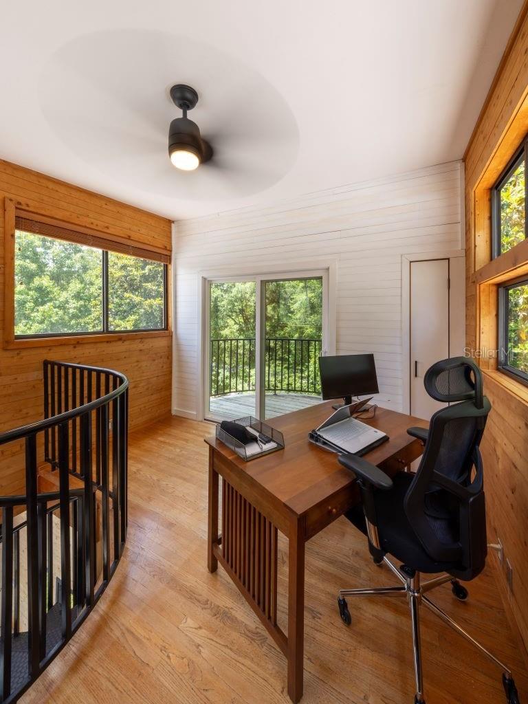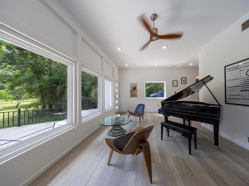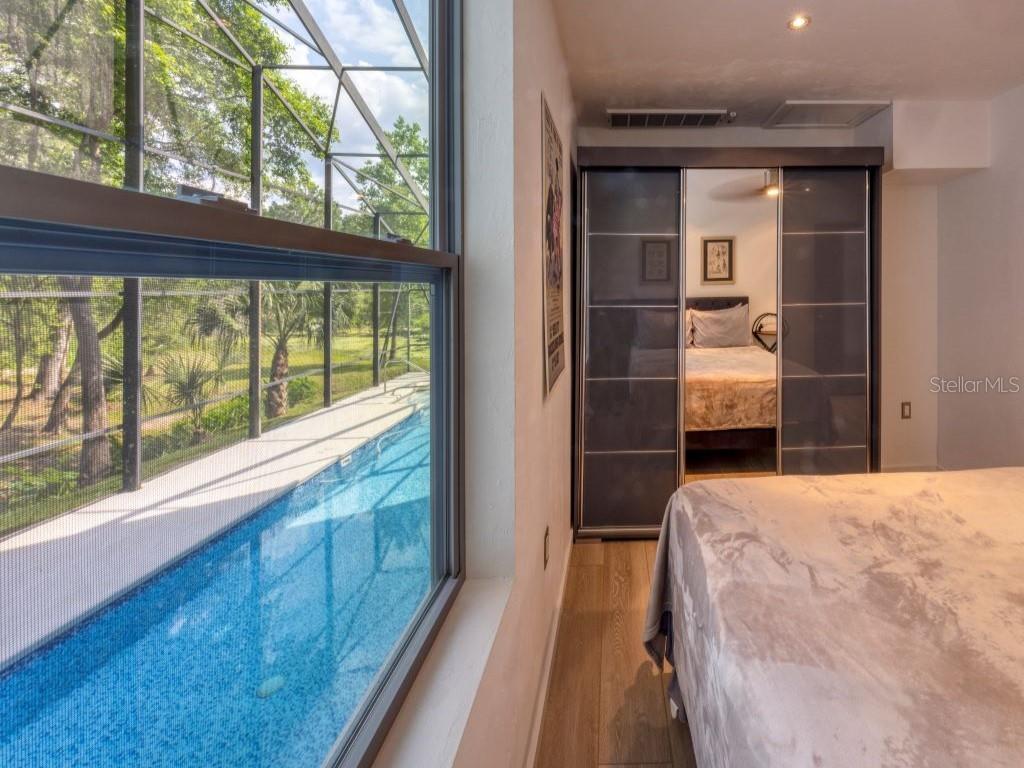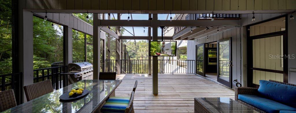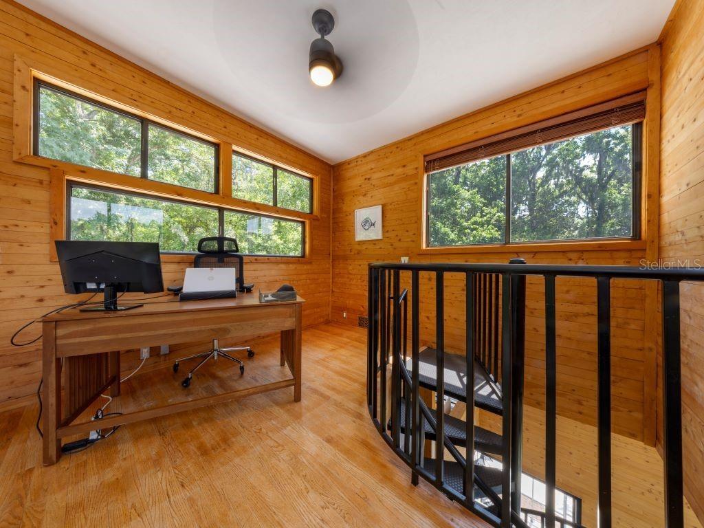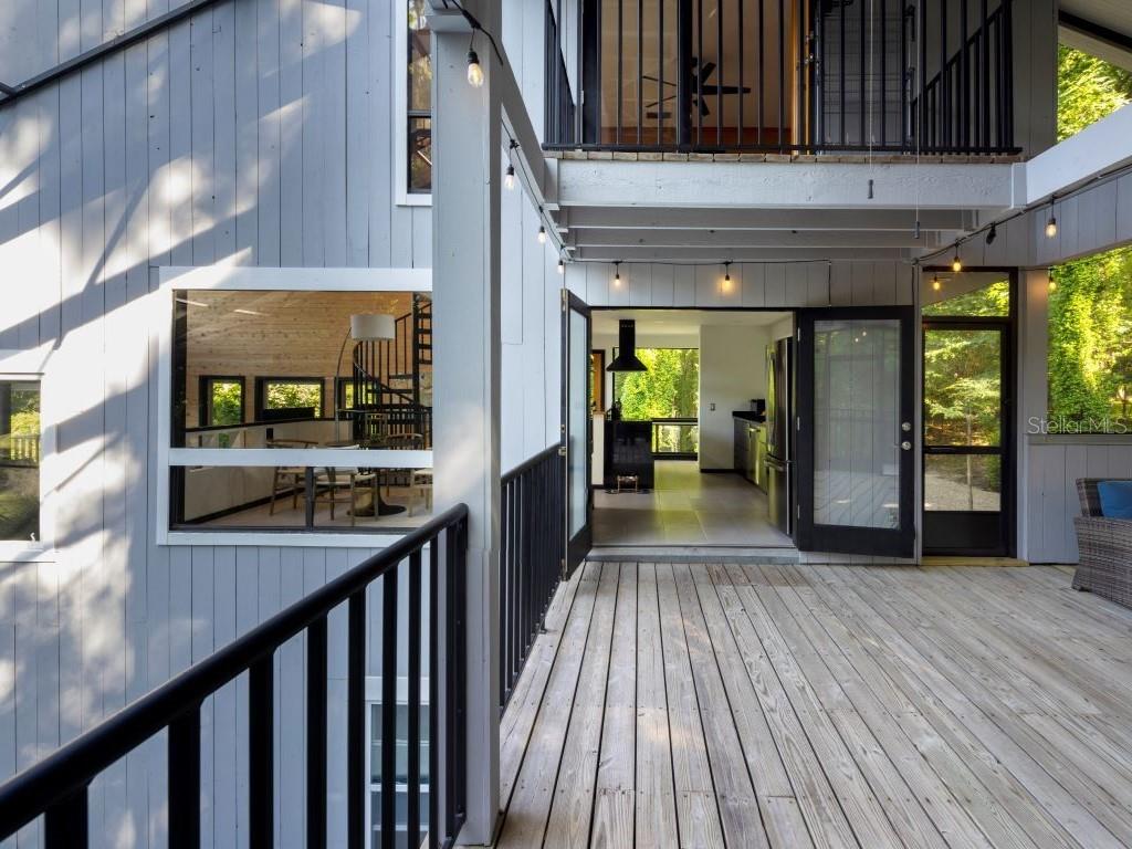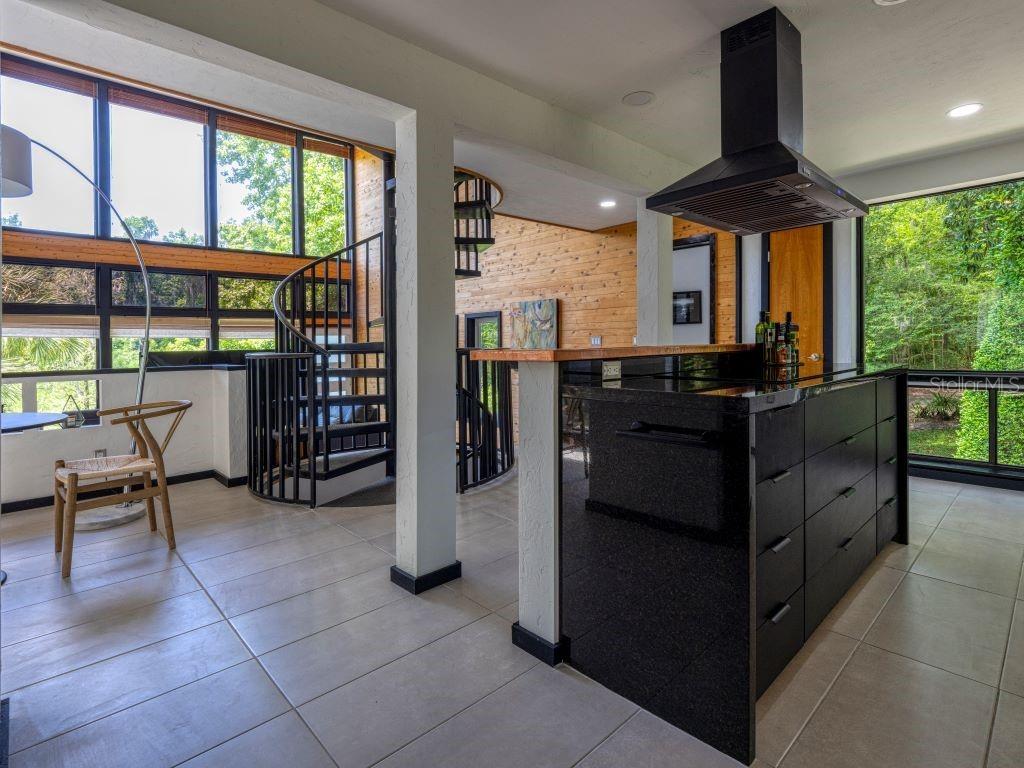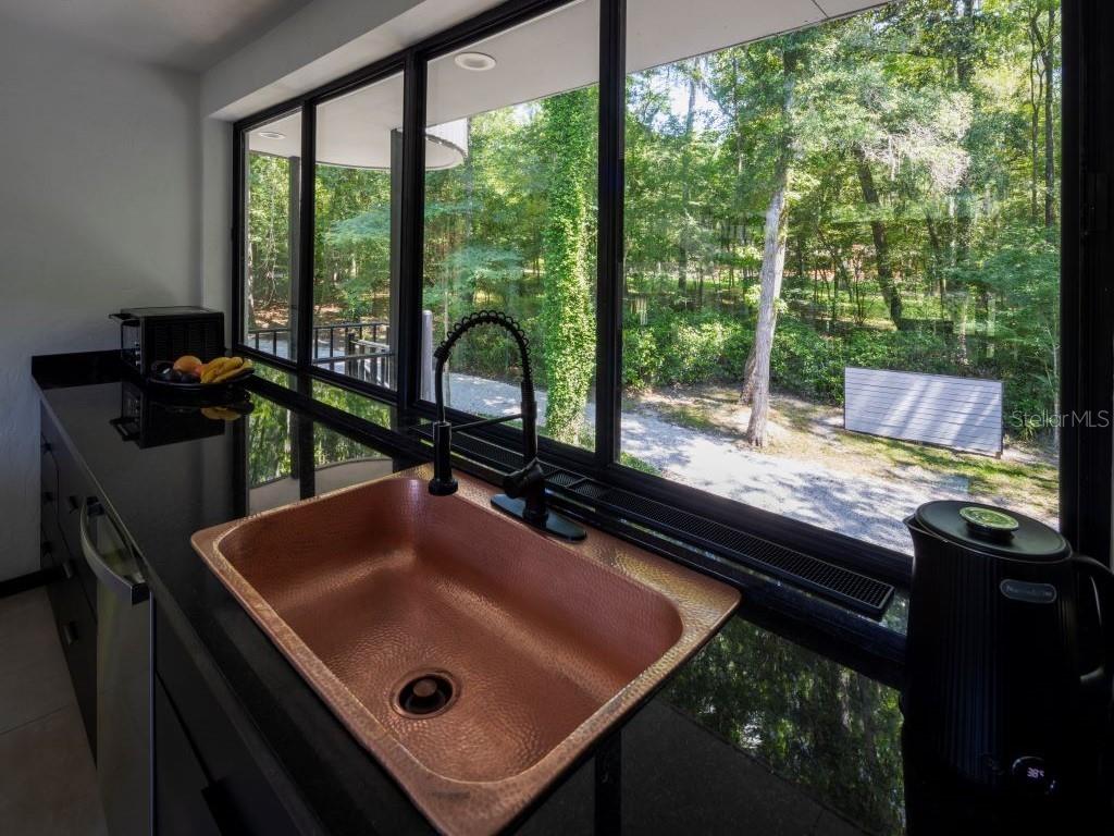 A once in a lifetime opportunity to acquire a captivating, private waterfront 4-story post-modern tree-house that sets this property apart as a truly unique gem. Designed by local architect Tom Tonnelier in 1991, emphasis was placed on maximizing the surrounding natural beauty with decks and balconies, large picture windows from every level, a lap pool housed in a multi-story screened-in area. Wake up daily to the immersive experience with the woodland setting and waterfront views on this 1.93 acre retreat. Attention to detail is evident throughout, remodeled in 2022/2023 with fully upgraded features and modern comforts integrated seamlessly into the design. This outstanding property presents a unique opportunity to live the lifestyle of luxury, privacy, and natural beauty in a meticulously designed and upgraded architectural 4 bedroom, 2.5 bathroom home. The first floor features a stunning flexible living area, currently utilized as a music room. The picture windows offer a seamless connection to the outdoors, allowing natural light to flood the room. A large adjacent deck provides access to the lake and the in-ground 40 foot lap pool. Two guest bedrooms, a double sink vanity bathroom with walk-in shower, a kitchenette/bar area with mini fridge, and a laundry closet complete this floor. The showcase spiral stairway, running the full height of the residence, provides access to all living areas via a custom built curved barn-door. From the exterior, a new elevator leads from the front deck to the main living deck. On the second floor, a spectacular, light-filled, open-concept layout joins the sunken great room, dining area, custom-built kitchen and guest bathroom. The southwest facing 20-foot wall showcases two-story floor to ceiling windows which bring the abundance of nature at this lakeside retreat into the indoors. The home was strategically positioned on the lot to accept the warmth of the sun in winter and avoid the direct heat of the sun in summer. French doors lead to the screened multi-story outdoor living and dining areas with staircase access to the pool. The owners’ suite encompasses the entirety of third floor. Enjoy the luxurious ensuite, complete with freestanding spa bath, double sink vanity, linen closet and a two-story, glass-ceiling, rain shower! The suite contains separate closets and French doors leading to a balcony overlooking the outdoor living/dining room and the pool. Finally, the fourth floor observatory affords 360-degree area viewing and a covered balcony nestled amongst 100 foot high magnolia trees and creeping jasmine. This amazing property is located in the serene and sought-after Hammock neighborhood, a short drive to the Hunters Crossing Publix Shopping Center, ensuring easy access to shopping, dining, and entertainment options. Zoned for Talbot Elementary, Fort Clark Middle and Gainesville High Schools. Close to San Felasco Hammock State Park, Devil's Millhopper Geological State Park, countless springs, UF Health/Shands, HCA North Florida Hospital, and more!