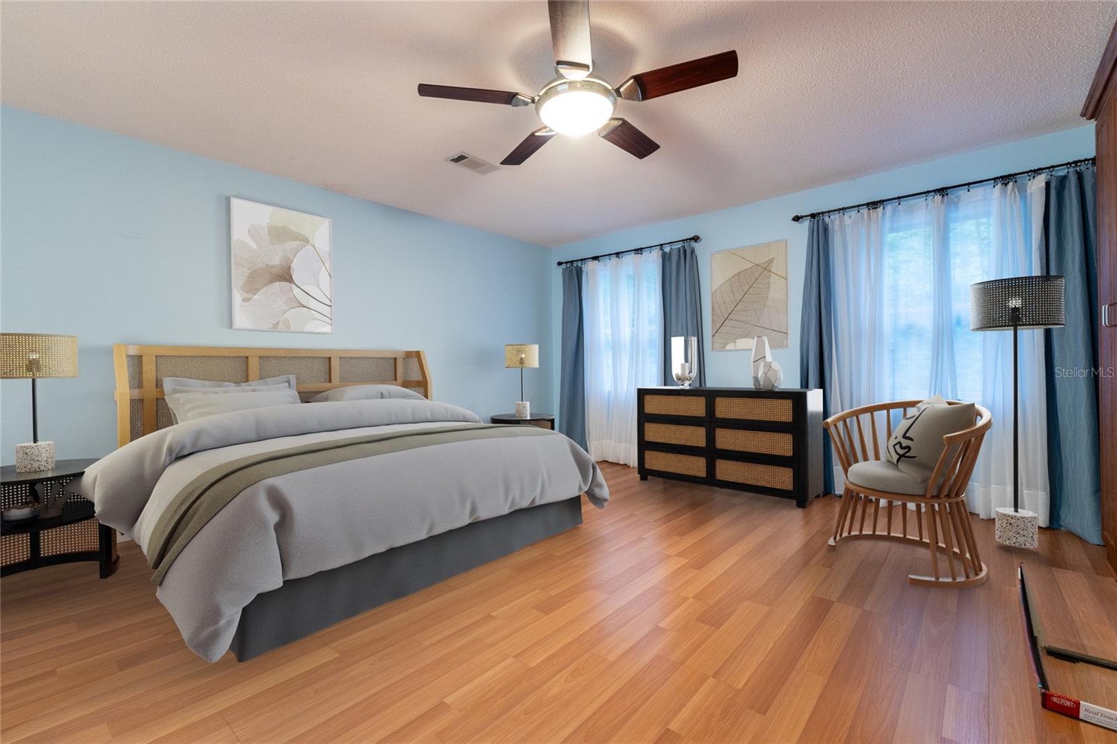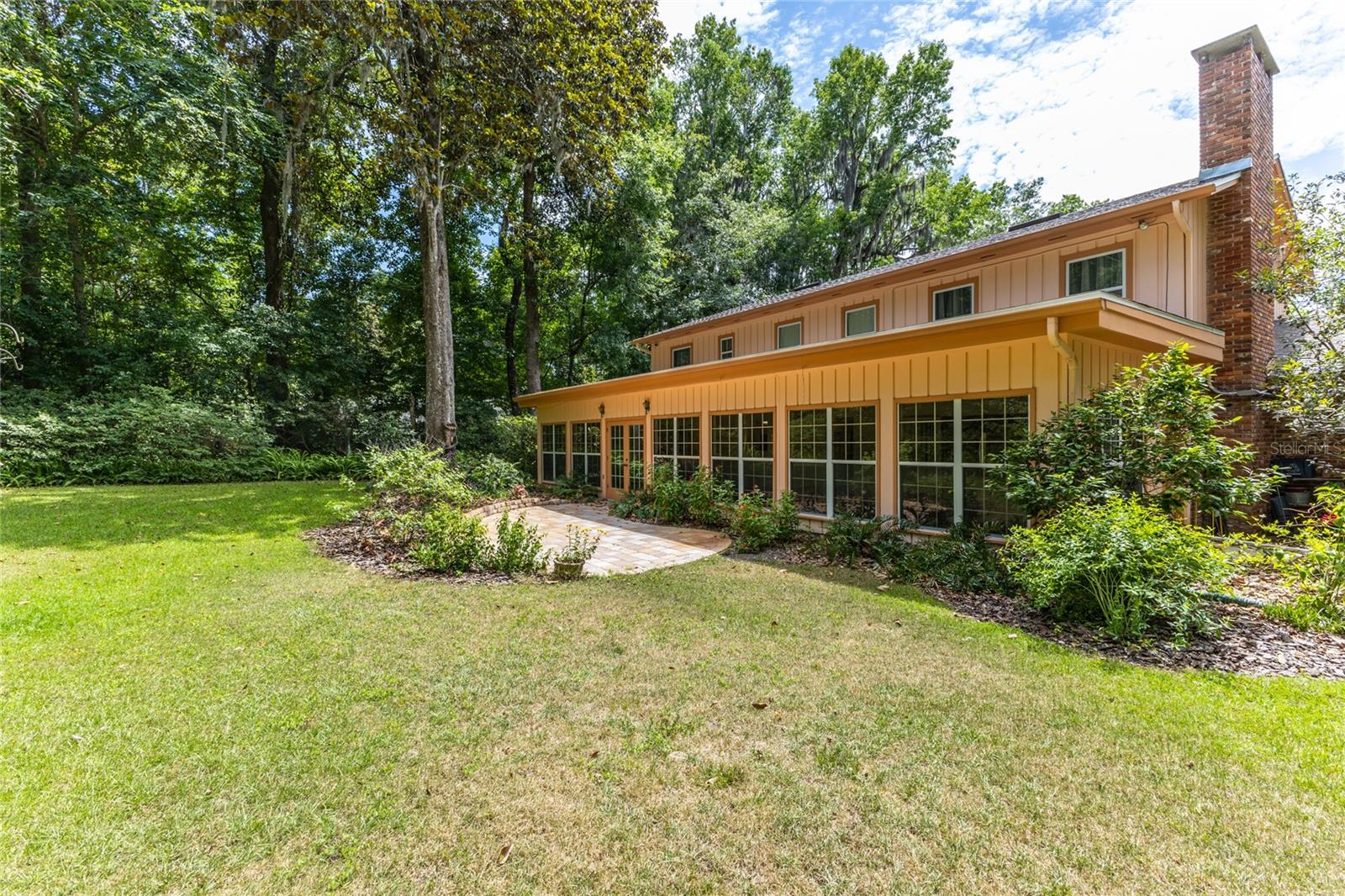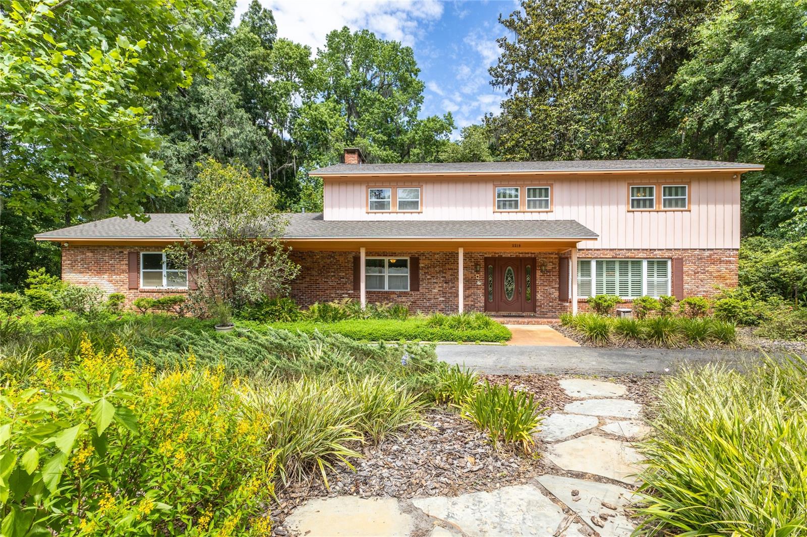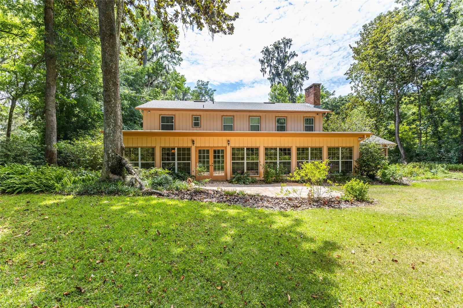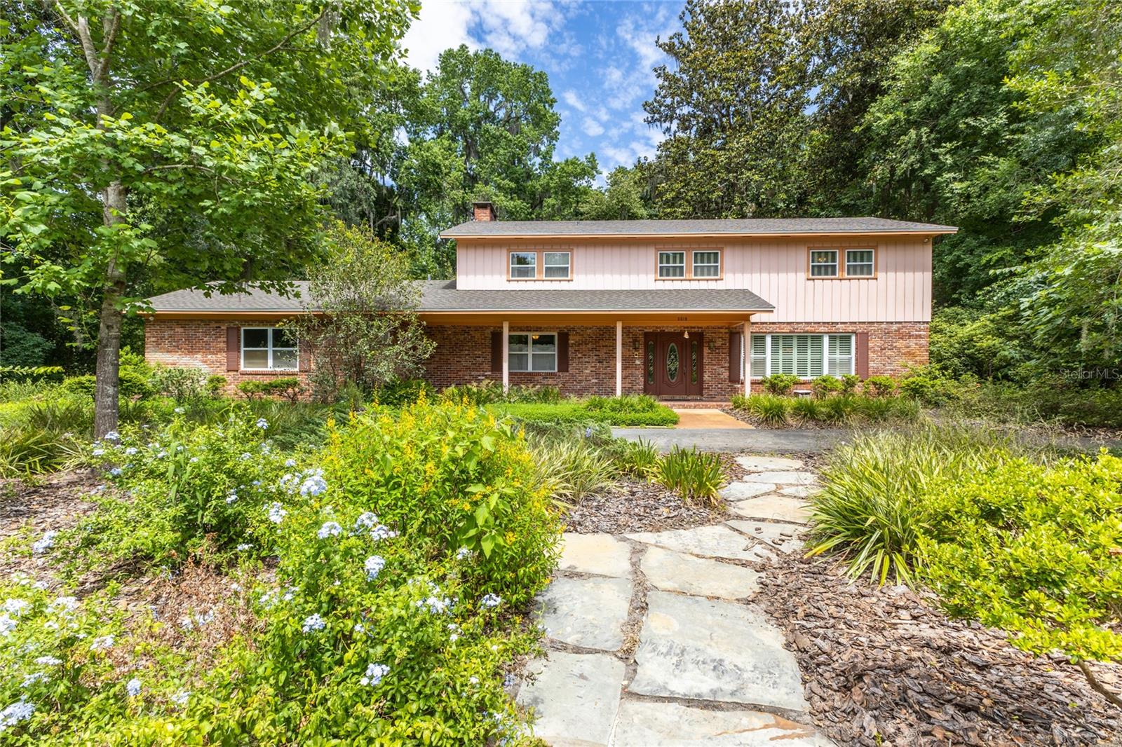 One or more photo(s) has been virtually staged. Welcome to the highly sought after neighborhood of Maple Hill, close to everything Gainesville including shopping & restaurants. This traditional 4 bed / 3 bath 3,693 sq.ft. home sits on 0.7 acres of natural Florida landscaping. The front yard is sunny & bright with a circular driveway that leads to the rocking chair front porch. The side driveway leads further back to the side entry 2 car garage and side yard. Around back there is plenty of room for garden beds and a fantastic pavered patio perfect for entertaining or just relaxing. Come through the leaded glass front door to your foyer with heavy chair rail and stairs. You'll find a formal living room and dining room with plantation shutters and wainscoting, a family room with brick fire place and an office plus a full bath with walk in shower. This room has a closet with closet system and could be a 5th bedroom on the first floor if needed. There is also sunroom/Florida room that spans the entire back of the house with 3 walls of windows that gives beautiful views out to the shady backyard. The kitchen is in the center of it all, has white wood cabinetry, new quartz counter tops and stainless steel appliances. There is also a large walk in pantry, a door to the sunroom and a passthrough to the sunroom and a swinging door to the formal dining room. At the top of the stairs is the primary bedroom and ensuite complete with double sinks and walk in shower. The other 3 bedrooms are on the other side of the upstairs and share a hall bath with double sinks and tub/shower combo. This home is large enough for any family type. The roof was recently replaced in 2024 and the working components of this house have been meticulously maintained.
