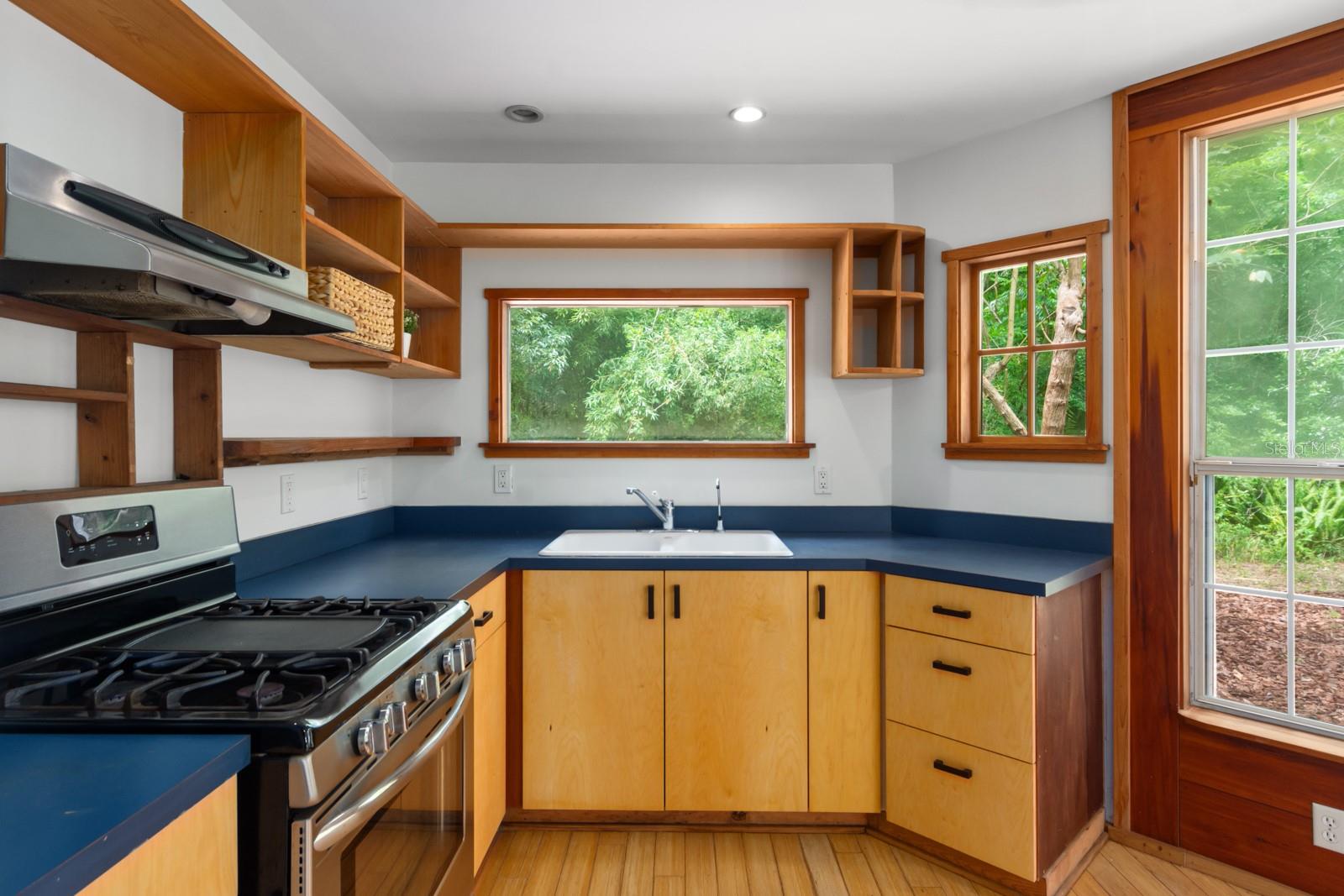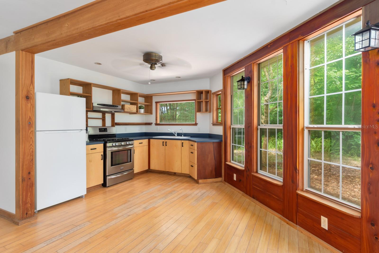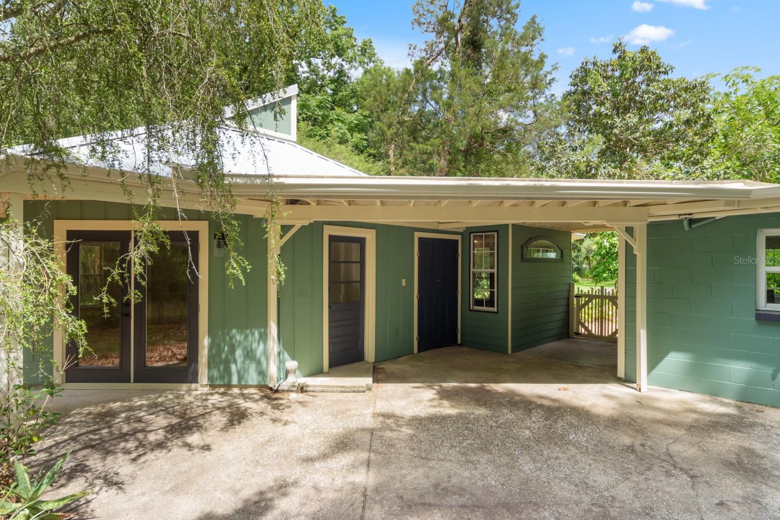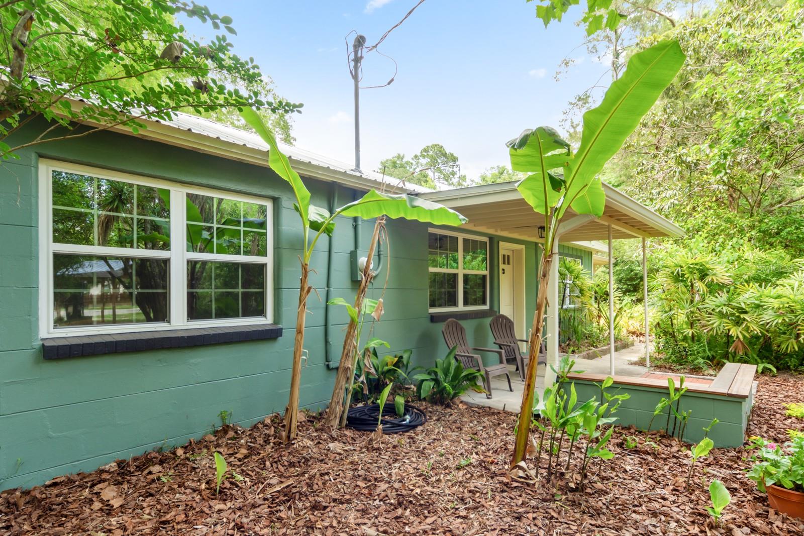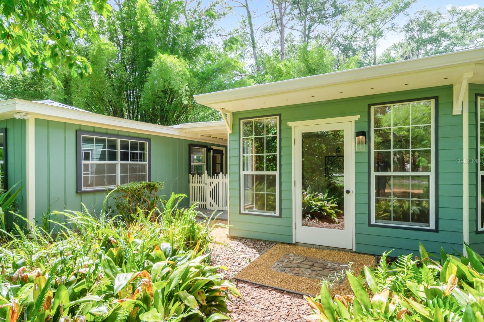 Absolutely CHARMING one of a kind home in a prime location in NE Gainesville! This home is essentially TWO homes in one! The main home offers 2 Bedrooms, 1 Bathroom, a BRAND NEW KITCHEN, separate living and dining rooms, Saltillo tile as well as new modern tile. The main home also boasts new windows, fresh paint and new kitchen appliances. The guest house, which is attached by a covered breezeway, boasts a large bedroom, 1 full bathroom, kitchen, living space and a quaint little loft perfect for a little one to sleep or as a reading nook. It also features handcrafted cedar and cypress shelving, cabinetry, panelling, and trim with new paint inside and out. A beautiful METAL ROOF was installed in 2018. There are two sets of washer/dryer hookups outside making it perfect for the ability to rent out the guest house if one so pleased as an income producing property. A GREAT LOCATION, this home is situated with Tom Petty Park to the West and Citizens Park to the East, a 2 minute walk from a new public Library, Public & General, and Howard Bishop. It's also only a 10 minute walk to the Thomas Center, Vine Bakery, Roper Park, Afternoon restaurant, Cypress & Grove Brewery, East End Eatery, and many other local businesses that make East Gainesville popular. While convenient and quick to drive, the home is also about a 10 minute bike ride to UF, Depot Park, Heartwood Soundstage, South Main Station, 4th Ave Food Park, Ward’s Supermarket, Curia, Shands, Sweetwater Wetlands, Payne’s Prairie, or the Hawthorne Trail. The yard has an abundance of zebra longwing and gulf fritillary butterflies because of the well-established passionflower vines, firebush, and other pollinator delights. Come check out how truly special this home is for yourself!