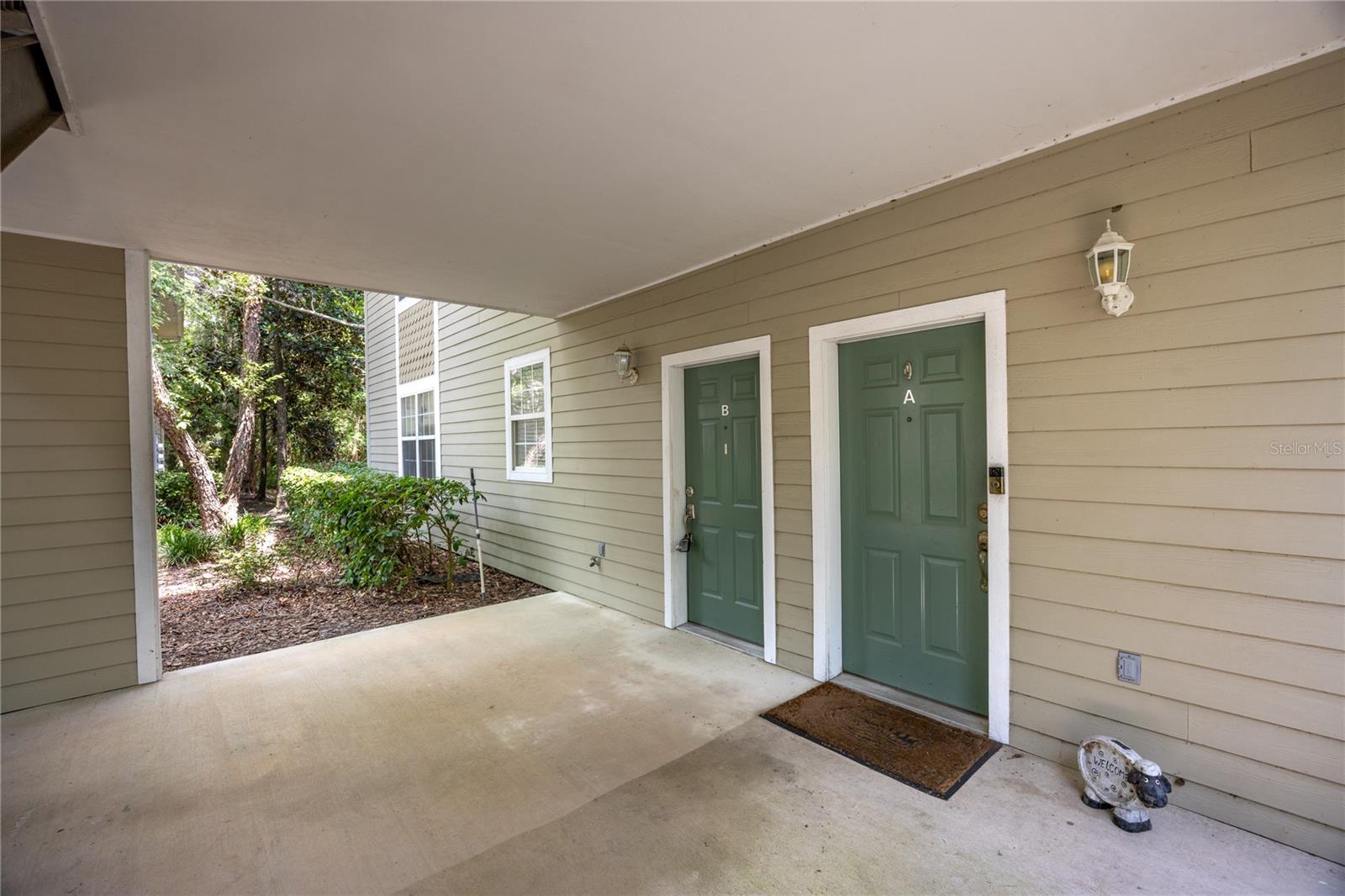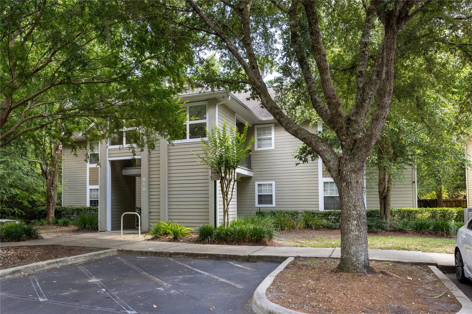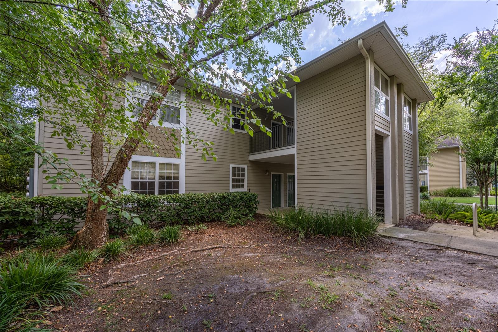 Great location for this ground floor, turn-key home in NW Gainesville's Camellia Trace condos. This 2 bedroom, 2 bathroom home is just 1.5 miles from the University of Florida and a short drive to area shops and restaurants including Wards, NW 13th Street Publix and downtown Gainesville. Maintenance free living as the condo association maintains the exterior of the home, roof and grounds. Enter off the covered front landing to the light and bright foyer. This is a corner unit so you get a ton of natural light. To your left is the open kitchen with stainless steel appliances, wood cabinets and breakfast bar. The large Great Room has an open area for dining, brand new luxury vinyl plank flooring and sliding glass doors that open to the covered rear porch. The porch includes a secure closet for storage. To the left of the Great Room is the inside utility room with washer and dryer. Split bedroom plan for privacy. Each bedroom has an en-suite bathroom, ceiling fans and new luxury vinyl plank flooring as well. The primary bedroom includes a large walk-in closet. Each bedroom has lots of natural light from the three windows. If you are looking for a ground floor condo that has no stairs or carpet, and is close to all Gainesville has to offer, don't miss this fantastic home in Camellia Trace.