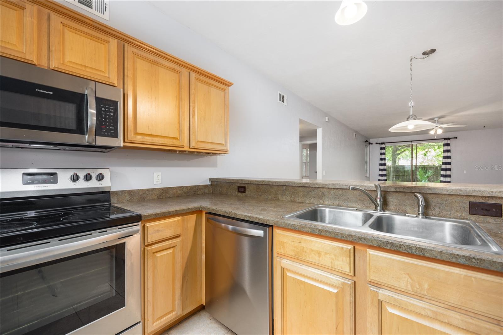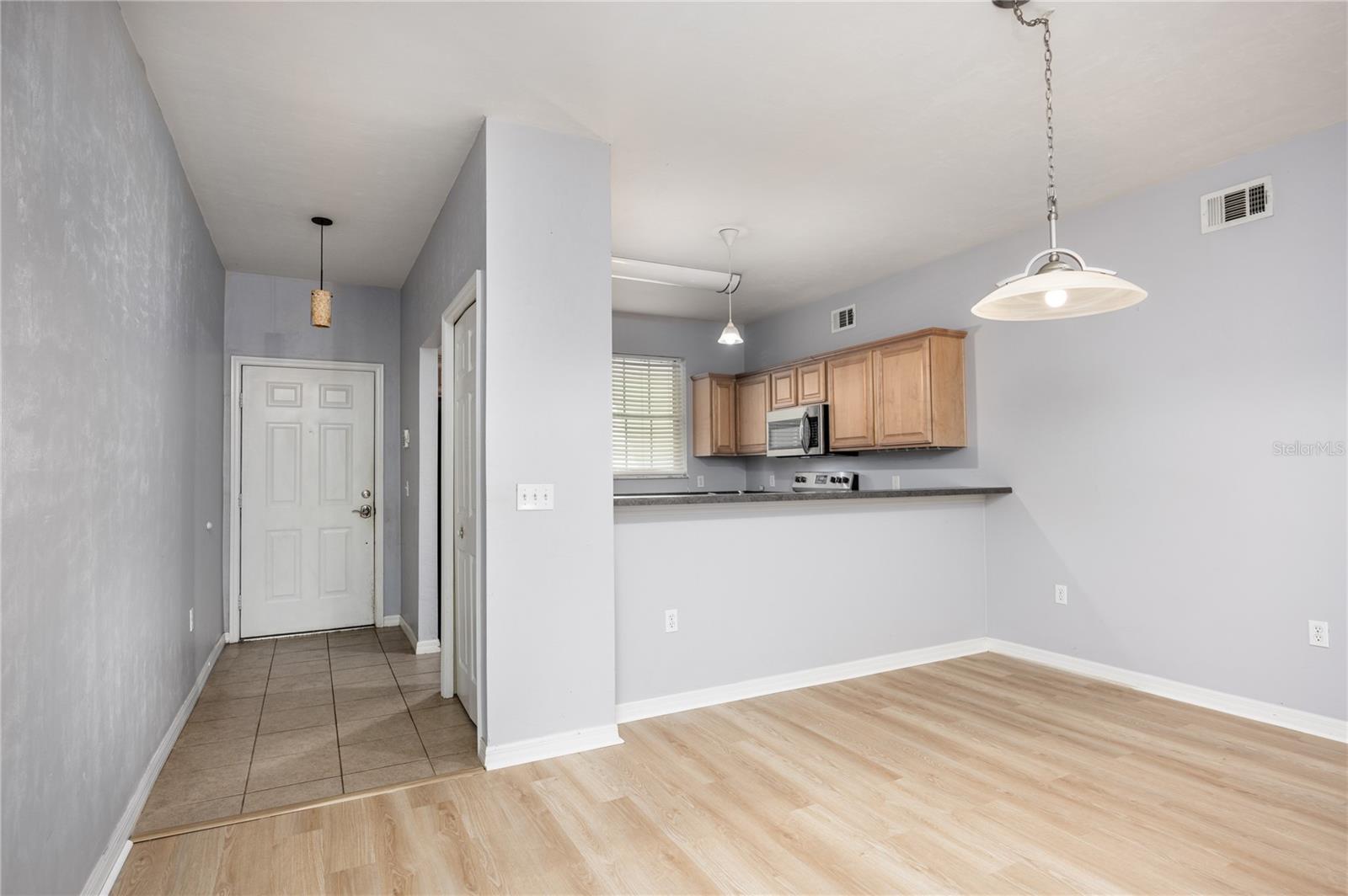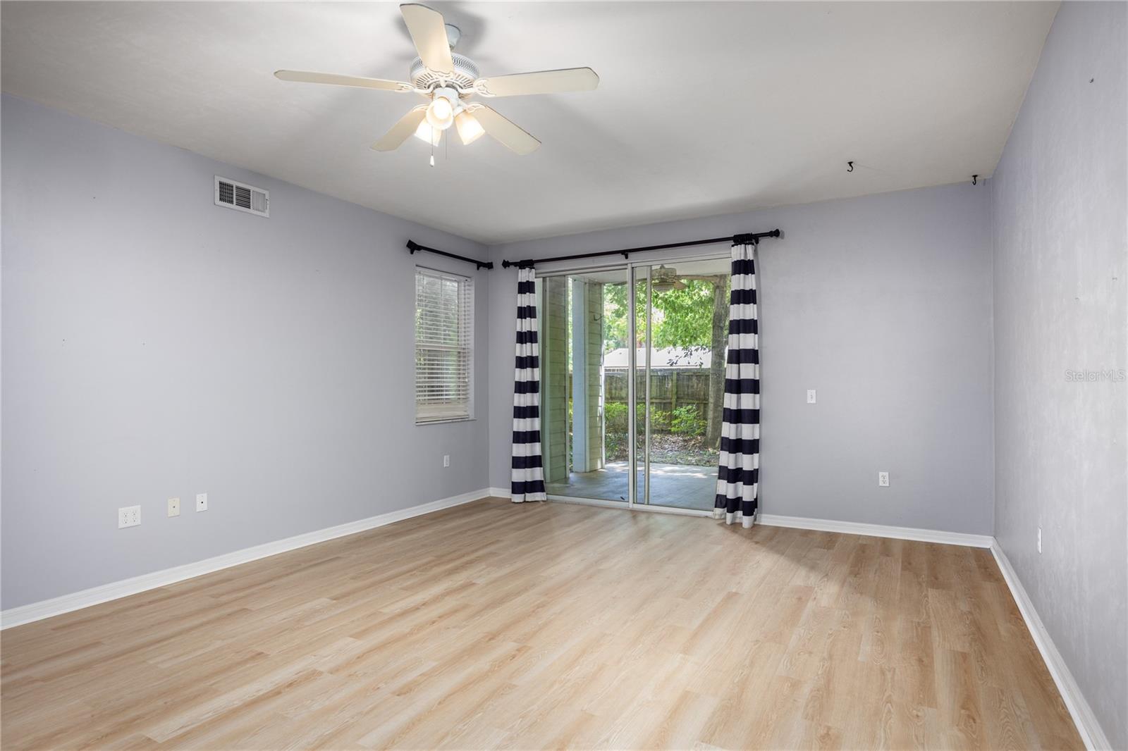 Great location for this ground floor, turn-key home in NW Gainesville's Camellia Trace condos. This 2 bedroom, 2 bathroom home is just 1.5 miles from the University of Florida and a short drive to area shops and restaurants including Wards, NW 13th Street Publix and downtown Gainesville. Maintenance free living as the condo association maintains the exterior of the home, roof and grounds. Enter off the covered front landing to the light and bright foyer. This is a corner unit so you get a ton of natural light. To your left is the open kitchen with stainless steel appliances, wood cabinets and breakfast bar. The large Great Room has an open area for dining, brand new luxury vinyl plank flooring and sliding glass doors that open to the covered rear porch. The porch includes a secure closet for storage. To the left of the Great Room is the inside utility room with washer and dryer. Split bedroom plan for privacy. Each bedroom has an en-suite bathroom, ceiling fans and new luxury vinyl plank flooring as well. The primary bedroom includes a large walk-in closet. Each bedroom has lots of natural light from the three windows. If you are looking for a ground floor condo that has no stairs or carpet, and is close to all Gainesville has to offer, don't miss this fantastic home in Camellia Trace.