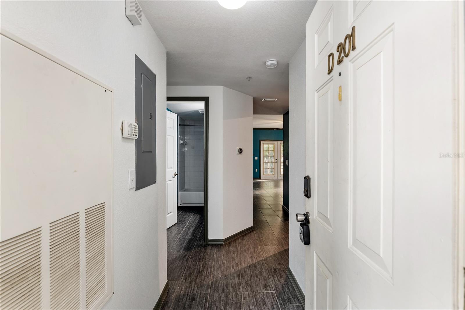 Welcome to Unit D201 in the Village at Haile development in Gainesville, FL, a charming condo offering a blend of comfort and convenience. This 2-bedroom, 2-bathroom unit ensures extra privacy and a peaceful living environment. As you step inside, you'll be greeted by a spacious open living room featuring a cozy gas fireplace, perfect for relaxing evenings. The living room opens onto a generously sized balcony, ideal for outdoor seating or dining, and overlooks the central parking/seating area of the complex. The kitchen, equipped with pantry storage, adjoins the living area, providing a functional and efficient space for all your culinary needs. The master bedroom boasts an en suite bathroom and a walk-in closet, while the second bedroom is well-sized with a full bathroom conveniently located down the hall. Enjoy 24/7 access to the gym and pool, the vibrant neighborhood and amenities, making this condo a perfect choice for those seeking a lively and engaging community.