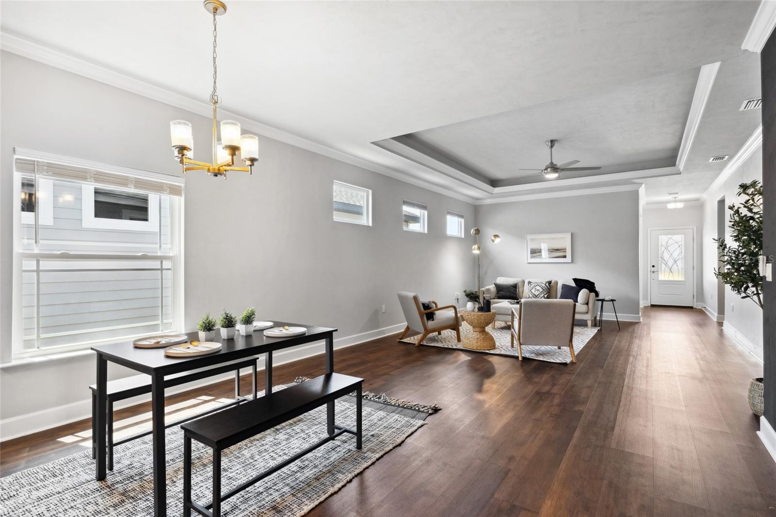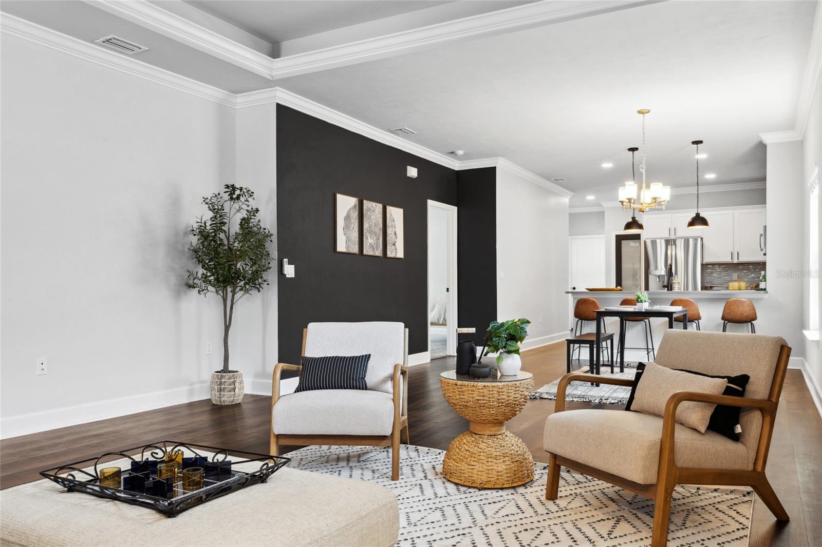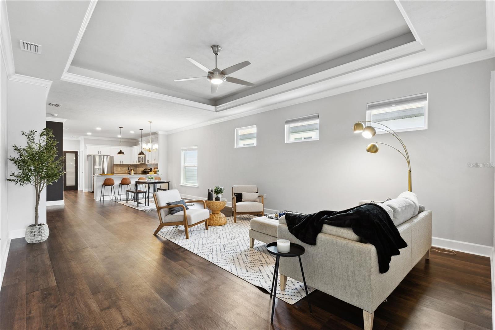 Welcome to your dream home in the sought after community of Lugano! The thoughtfully designed Messina model offers 1,710 square feet of luxury living space. Featuring three bedrooms, two bathrooms, and a flex room, offering versatility to accommodate your evolving needs. The open concept layout seamlessly blends the living room, dining area, and kitchen, making it perfect for entertaining guests or enjoying quality time with loved ones. The kitchen boasts quartz countertops, an elegant backsplash, under-cabinet lighting, and stainless steel appliances, while the outdoor lanai extends your living space for entertaining or relaxation. Front-yard landscaping maintenance included and electric services provided by Clay Electric. Enjoy community amenities such as the clubhouse, resort-style pool, splash pad, fitness center, tennis courts, basketball courts, dog park, and more, all while being conveniently located near Celebration Pointe, Haile Village, UF Health Shands, the University of Florida, and Santa Fe College. Don't miss your chance to make this extraordinary property your new home. Schedule a showing today and start living the life you've always dreamed of!