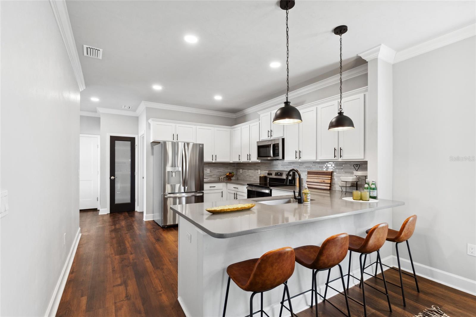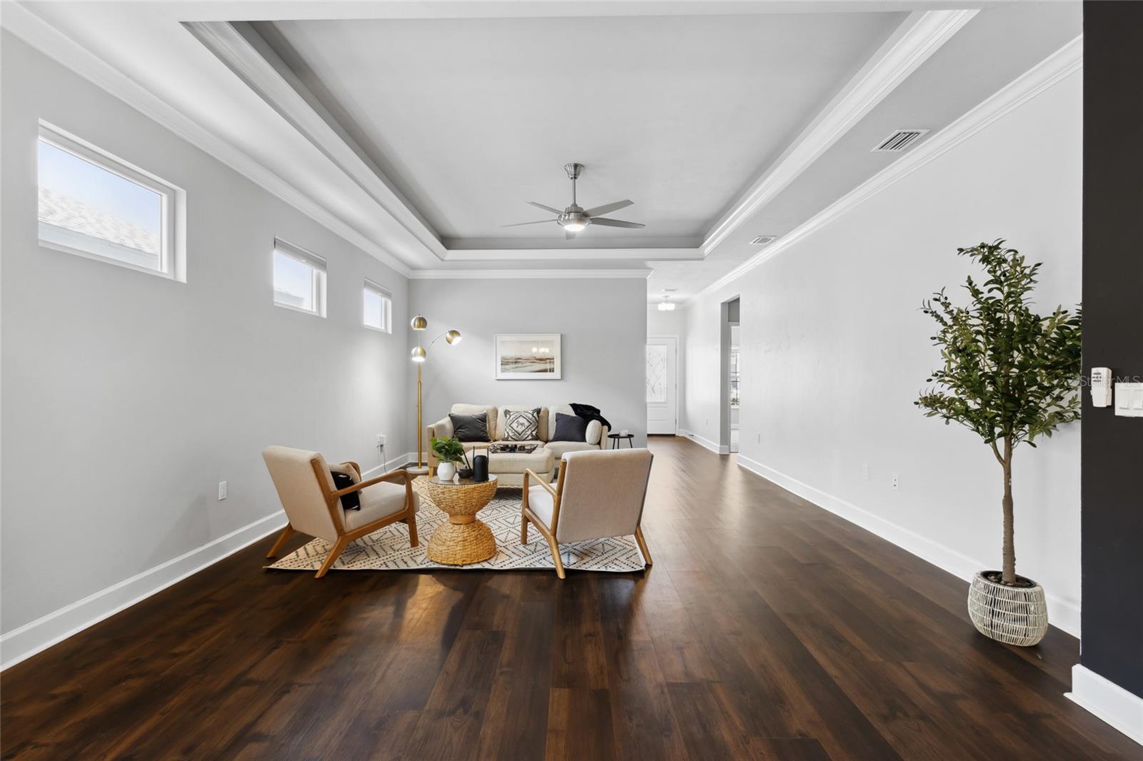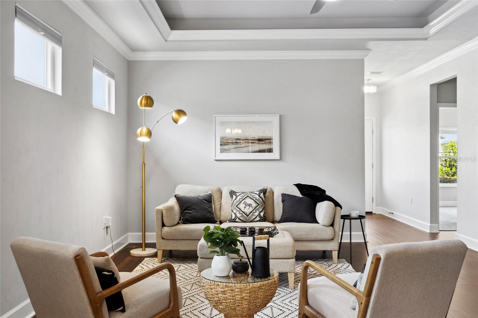 Welcome to your dream home in the sought after community of Lugano! The thoughtfully designed Messina model offers 1,710 square feet of luxury living space. Featuring three bedrooms, two bathrooms, and a flex room, offering versatility to accommodate your evolving needs. The open concept layout seamlessly blends the living room, dining area, and kitchen, making it perfect for entertaining guests or enjoying quality time with loved ones. The kitchen boasts quartz countertops, an elegant backsplash, under-cabinet lighting, and stainless steel appliances, while the outdoor lanai extends your living space for entertaining or relaxation. Front-yard landscaping maintenance included and electric services provided by Clay Electric. Enjoy community amenities such as the clubhouse, resort-style pool, splash pad, fitness center, tennis courts, basketball courts, dog park, and more, all while being conveniently located near Celebration Pointe, Haile Village, UF Health Shands, the University of Florida, and Santa Fe College. Don't miss your chance to make this extraordinary property your new home. Schedule a showing today and start living the life you've always dreamed of!