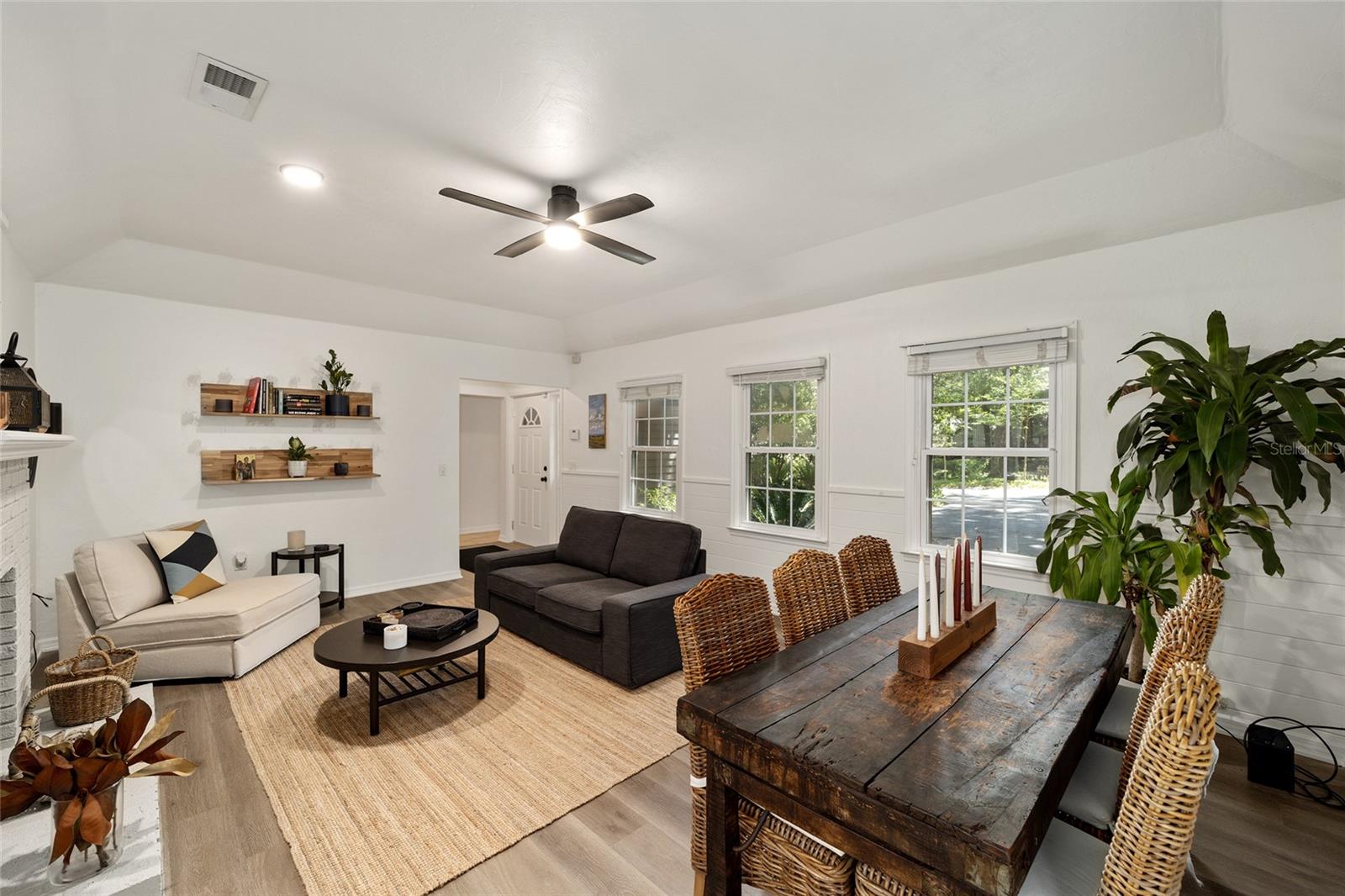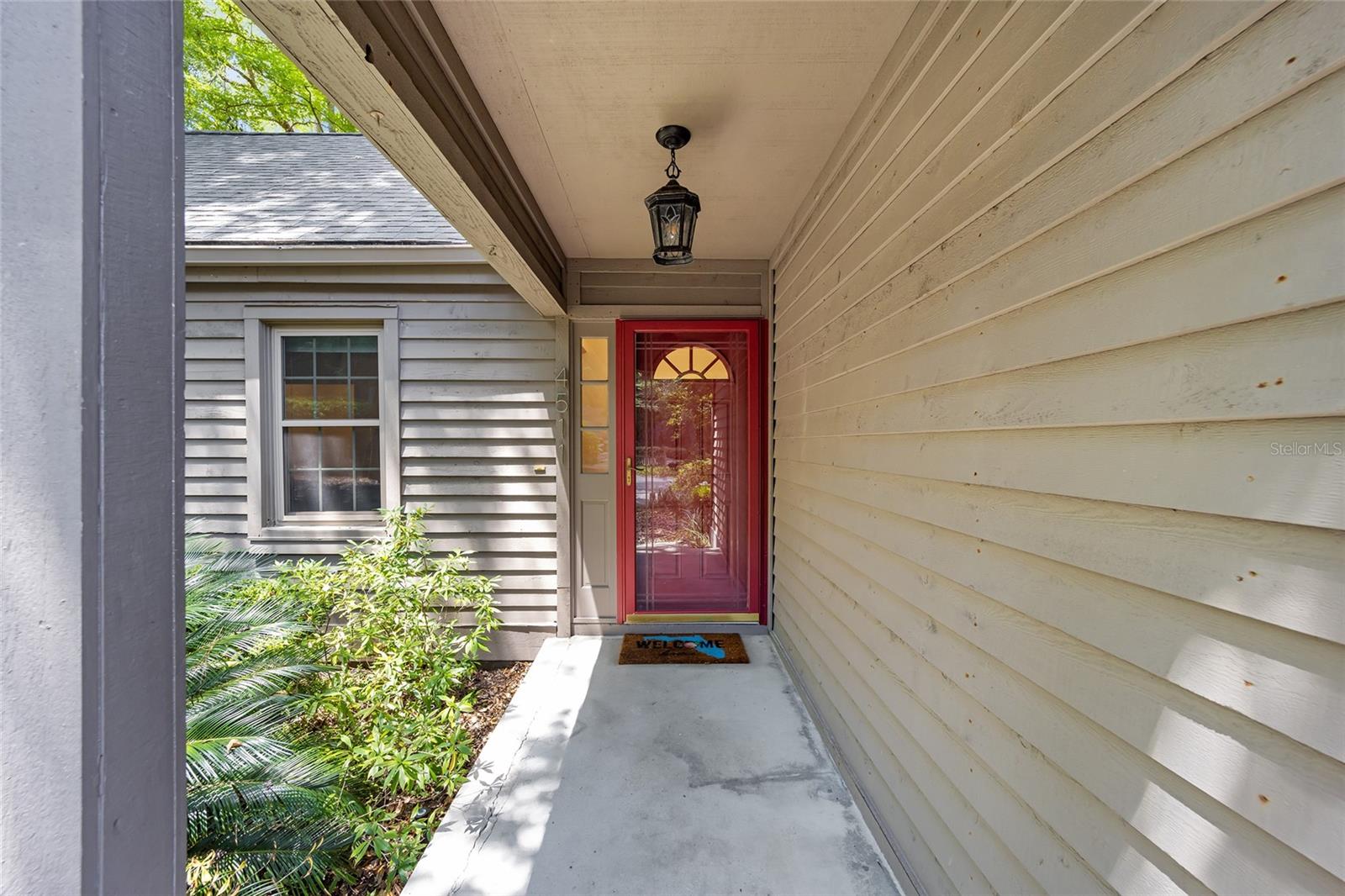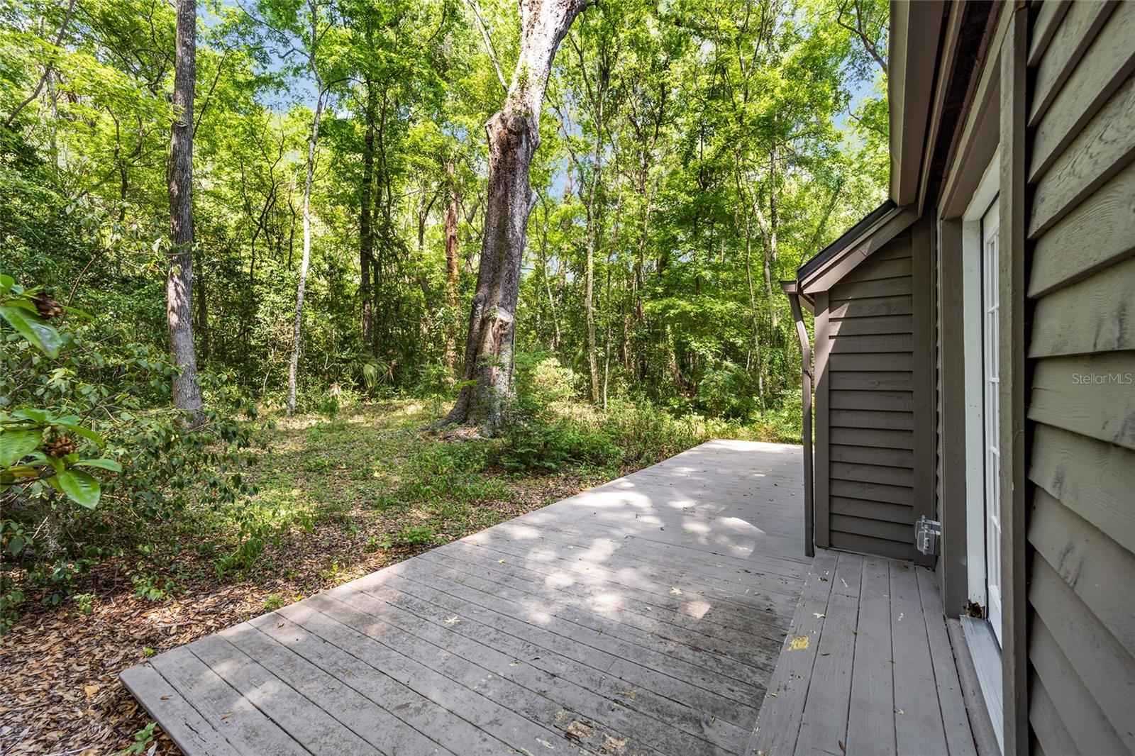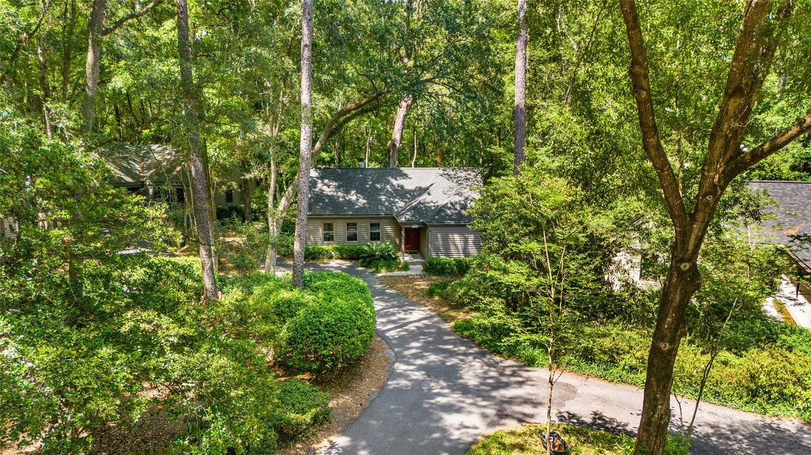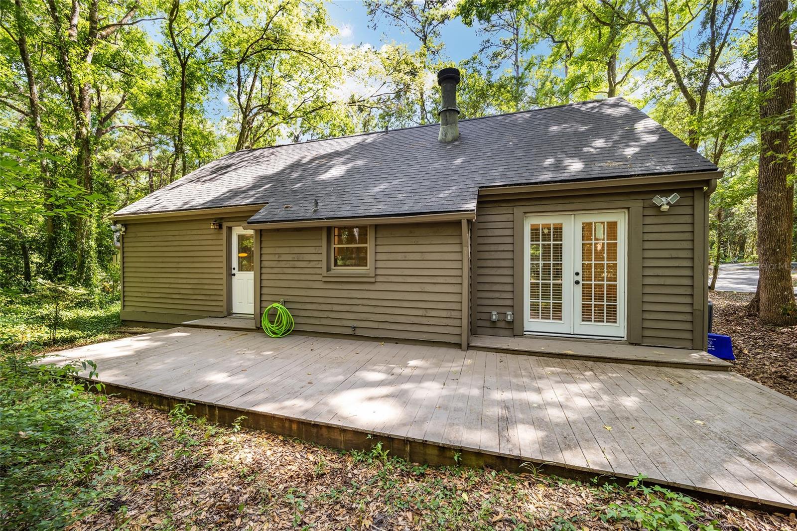 Welcome to this delightful 2-bedroom, 2 bathroom single-family home nestled in the highly sought-after Founders Hill community within Haile Plantation! This home is positioned on a quiet cul-de-sac offering privacy and tranquility. The foyer leads to an open spacious living area with a cozy wood burning fireplace and dining room. The kitchen has a small eat-in area and features stainless steel appliances, granite countertops and oversized travertine floors. Luxury vinyl plank flooring in the living/dining area and tile throughout the rest of the house. NO CARPET! French doors off the kitchen open to a wooden deck perfect for outdoor relaxation. New roof was installed in 2022 and HVAC was updated in 2016. Gas water heater and natural gas heating. Newer installed double insulated windows for enhanced energy efficiency. All the lighting has been updated to LED. Clearwave Water softener installed. One mile away from the heart of Haile Village with its many restaurants, shops and community events. This home combines timeless design with contemporary conveniences. Schedule your showing today to experience all this home has to offer.