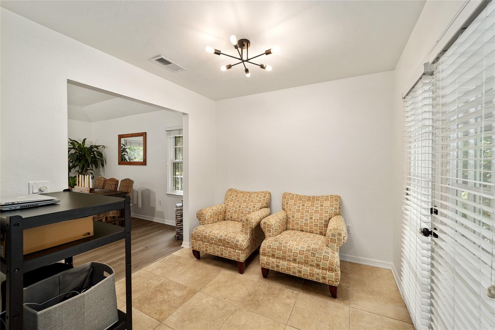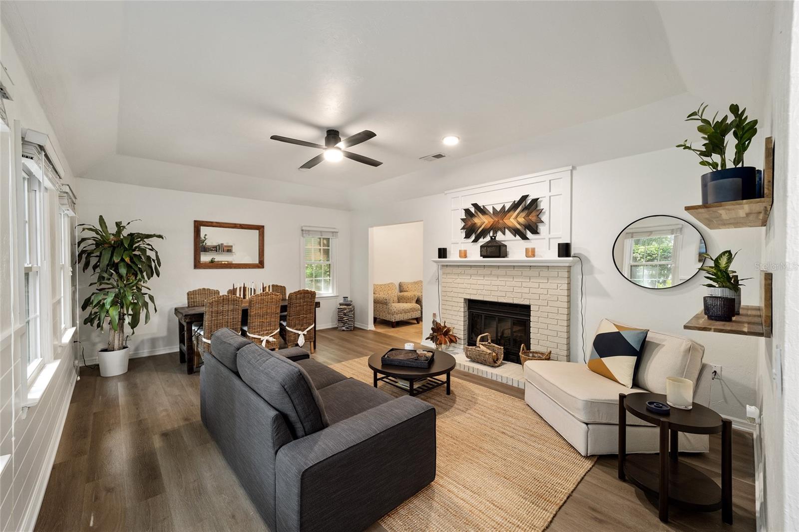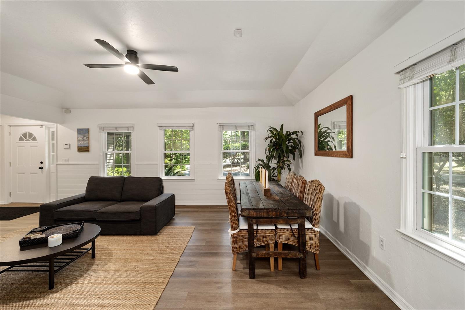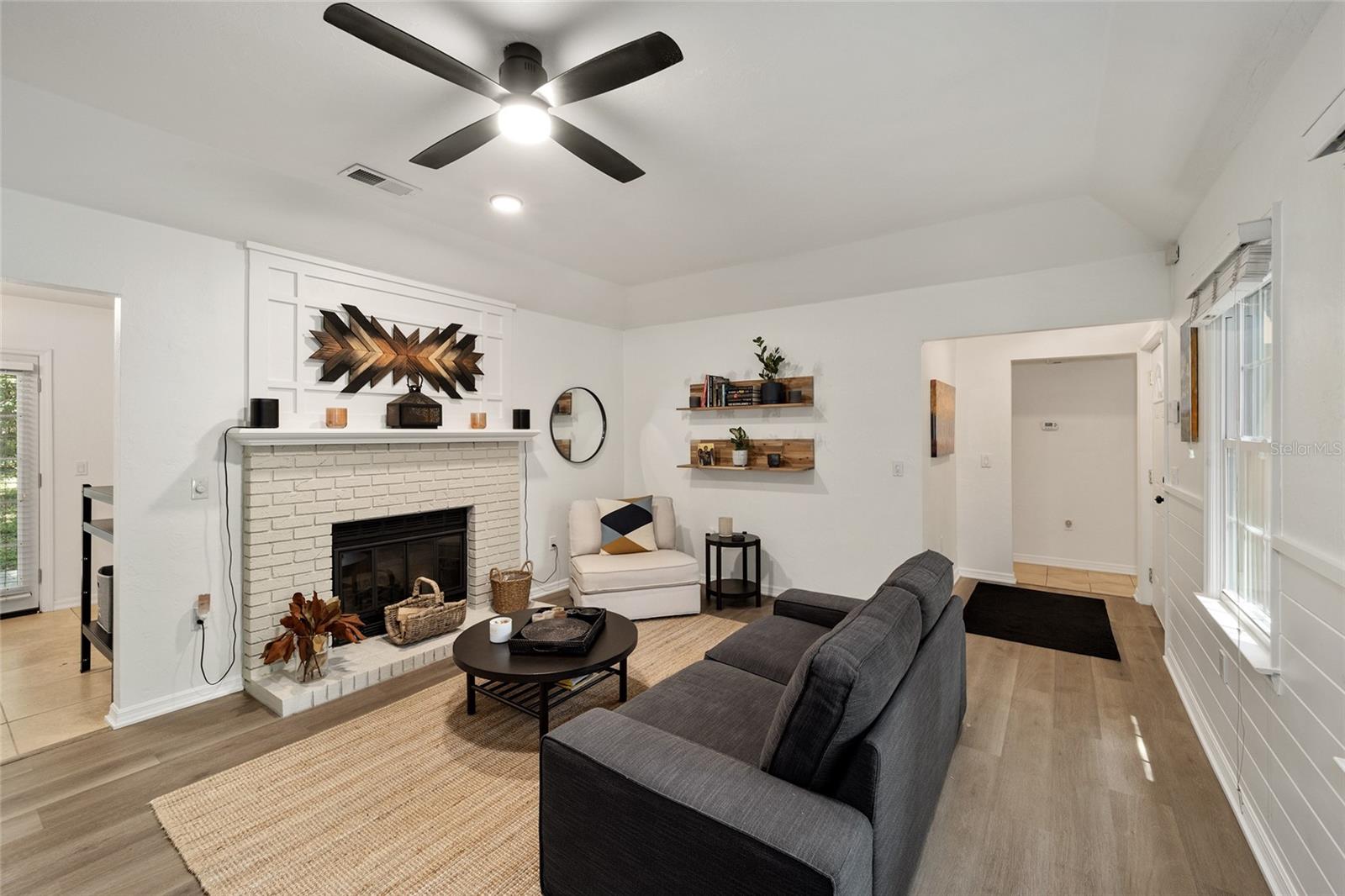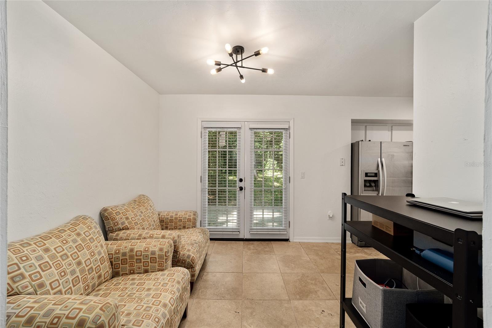 Welcome to this delightful 2-bedroom, 2 bathroom single-family home nestled in the highly sought-after Founders Hill community within Haile Plantation! This home is positioned on a quiet cul-de-sac offering privacy and tranquility. The foyer leads to an open spacious living area with a cozy wood burning fireplace and dining room. The kitchen has a small eat-in area and features stainless steel appliances, granite countertops and oversized travertine floors. Luxury vinyl plank flooring in the living/dining area and tile throughout the rest of the house. NO CARPET! French doors off the kitchen open to a wooden deck perfect for outdoor relaxation. New roof was installed in 2022 and HVAC was updated in 2016. Gas water heater and natural gas heating. Newer installed double insulated windows for enhanced energy efficiency. All the lighting has been updated to LED. Clearwave Water softener installed. One mile away from the heart of Haile Village with its many restaurants, shops and community events. This home combines timeless design with contemporary conveniences. Schedule your showing today to experience all this home has to offer.