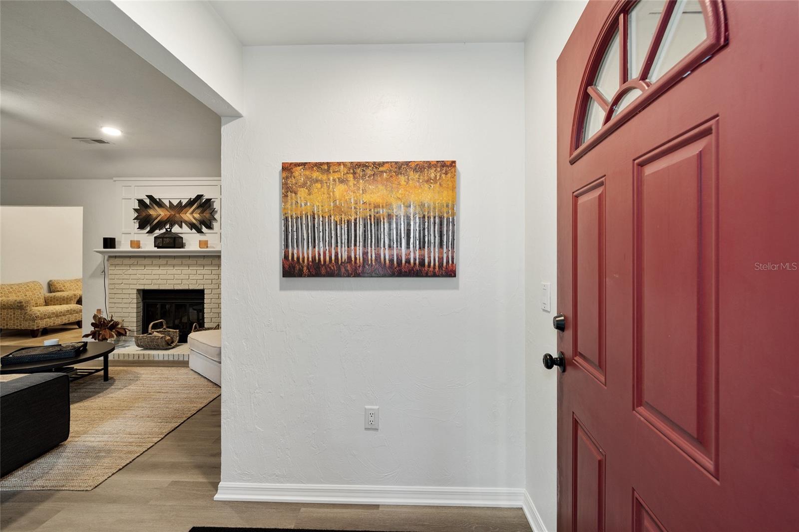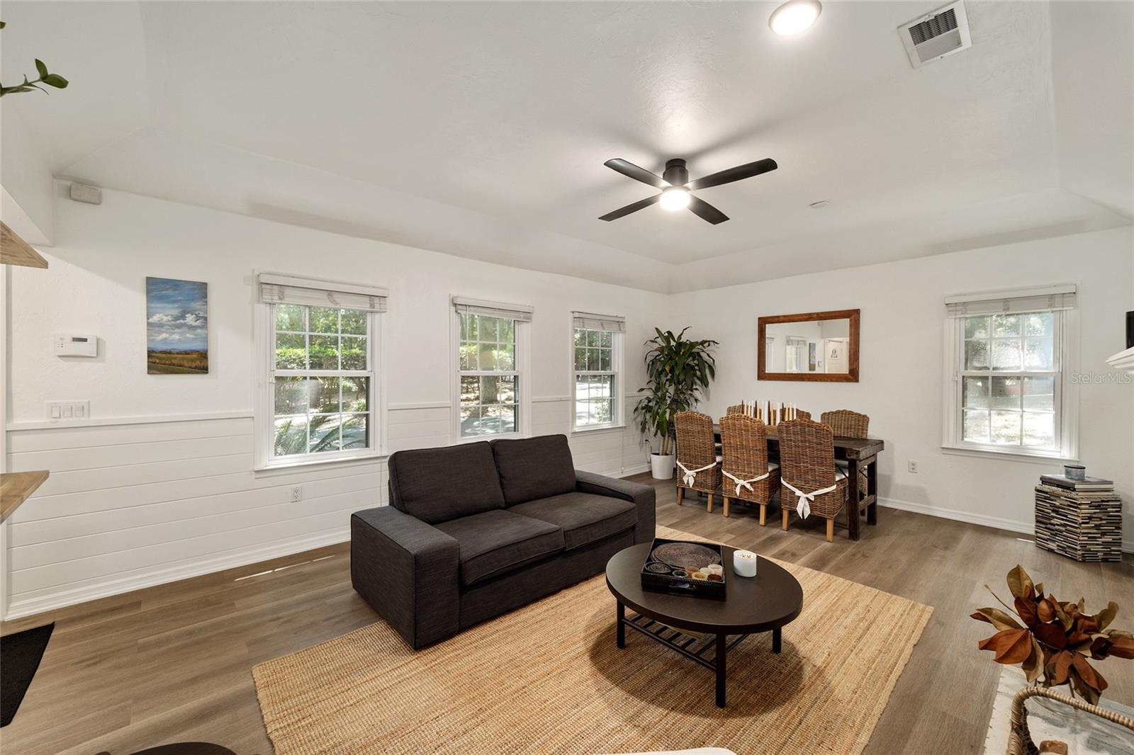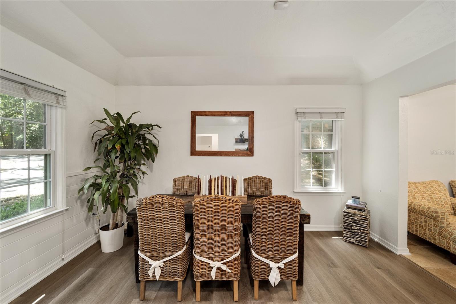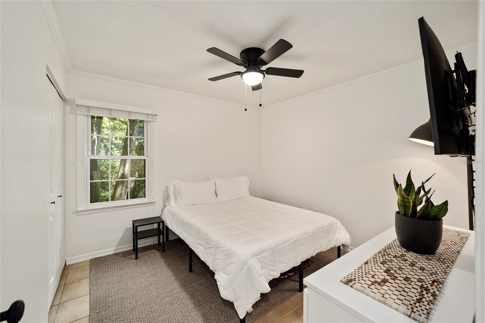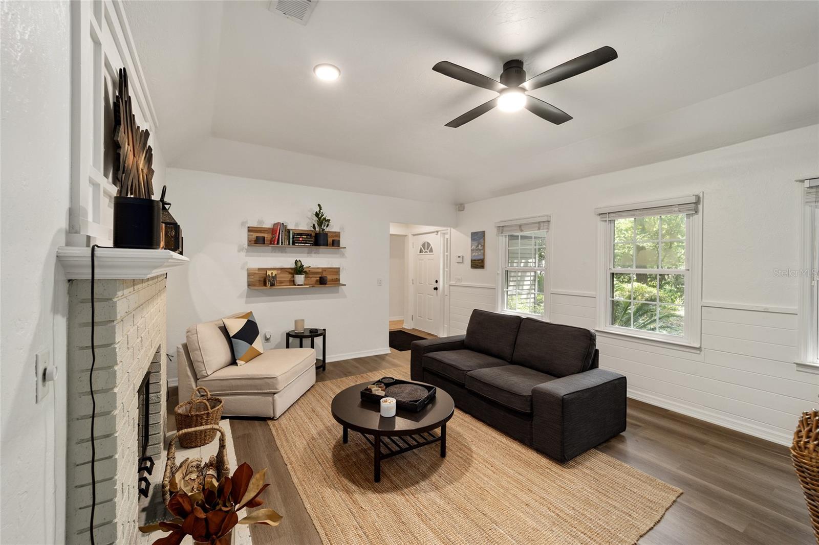 Welcome to this delightful 2-bedroom, 2 bathroom single-family home nestled in the highly sought-after Founders Hill community within Haile Plantation! This home is positioned on a quiet cul-de-sac offering privacy and tranquility. The foyer leads to an open spacious living area with a cozy wood burning fireplace and dining room. The kitchen has a small eat-in area and features stainless steel appliances, granite countertops and oversized travertine floors. Luxury vinyl plank flooring in the living/dining area and tile throughout the rest of the house. NO CARPET! French doors off the kitchen open to a wooden deck perfect for outdoor relaxation. New roof was installed in 2022 and HVAC was updated in 2016. Gas water heater and natural gas heating. Newer installed double insulated windows for enhanced energy efficiency. All the lighting has been updated to LED. Clearwave Water softener installed. One mile away from the heart of Haile Village with its many restaurants, shops and community events. This home combines timeless design with contemporary conveniences. Schedule your showing today to experience all this home has to offer.