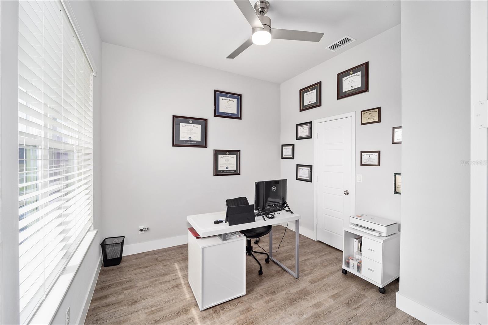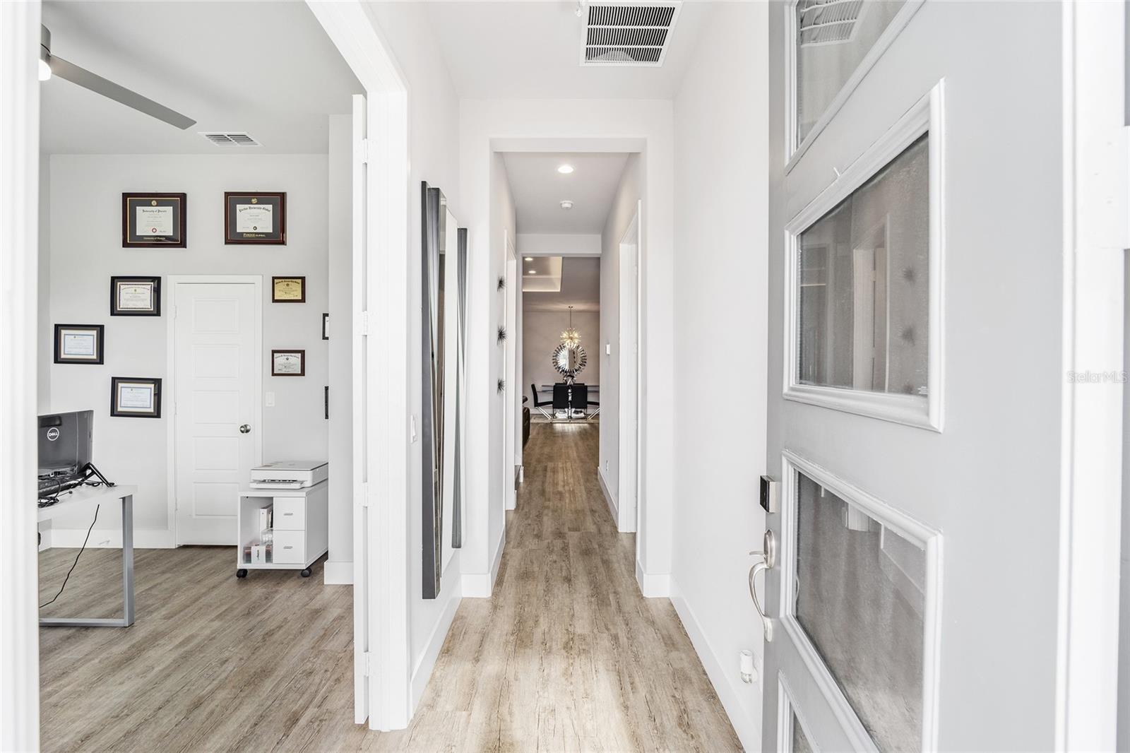 Discover the epitome of modern living in the desirable Grand Preserve community with this Skobel Homes built Pearl floor plan. This 4-bedroom, 2.5-bath home is thoughtfully designed and Energy Star certified for maximum efficiency. Featuring spray foam attic insulation, a tankless gas water heater, and vinyl low-e insulated windows, it offers unparalleled comfort and sustainability. The home is fully set up as a Smart Home. Everything from the doors, thermostat, alarm, to all of the downstairs and upstairs lights are connected to an app on your phone and is set for voice recognition. Don't you love the idea of walking inside and telling your house to turn the lights on?! You have it here! Step inside to find the primary bedroom and a versatile study conveniently located on the main floor, while two additional bedrooms, a loft, and a full bath await upstairs. The great room impresses with an 11" tray ceiling adorned with elegant crown molding, creating a spacious and inviting atmosphere. There is NO CARPET at all and the LVP flooring throughout is designed to keep your feet warm in the winter and cool in the summer. The two car garage allows for parking to beat the weather and the front street parking is excellent for visitors! The screen porch is equipped with sliding screen doors so you can decide if you want to work in the small yard without disruption from opening doors to go in and out or sit in your screened porch at sundown not distracted from the mosquitos or gnats.This is a truly lovely, spacious home obviously loved and maintained so much that is it better than brand new. The Homeowners Association (HOA) fee covers lawn maintenance, high-speed fiber-optic internet, and full cable TV service with DVR, allowing you to enjoy a hassle-free lifestyle. The community amenities include a clubhouse, pool, workout room, playground, paved jogging trail, and access to Clay Electric services. This home combines luxury, efficiency, and a vibrant community setting—an opportunity not to be missed!