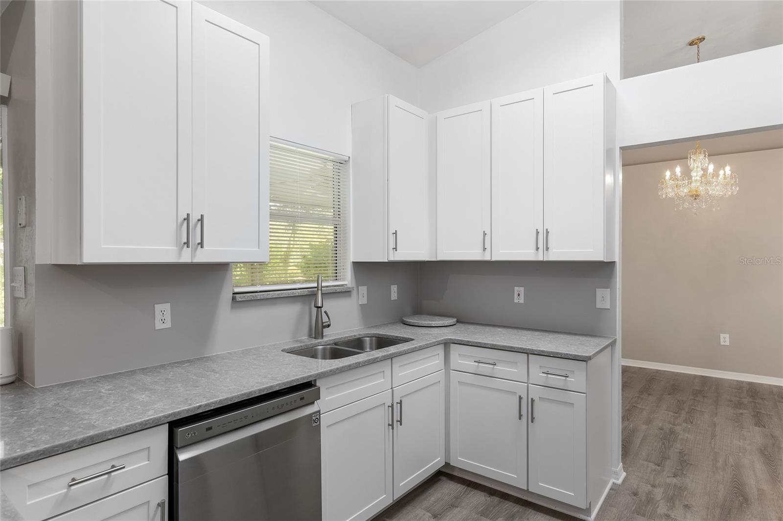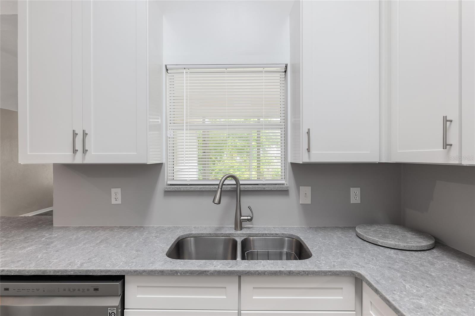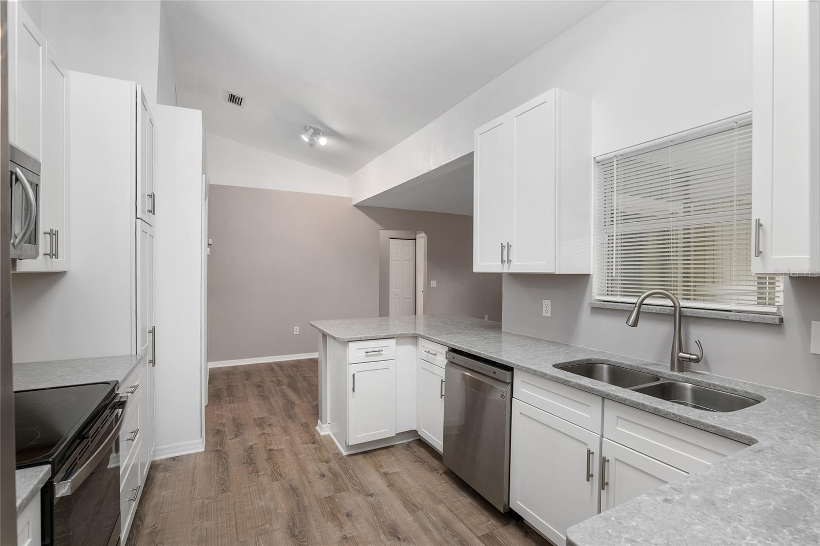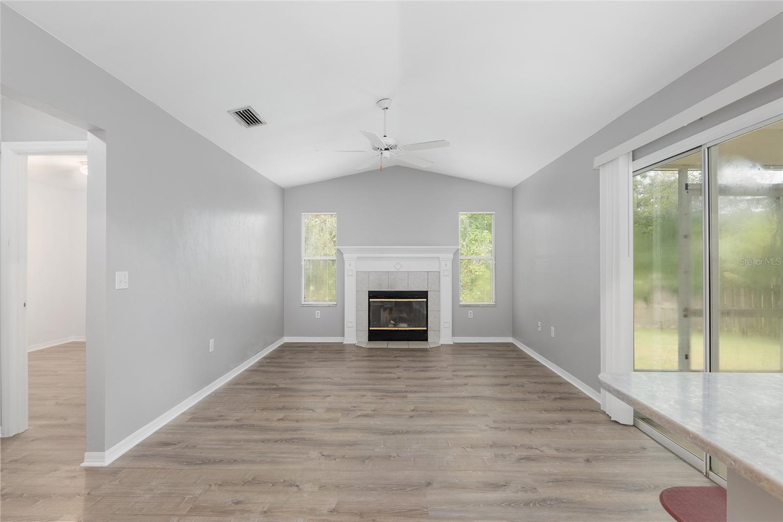 Don’t miss out on this newly renovated 3-bedroom 2-bathroom home located in the desired area of northwest Gainesville. This home is truly turn key. Features include beautiful life proof and water proof luxury vinyl flooring with interior completely painted. Custom installed soft close kitchen cabinetry, luxurious quartz counter tops and stainless steel appliances. This 1592sqft home consist of high vaulted ceilings, split floor plan with open dinning and living space and enjoy taking in the coziness of a wood burning fire place during season. In addition, there’s a separate formal dinning area and great room which brings plenty of space for guest. Primary room features trey ceilings, upgraded vanity with soft close cabinets, dual sinks and walk-in closet space. Sliding glass doors lead to an enclosed screened lanai which provides more space for all sorts of activities and a one-of-a-kind environment. Enjoy your privacy bc this .19 lot home is fully fenced surrounding the retention pond out back. Additional features include a new roof, under ground sprinkler system, washer/dryer and a Simply Safe full home security system. This is a great home and ideal location for the next new owner.