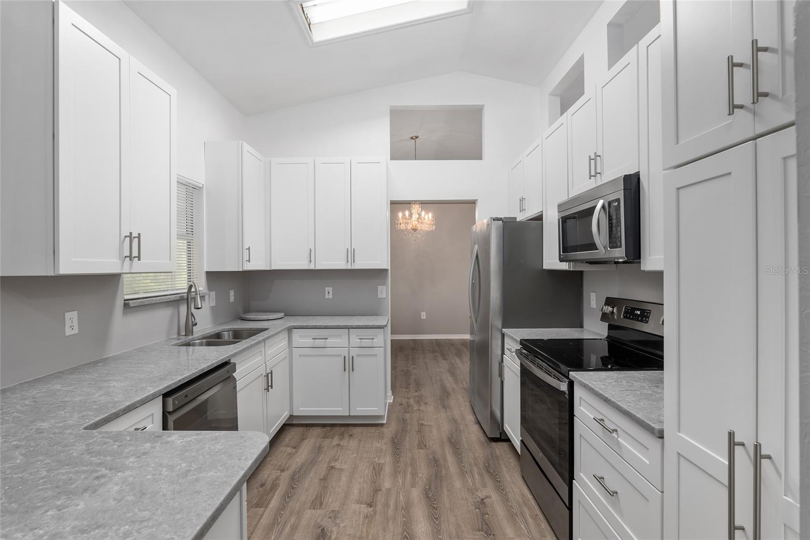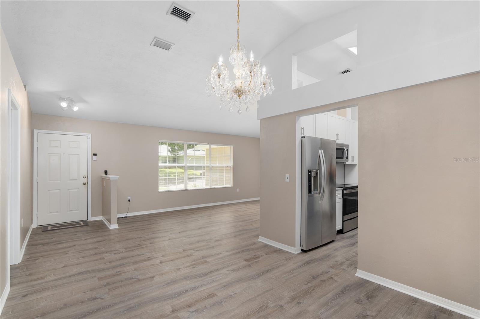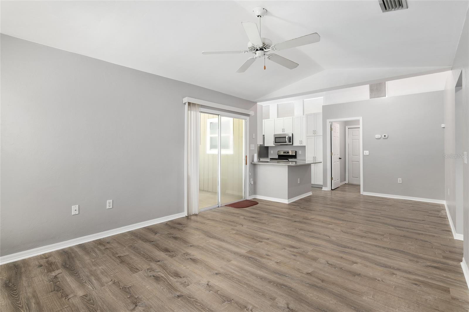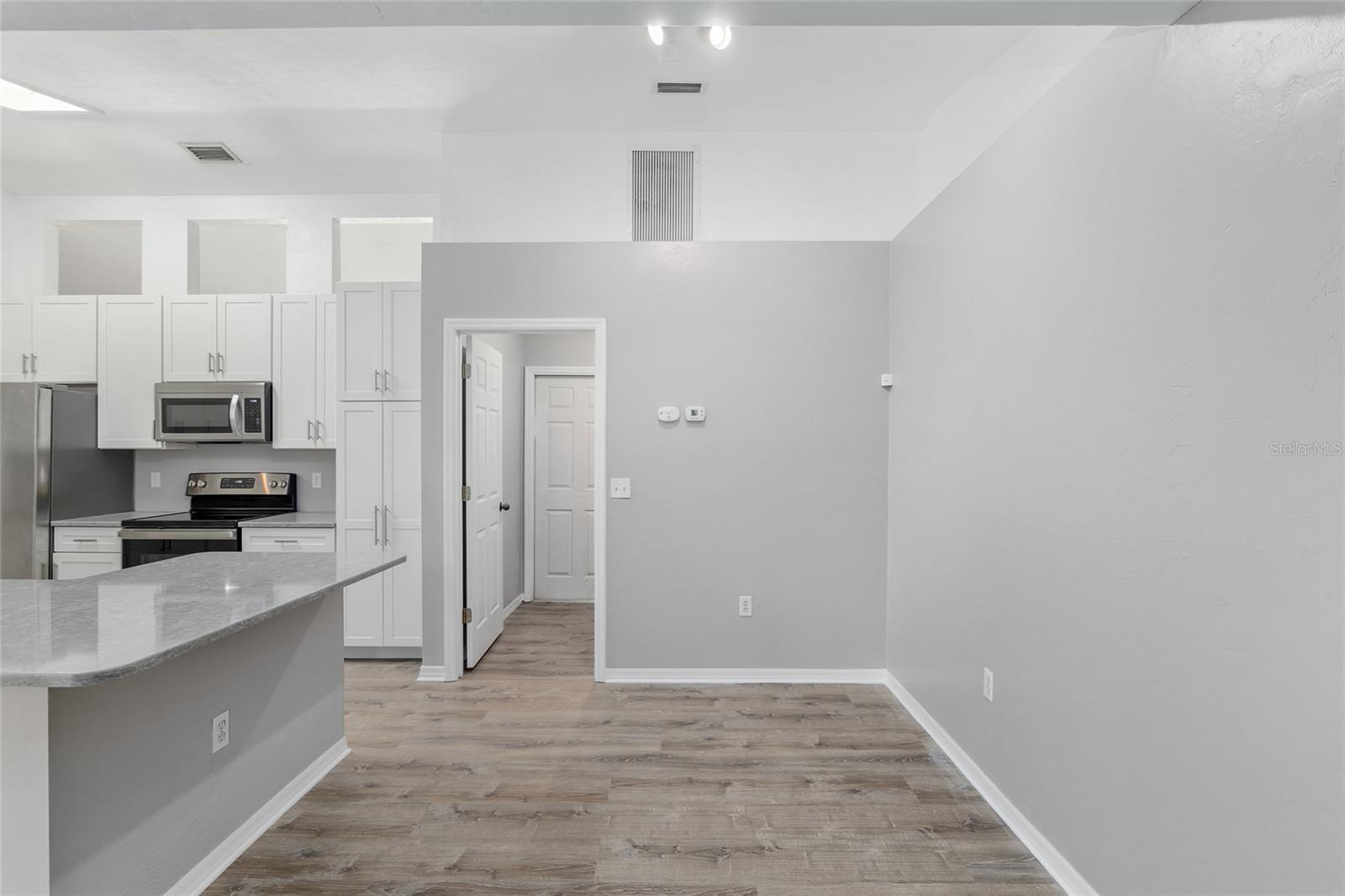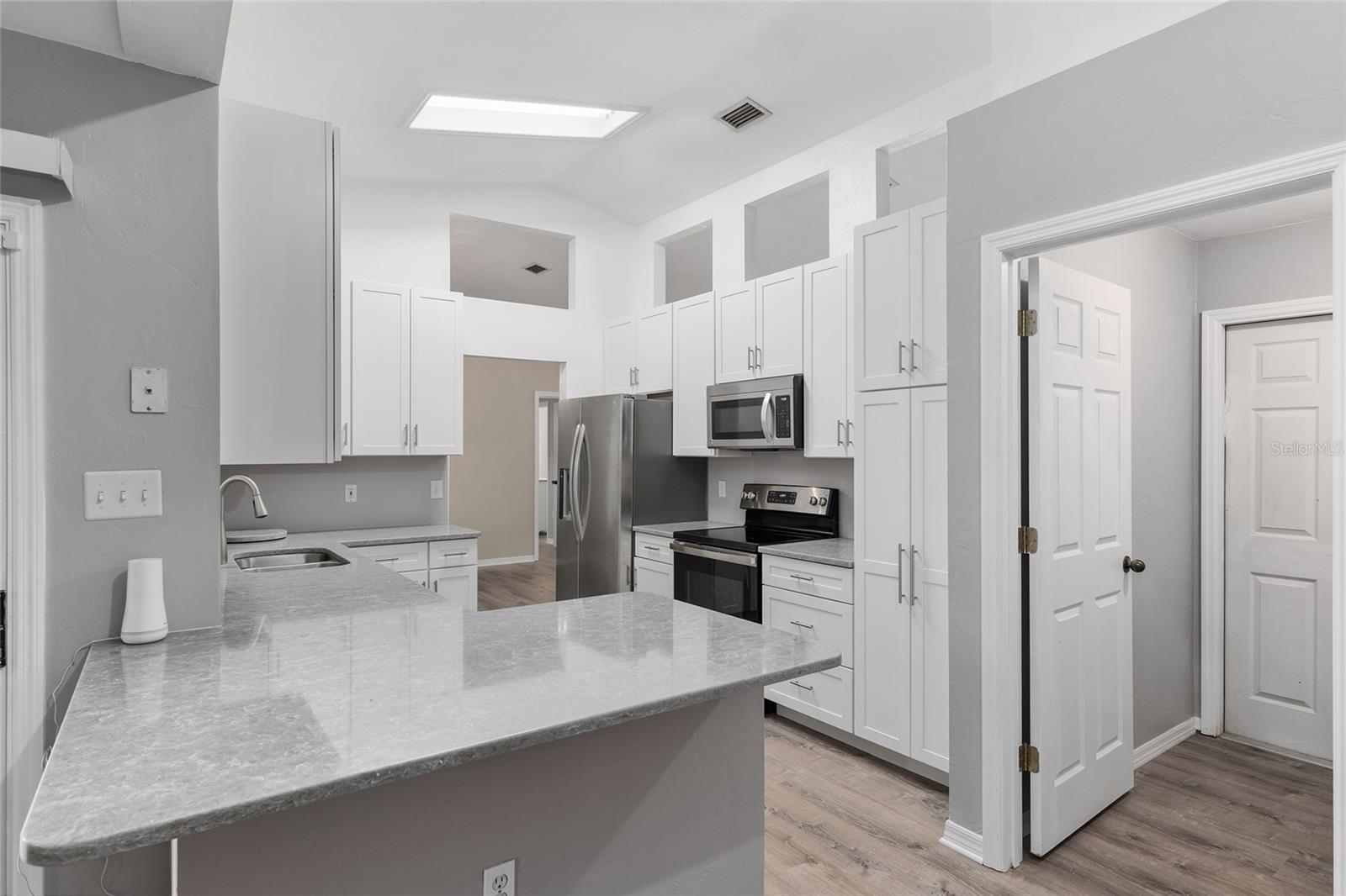 Don’t miss out on this newly renovated 3-bedroom 2-bathroom home located in the desired area of northwest Gainesville. This home is truly turn key. Features include beautiful life proof and water proof luxury vinyl flooring with interior completely painted. Custom installed soft close kitchen cabinetry, luxurious quartz counter tops and stainless steel appliances. This 1592sqft home consist of high vaulted ceilings, split floor plan with open dinning and living space and enjoy taking in the coziness of a wood burning fire place during season. In addition, there’s a separate formal dinning area and great room which brings plenty of space for guest. Primary room features trey ceilings, upgraded vanity with soft close cabinets, dual sinks and walk-in closet space. Sliding glass doors lead to an enclosed screened lanai which provides more space for all sorts of activities and a one-of-a-kind environment. Enjoy your privacy bc this .19 lot home is fully fenced surrounding the retention pond out back. Additional features include a new roof, under ground sprinkler system, washer/dryer and a Simply Safe full home security system. This is a great home and ideal location for the next new owner.