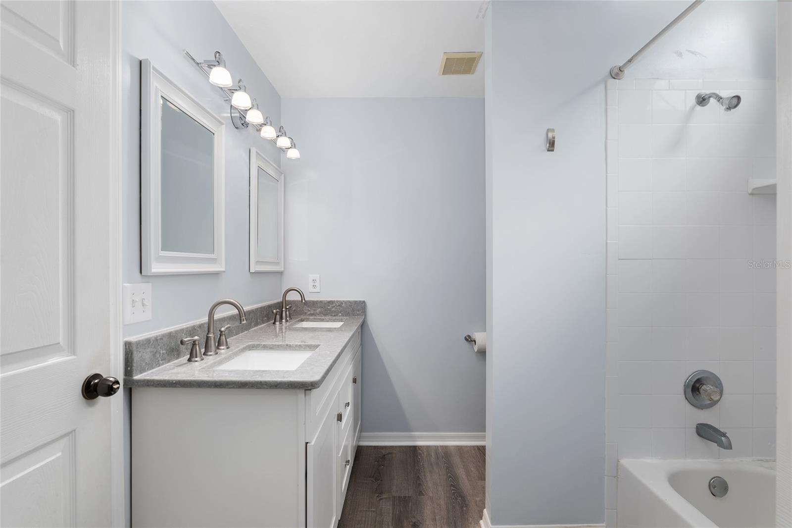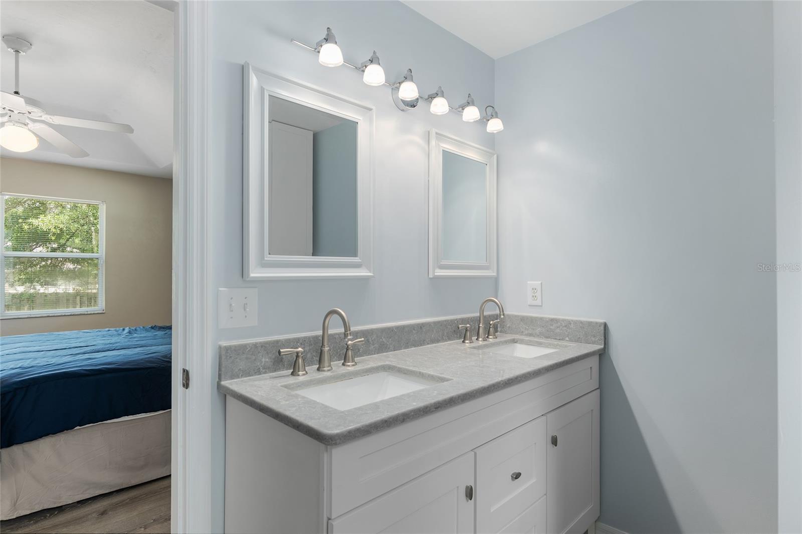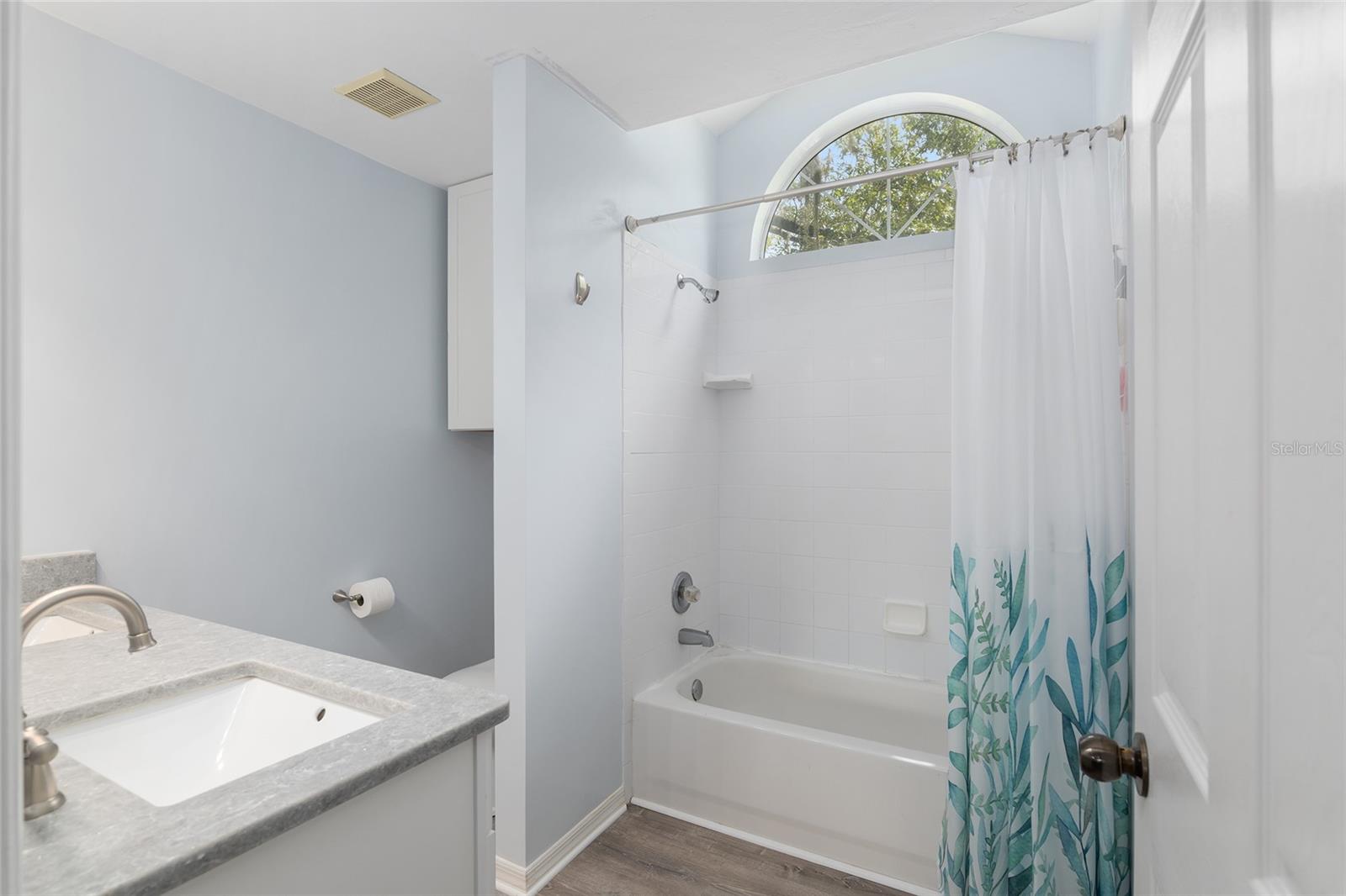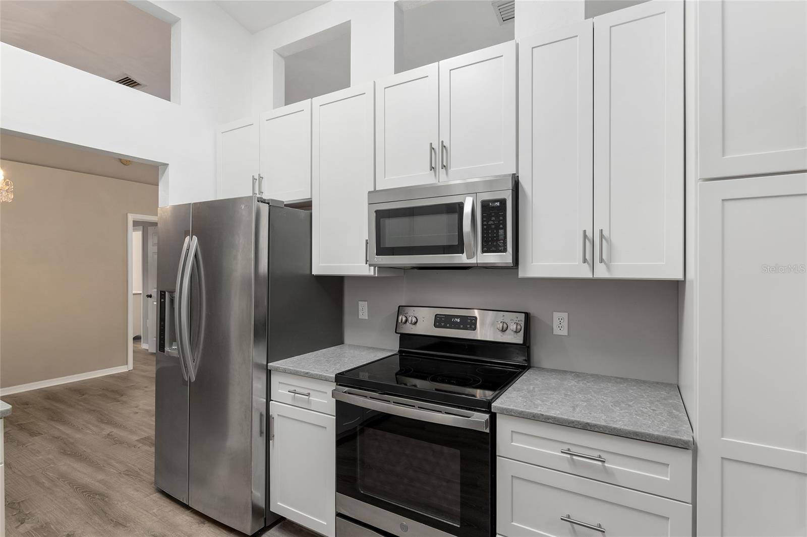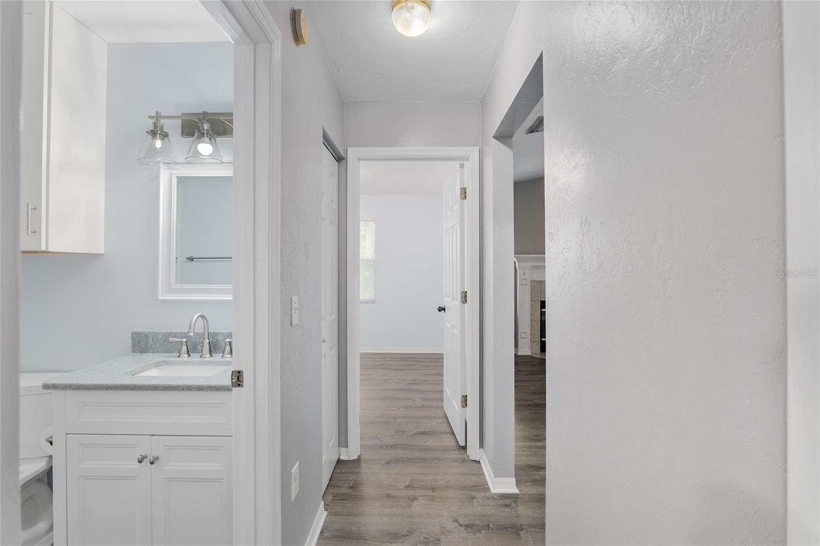Don’t miss out on this newly renovated 3-bedroom 2-bathroom home located in the desired area of northwest Gainesville. This home is truly turn key. Features include beautiful life proof and water proof luxury vinyl flooring with interior completely painted. Custom installed soft close kitchen cabinetry, luxurious quartz counter tops and stainless steel appliances. This 1592sqft home consist of high vaulted ceilings, split floor plan with open dinning and living space and enjoy taking in the coziness of a wood burning fire place during season. In addition, there’s a separate formal dinning area and great room which brings plenty of space for guest. Primary room features trey ceilings, upgraded vanity with soft close cabinets, dual sinks and walk-in closet space. Sliding glass doors lead to an enclosed screened lanai which provides more space for all sorts of activities and a one-of-a-kind environment. Enjoy your privacy bc this .19 lot home is fully fenced surrounding the retention pond out back. Additional features include a new roof, under ground sprinkler system, washer/dryer and a Simply Safe full home security system. This is a great home and ideal location for the next new owner.