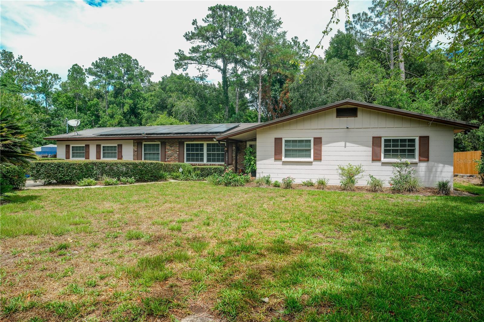 ***Seller Highly Motivated to sell !!!! Welcome to this rare and captivating gem set on .58 acres consisting of an en-suite Master Bedroom and bath, a Sitting Room off the master bedroom, 3 Additional Bedrooms, 2 additional full Bathrooms, and a Home Office. This 2184 sq ft open setting home has gone through extensive renovations in 2011, including a Metal Roof (2011), Solar Panels (2022), Dual Zone HVAC System (2022), Attic Solar Ventilation System (2020), Water Heater (2023), Plumbing (2022), and Healthy Home Environmental Probiotic System (2020). To further compliment this home, it has luxury Vinyl Flooring throughout, a Screened Porch viewed through Double French Doors, and a backyard Storage Shed. In addition, the spacious back yard has Lemon, Lime, Grapefruit (2 varieties), Fig, and Orange (3 varieties), trees, all of which are fruit-bearing. This exquisite property is in the highly sought-after Northwood Subdivision and only a 10-minute drive from the University of Florida. This property is a rare gem that has amenities beyond the norm. Solar Panels will be paid off at closing. Utility bill average $17 dollar month. No HOA!! Schedule your showing appointment today!!