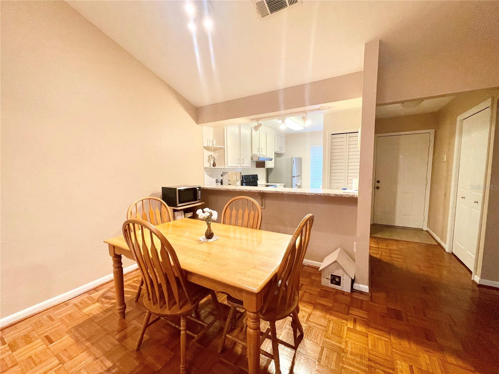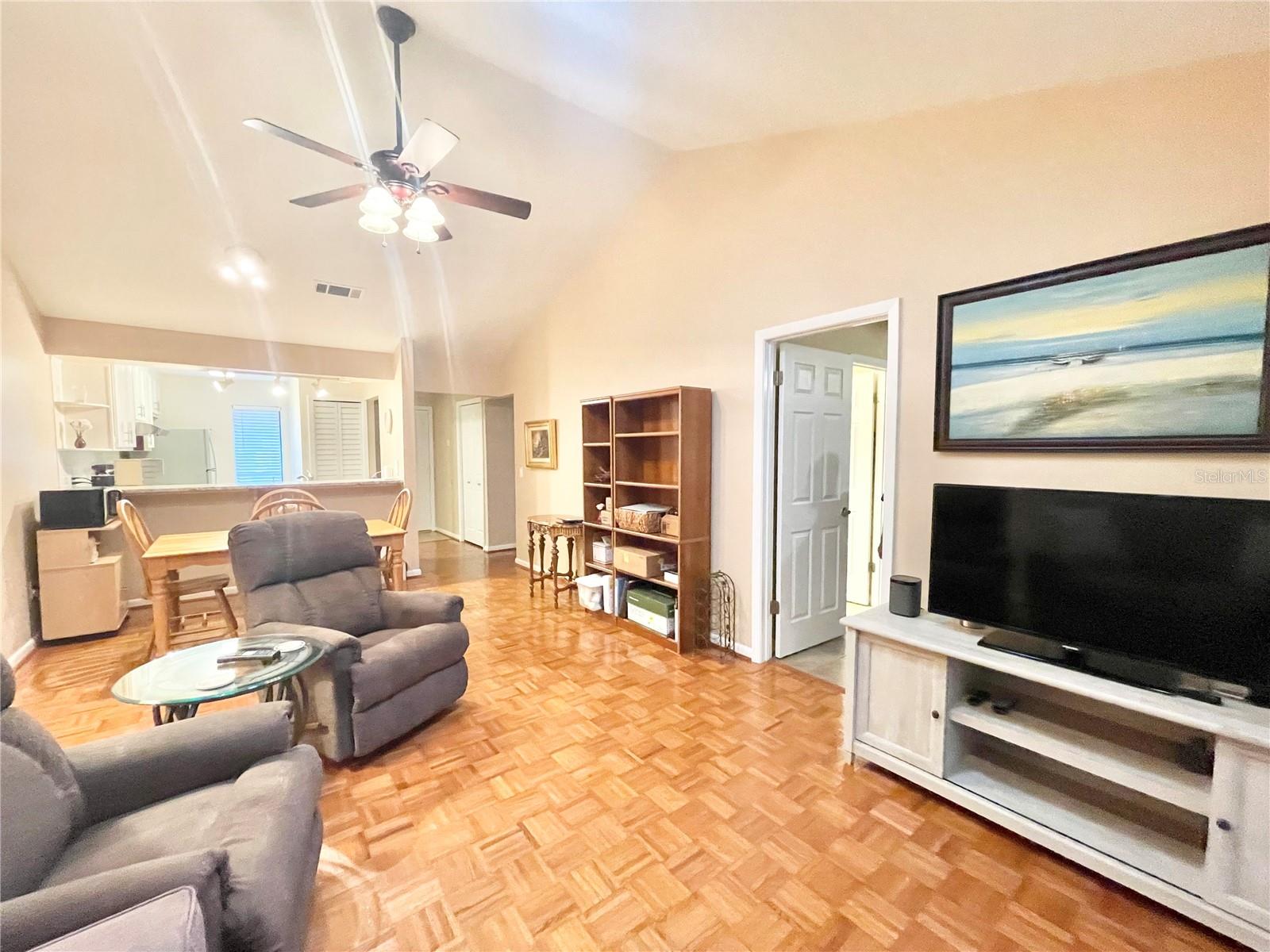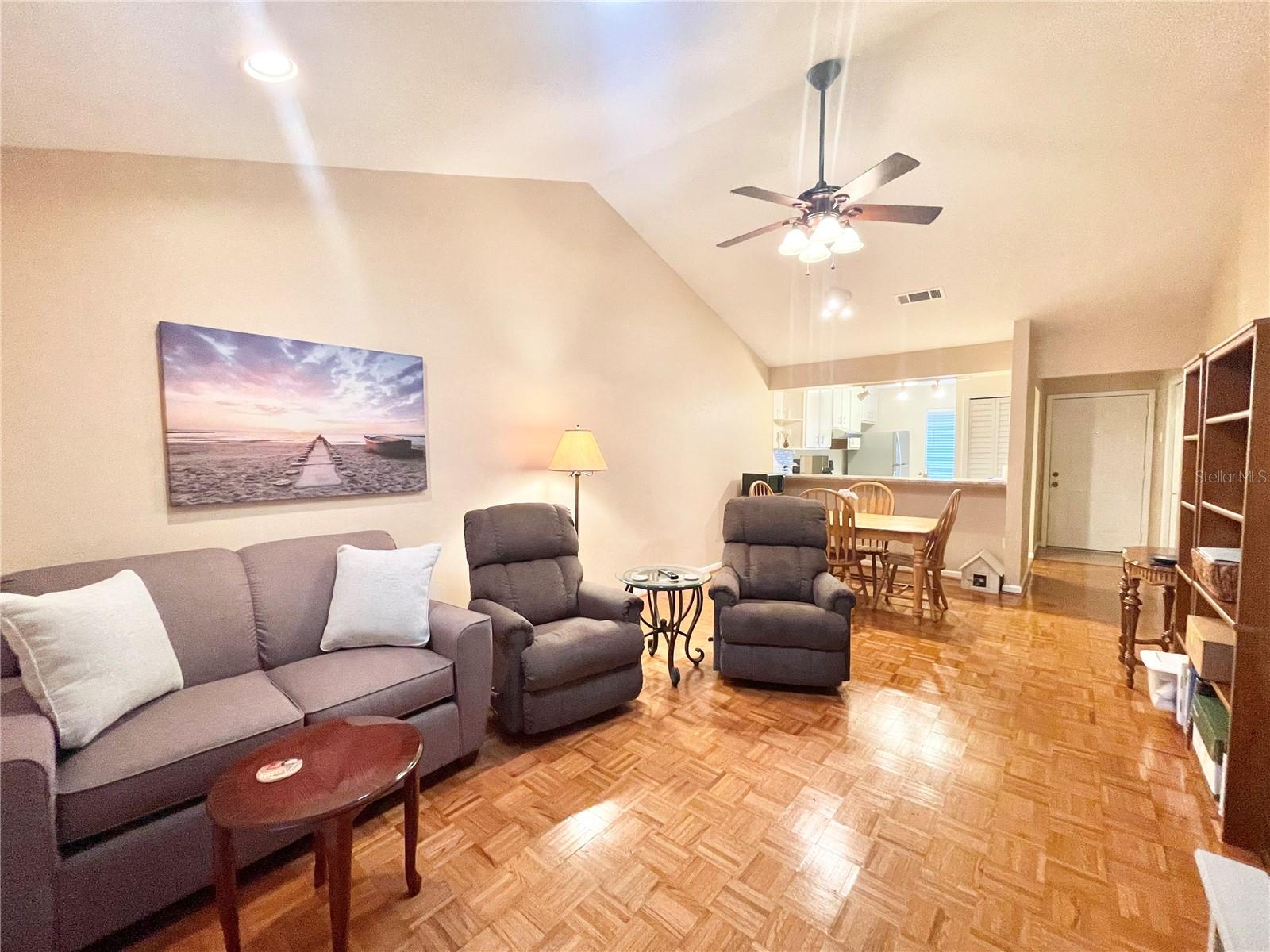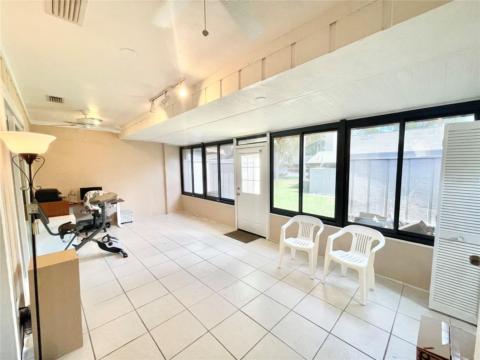 VA assumable mortgage with a 2.49% interest rate with principal and interest payments of $535.14! Maintenance free living in Mile Run! Take a look at this 2 bedroom 2 bath single family attached corner unit in beautiful NW community of Mile Run. The one story end unit has vaulted ceilings in great room and dining area. Ceramic tile floors in the kitchen, bedrooms and baths plus wood parquet flooring in great room, hallway and dining area. The fully equipped kitchen had updated appliances and recent countertops. There is an enclosed Florida room/ bonus room towards the back with a laundry room and storage closet. The primary bedroom is spacious and has an adjacent bathroom and walk-in closet. The guest bedroom is also a good size and has a full bath right next to it. Unit comes with 2 reserved parking spots. Other updates include water heater in 2021, sink, counter, disposal and faucet in 2020, Fridge 2019, AC 2016. Mile Run community takes care of the exterior of the home, including the roof, yard and insurance for $225.00 per month. And for an additional $35 per month the Mile Run recreational area includes pool, clubhouse, playground, park, tennis court and racquetball court.