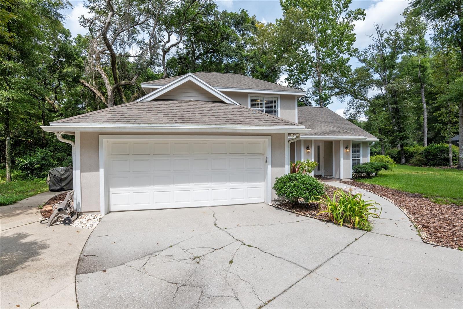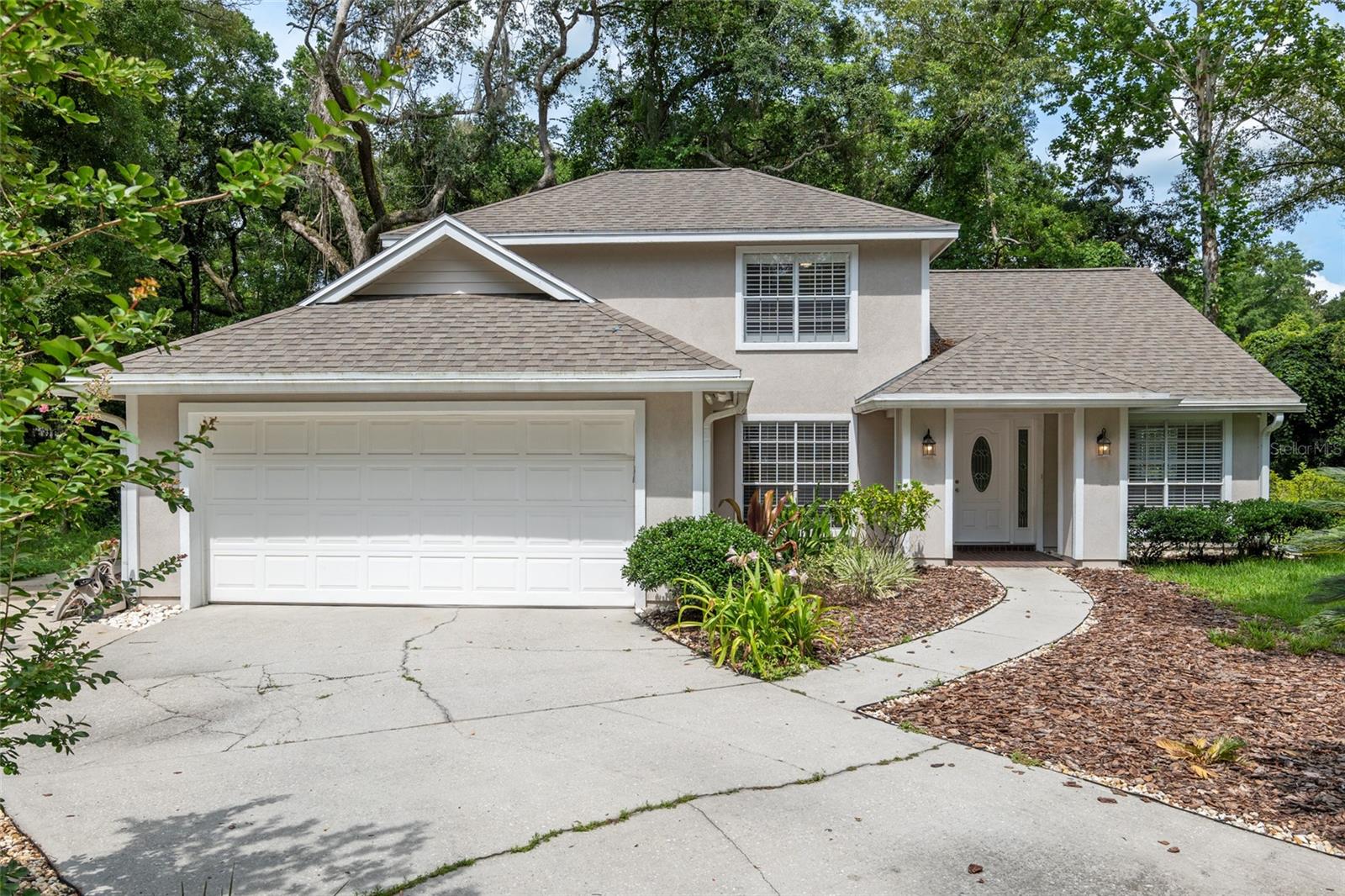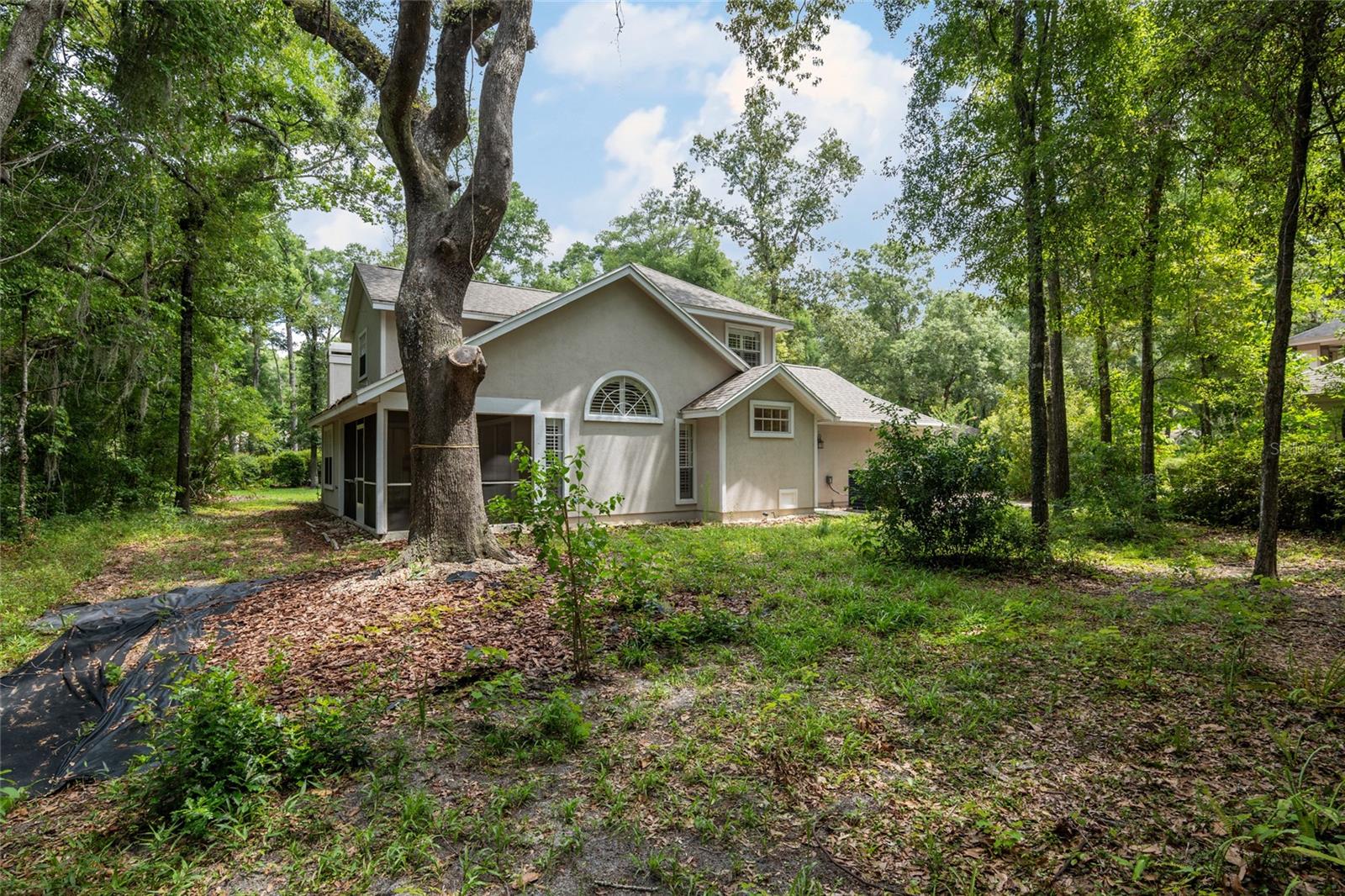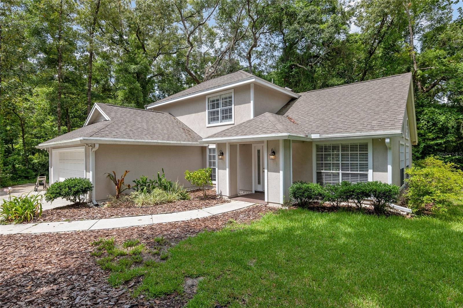 This darling two-story Haile Plantation Matheson Woods house is located literally in the heart of Haile, just one block from the members’ only Hawkstone Country Club, and footsteps away from accessing the 13.5 miles of paved walking paths that meander throughout this SW Gainesville subdivision. Tucked away in the cul de sac is this 4-bedroom, 2.5 bath home with 2063 SF is move-in ready with FRESH interior paint and laminate flooring in all of the living spaces downstairs. As you enter the home, the dining space is immediately to your left. This room features Plantation Shutters, east-facing windows, and a direct access to a hallway that connects the dining space with the kitchen. The front living space has a vaulted ceiling; use this room for a secondary family room or bonus space. The family room has a corner wood-burning fireplace with custom mantle, and a set of sliding glass doors that offer direct views of the private rear yard. The family room and kitchen connect, with a spacious breakfast nook adjacent to both. There is a sliding glass door that opens onto the corner screen enclosed rear porch, also with views of the private backyard. The kitchen has an ample amount of perimeter cabinetry, and a center prep island. Just outside the kitchen is the pantry, which is conveniently located between the kitchen and the garage for easy, quick storage when coming home from the grocery store. The hallway that connects the kitchen/pantry and the dining room. Within this hallway is a convenient half bath for guests and a large, under-staircase storage closet. The master bedroom is downstairs, and features brand new high-end laminate flooring, including the walk-in closet. The en suite master bathroom features a soaking tub, a separate walk in shower and a double sink vanity. Upstairs you will find three guest rooms. The guest room on the left has a wall of custom built-ins, making this room a perfect home office, playroom, or as a guest suite. The second guest bedroom has a custom closet organizational system. Between these two guest rooms and the third guest room is a double door hallway closet. Across from this closet is the full hallway bath. The home’s additional features include a 2015 architectural shingle roof, a 2015 energy efficient gas water heater, a 2016 HVAC system, and a separate laundry room with washer and dryer. Matheson Woods is within a short walk or bike ride to the Haile Village Center where you will enjoy local restaurants, shopping, a coffee shop, and recreational facilities. Haile Plantation is an award-winning golf course community, where you can join the Club to enjoy the members’ only 18-hole Gary Player golf course, two pools, a Club restaurant, tennis and pickleball courts, and a fitness facility. Zoned for top notch Gainesville schools, this home’s location can’t be beat.
