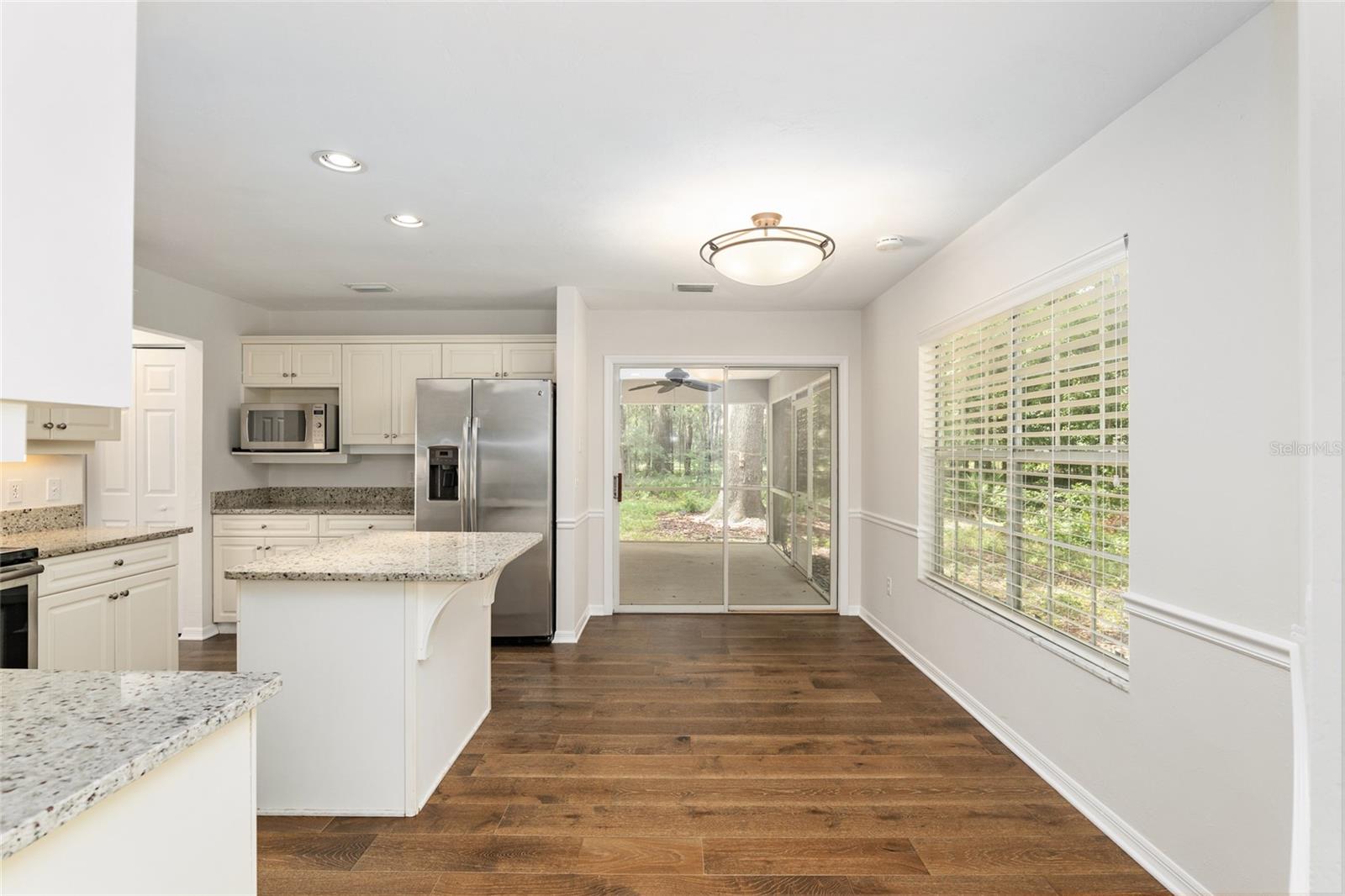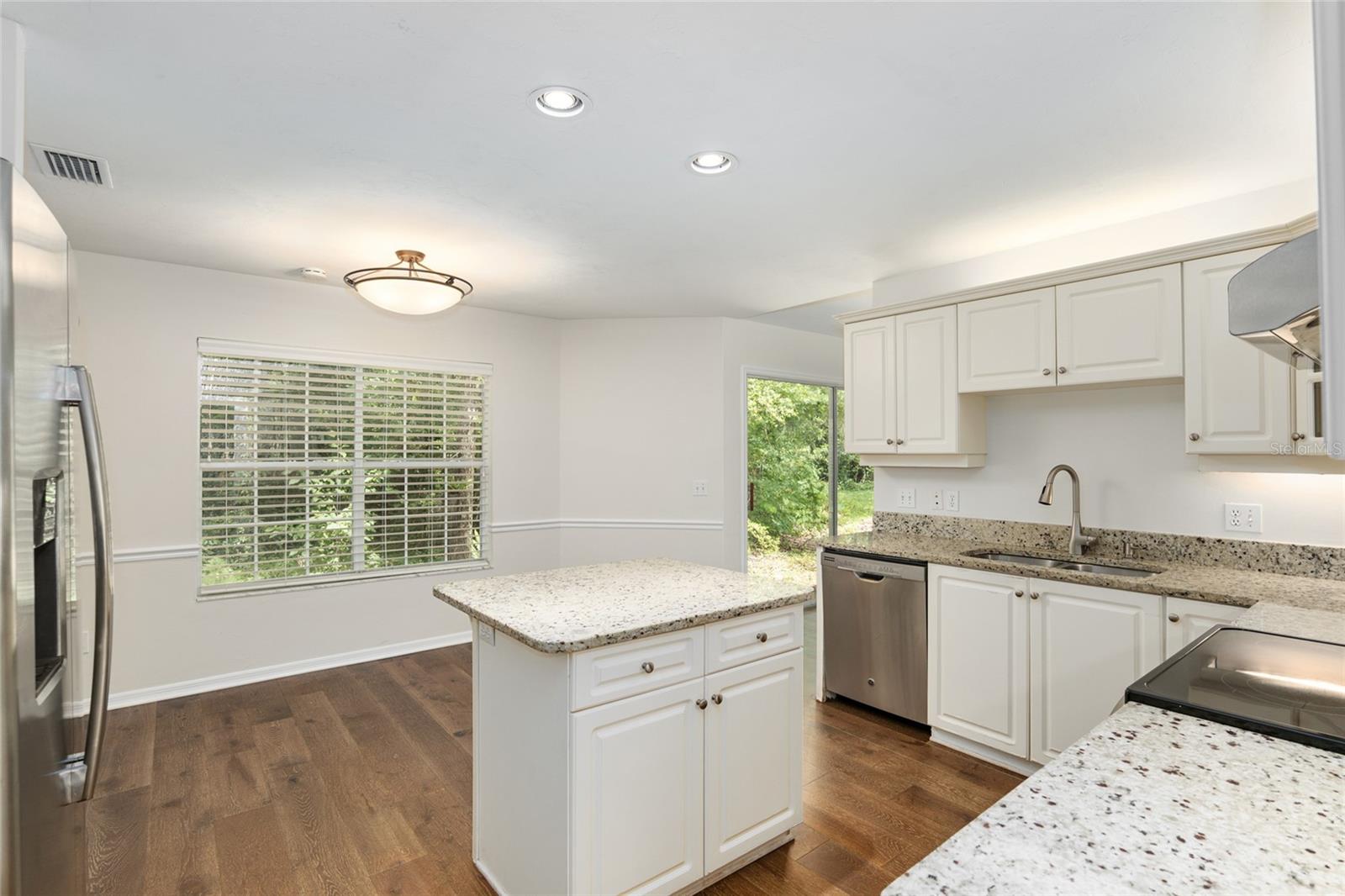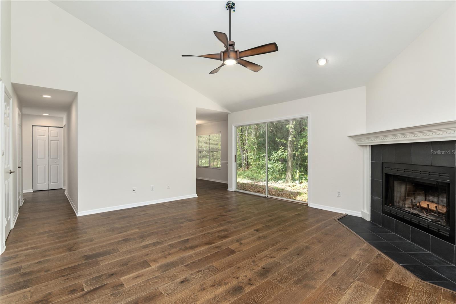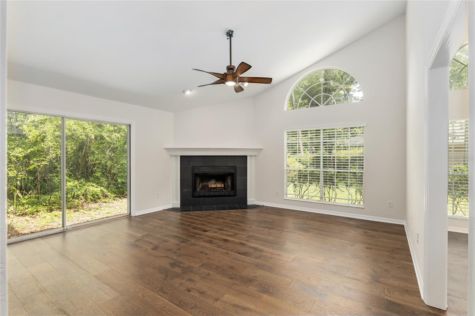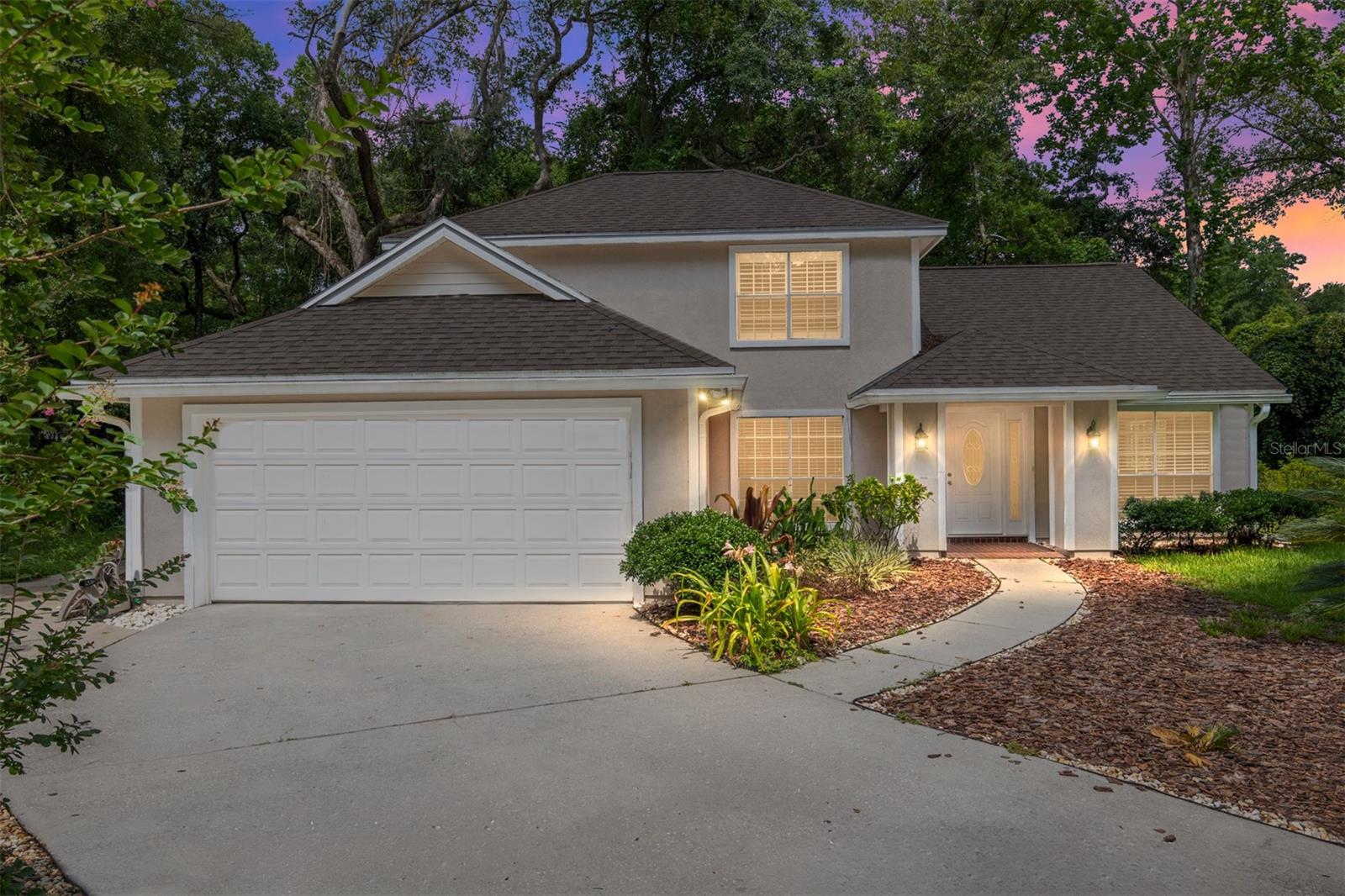 This darling two-story Haile Plantation Matheson Woods house is located literally in the heart of Haile, just one block from the members’ only Hawkstone Country Club, and footsteps away from accessing the 13.5 miles of paved walking paths that meander throughout this SW Gainesville subdivision. Tucked away in the cul de sac is this 4-bedroom, 2.5 bath home with 2063 SF is move-in ready with FRESH interior paint and laminate flooring in all of the living spaces downstairs. As you enter the home, the dining space is immediately to your left. This room features Plantation Shutters, east-facing windows, and a direct access to a hallway that connects the dining space with the kitchen. The front living space has a vaulted ceiling; use this room for a secondary family room or bonus space. The family room has a corner wood-burning fireplace with custom mantle, and a set of sliding glass doors that offer direct views of the private rear yard. The family room and kitchen connect, with a spacious breakfast nook adjacent to both. There is a sliding glass door that opens onto the corner screen enclosed rear porch, also with views of the private backyard. The kitchen has an ample amount of perimeter cabinetry, and a center prep island. Just outside the kitchen is the pantry, which is conveniently located between the kitchen and the garage for easy, quick storage when coming home from the grocery store. The hallway that connects the kitchen/pantry and the dining room. Within this hallway is a convenient half bath for guests and a large, under-staircase storage closet. The master bedroom is downstairs, and features brand new high-end laminate flooring, including the walk-in closet. The en suite master bathroom features a soaking tub, a separate walk in shower and a double sink vanity. Upstairs you will find three guest rooms. The guest room on the left has a wall of custom built-ins, making this room a perfect home office, playroom, or as a guest suite. The second guest bedroom has a custom closet organizational system. Between these two guest rooms and the third guest room is a double door hallway closet. Across from this closet is the full hallway bath. The home’s additional features include a 2015 architectural shingle roof, a 2015 energy efficient gas water heater, a 2016 HVAC system, and a separate laundry room with washer and dryer. Matheson Woods is within a short walk or bike ride to the Haile Village Center where you will enjoy local restaurants, shopping, a coffee shop, and recreational facilities. Haile Plantation is an award-winning golf course community, where you can join the Club to enjoy the members’ only 18-hole Gary Player golf course, two pools, a Club restaurant, tennis and pickleball courts, and a fitness facility. Zoned for top notch Gainesville schools, this home’s location can’t be beat.