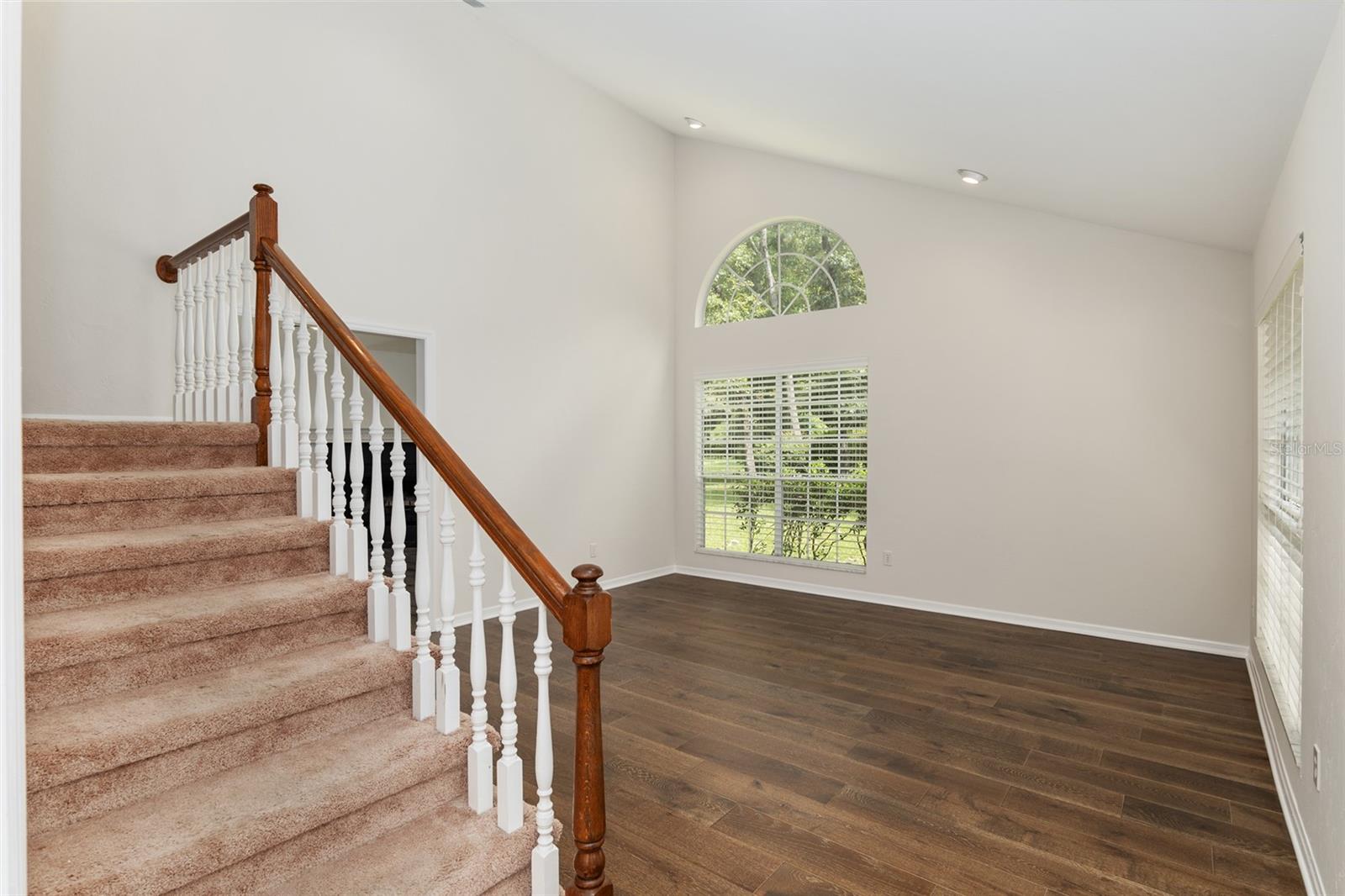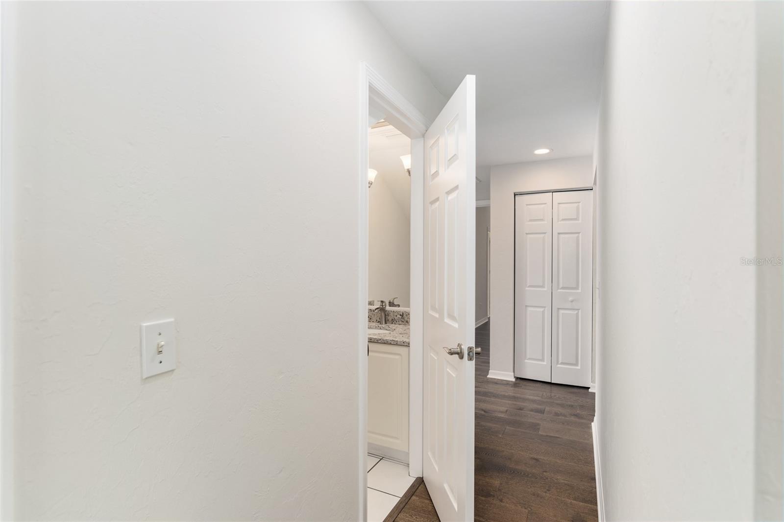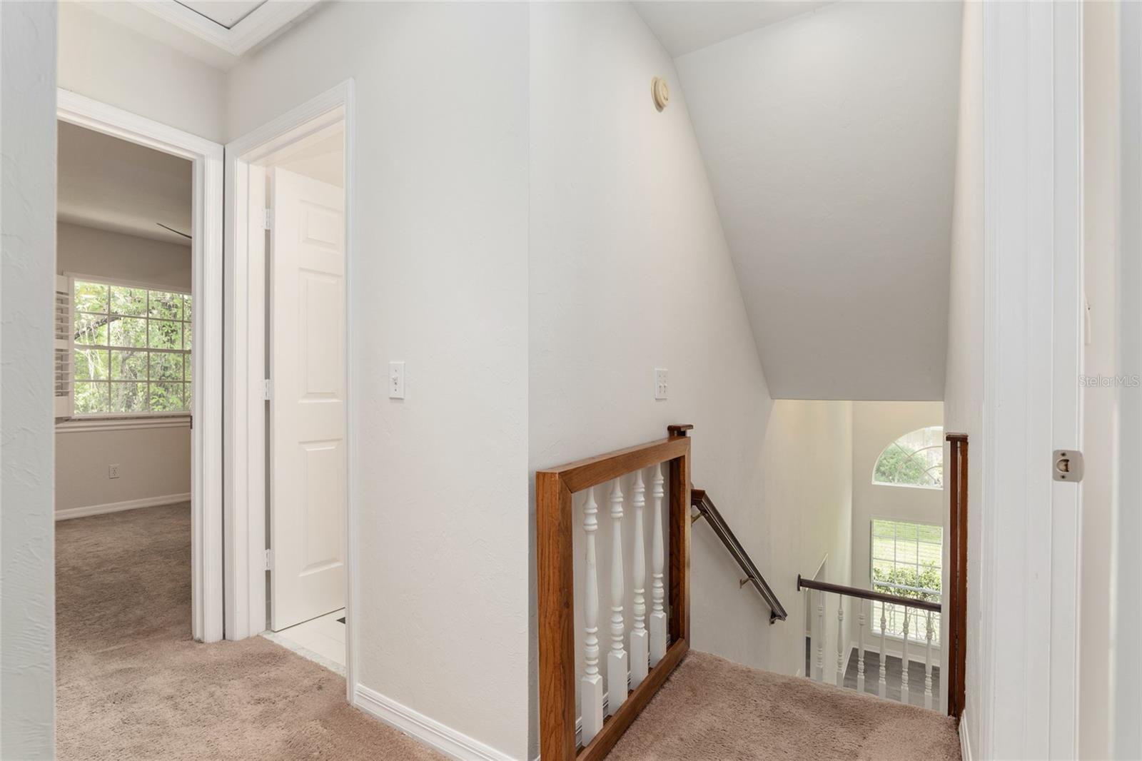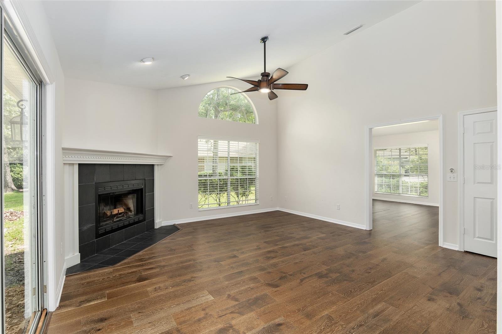 This darling two-story Haile Plantation Matheson Woods house is located literally in the heart of Haile, just one block from the members’ only Hawkstone Country Club, and footsteps away from accessing the 13.5 miles of paved walking paths that meander throughout this SW Gainesville subdivision. Tucked away in the cul de sac is this 4-bedroom, 2.5 bath home with 2063 SF is move-in ready with FRESH interior paint and laminate flooring in all of the living spaces downstairs. As you enter the home, the dining space is immediately to your left. This room features Plantation Shutters, east-facing windows, and a direct access to a hallway that connects the dining space with the kitchen. The front living space has a vaulted ceiling; use this room for a secondary family room or bonus space. The family room has a corner wood-burning fireplace with custom mantle, and a set of sliding glass doors that offer direct views of the private rear yard. The family room and kitchen connect, with a spacious breakfast nook adjacent to both. There is a sliding glass door that opens onto the corner screen enclosed rear porch, also with views of the private backyard. The kitchen has an ample amount of perimeter cabinetry, and a center prep island. Just outside the kitchen is the pantry, which is conveniently located between the kitchen and the garage for easy, quick storage when coming home from the grocery store. The hallway that connects the kitchen/pantry and the dining room. Within this hallway is a convenient half bath for guests and a large, under-staircase storage closet. The master bedroom is downstairs, and features brand new high-end laminate flooring, including the walk-in closet. The en suite master bathroom features a soaking tub, a separate walk in shower and a double sink vanity. Upstairs you will find three guest rooms. The guest room on the left has a wall of custom built-ins, making this room a perfect home office, playroom, or as a guest suite. The second guest bedroom has a custom closet organizational system. Between these two guest rooms and the third guest room is a double door hallway closet. Across from this closet is the full hallway bath. The home’s additional features include a 2015 architectural shingle roof, a 2015 energy efficient gas water heater, a 2016 HVAC system, and a separate laundry room with washer and dryer. Matheson Woods is within a short walk or bike ride to the Haile Village Center where you will enjoy local restaurants, shopping, a coffee shop, and recreational facilities. Haile Plantation is an award-winning golf course community, where you can join the Club to enjoy the members’ only 18-hole Gary Player golf course, two pools, a Club restaurant, tennis and pickleball courts, and a fitness facility. Zoned for top notch Gainesville schools, this home’s location can’t be beat.