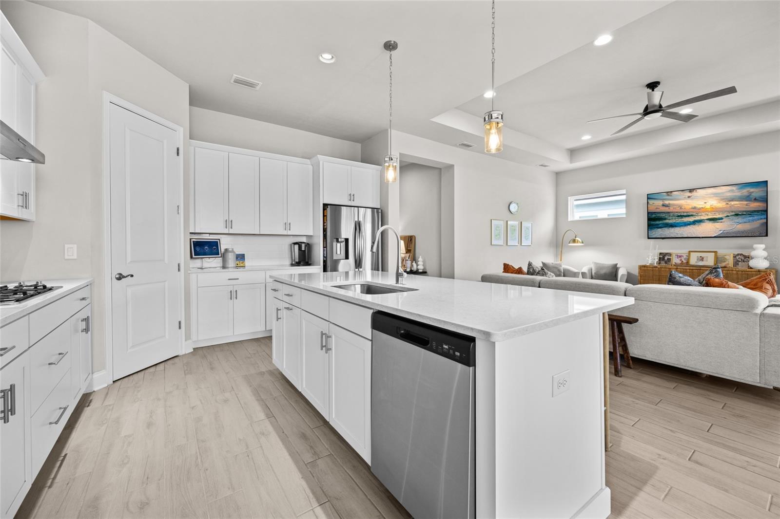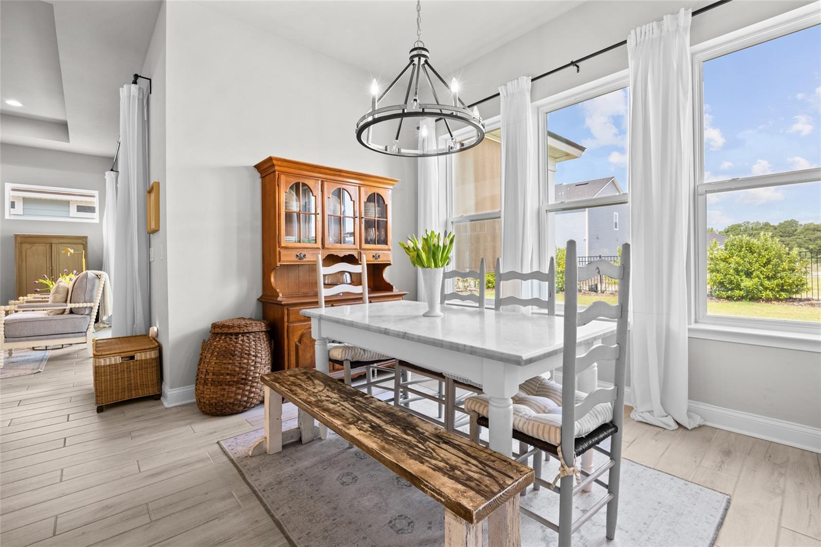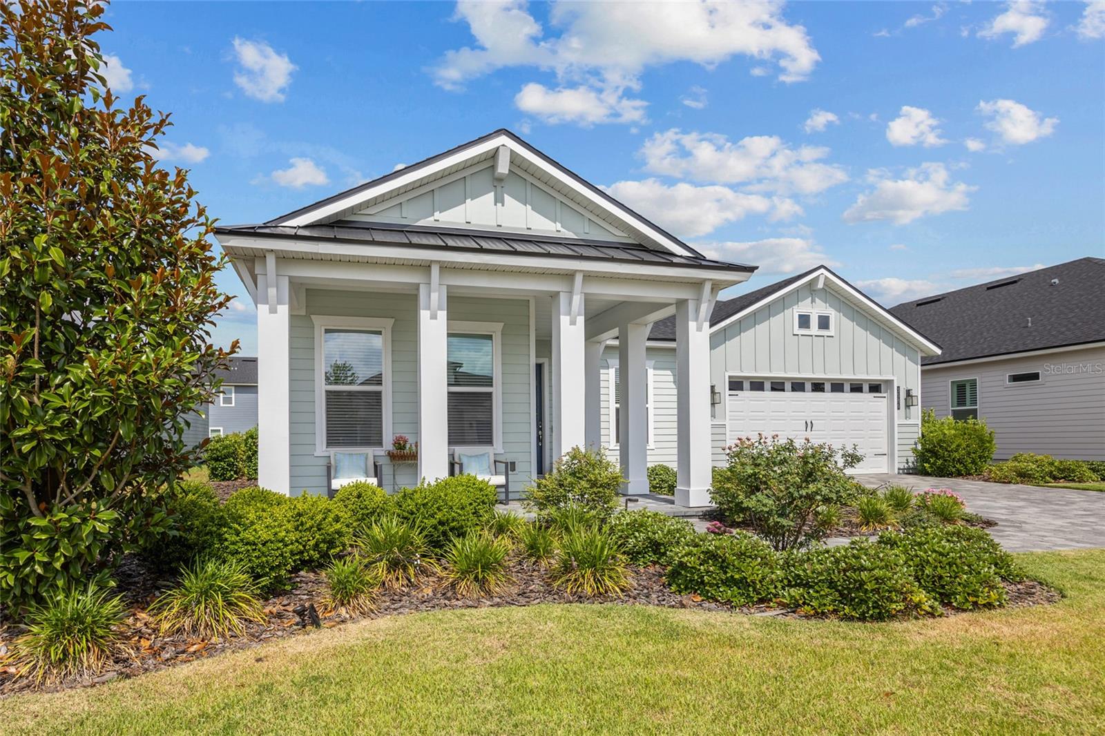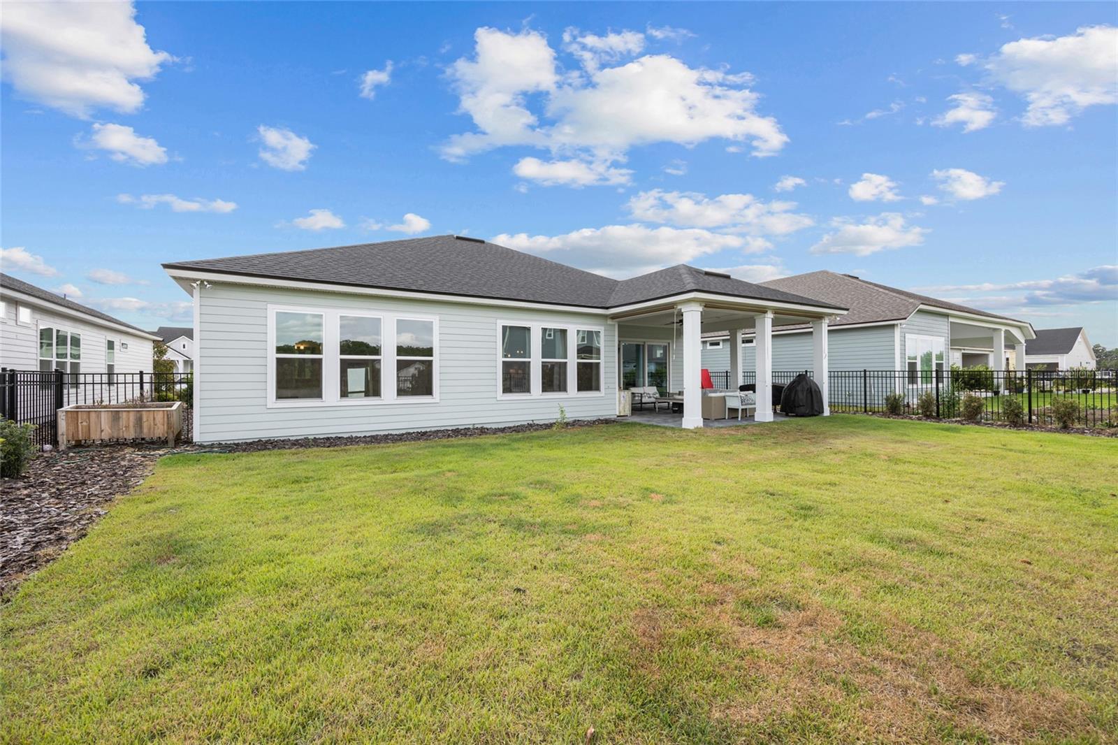 This bright and updated 3-bedroom, 2-bathroom home in Gainesville's Oakmont community was built in 2022. The open floor plan features a spacious living room with high ceilings and large windows, filling the space with natural light. The modern kitchen boasts stainless steel appliances, solid surface countertops, and an island with bar seating. The master suite includes a walk-in closet and an en-suite bathroom with dual vanities, a soaking tub, and a separate shower. Two additional bedrooms share a stylish bathroom. A separate office provides extra space for an office, play or hobby room. Outside, a covered patio offers a perfect spot for outdoor dining and relaxation. Come tour this home today!