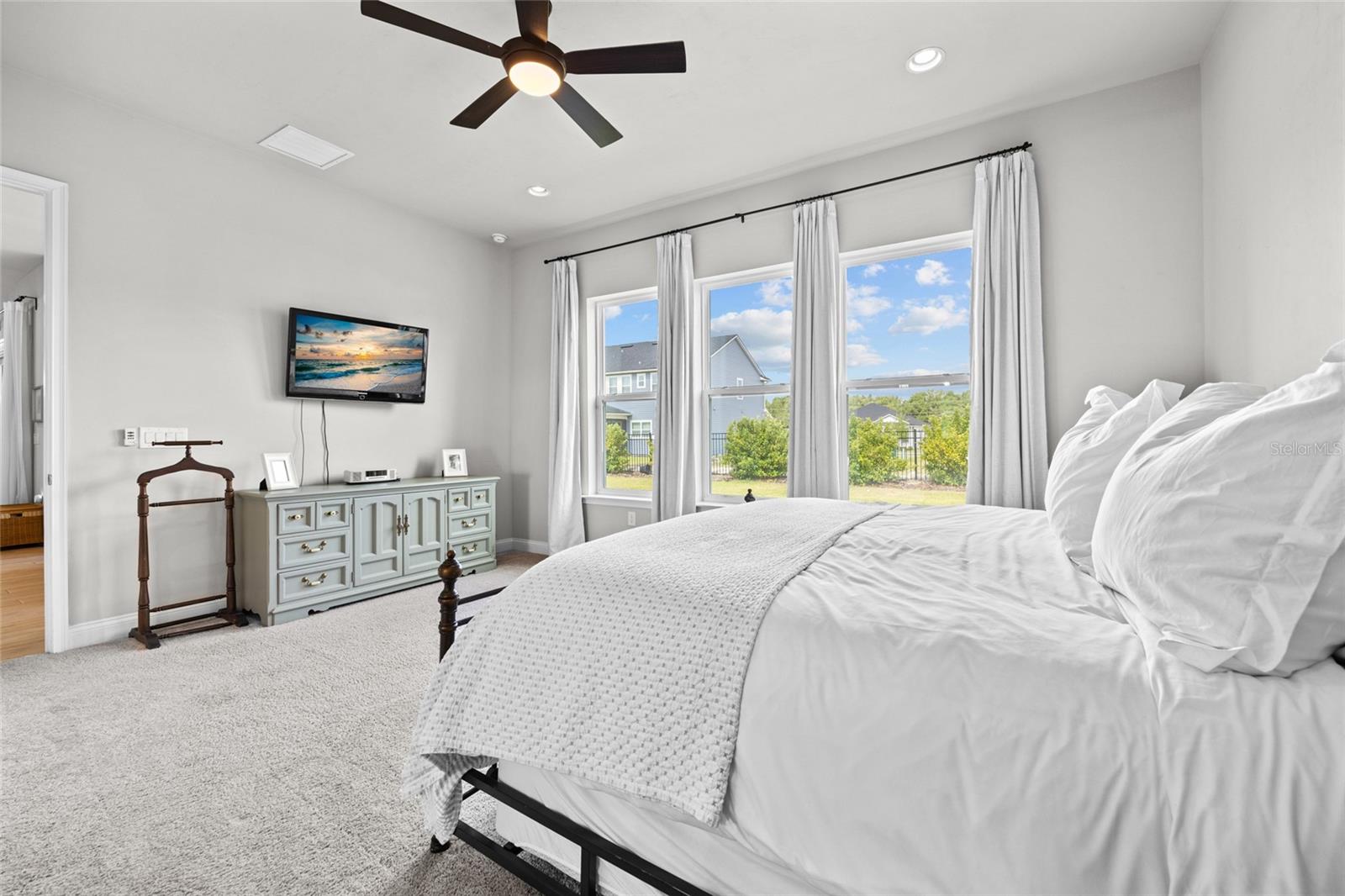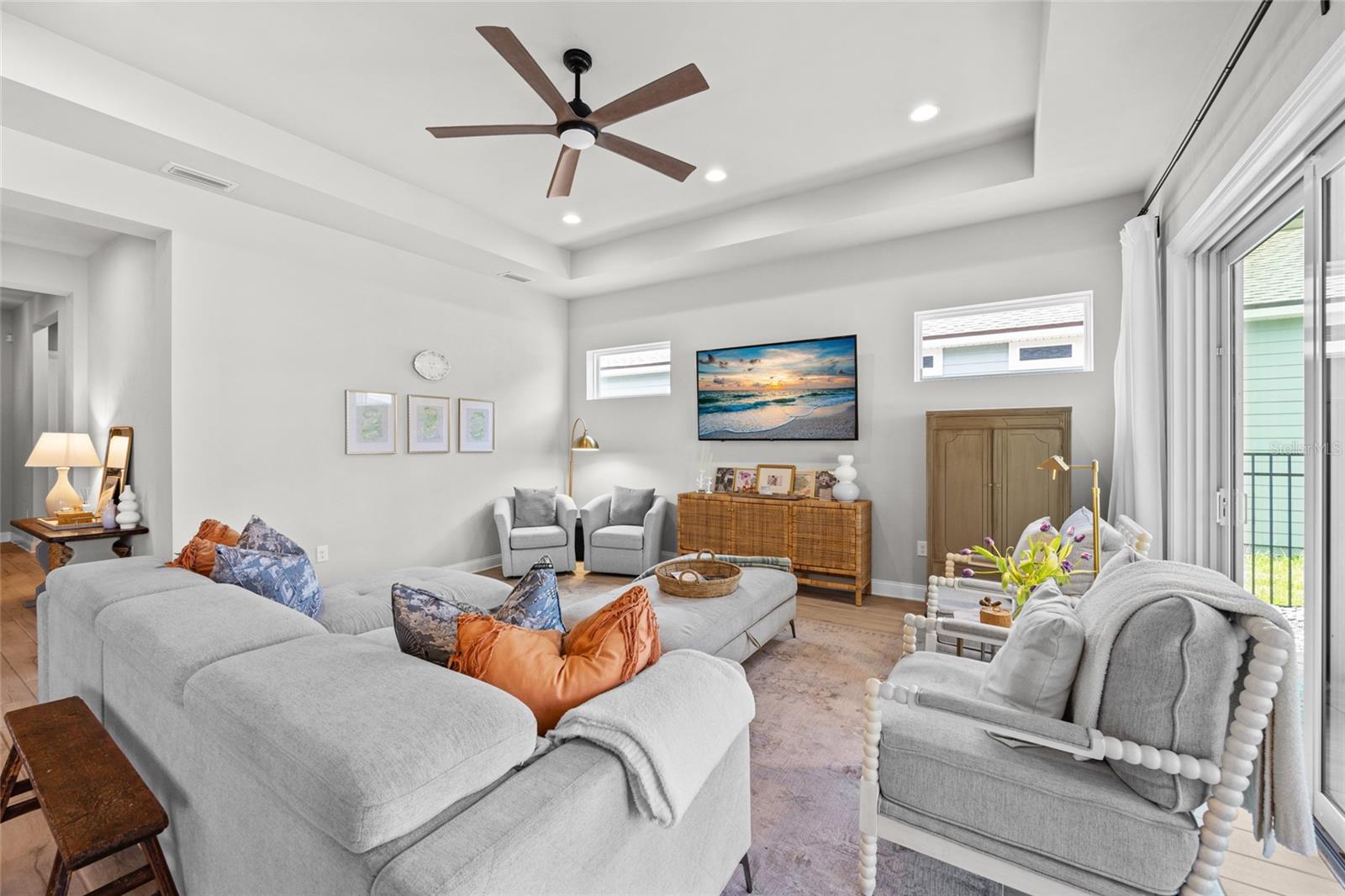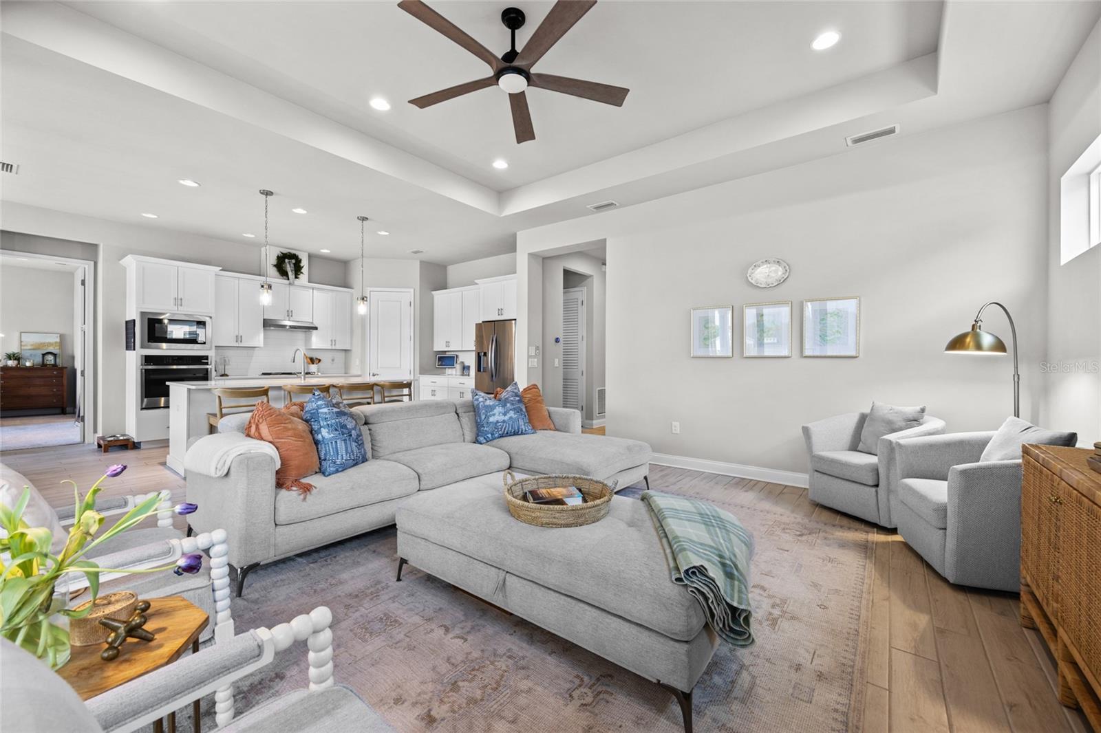 This bright and updated 3-bedroom, 2-bathroom home in Gainesville's Oakmont community was built in 2022. The open floor plan features a spacious living room with high ceilings and large windows, filling the space with natural light. The modern kitchen boasts stainless steel appliances, solid surface countertops, and an island with bar seating. The master suite includes a walk-in closet and an en-suite bathroom with dual vanities, a soaking tub, and a separate shower. Two additional bedrooms share a stylish bathroom. A separate office provides extra space for an office, play or hobby room. Outside, a covered patio offers a perfect spot for outdoor dining and relaxation. Come tour this home today!