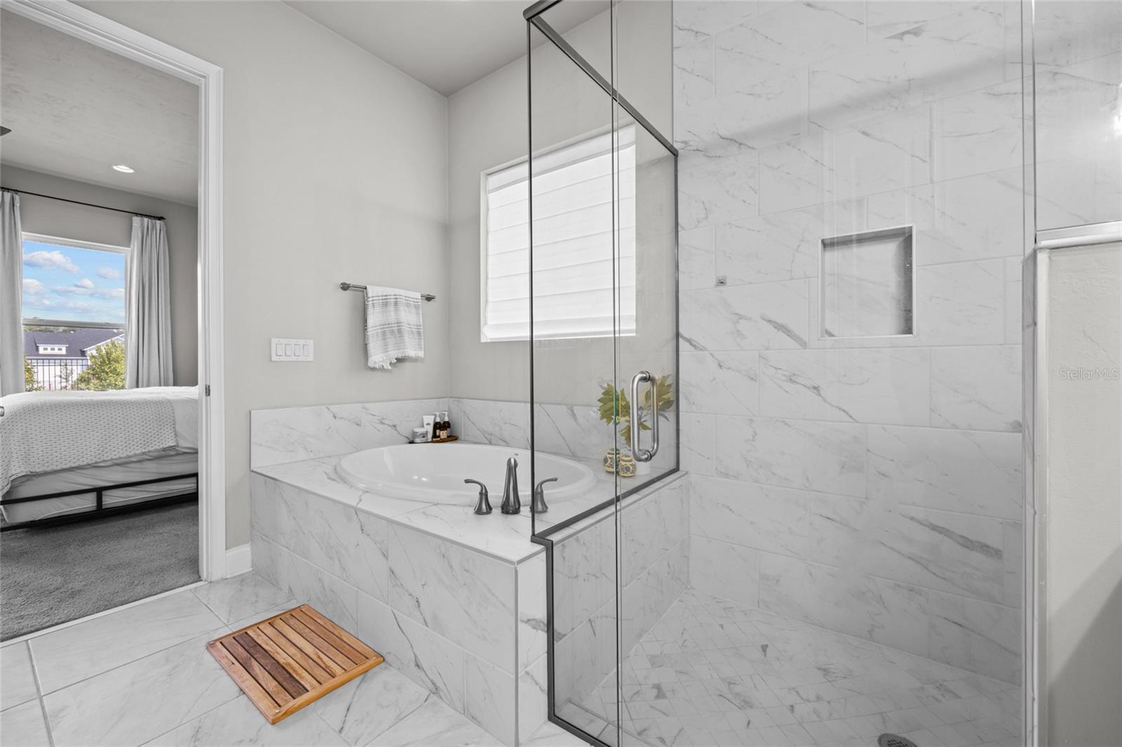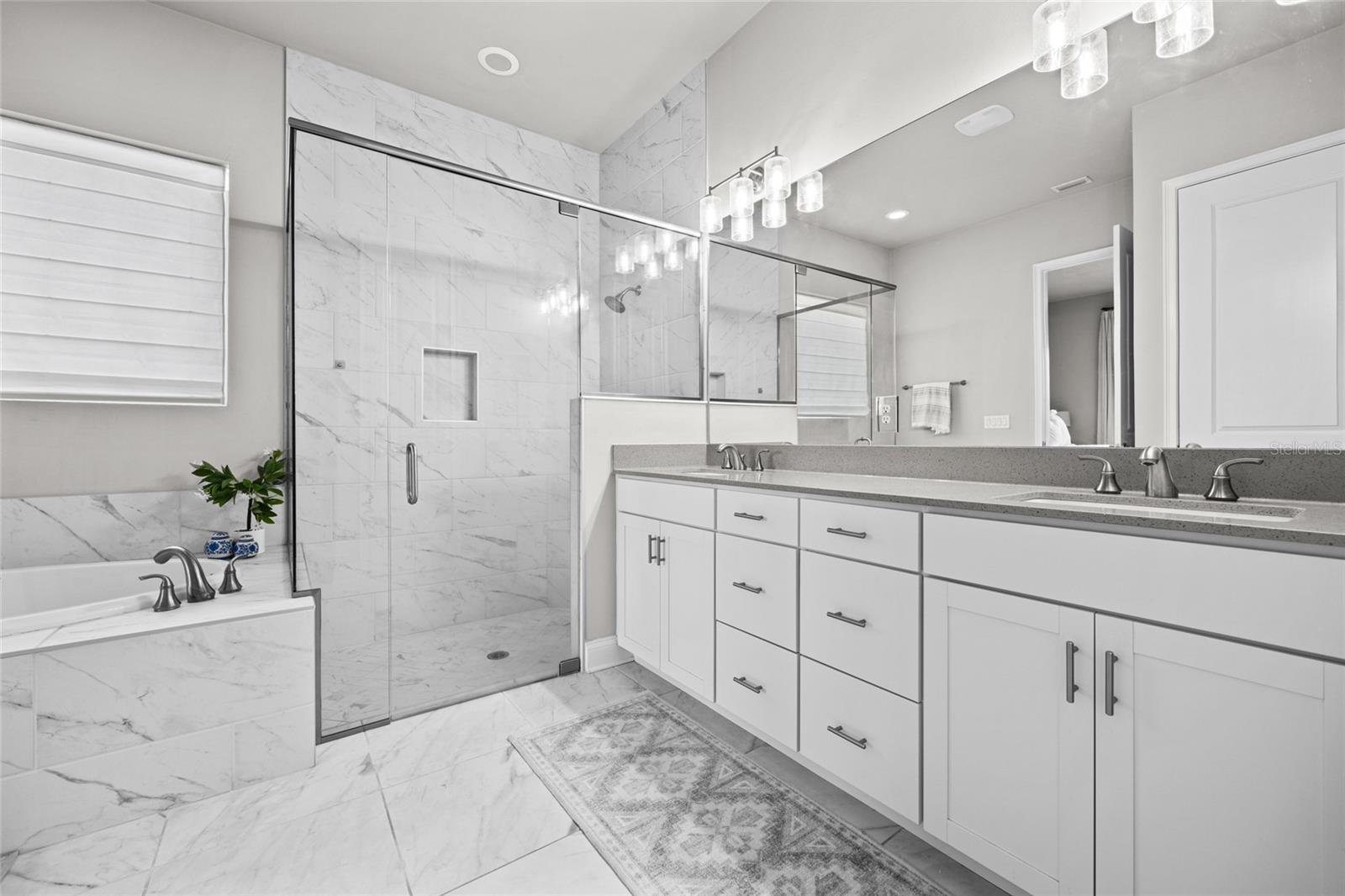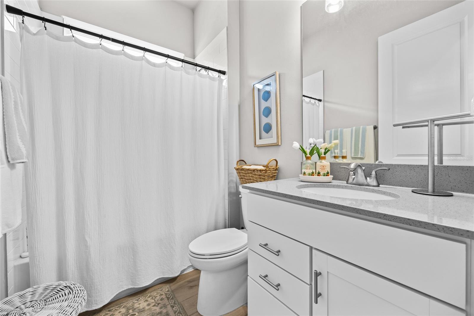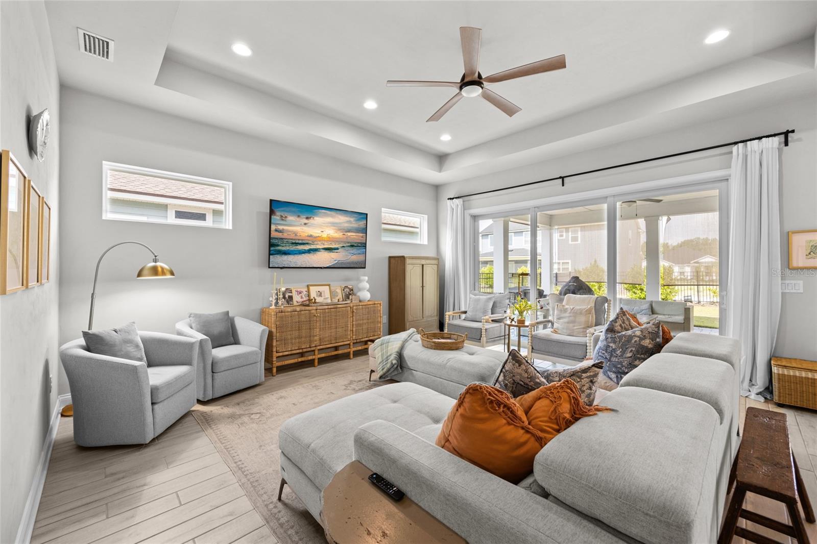 This bright and updated 3-bedroom, 2-bathroom home in Gainesville's Oakmont community was built in 2022. The open floor plan features a spacious living room with high ceilings and large windows, filling the space with natural light. The modern kitchen boasts stainless steel appliances, solid surface countertops, and an island with bar seating. The master suite includes a walk-in closet and an en-suite bathroom with dual vanities, a soaking tub, and a separate shower. Two additional bedrooms share a stylish bathroom. A separate office provides extra space for an office, play or hobby room. Outside, a covered patio offers a perfect spot for outdoor dining and relaxation. Come tour this home today!