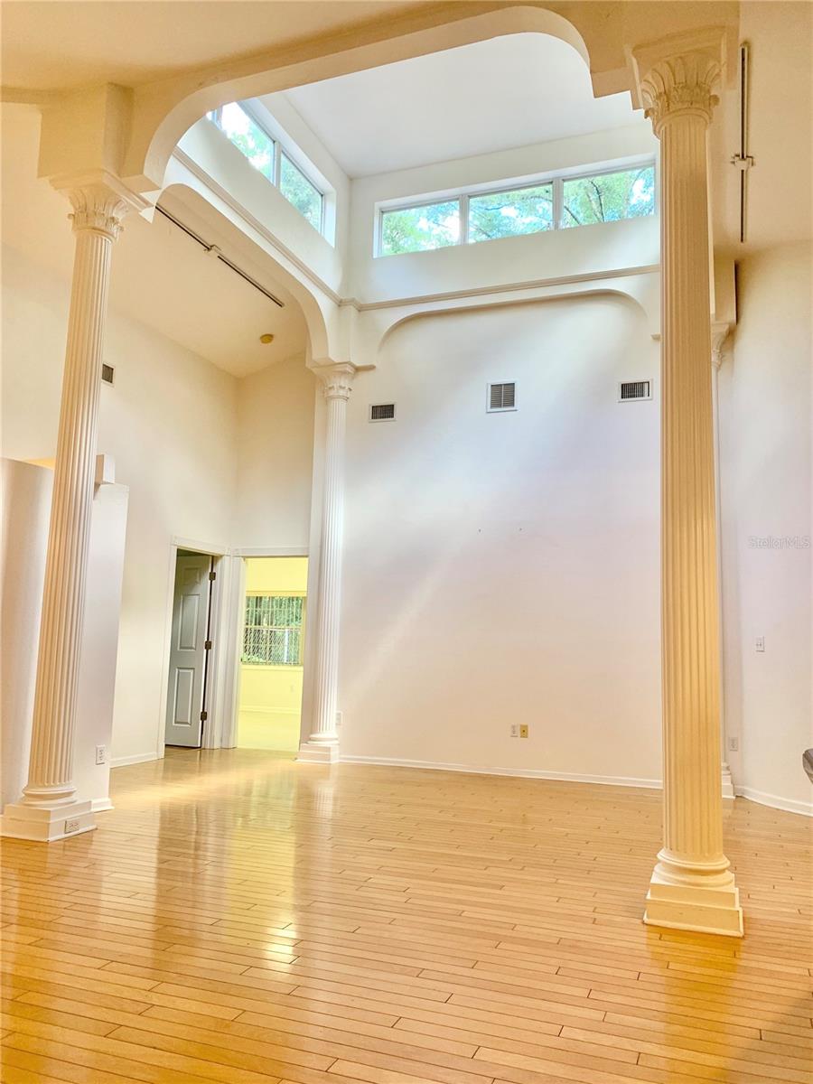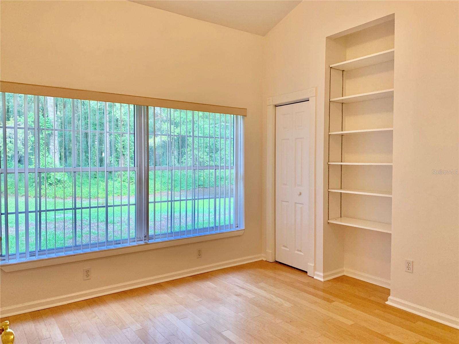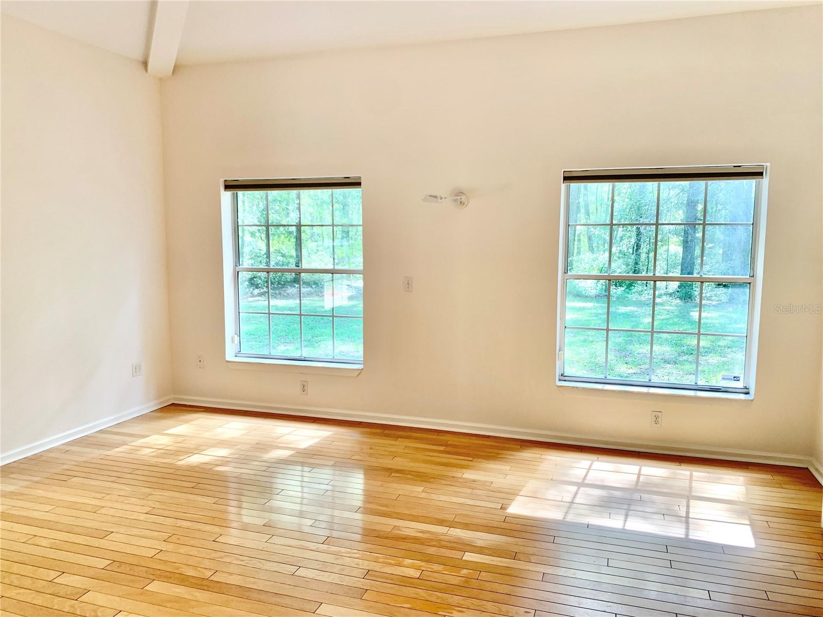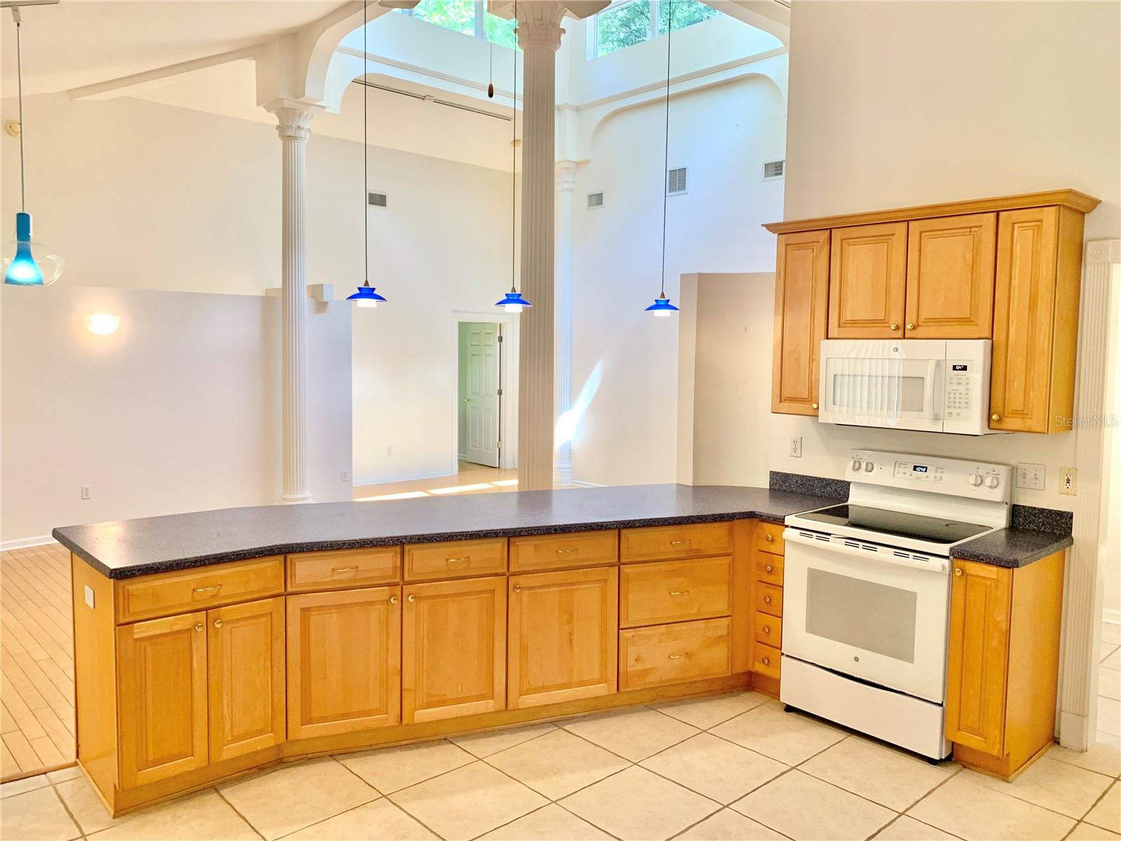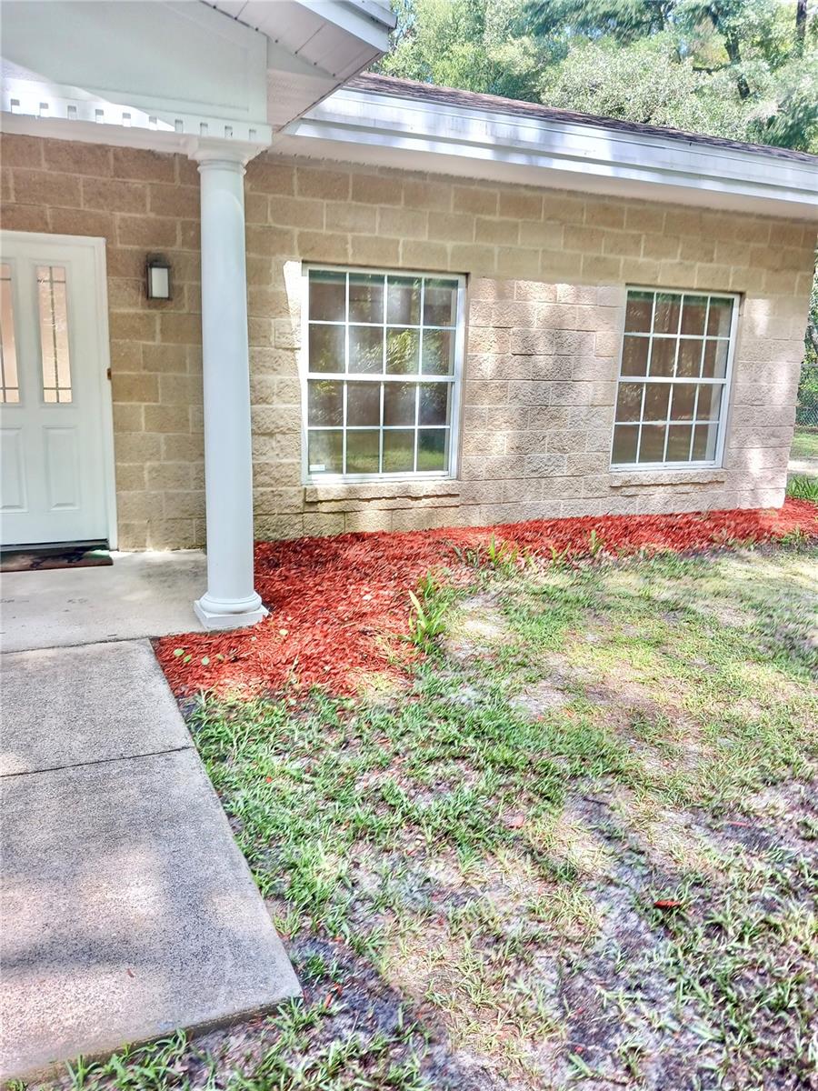 Quiet and Secluded with all the conveniences of Haile Plantation. This home is a custom built insulated concrete block home with an amazing cupola at its peak that lets in lots of natural night. Upon entering the home you will be greeted by the impressive high ceiling adorned with Corinthian style columns in the center of the living room. The kitchen features beautiful wood cabinets with Corian counter tops. The kitchen opens to the living and dinning area with a large breakfast bar. The wood floors in most areas of the home add a nice warmth to the contemporary styling of the home. From the living room you have access to 3 guest bedrooms and one guest bathroom. All the bedrooms are spacious and have high vaulted ceilings. The large primary bedroom has lots of natural lighting and a great view of the front yard of the home. The ensuite bathroom has wonderful dual sink wood vanity with granite top and large walk-in shower. Additionally there is a huge walk-in closet in the primary bedroom. There is an attached two car garage with added closet storage. The bedrooms of the home have been freshly painted to give the new owners a blank slate to make it their own. There is a small fenced dog run area on the side of the the home which could also be used for a garden area. The front of the home has a patio accessed through the French doors from the kitchen. The home is serviced by a standby propane home generator to ensure ongoing comfort. This home resides on 10 acres of wooded land which offers privacy and frequent sightings of wild life. Just minutes from the Haile Village center which offers a large array of conveniences and the weekly farmers market. Home utility bill runs around $200 with the home being so well insulated. There is a water softener system which services the house. Roof and HVAC replaced in 2022.