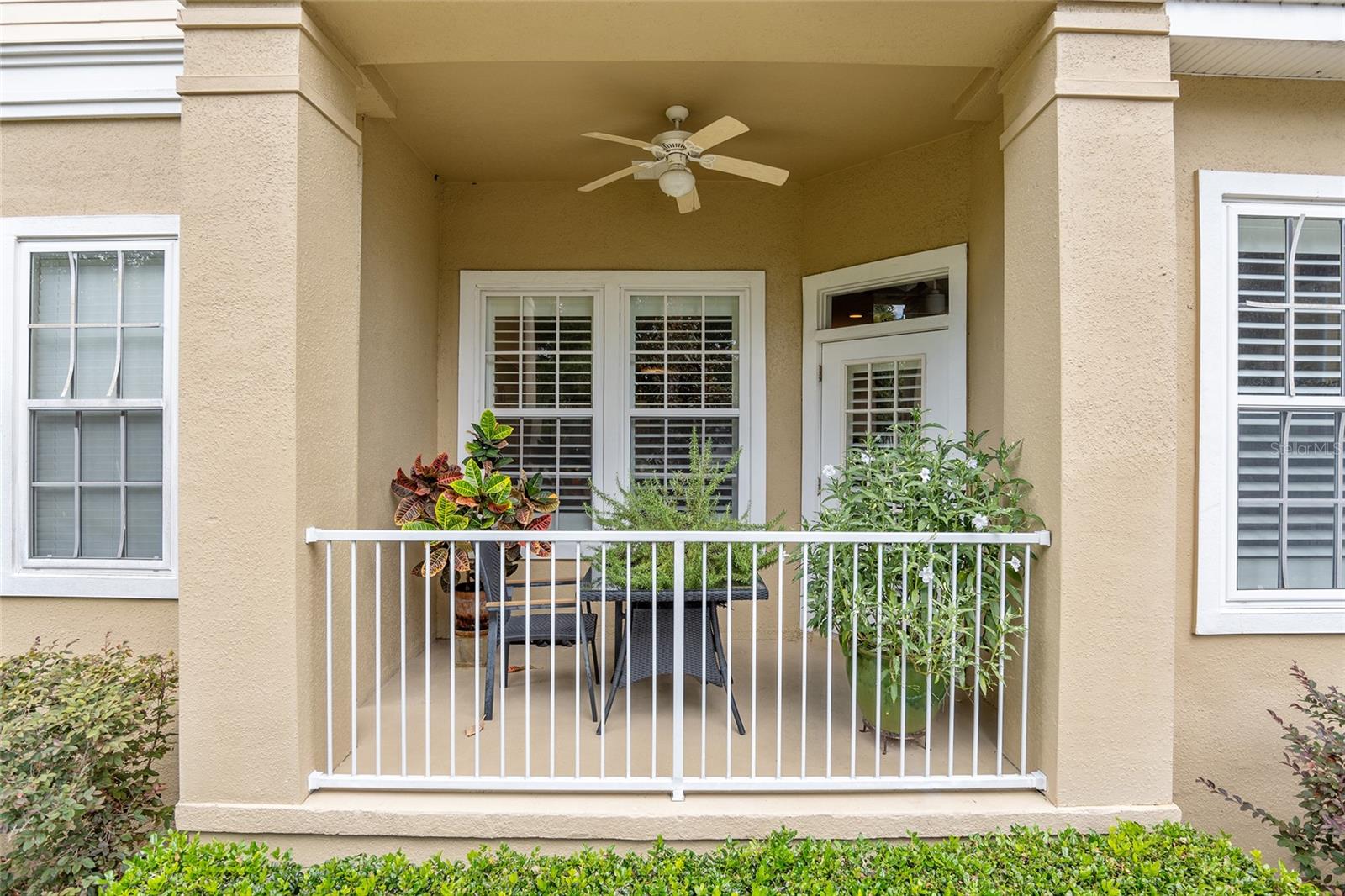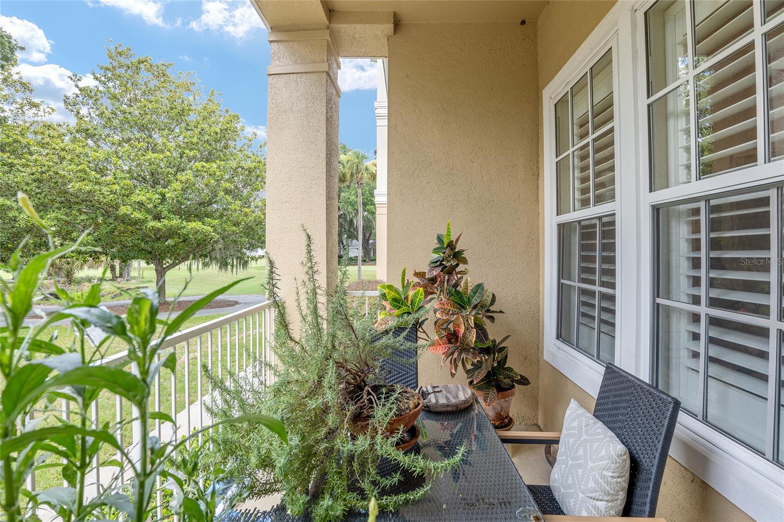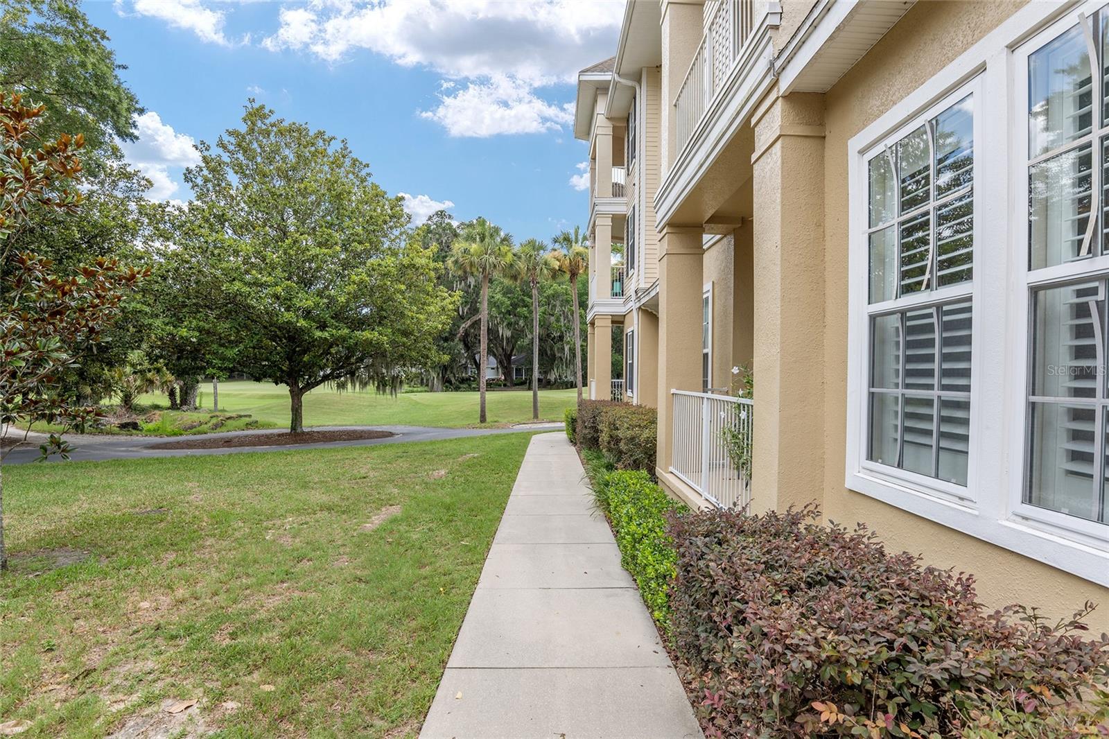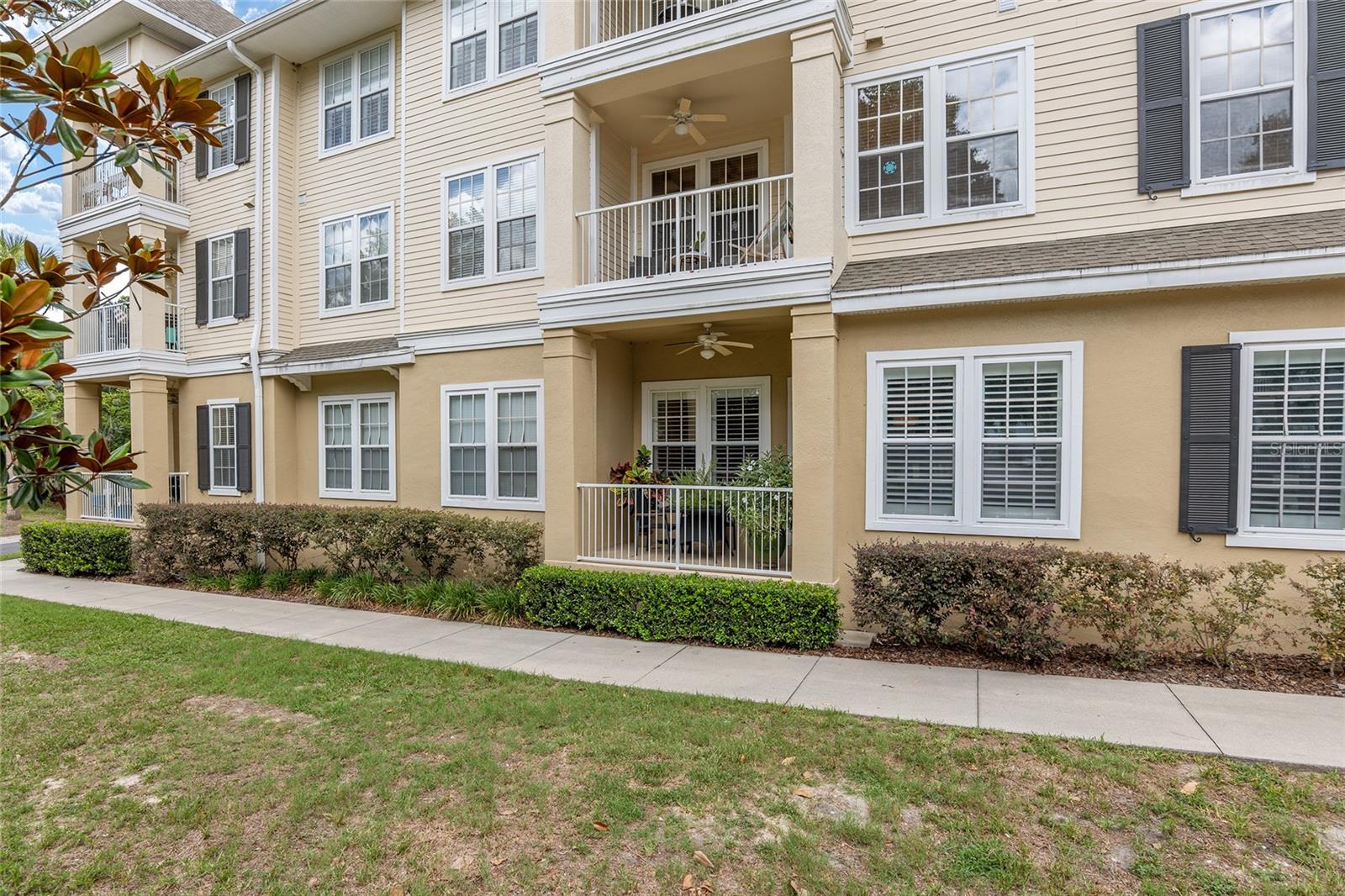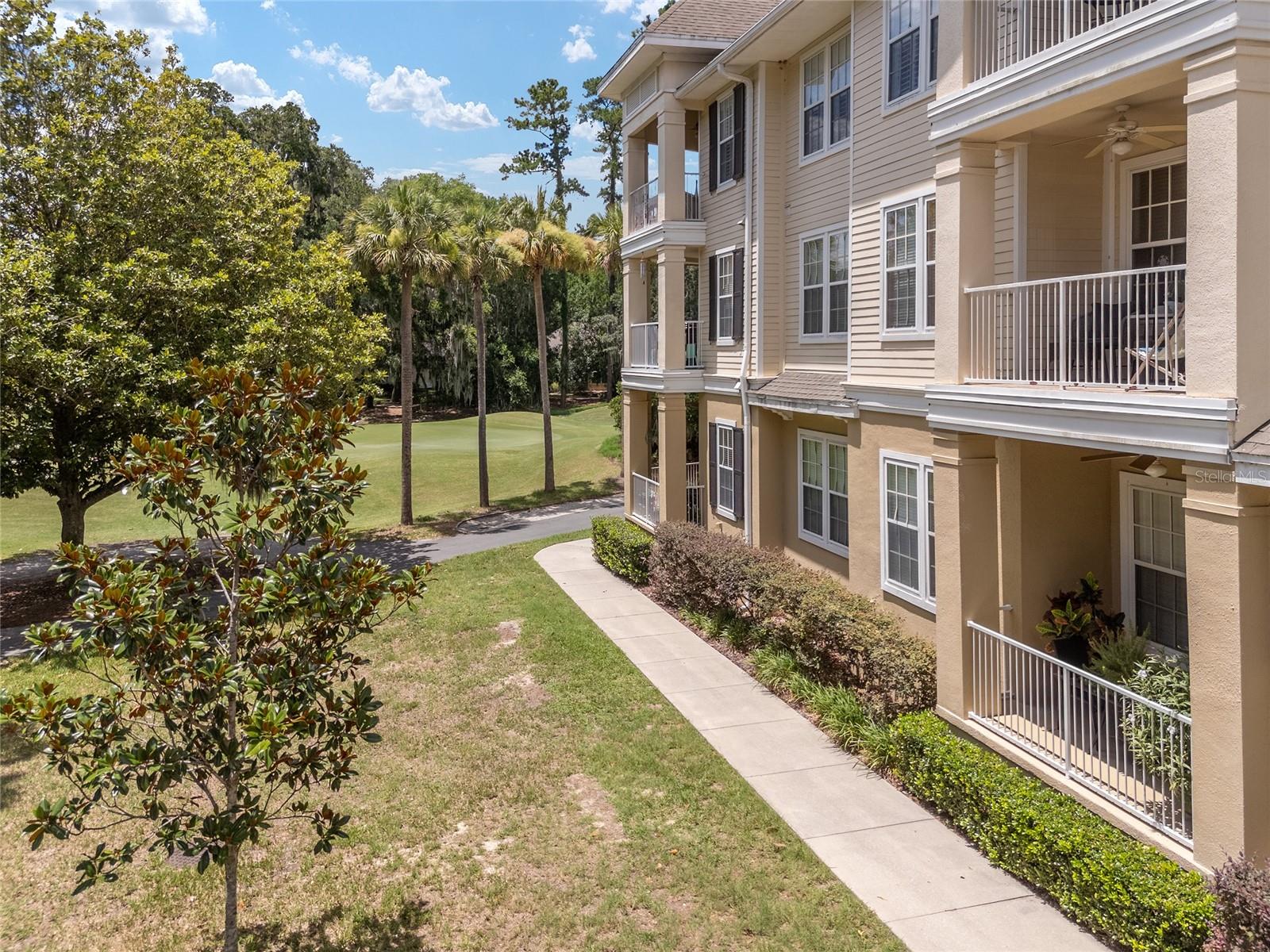 What a perfect view from this beautiful 1st floor luxury condo on the 12th green of the Hawkstone Golf Course. The covered balcony is a relaxing place for morning coffee or a glass of wine at sunset! The owner has recently added tasteful upgrades showing pride of ownership such as stylish hexagon tile floors throughout, specialty paint, new shower tile in the bathroom, beautiful light fixtures, and plantation shutters. Additional features include granite kitchen counter, wood cabinets, a washer and dryer, 1/2 bathroom in the hallway, carpet in bedrooms, California closet in owners walk in closet, and direct access to the garage, spacious bedroom with dual vanities, built in desk and storage for a personal office, high ceilings, spacious great room, dining room and extra nook overlooking the window for outdoor views. The location is a short walk to the Village Center with restaurants, businesses and the Saturday Farmers Market. Enjoy the abundant walking rails throughout the area. Visit Hawkstone Golf and Country Club for a tour of the golf course and facilities and information to join this fun and active club at an additional fee. Close to shopping with two Publix stores, restaurants, shops, health facilities and I-75. NEW ROOF 2024!