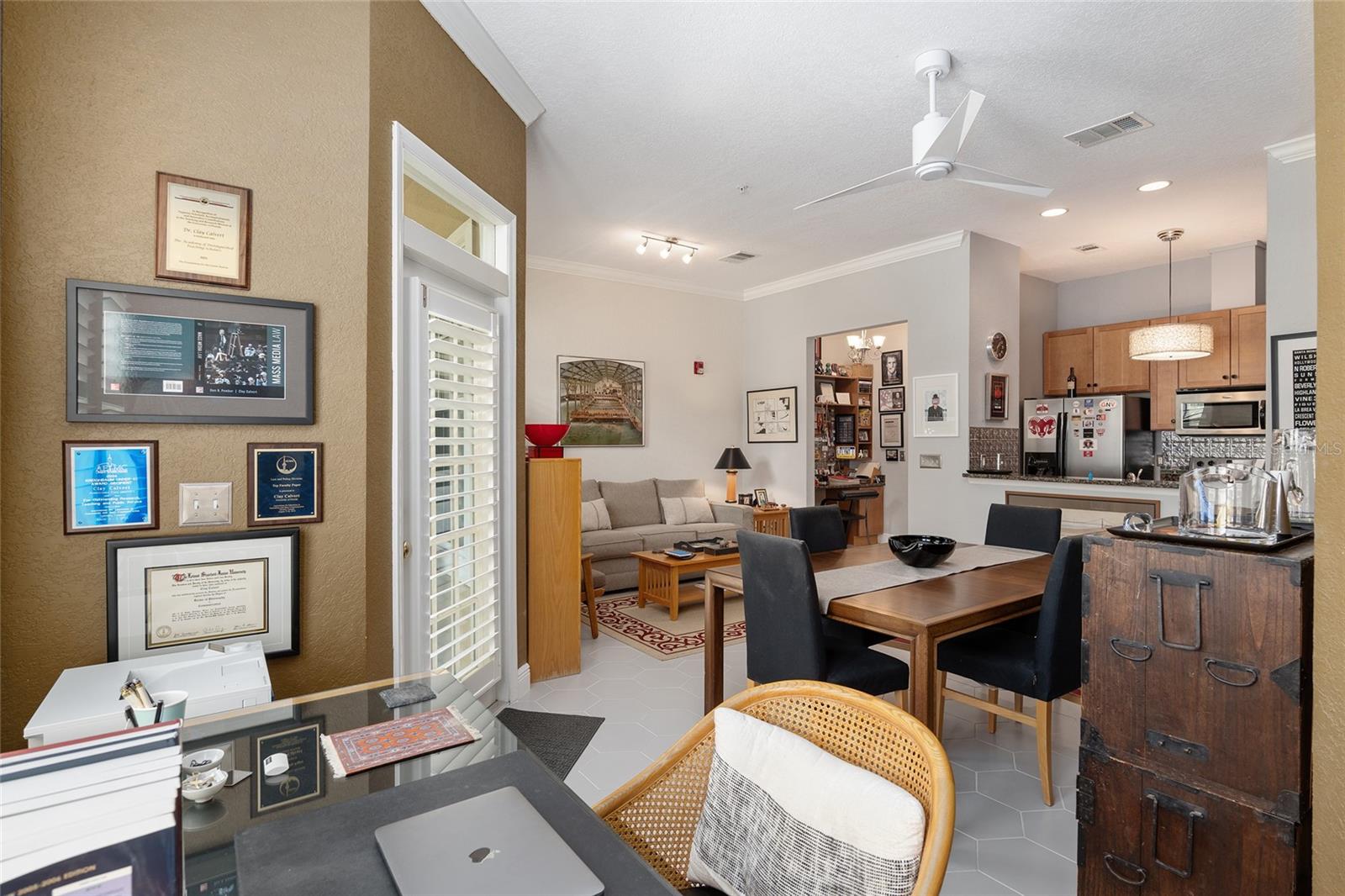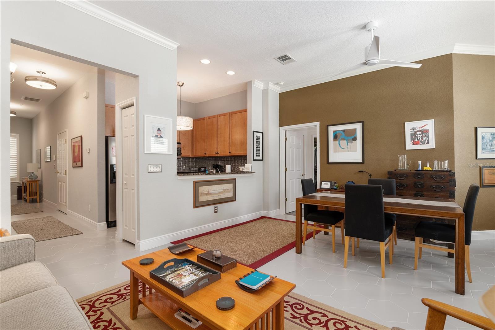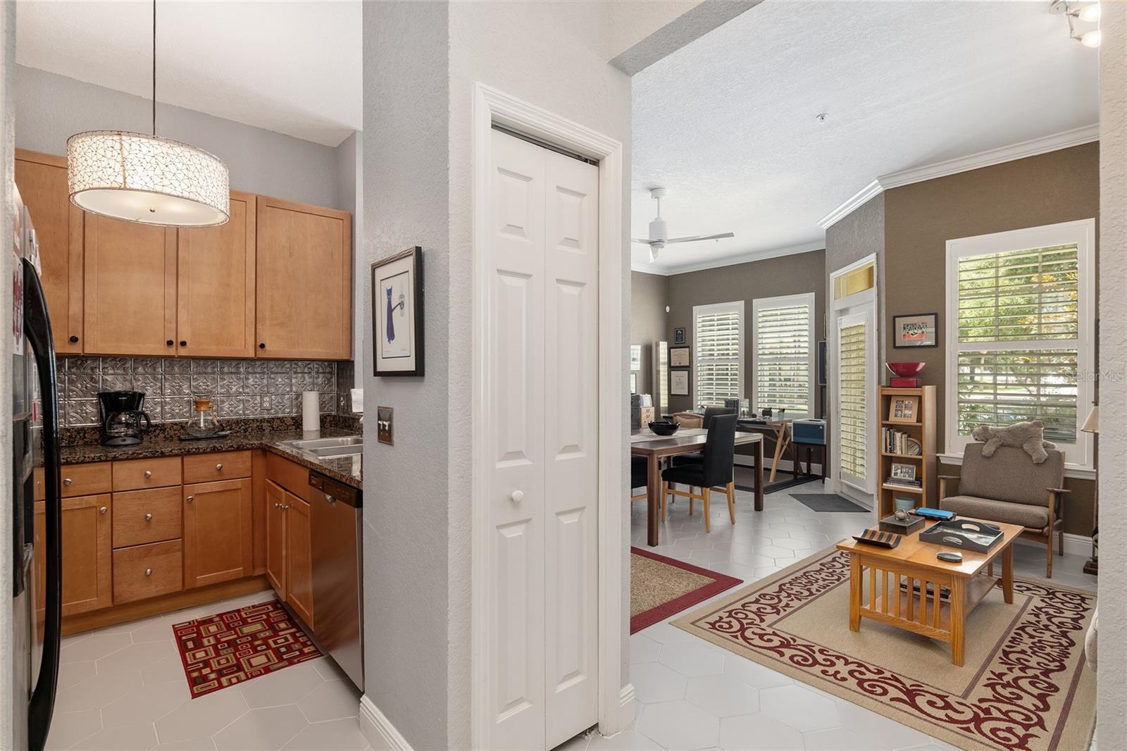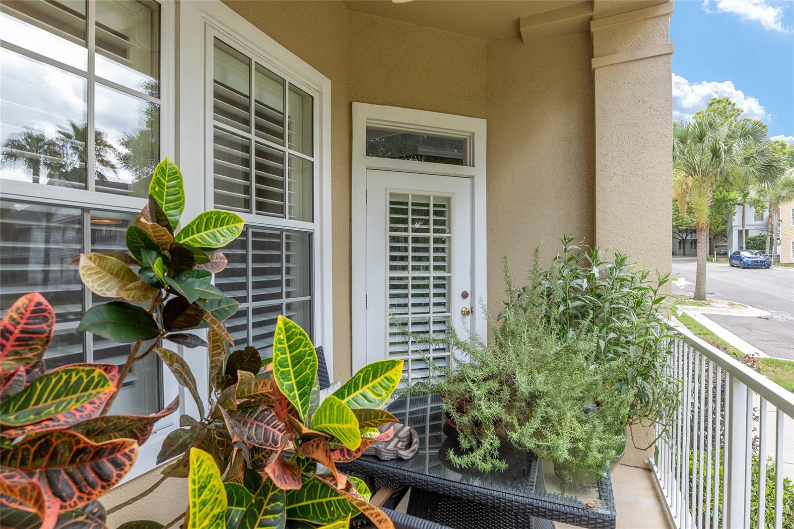 What a perfect view from this beautiful 1st floor luxury condo on the 12th green of the Hawkstone Golf Course. The covered balcony is a relaxing place for morning coffee or a glass of wine at sunset! The owner has recently added tasteful upgrades showing pride of ownership such as stylish hexagon tile floors throughout, specialty paint, new shower tile in the bathroom, beautiful light fixtures, and plantation shutters. Additional features include granite kitchen counter, wood cabinets, a washer and dryer, 1/2 bathroom in the hallway, carpet in bedrooms, California closet in owners walk in closet, and direct access to the garage, spacious bedroom with dual vanities, built in desk and storage for a personal office, high ceilings, spacious great room, dining room and extra nook overlooking the window for outdoor views. The location is a short walk to the Village Center with restaurants, businesses and the Saturday Farmers Market. Enjoy the abundant walking rails throughout the area. Visit Hawkstone Golf and Country Club for a tour of the golf course and facilities and information to join this fun and active club at an additional fee. Close to shopping with two Publix stores, restaurants, shops, health facilities and I-75. NEW ROOF 2024!