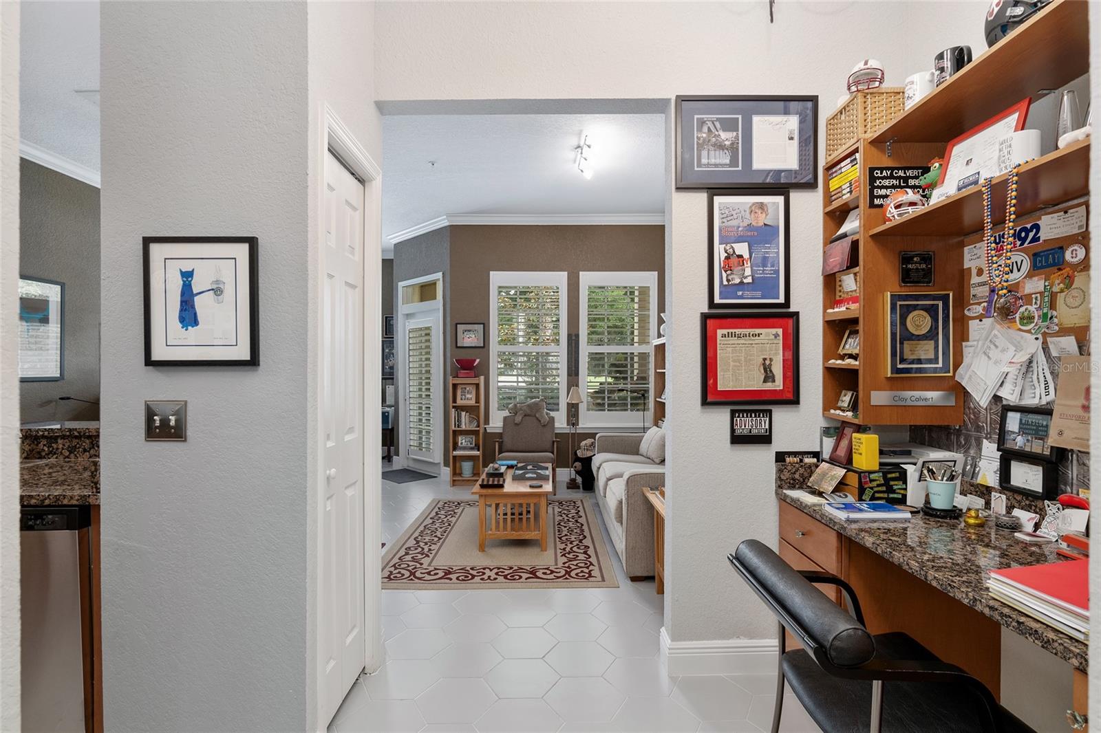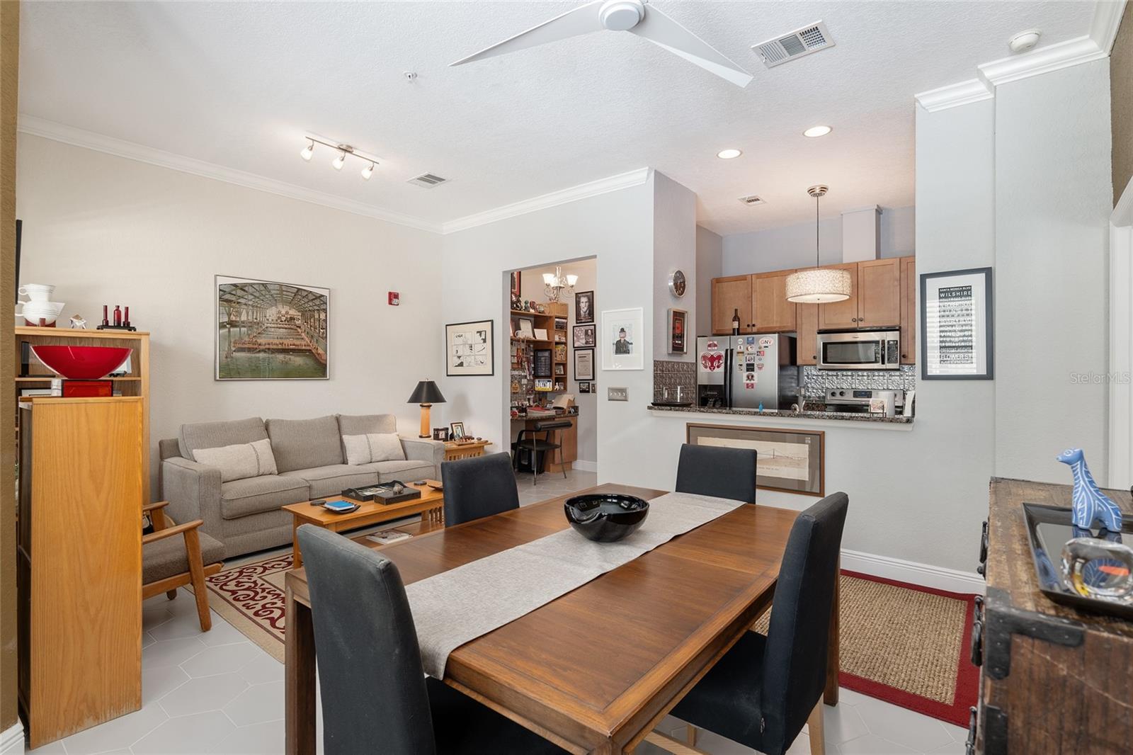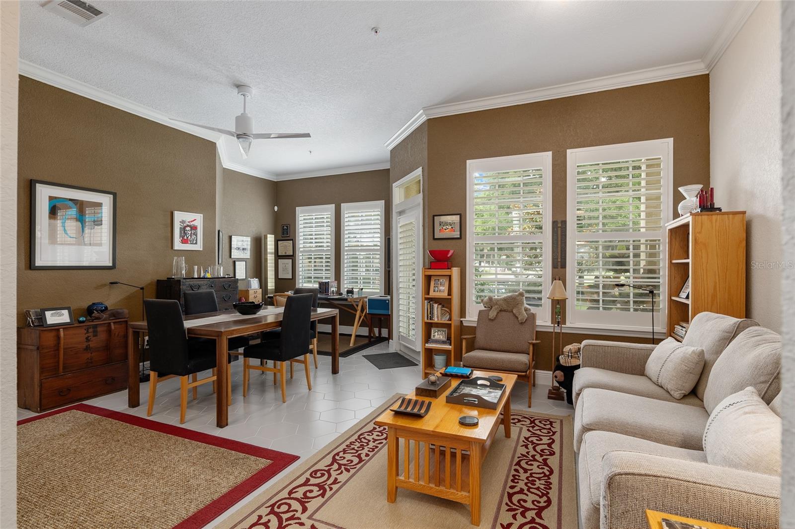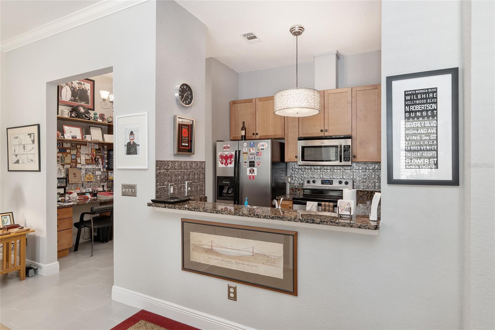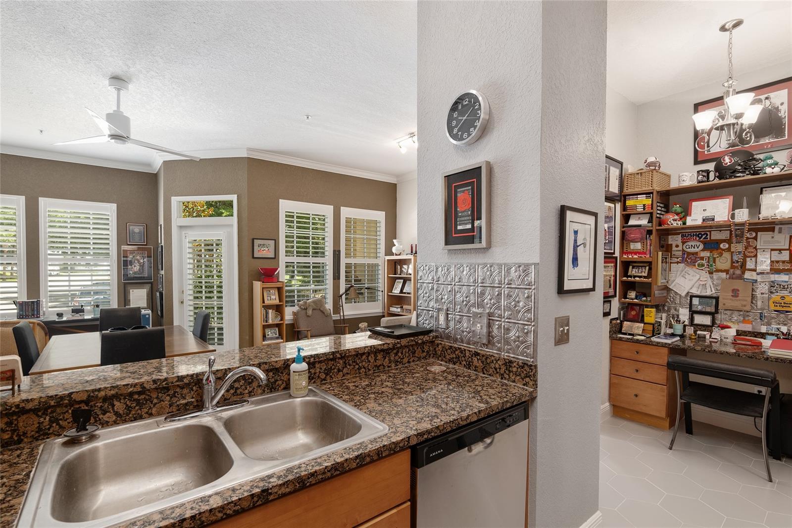 What a perfect view from this beautiful 1st floor luxury condo on the 12th green of the Hawkstone Golf Course. The covered balcony is a relaxing place for morning coffee or a glass of wine at sunset! The owner has recently added tasteful upgrades showing pride of ownership such as stylish hexagon tile floors throughout, specialty paint, new shower tile in the bathroom, beautiful light fixtures, and plantation shutters. Additional features include granite kitchen counter, wood cabinets, a washer and dryer, 1/2 bathroom in the hallway, carpet in bedrooms, California closet in owners walk in closet, and direct access to the garage, spacious bedroom with dual vanities, built in desk and storage for a personal office, high ceilings, spacious great room, dining room and extra nook overlooking the window for outdoor views. The location is a short walk to the Village Center with restaurants, businesses and the Saturday Farmers Market. Enjoy the abundant walking rails throughout the area. Visit Hawkstone Golf and Country Club for a tour of the golf course and facilities and information to join this fun and active club at an additional fee. Close to shopping with two Publix stores, restaurants, shops, health facilities and I-75. NEW ROOF 2024!