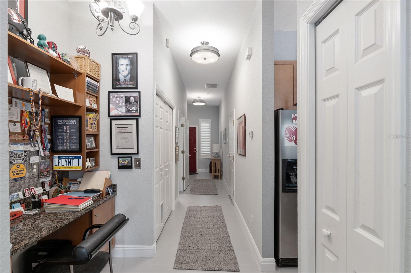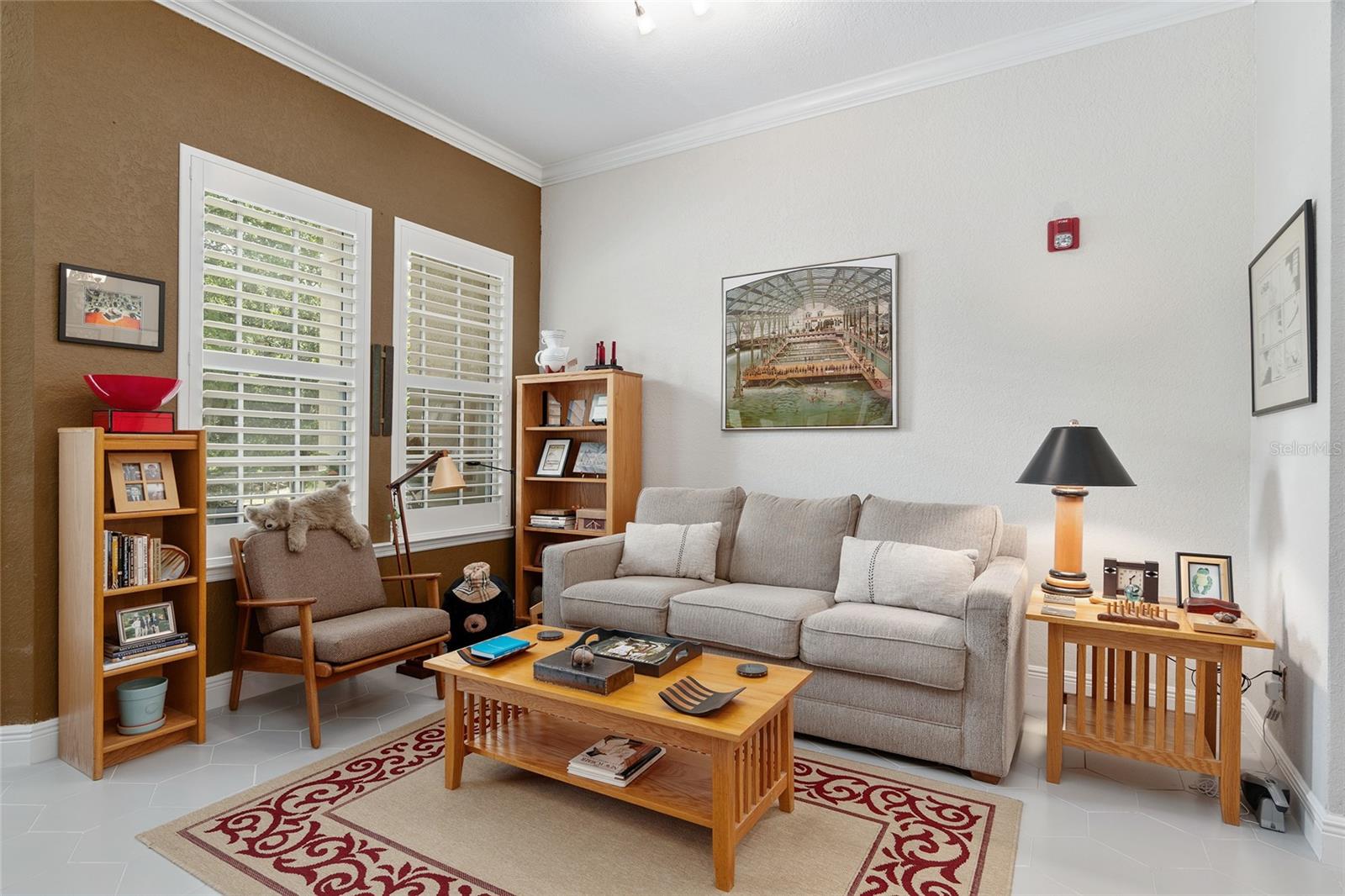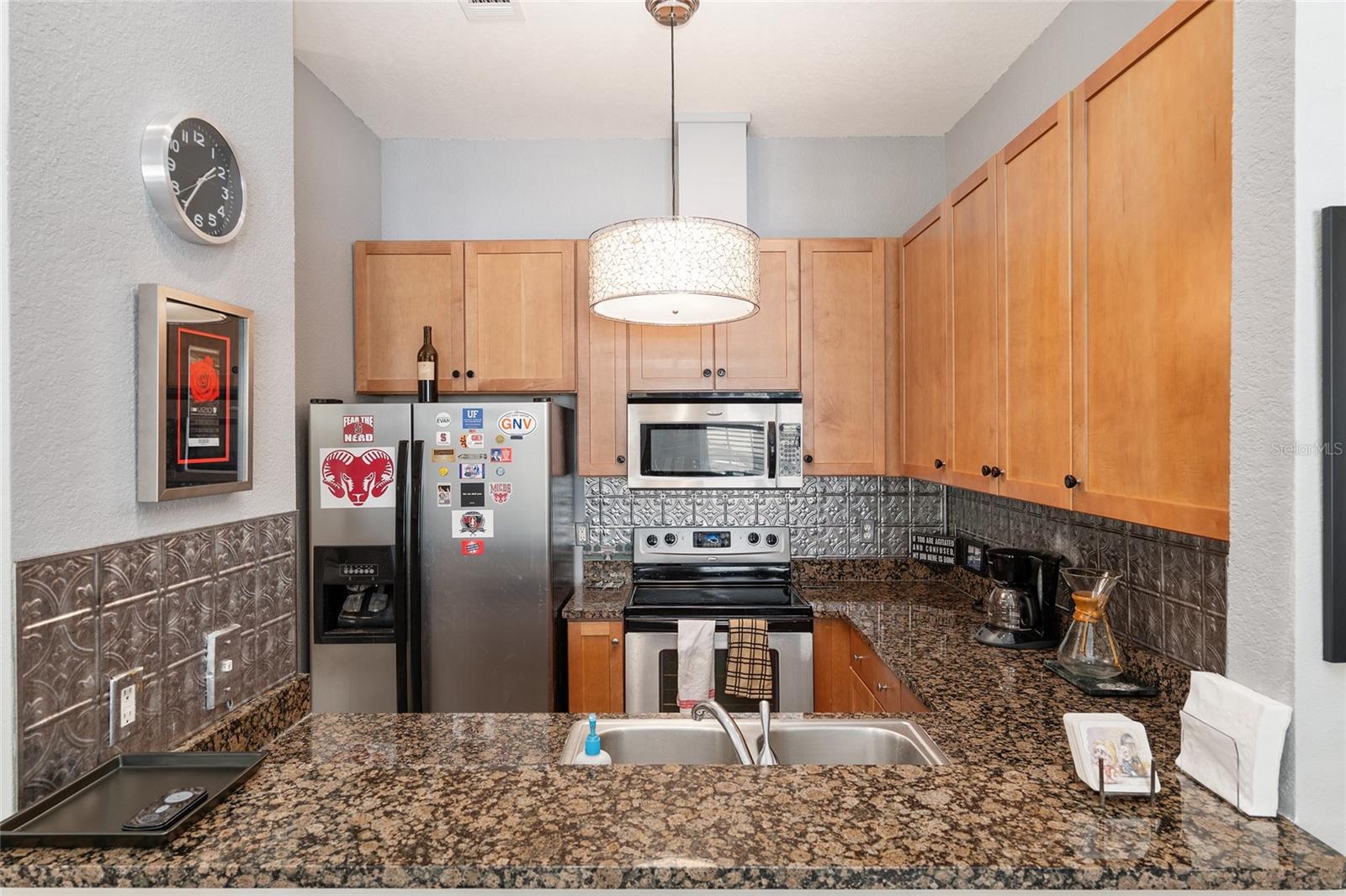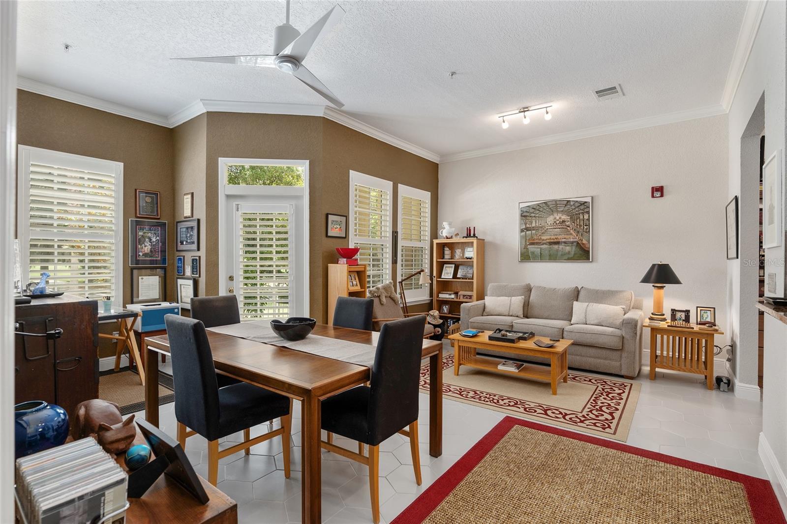 What a perfect view from this beautiful 1st floor luxury condo on the 12th green of the Hawkstone Golf Course. The covered balcony is a relaxing place for morning coffee or a glass of wine at sunset! The owner has recently added tasteful upgrades showing pride of ownership such as stylish hexagon tile floors throughout, specialty paint, new shower tile in the bathroom, beautiful light fixtures, and plantation shutters. Additional features include granite kitchen counter, wood cabinets, a washer and dryer, 1/2 bathroom in the hallway, carpet in bedrooms, California closet in owners walk in closet, and direct access to the garage, spacious bedroom with dual vanities, built in desk and storage for a personal office, high ceilings, spacious great room, dining room and extra nook overlooking the window for outdoor views. The location is a short walk to the Village Center with restaurants, businesses and the Saturday Farmers Market. Enjoy the abundant walking rails throughout the area. Visit Hawkstone Golf and Country Club for a tour of the golf course and facilities and information to join this fun and active club at an additional fee. Close to shopping with two Publix stores, restaurants, shops, health facilities and I-75. NEW ROOF 2024!